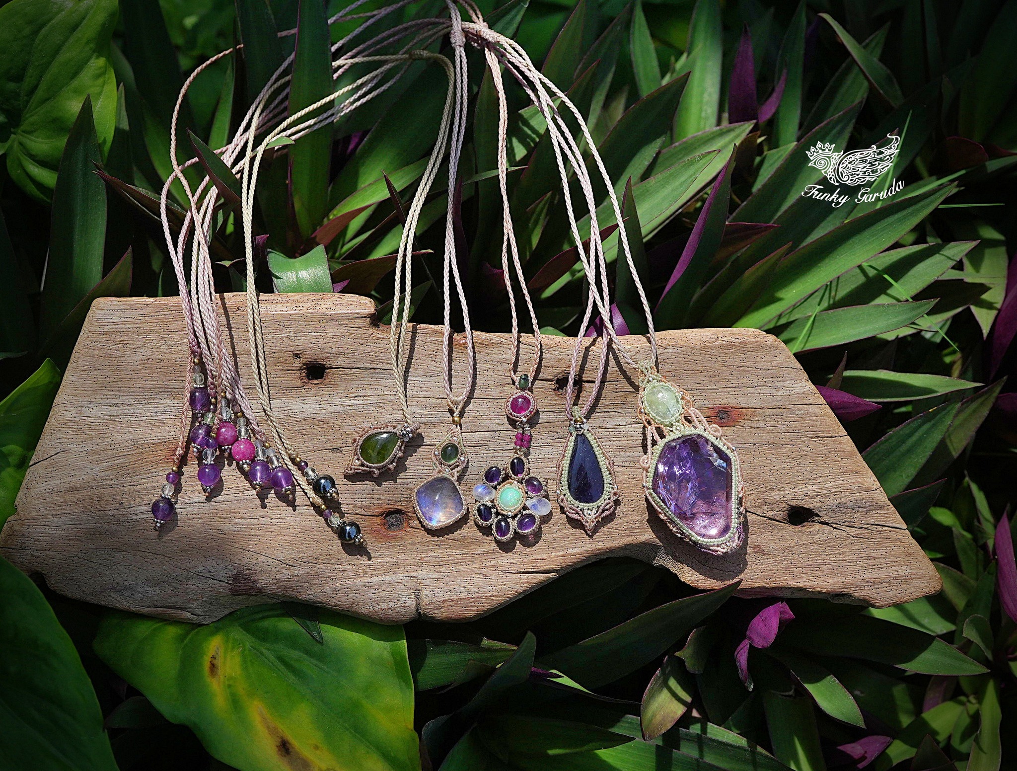 集めた天然石ネックレスたちです。