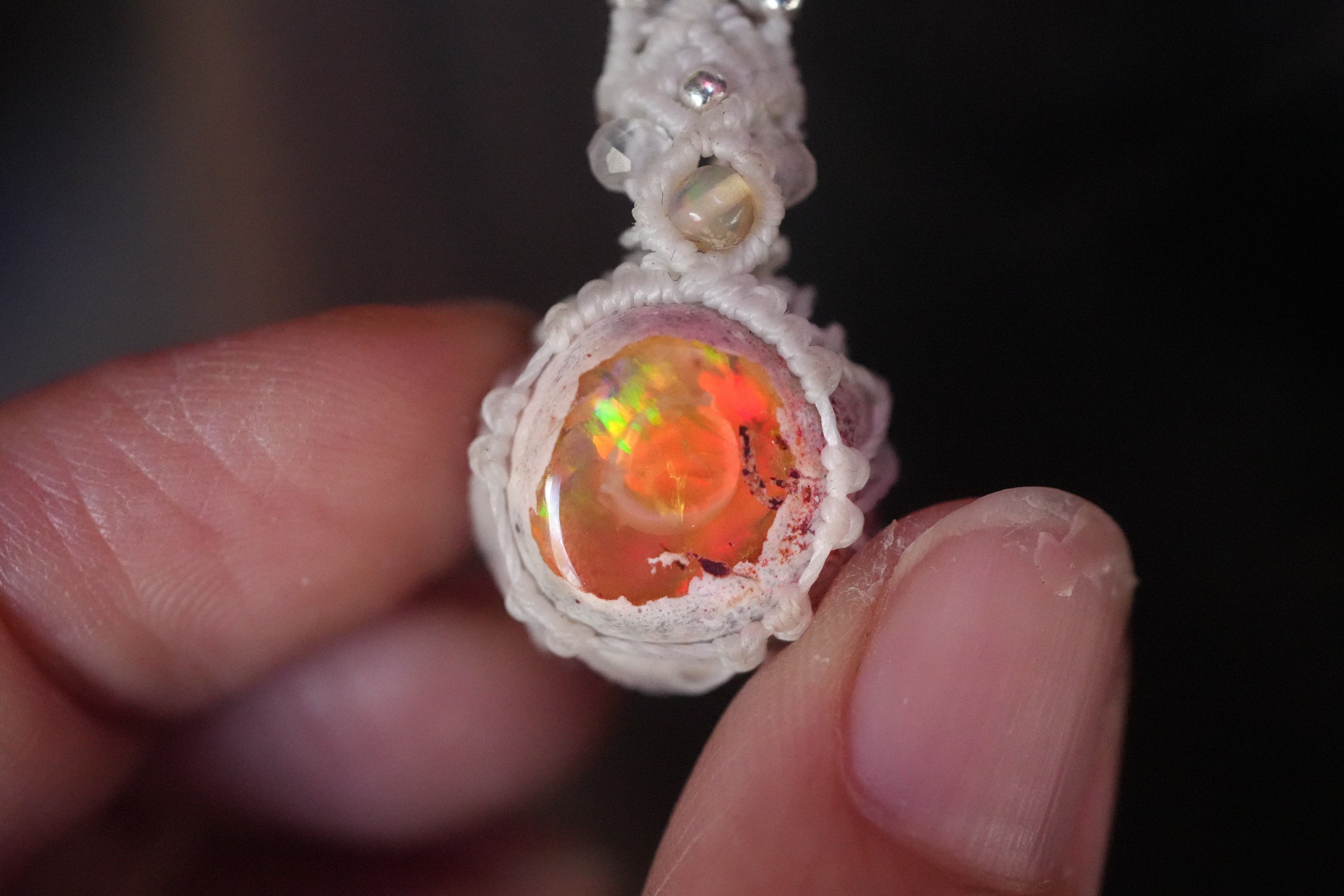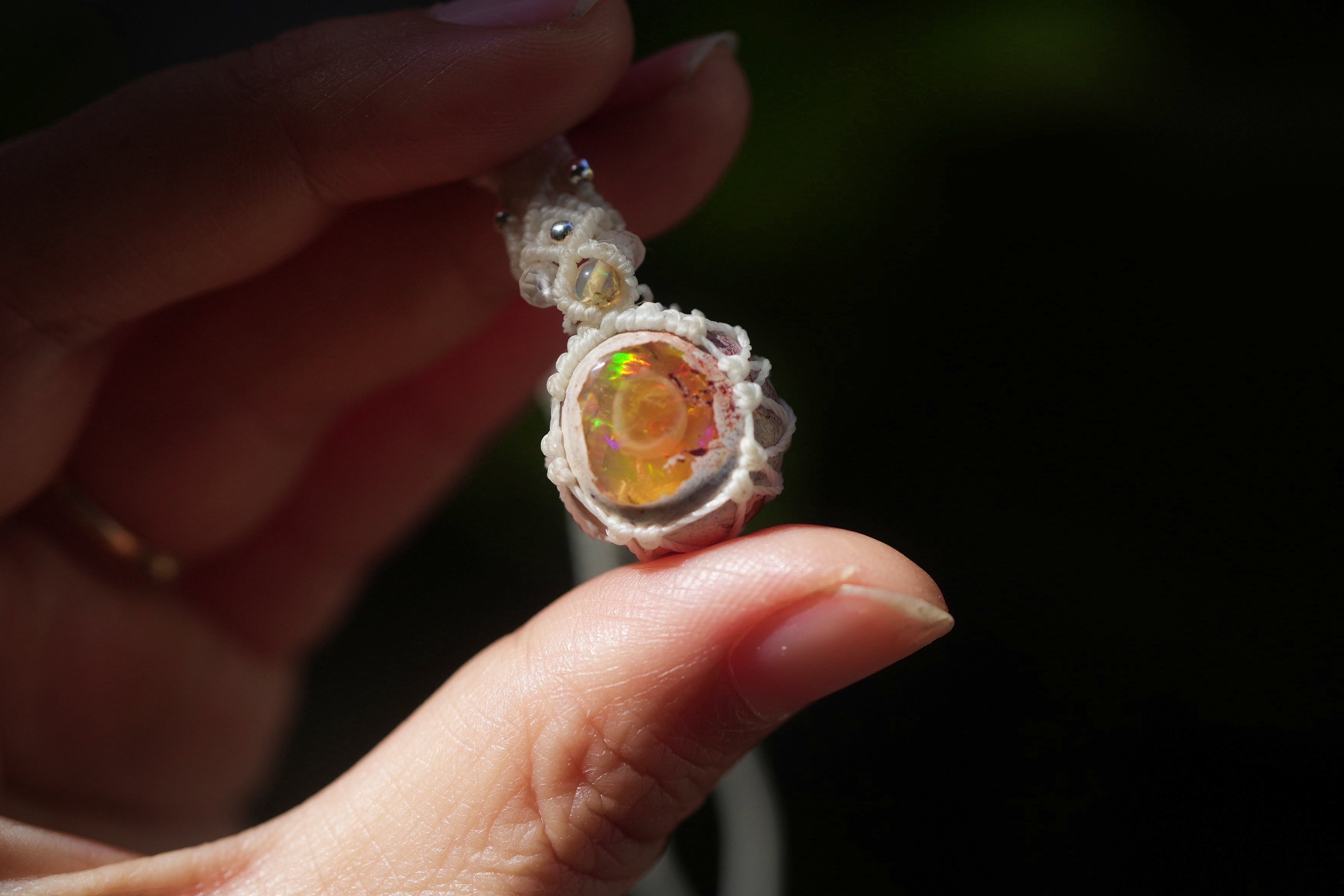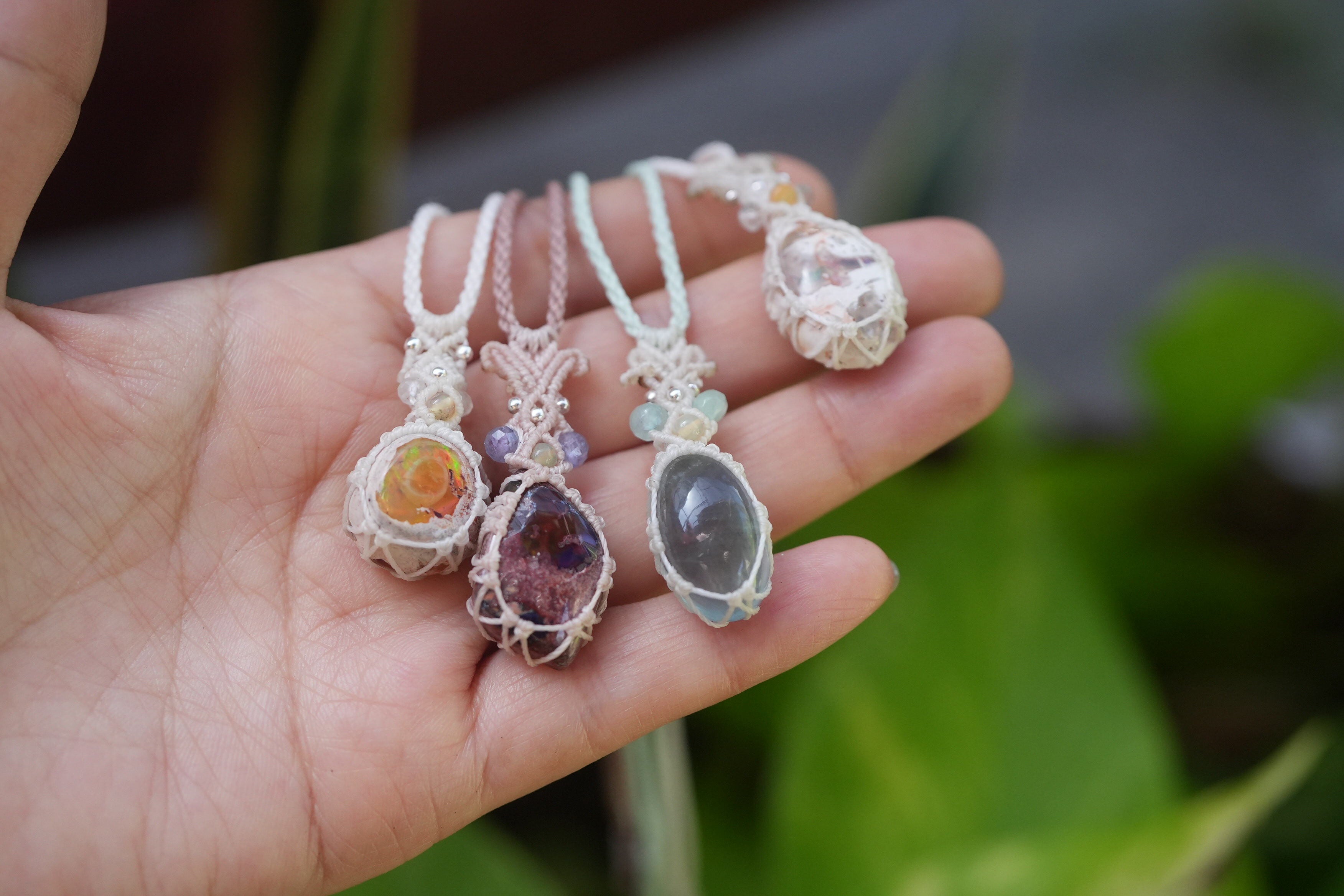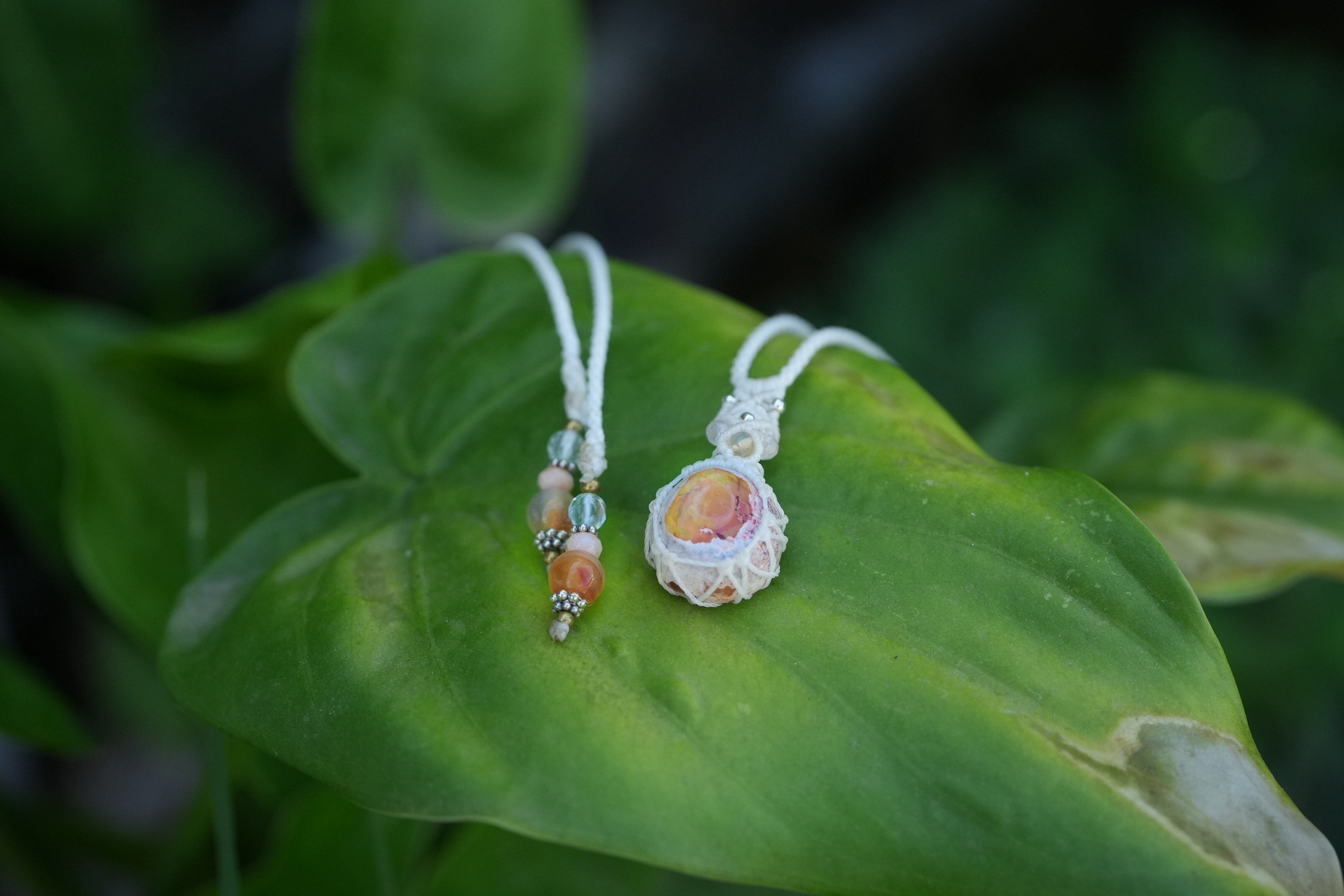 夕焼けの結晶★カンテラオパール マクラメネックレス1961