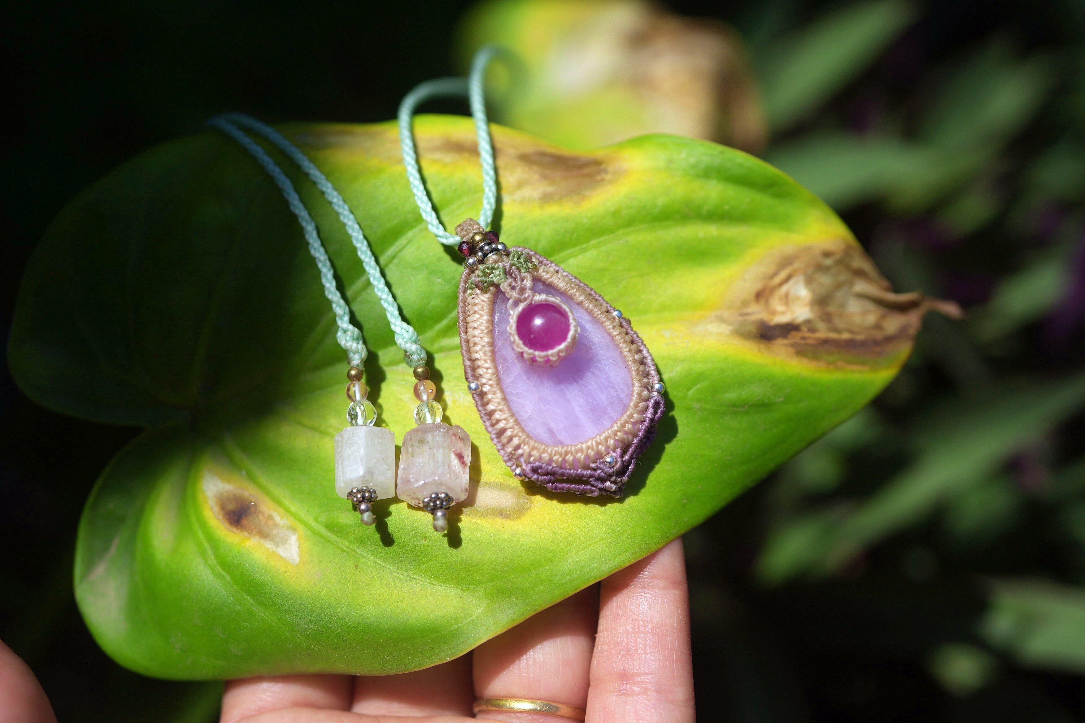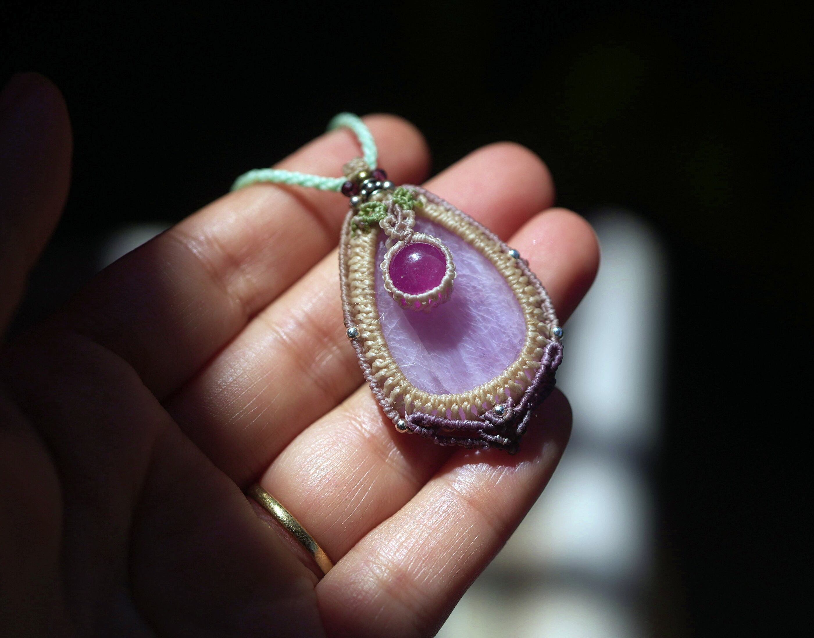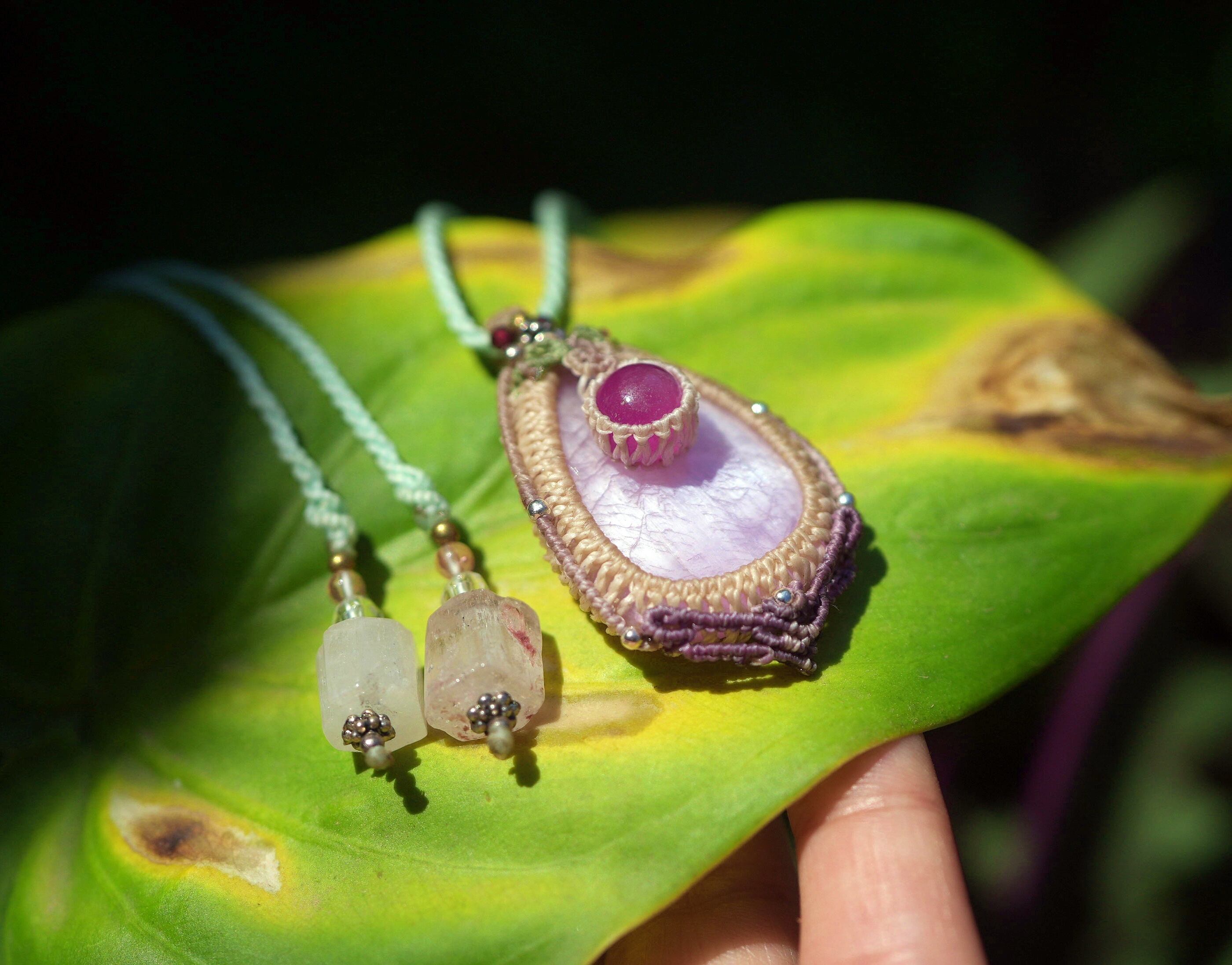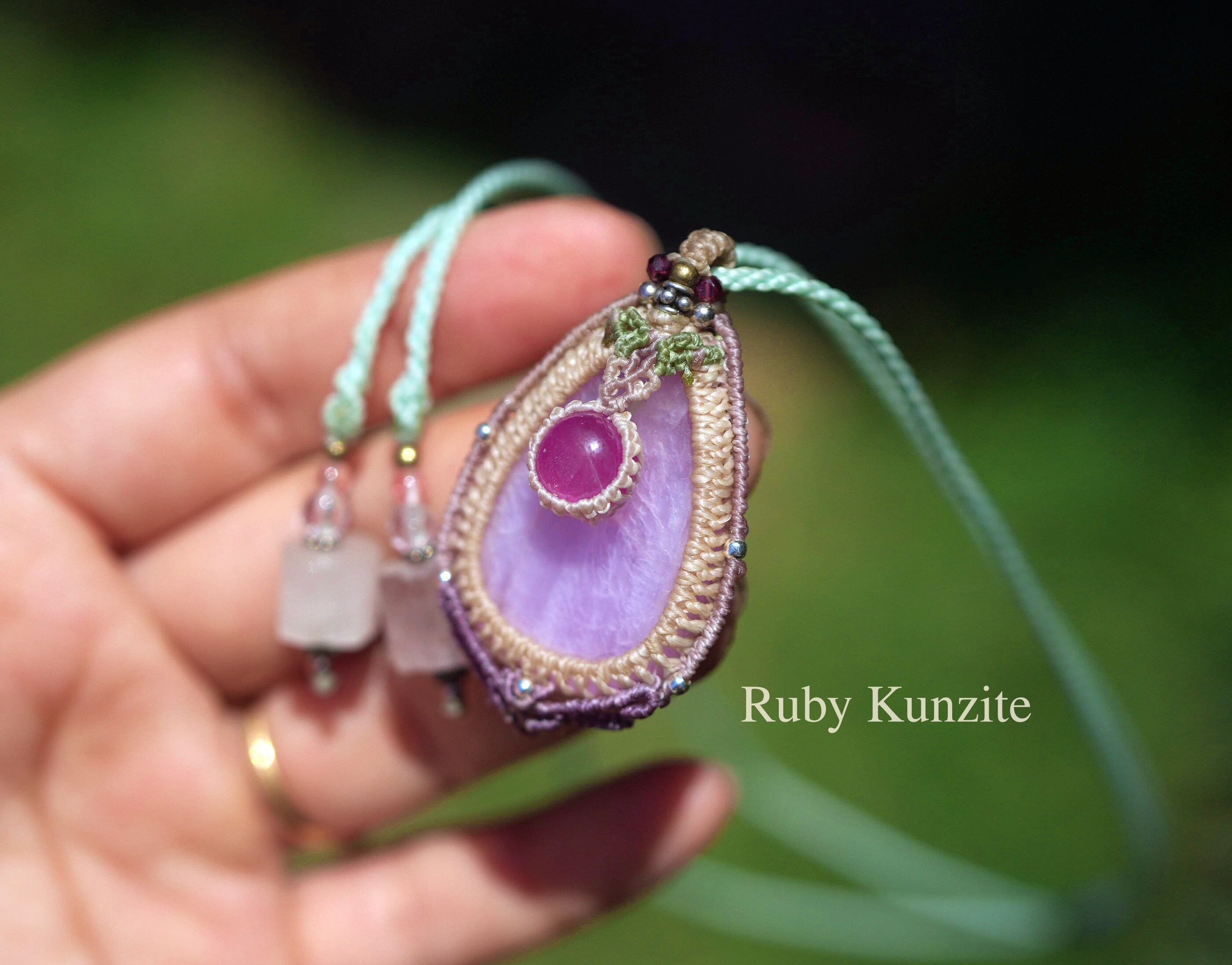 小さな蕾★Ruby Kunzite マクラメネックレス1971