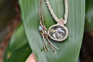 森林と丘の見える★ガーデンルチルクォーツ マクラメペンダントgarm091