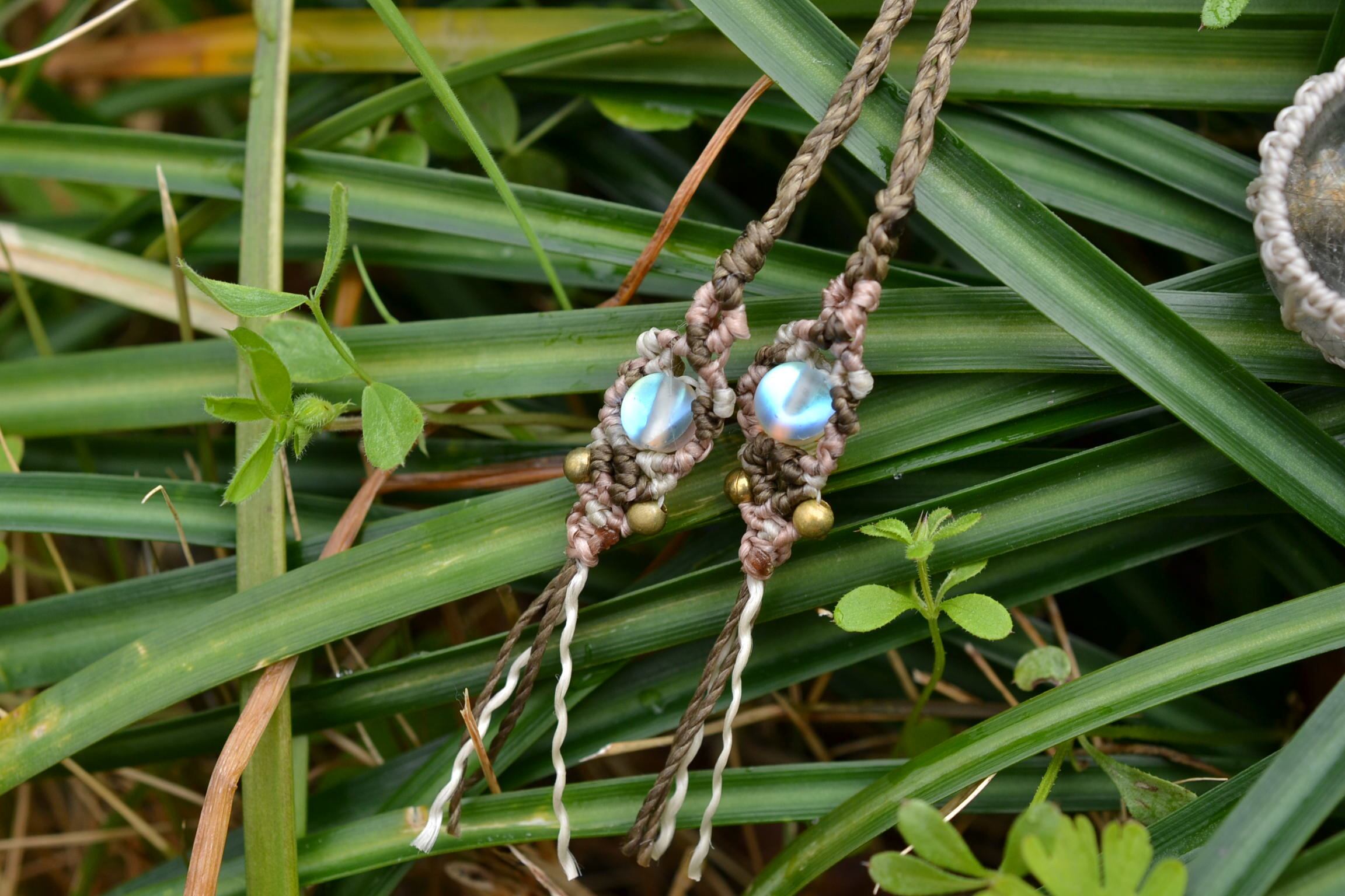 ◆このたびはオリーブ、ヘンプ、差し色としてミルクココアの3色の蝋引き糸を使用しマクラメ編み装飾を施しました。