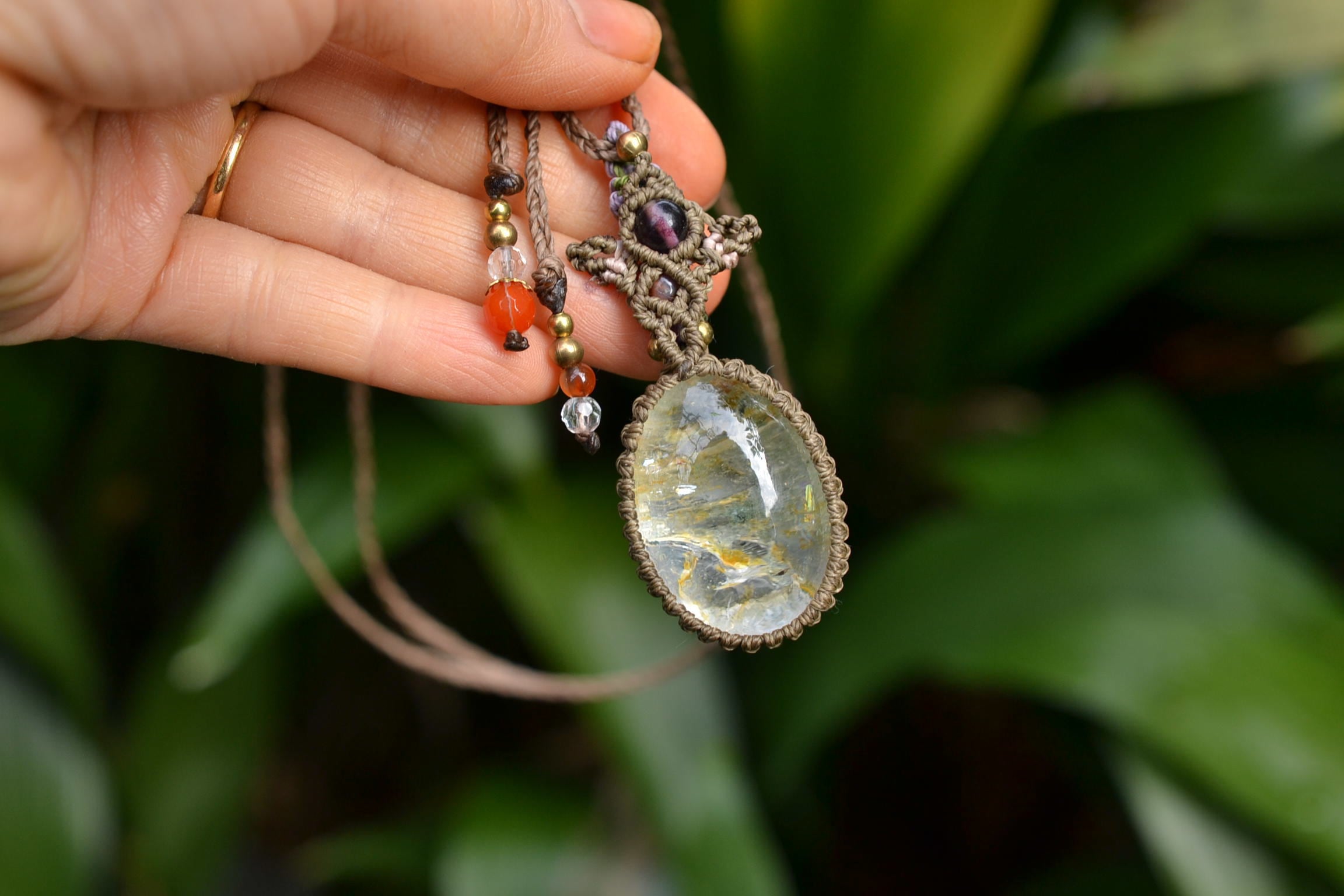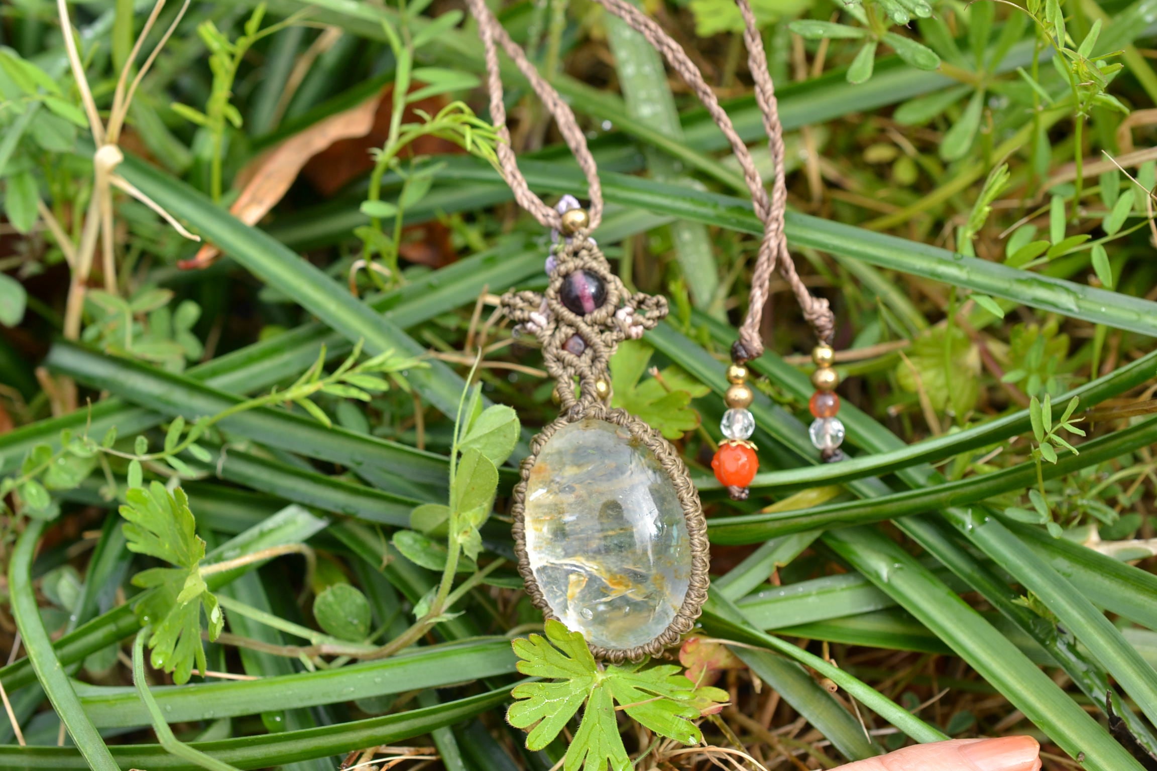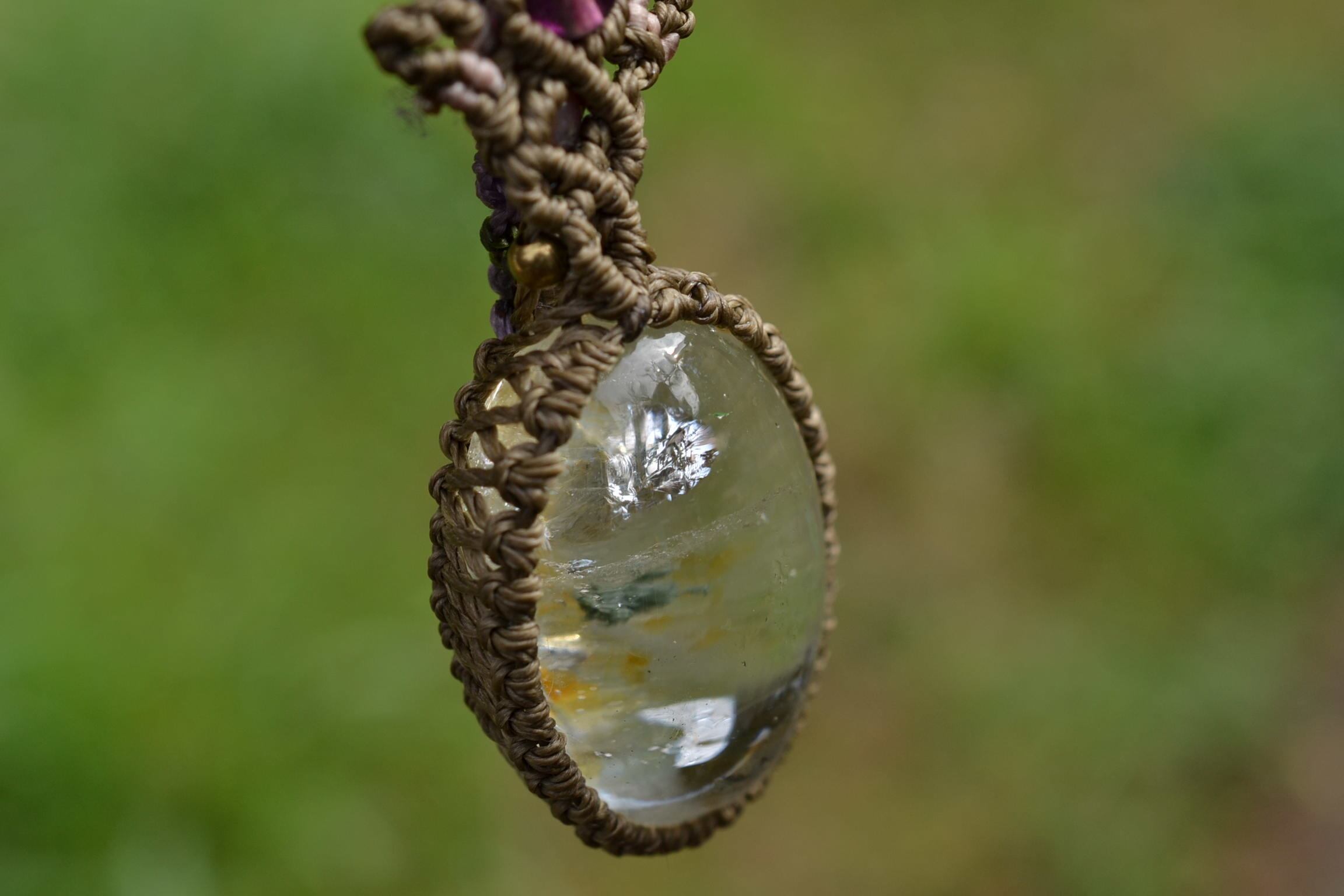天使の羽とピカピカシラー★ガーデンクォーツ マクラメペンダントgarm104