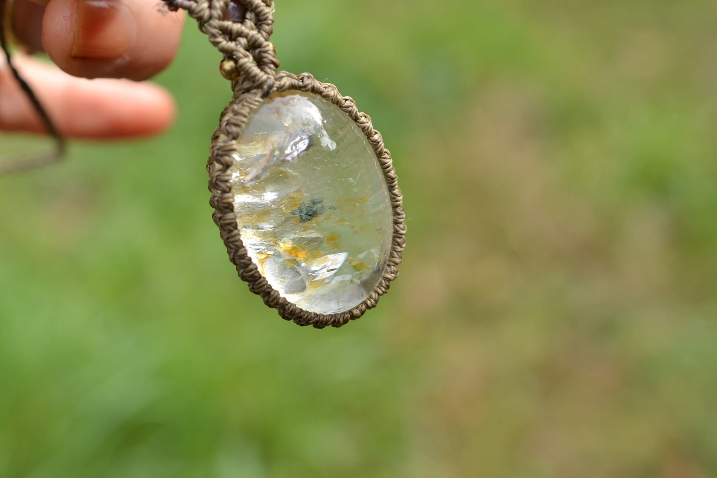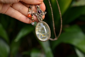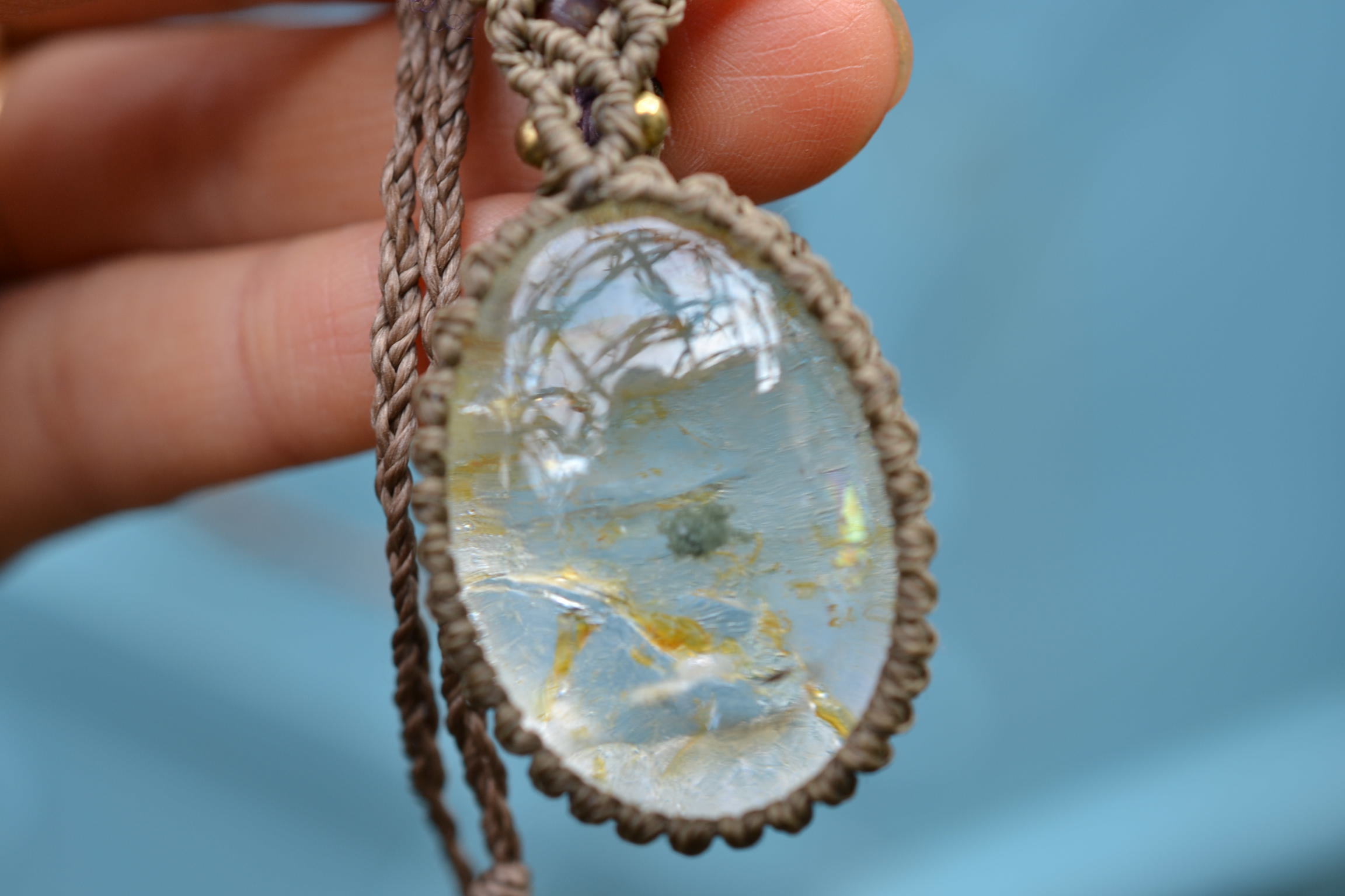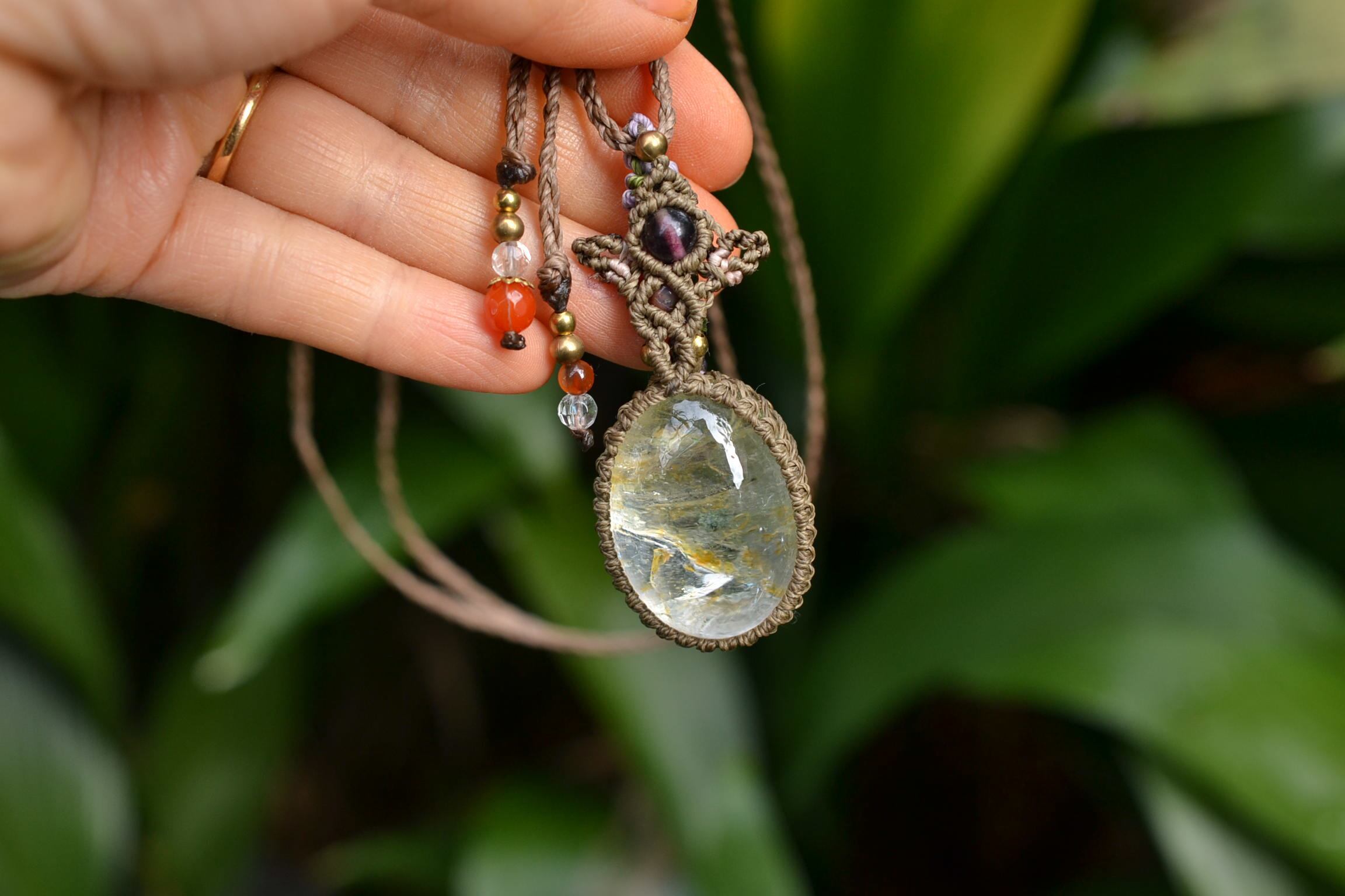 天使の羽とピカピカシラー★ガーデンクォーツ マクラメペンダントgarm104