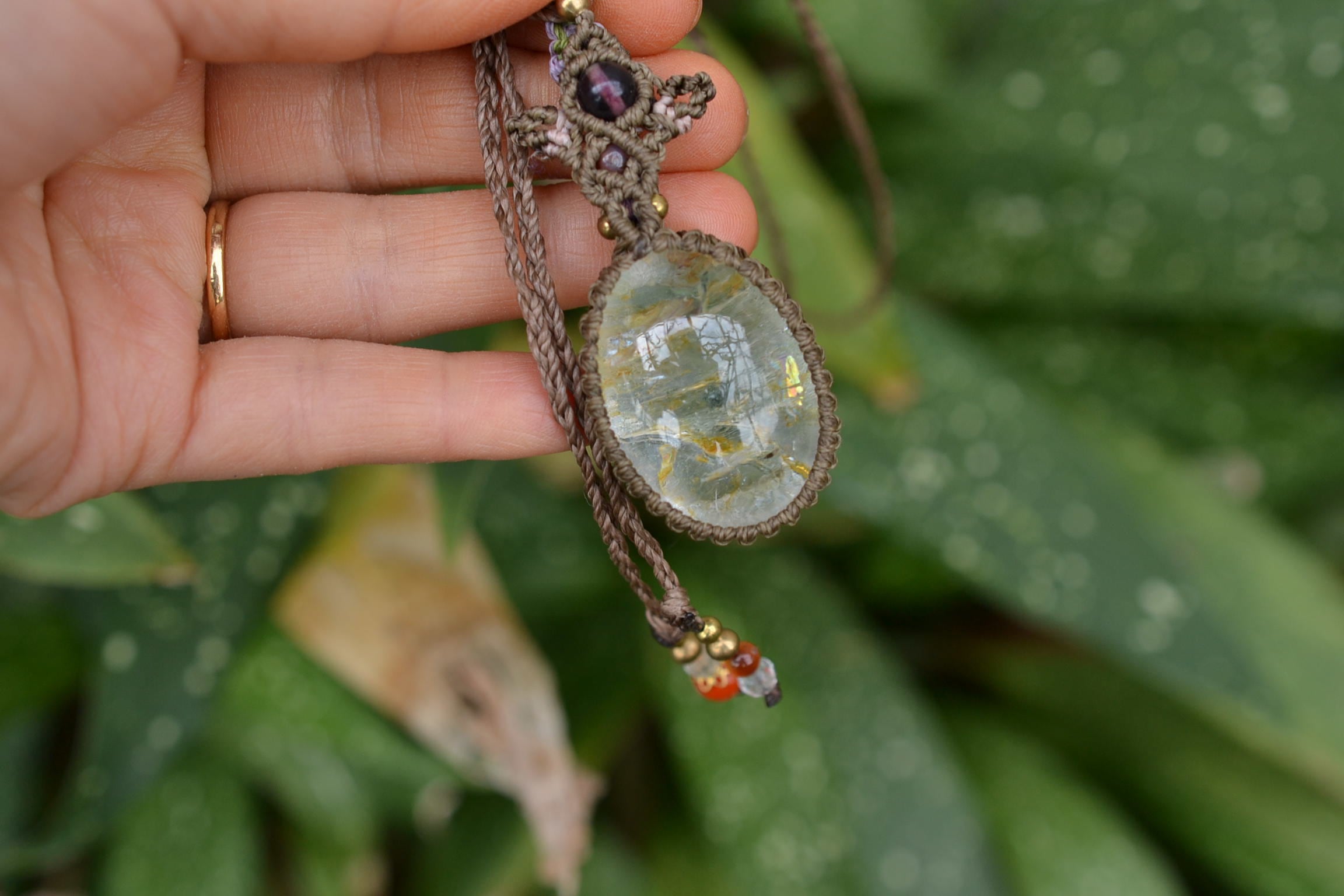 お手にとって見ていただきたい不思議で美しい石をマクラメ編み装飾しペンダントに仕上げました。