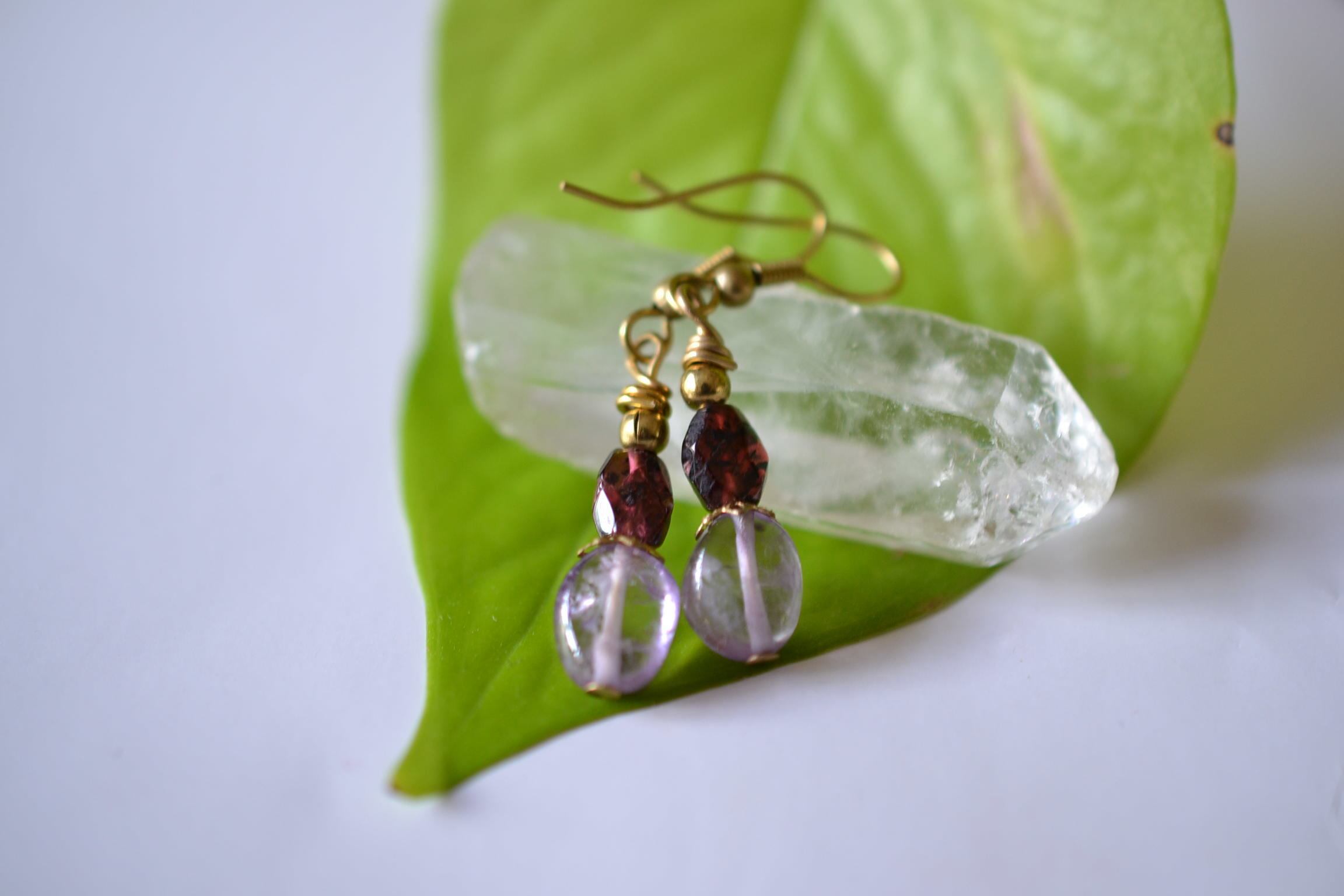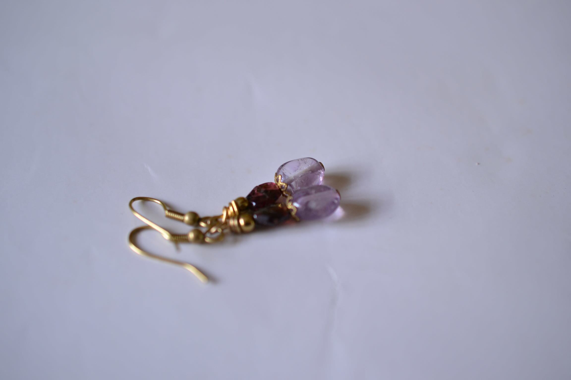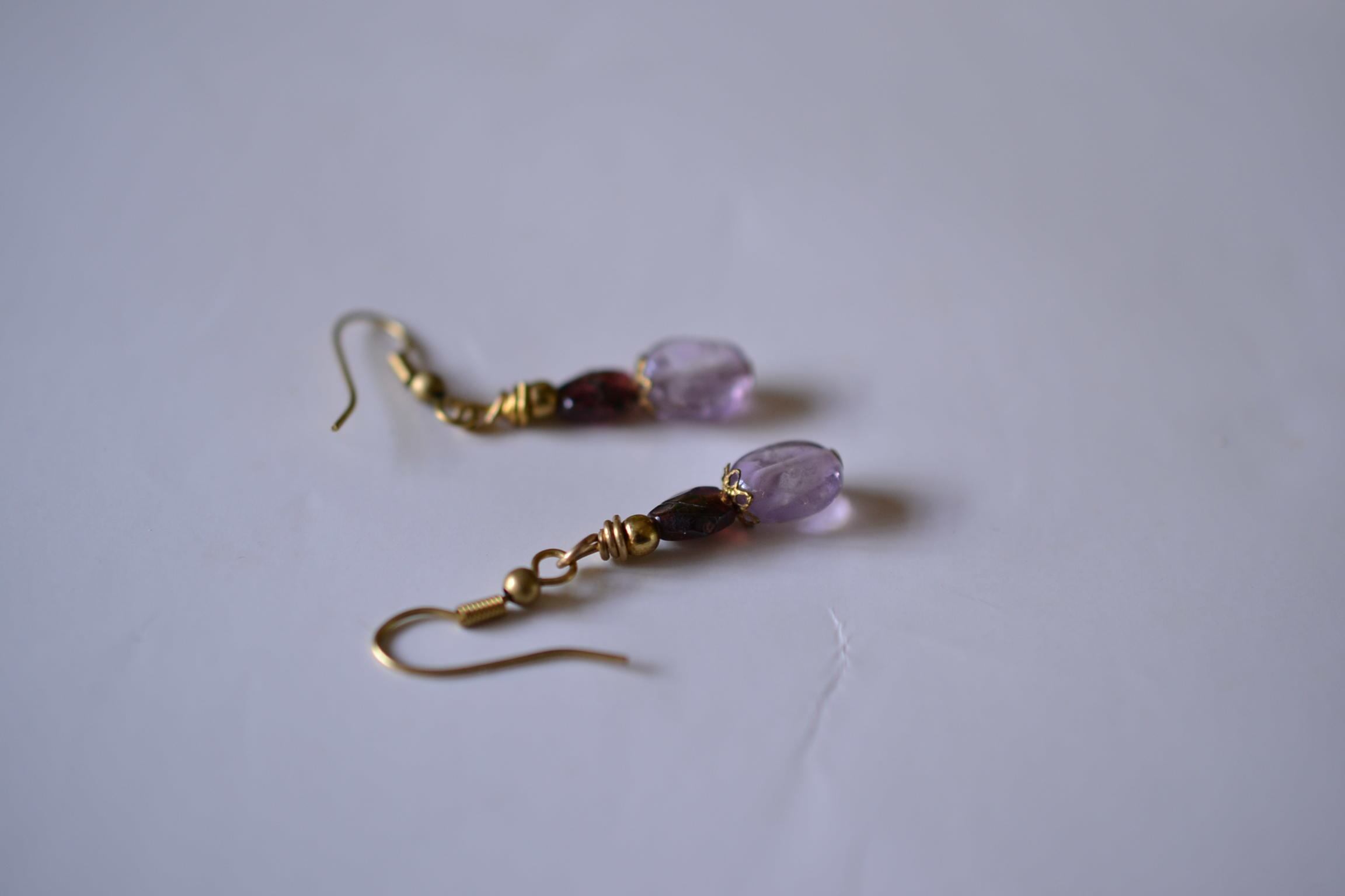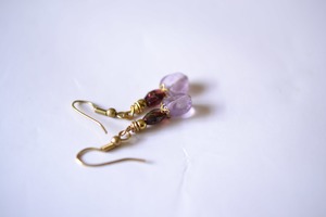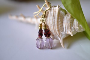 美しい高貴な石ガーネットと透明感あるアメジストビーズをピックアップしてピアスを制作しました。耳元を優しく彩ります。