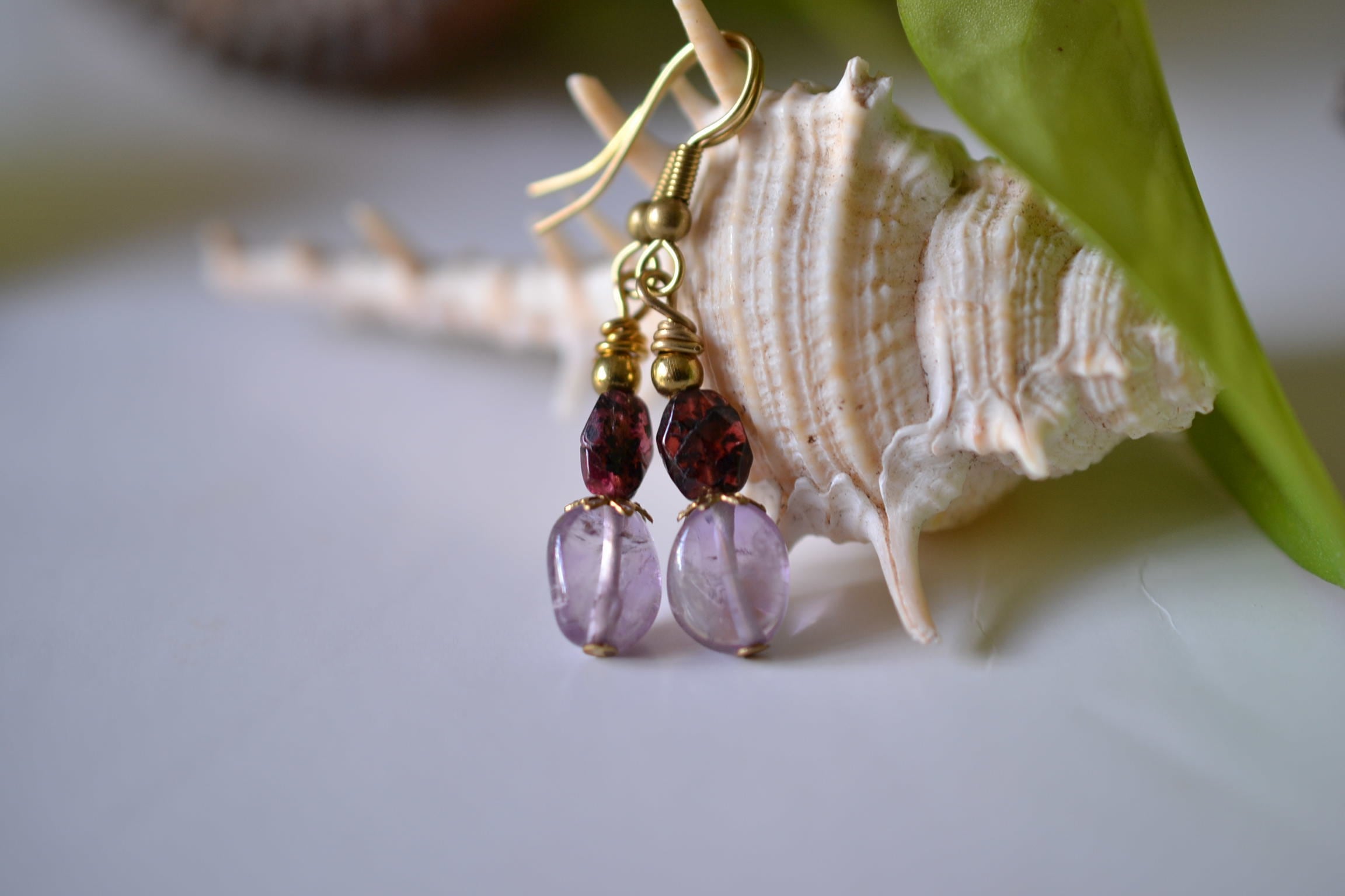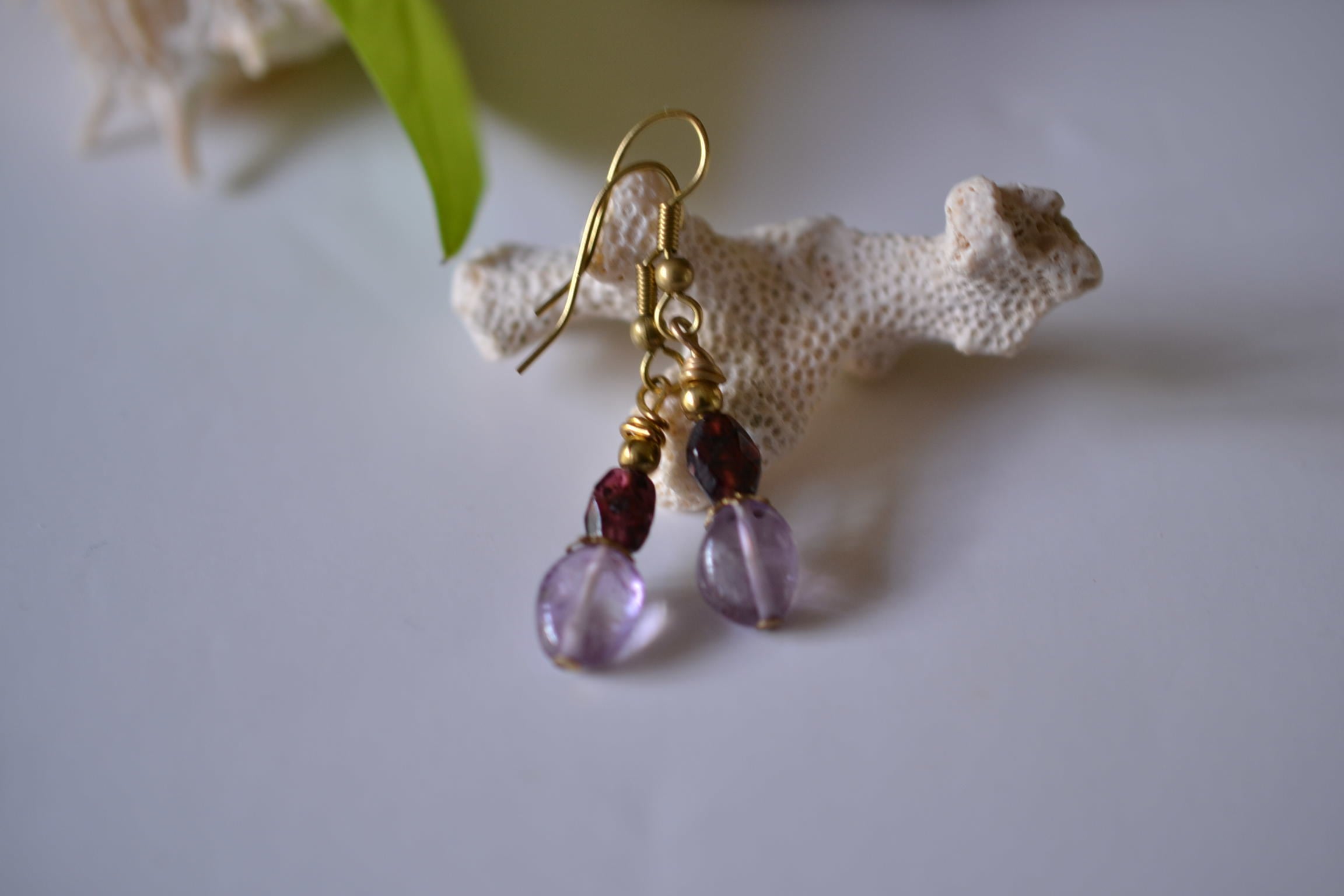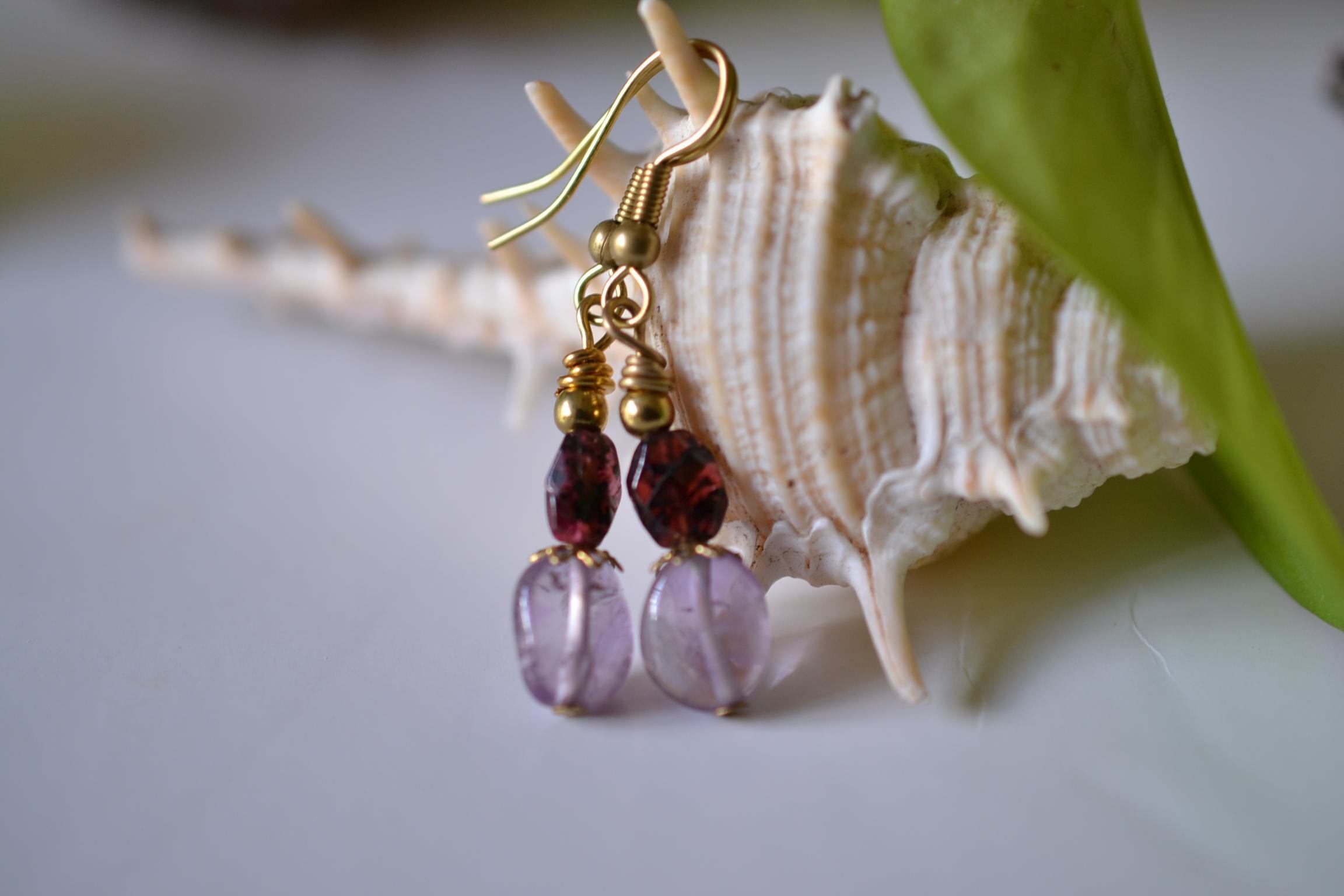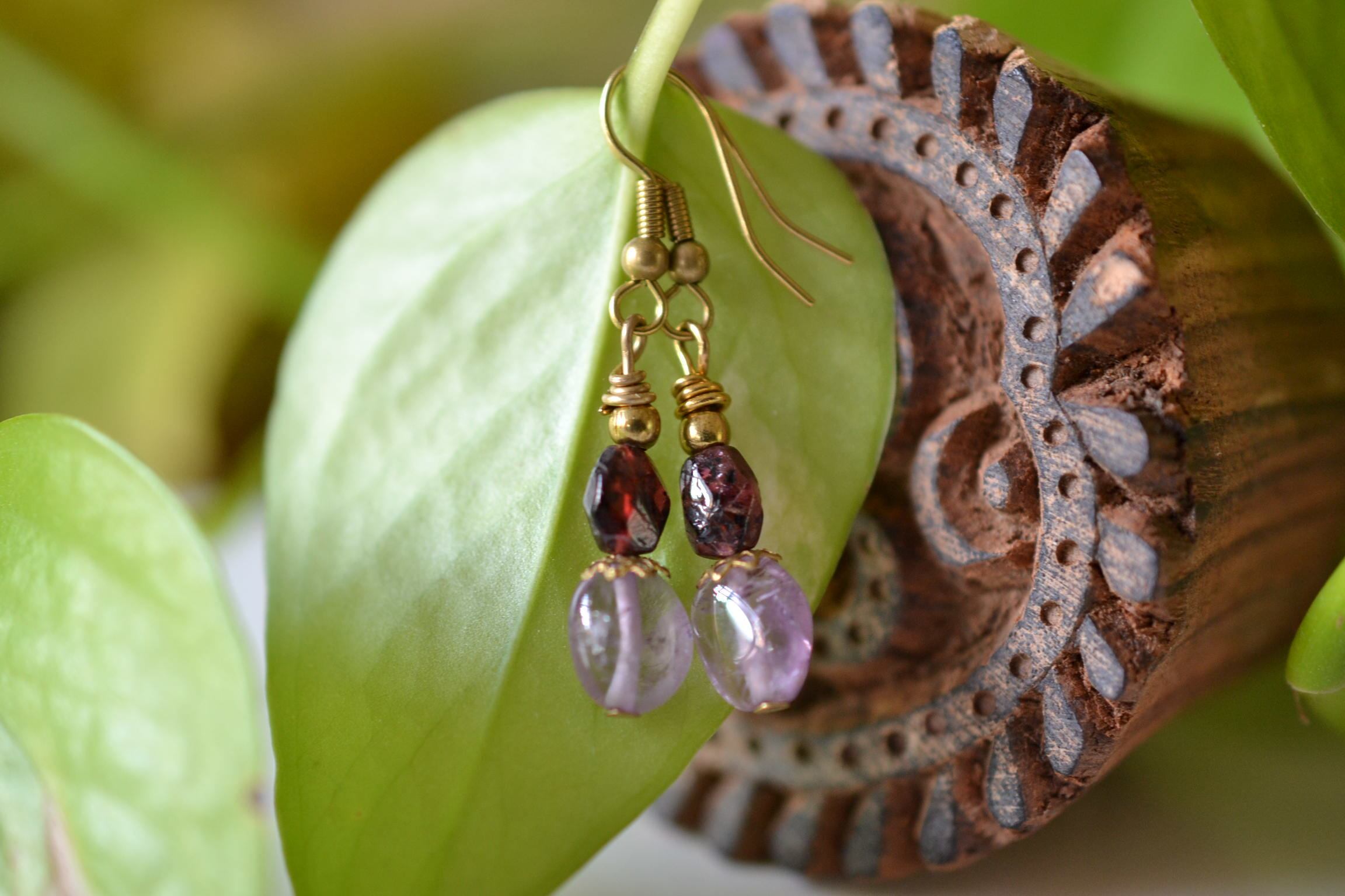 美しい高貴な石ガーネットと透明感あるアメジストビーズをピックアップしてピアスを制作しました。耳元を優しく彩ります。