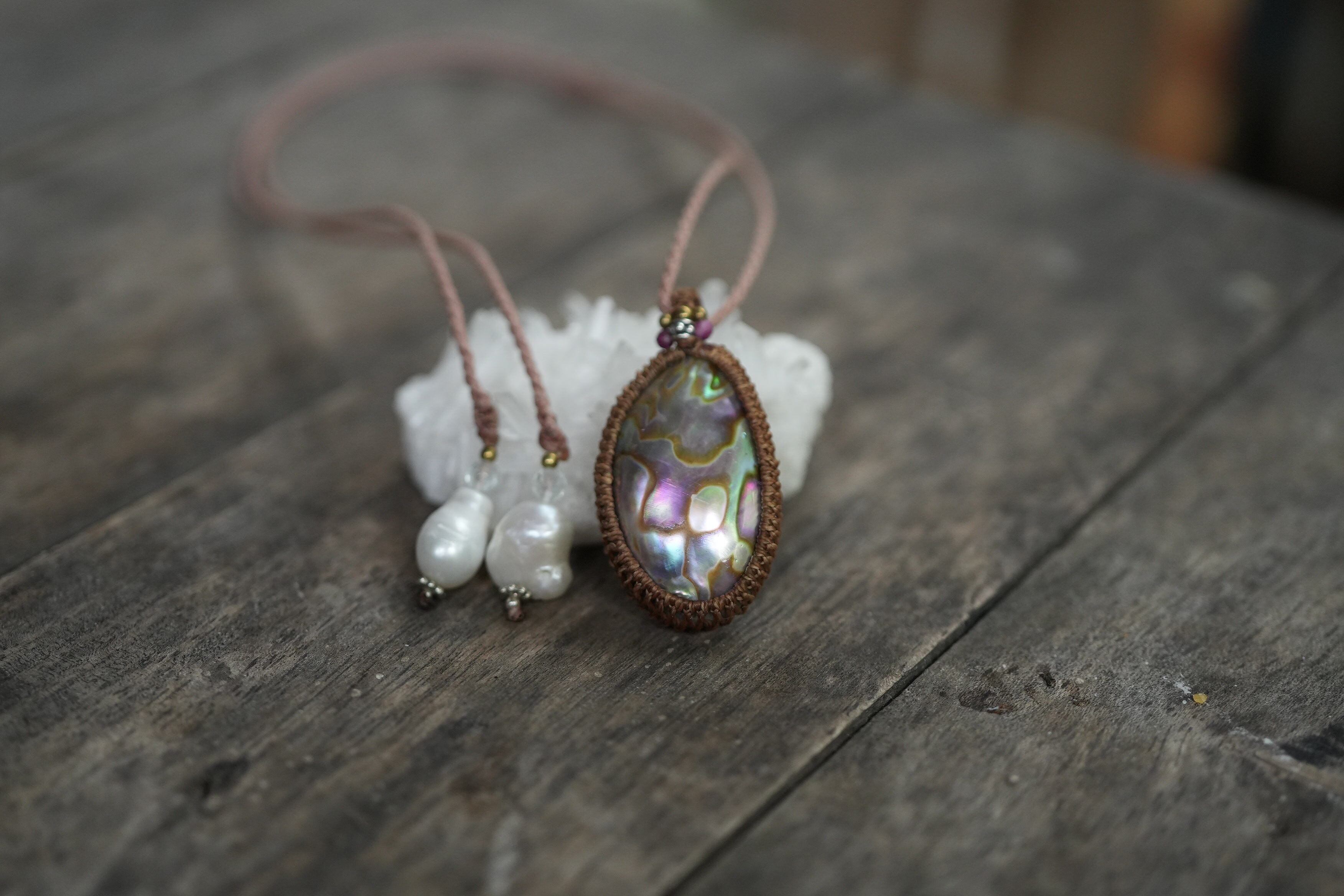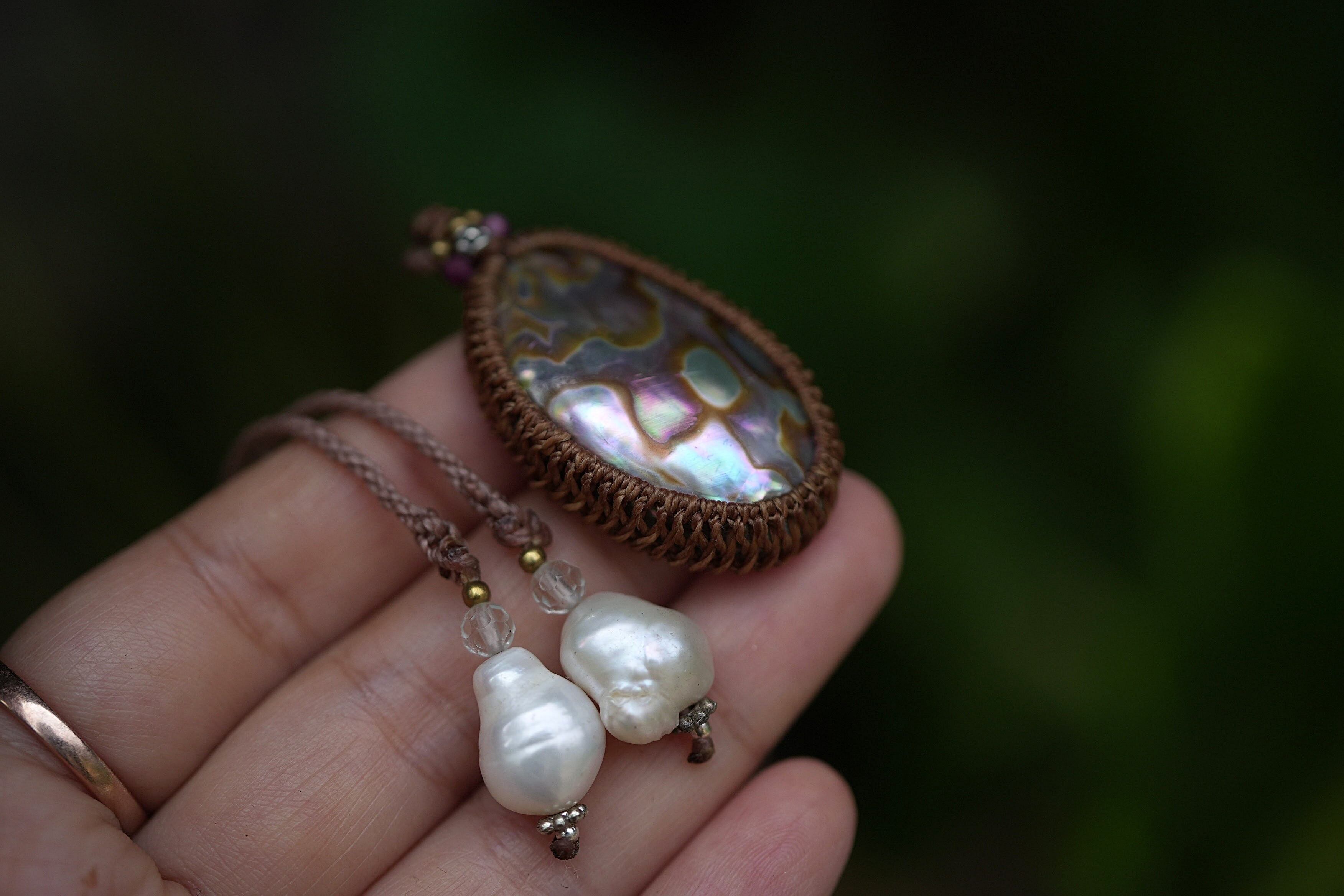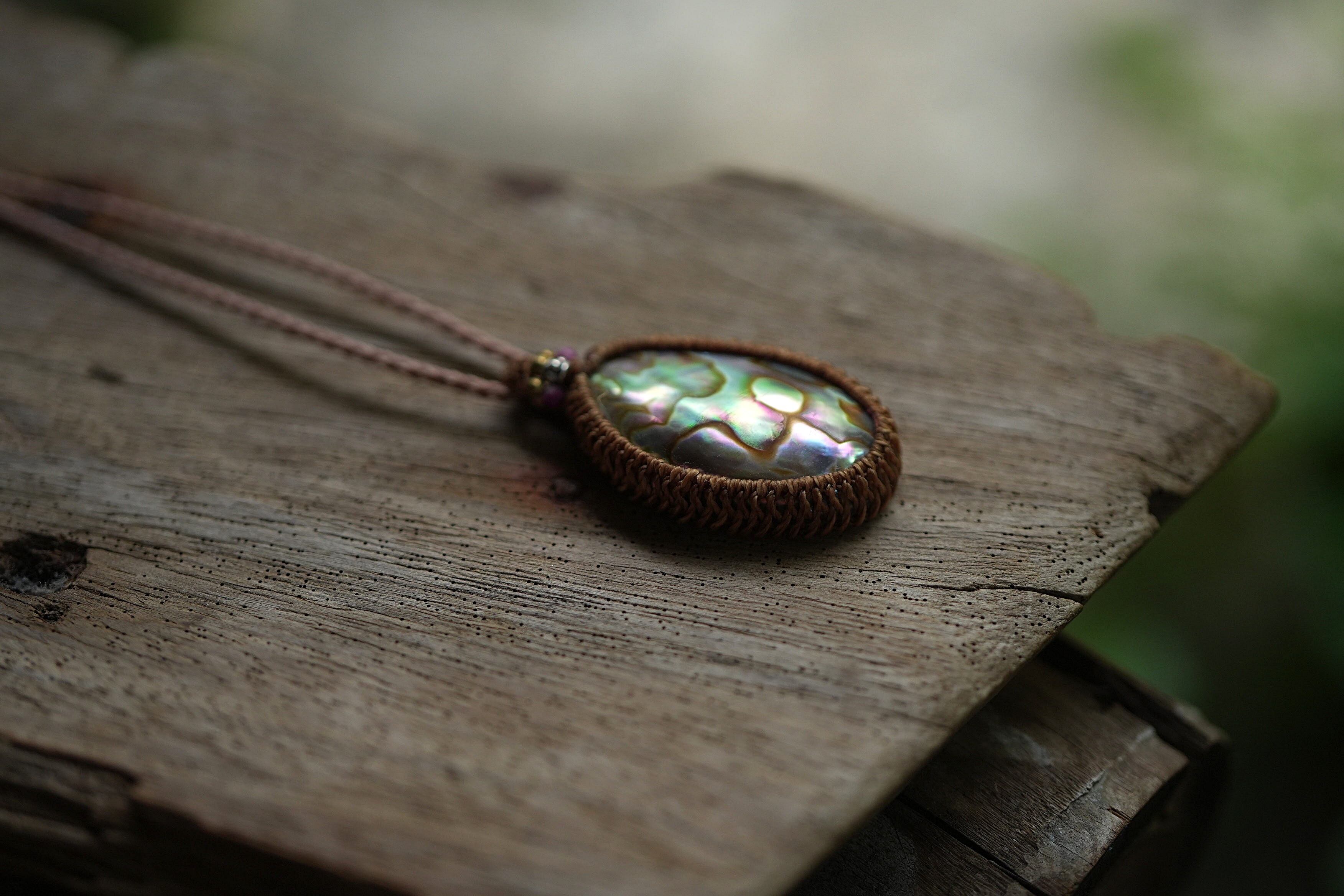 美しき虹色パワー★アバロンシェル マクラメネックレス1983
