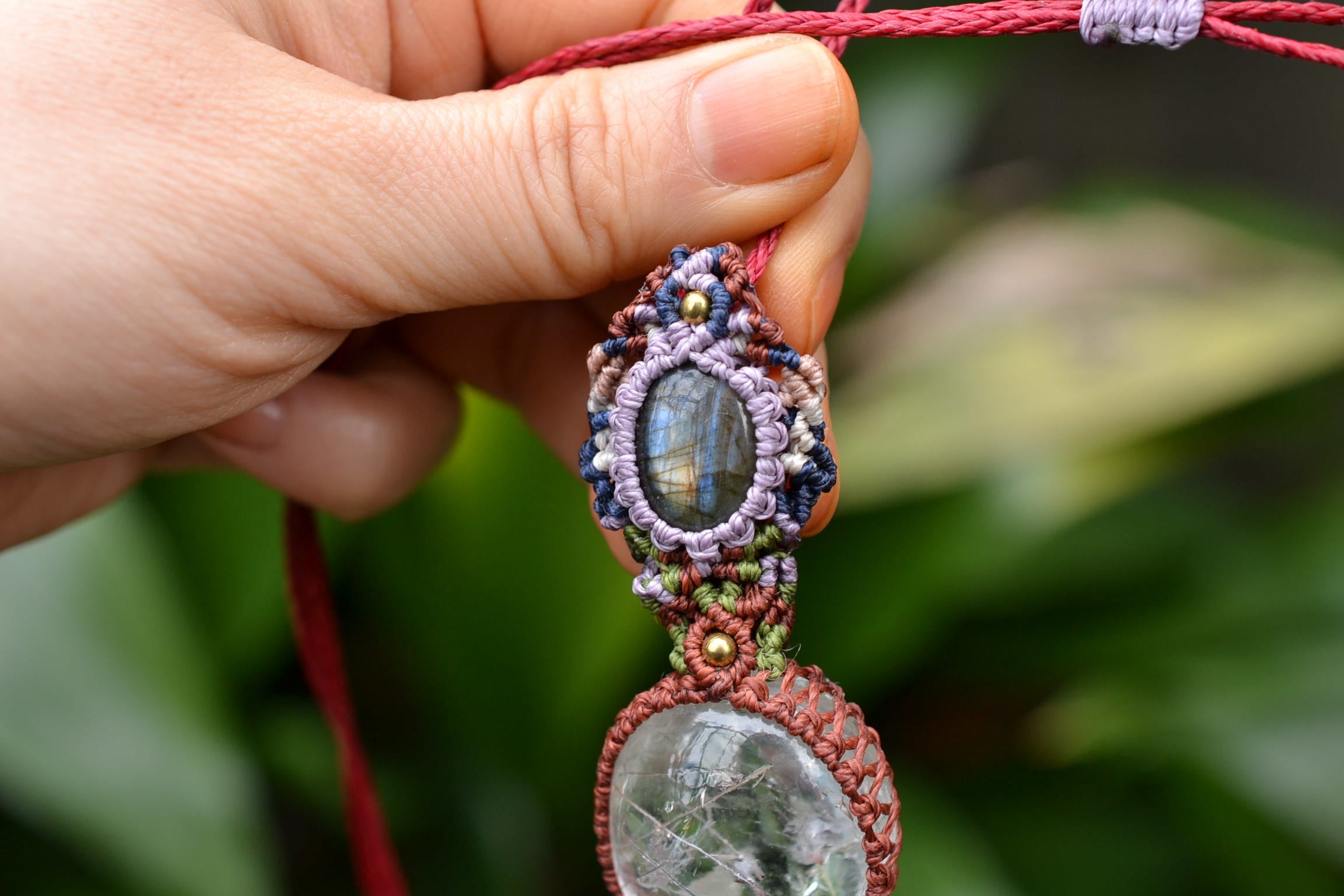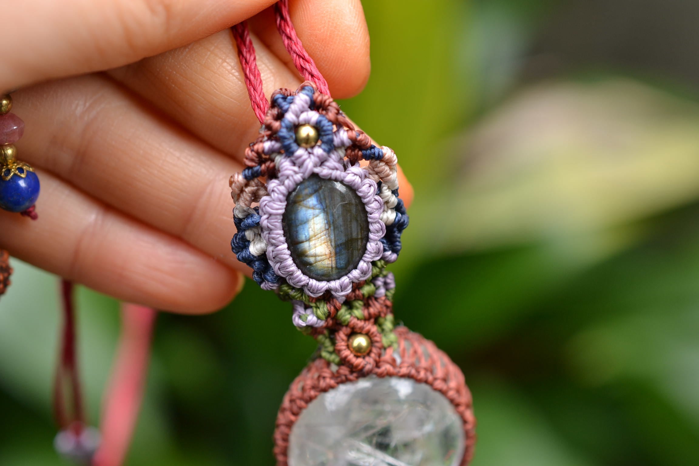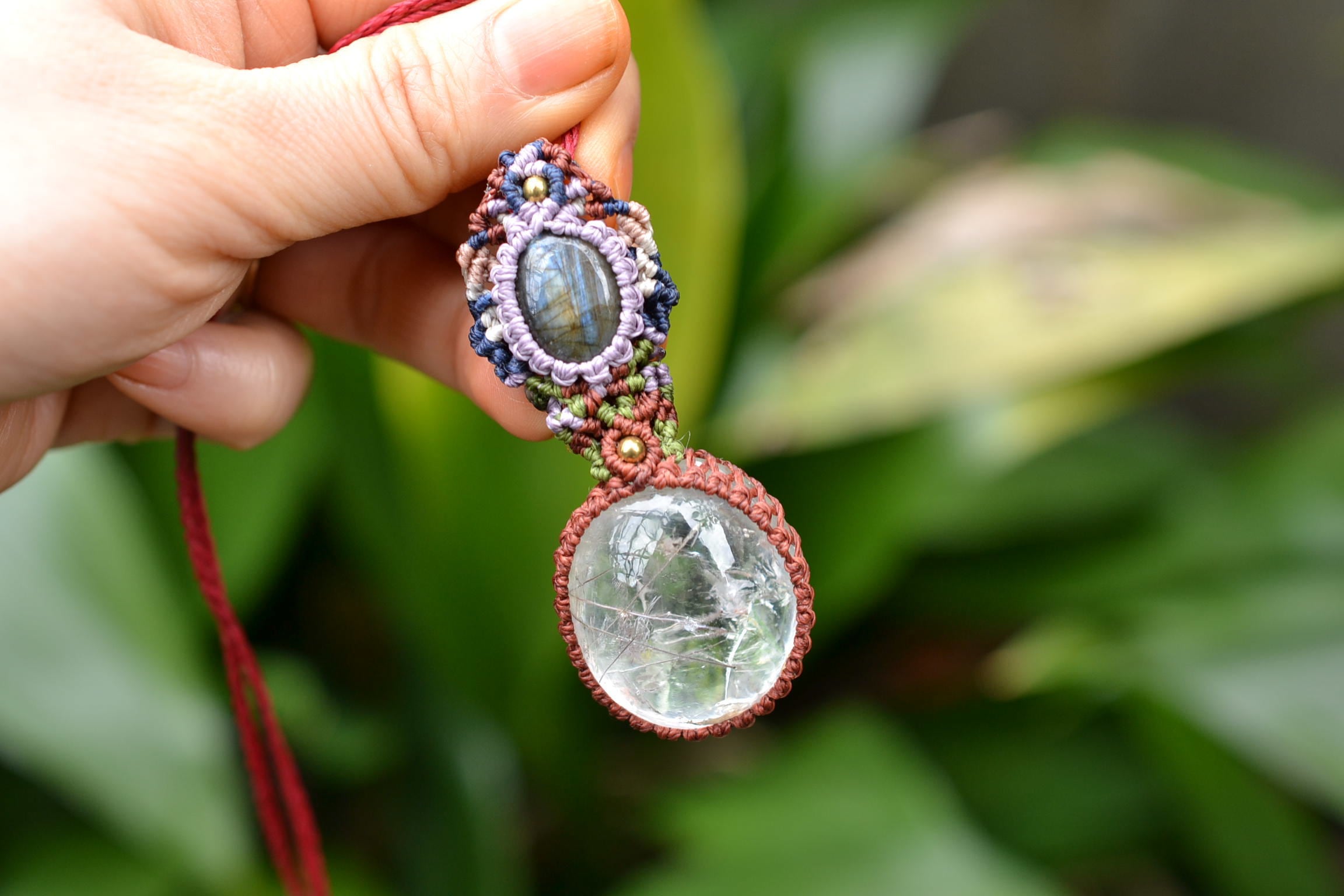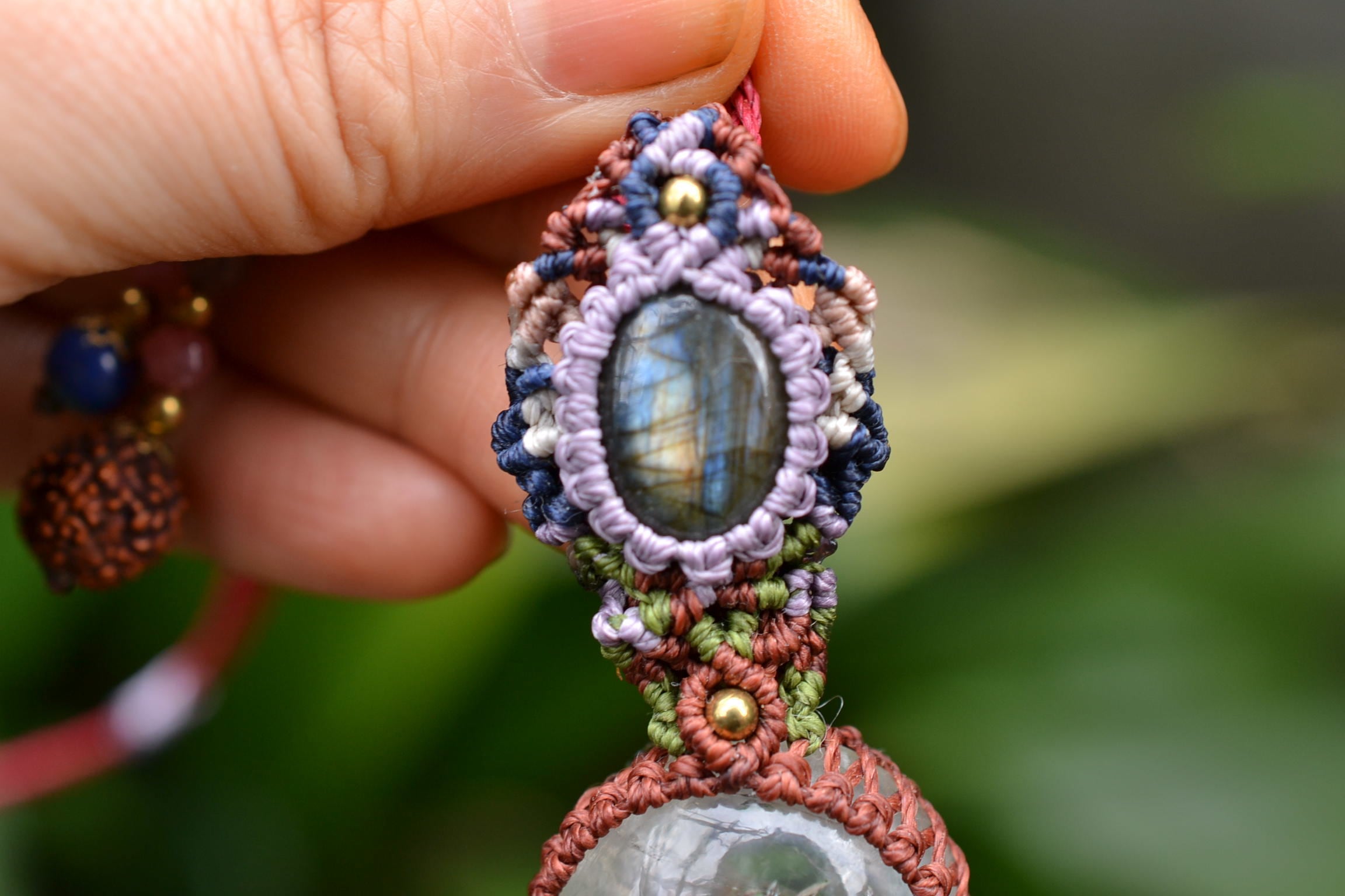 2つの奇跡★ 針水晶×レインボーラブラドライト マクラメペンダント