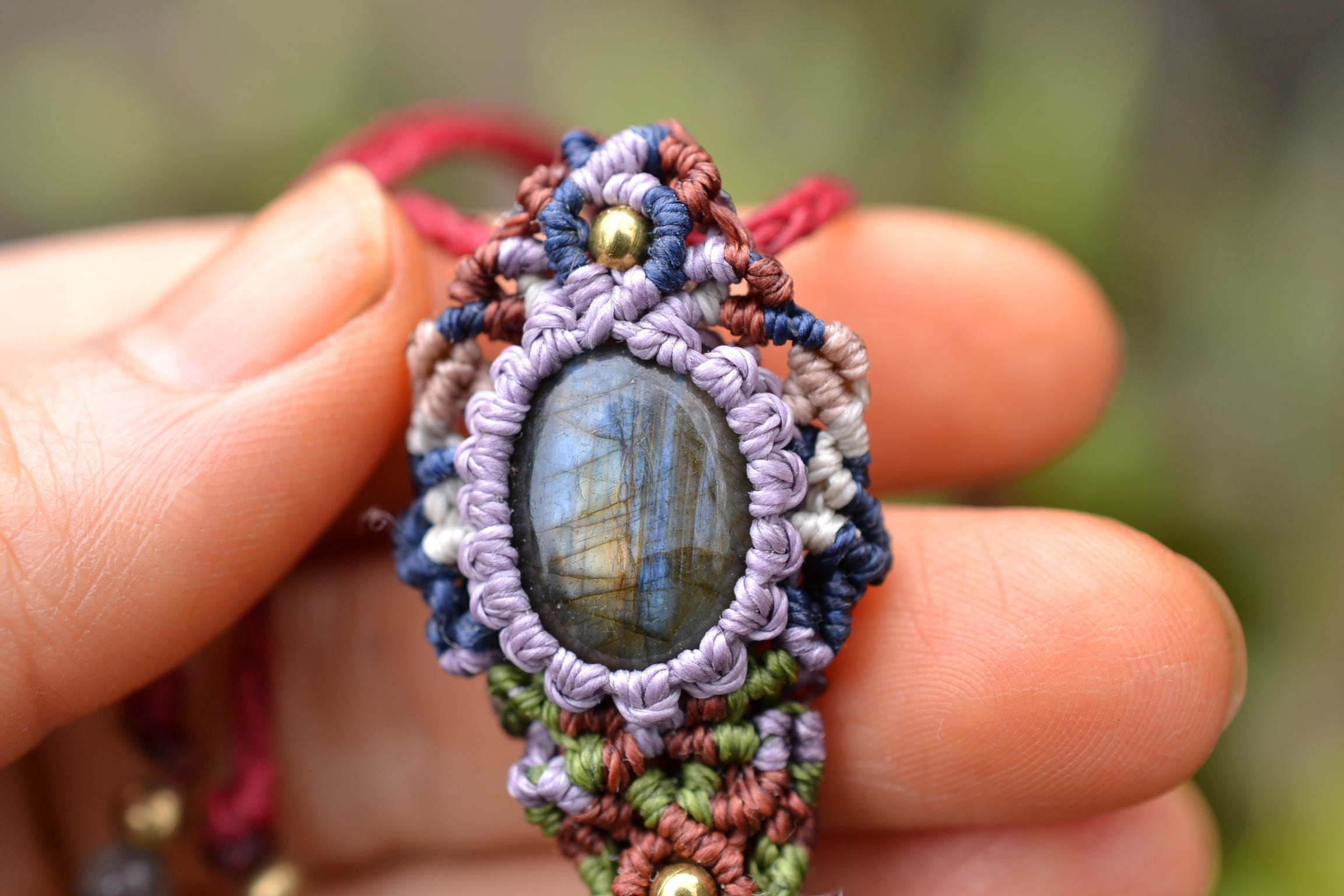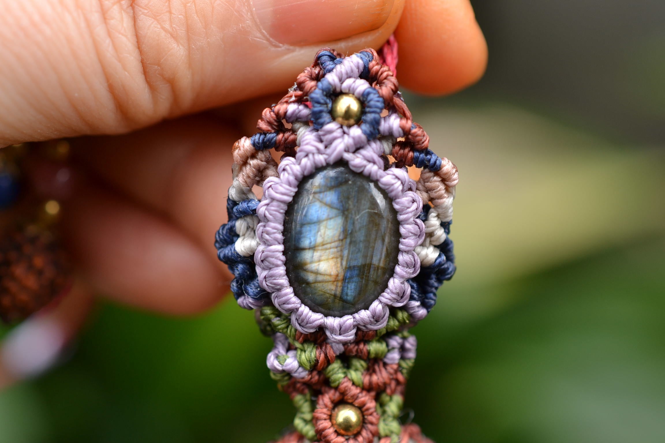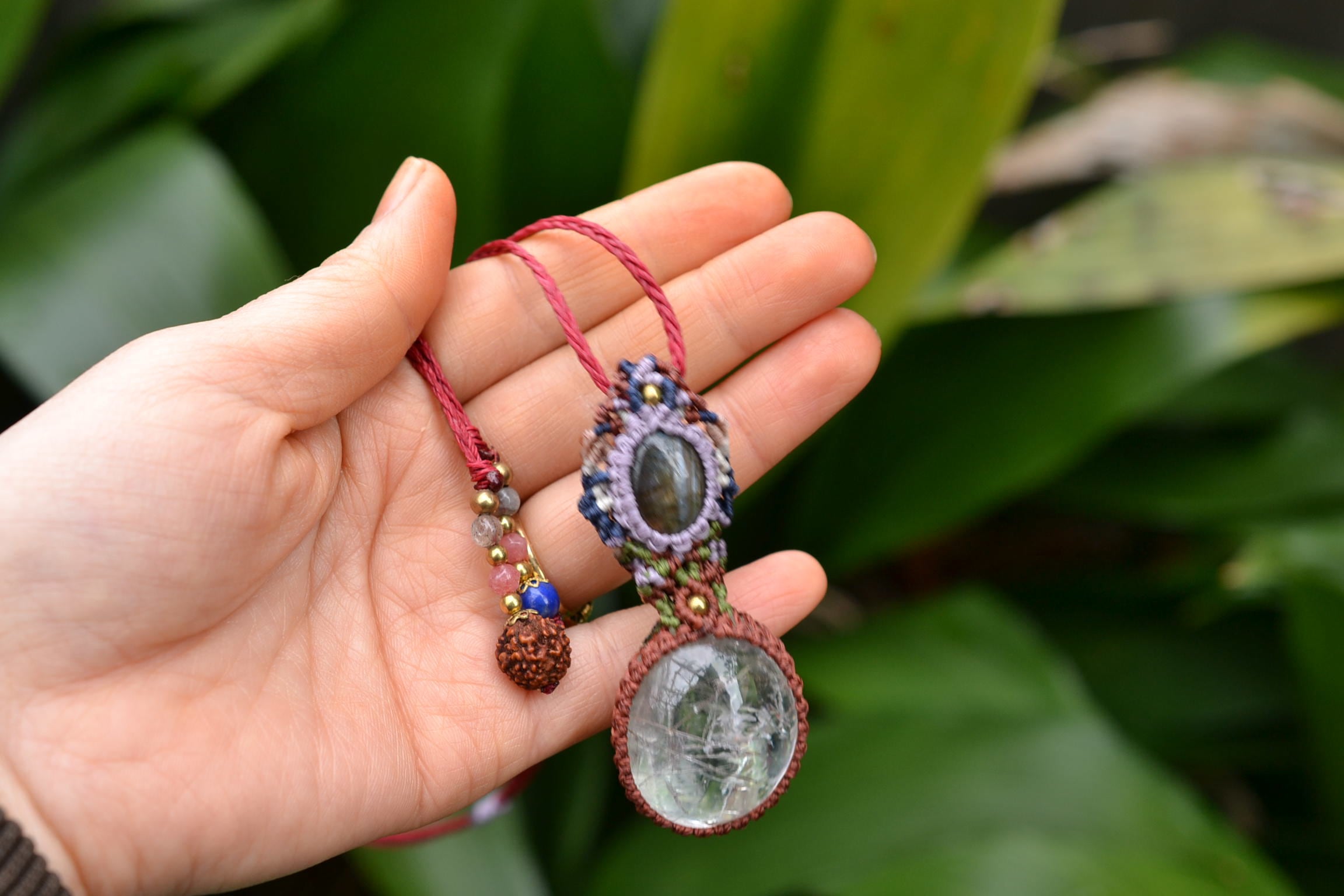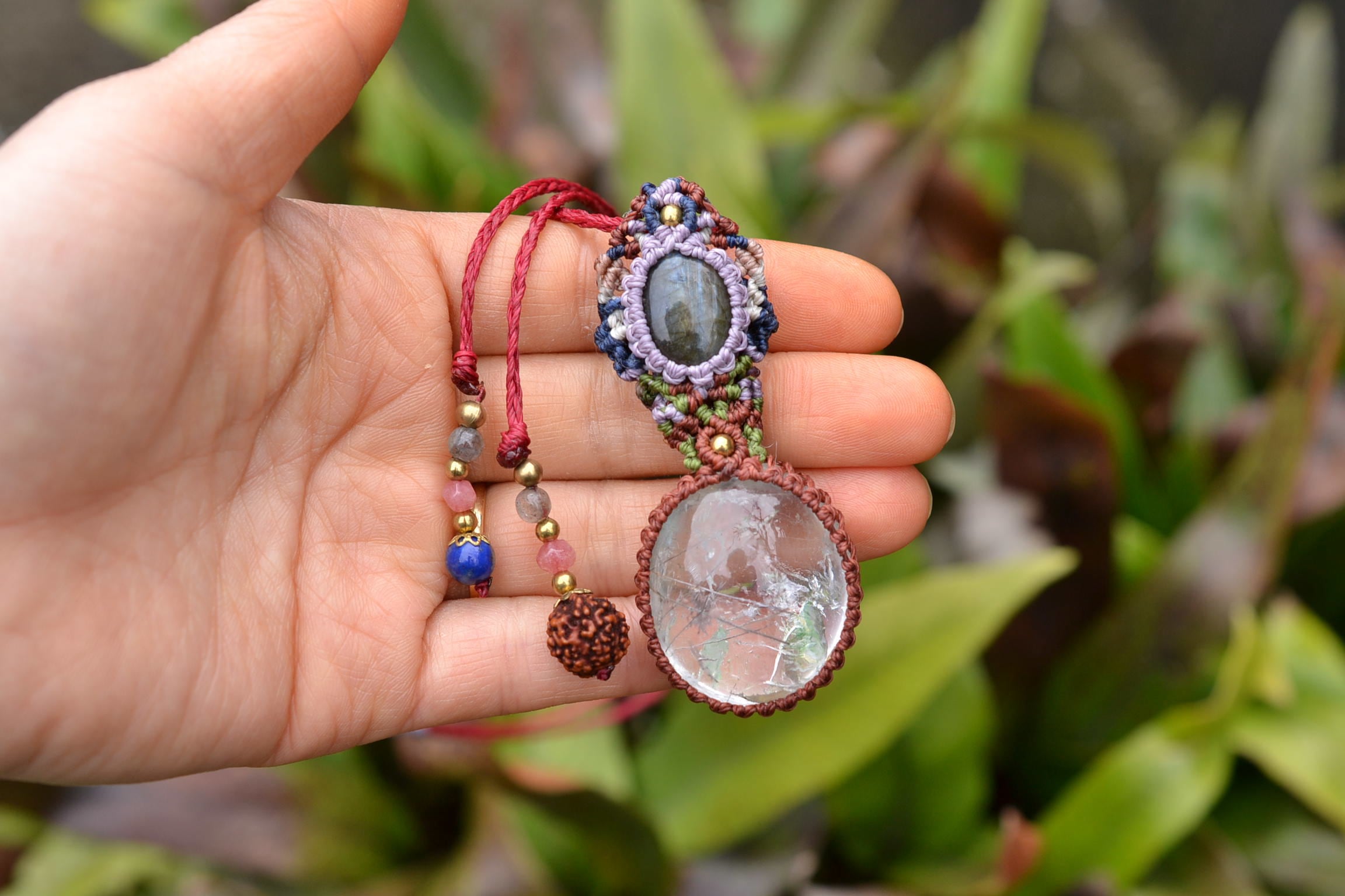 2つの奇跡★ 針水晶×レインボーラブラドライト マクラメペンダント