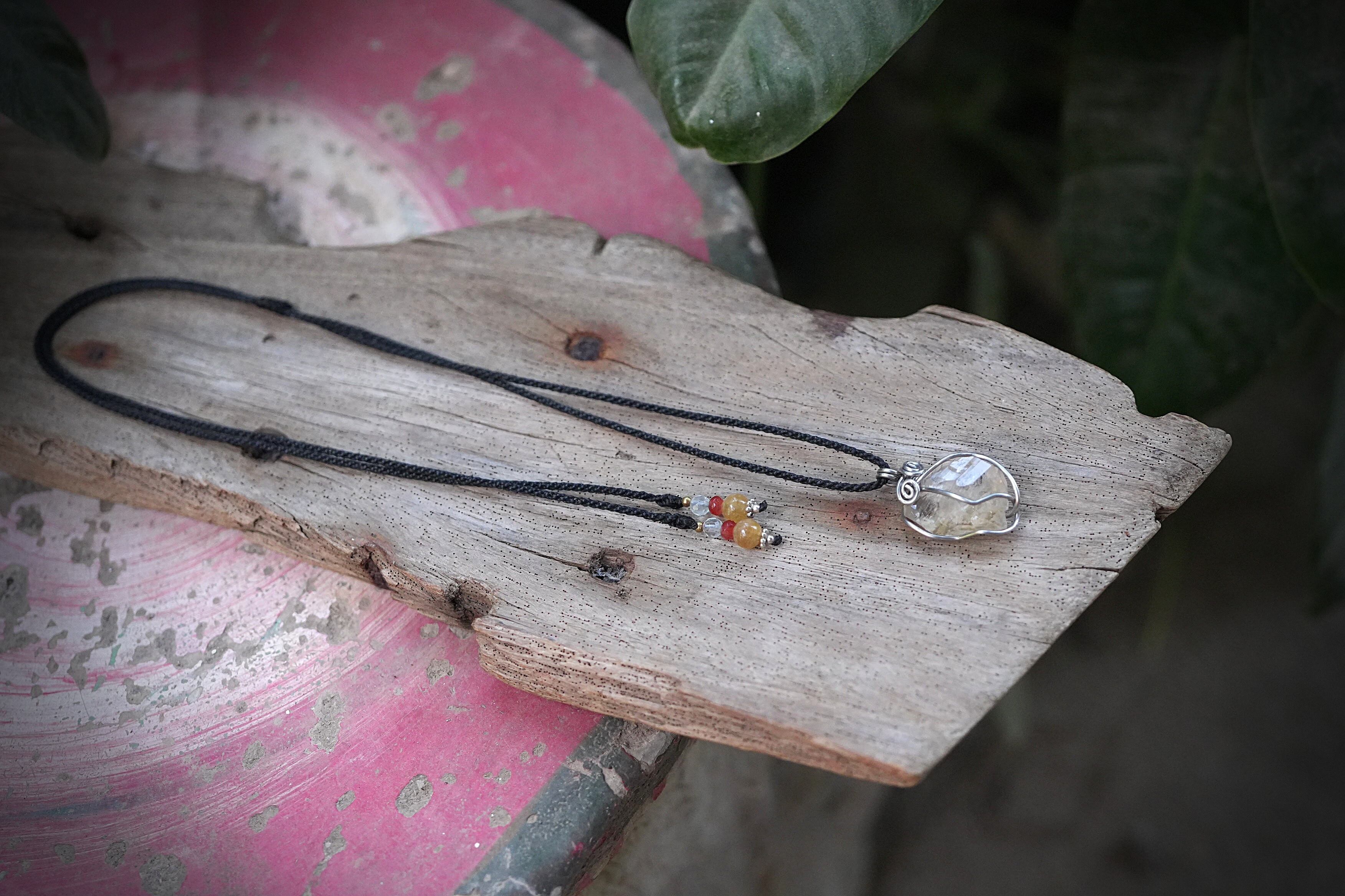 自然の原石の天然石の形をフォローしたワイヤーワークをお楽しみください。