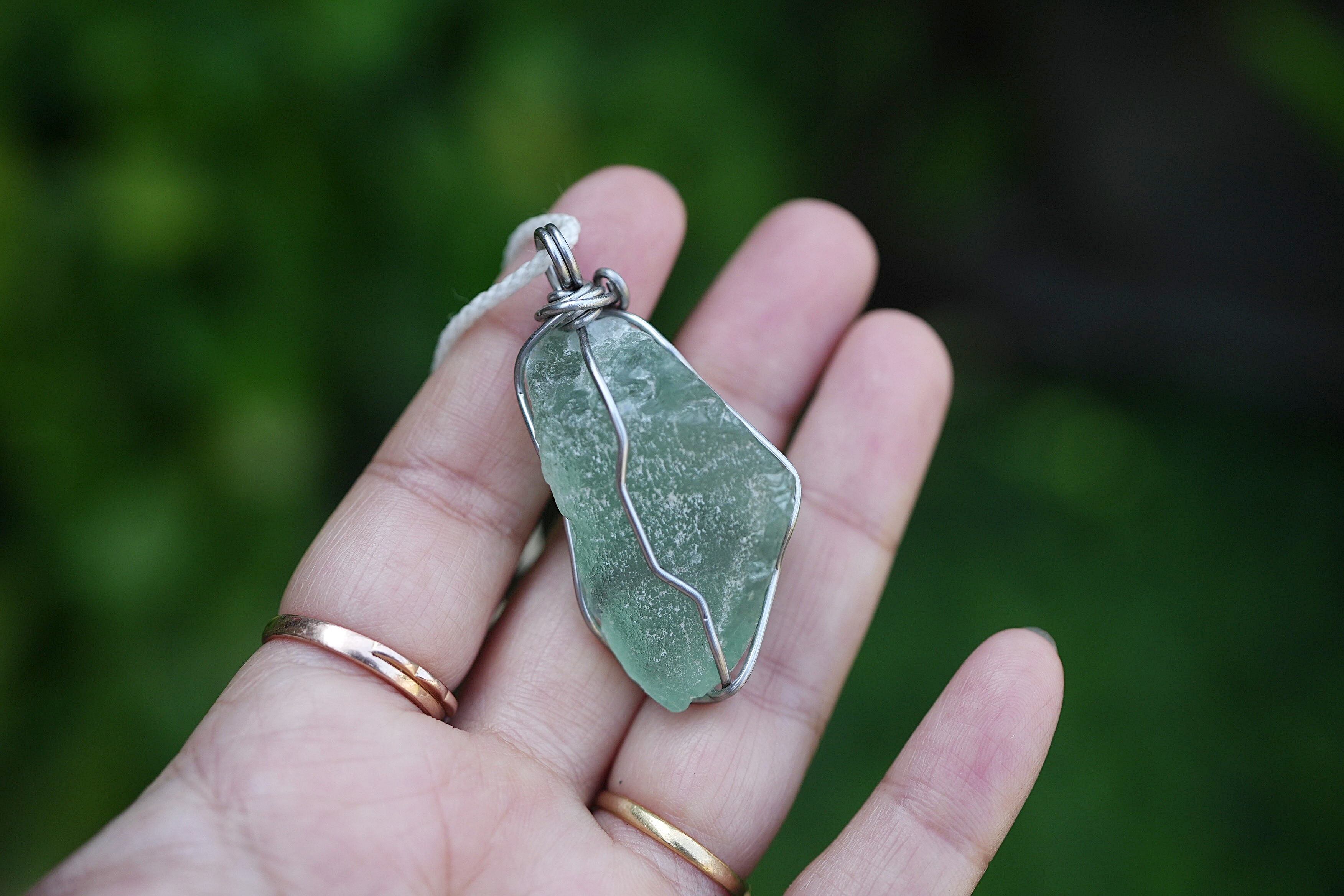 グリーンの静寂★フローライト原石 ワイヤーアートネックレス1989
