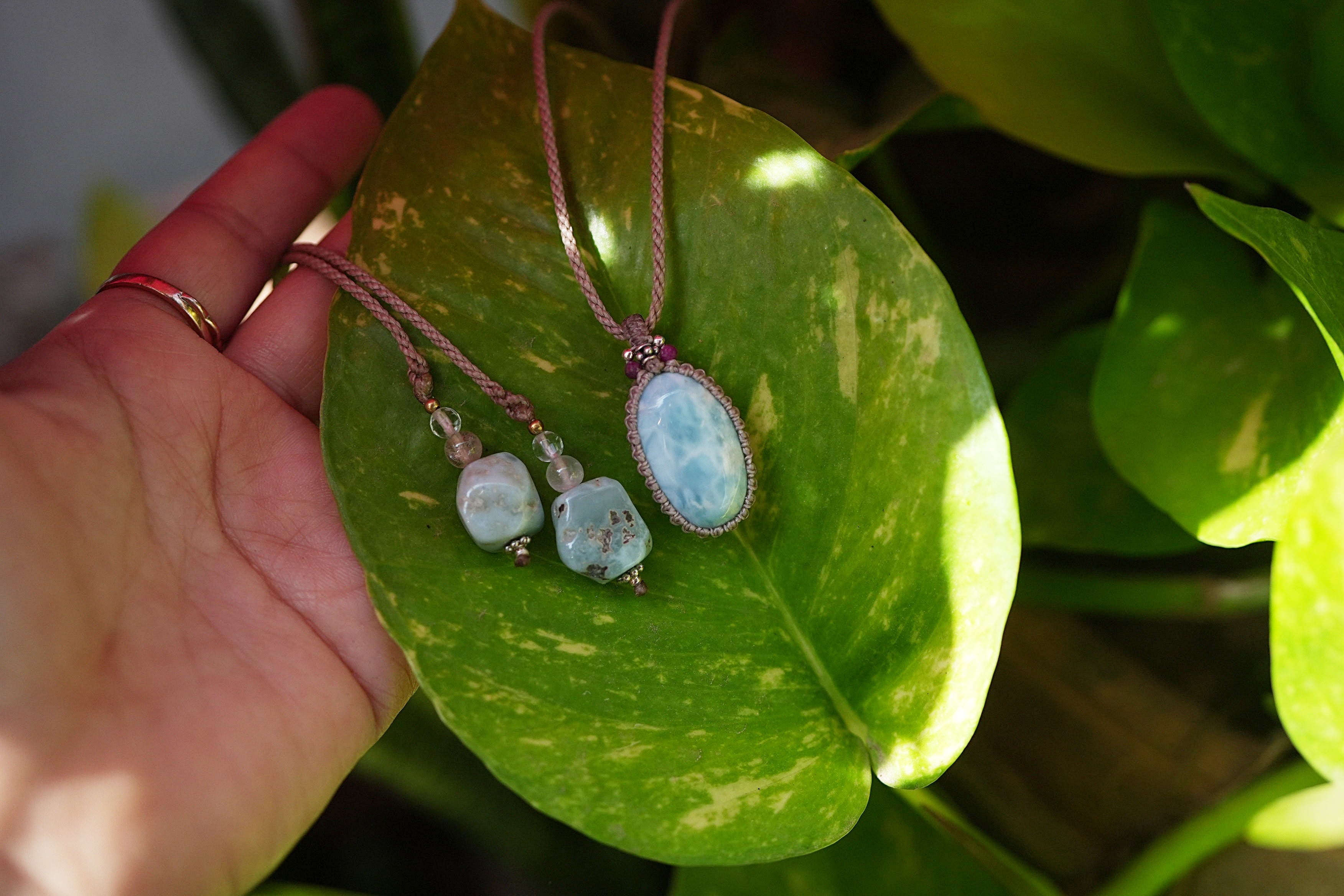厚みもあり、胸元にさらっとブルーのラリマー風を誘います。