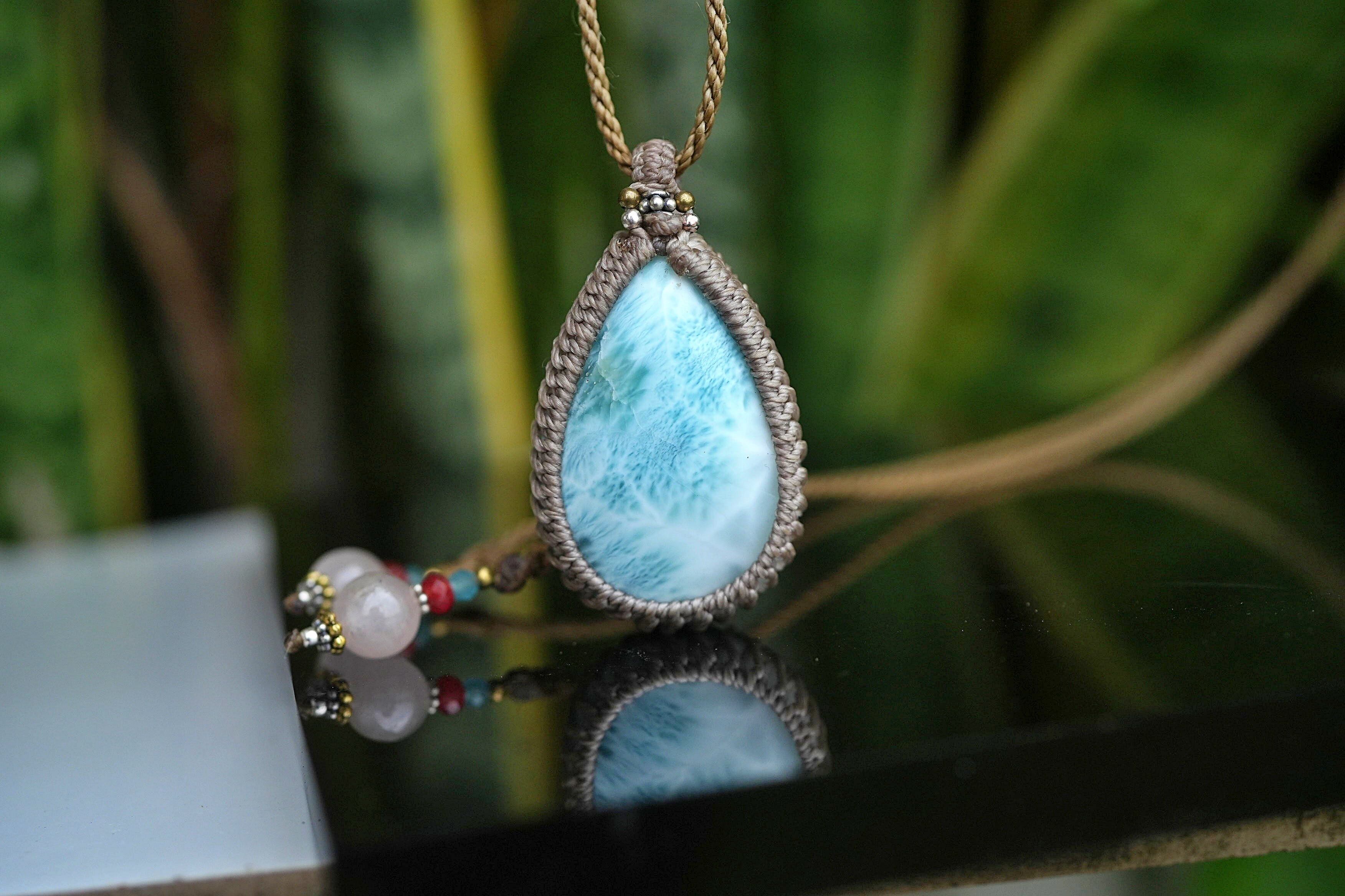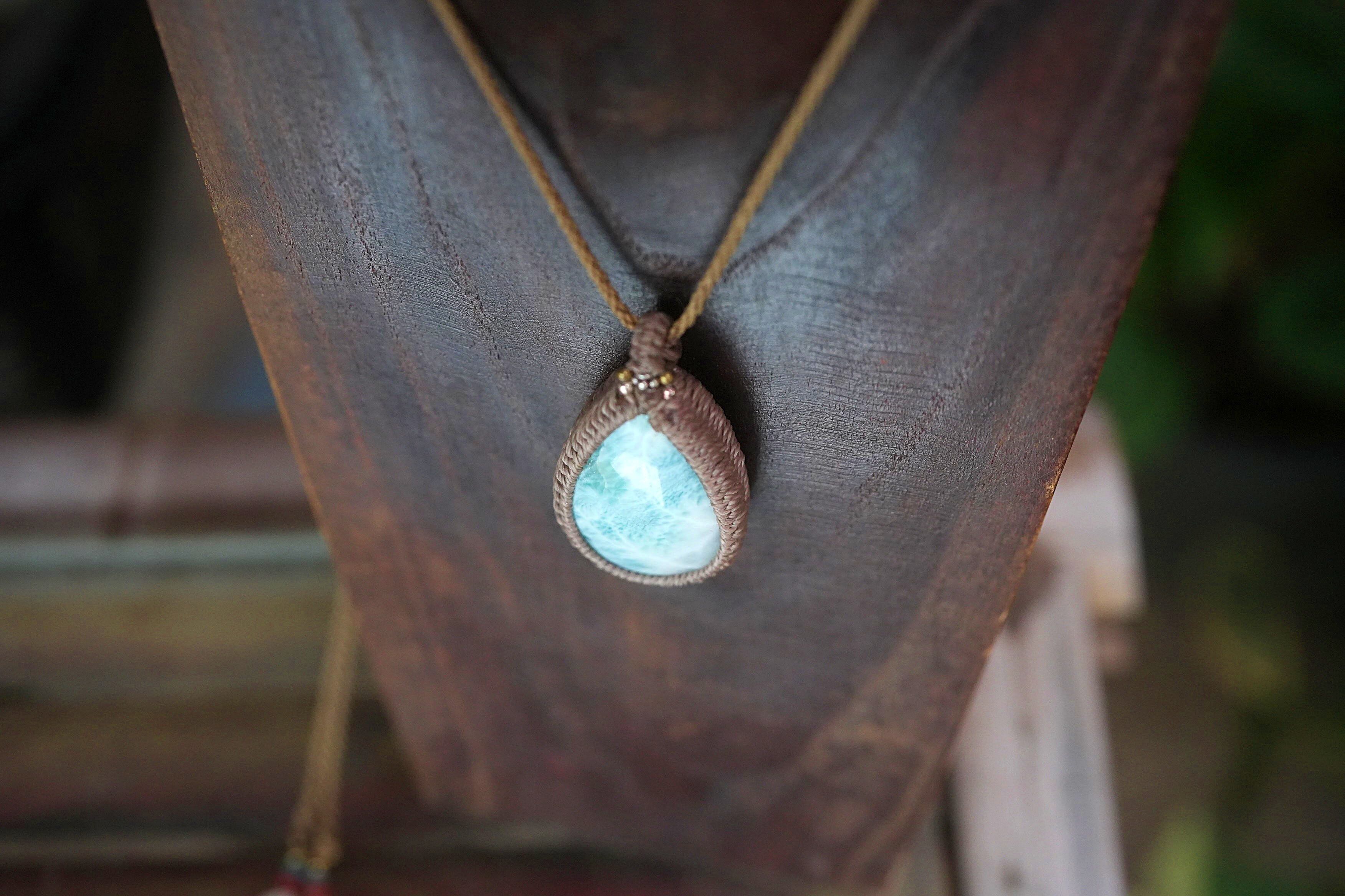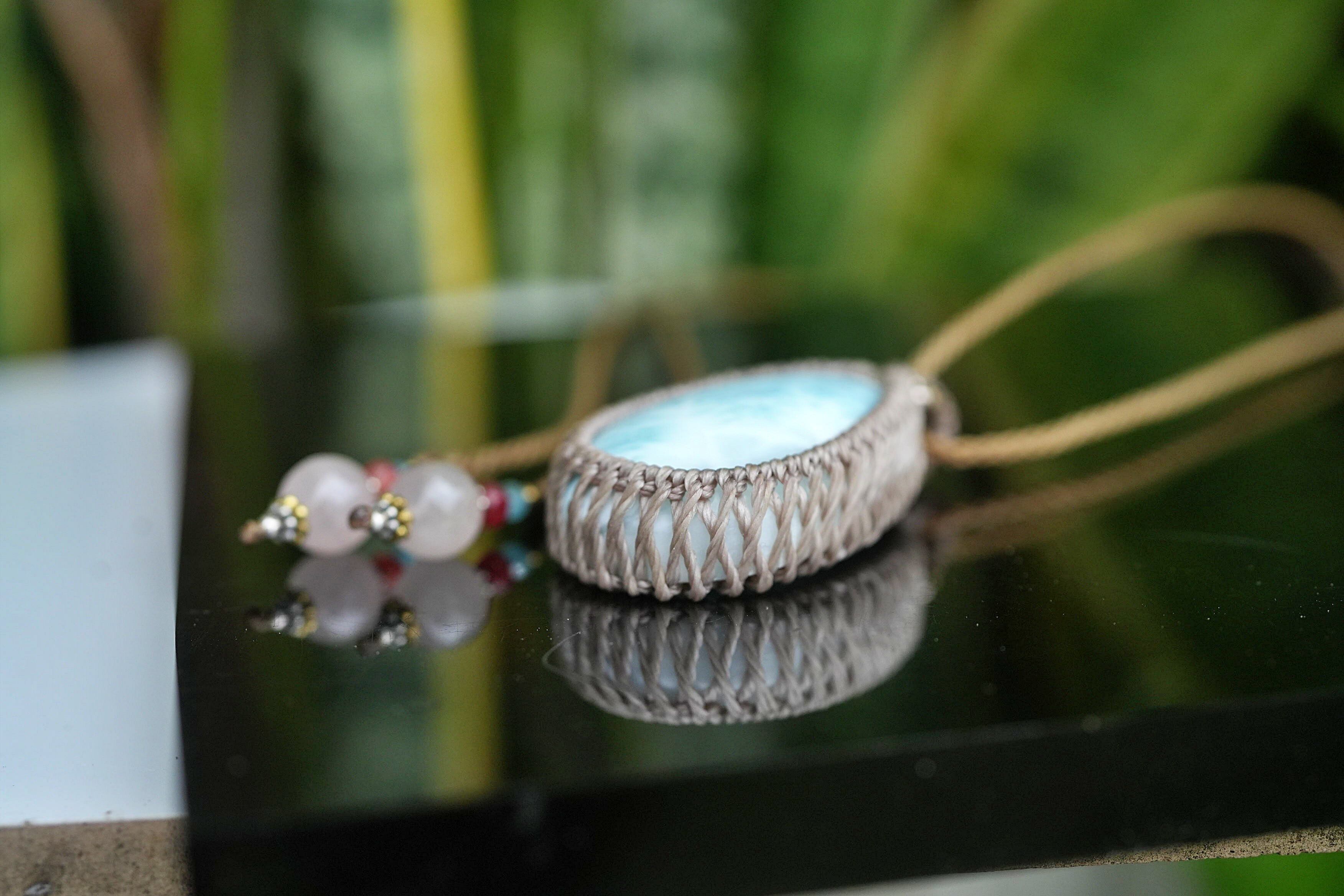 亀の波模様★大粒★ラリマー マクラメネックレス1994
