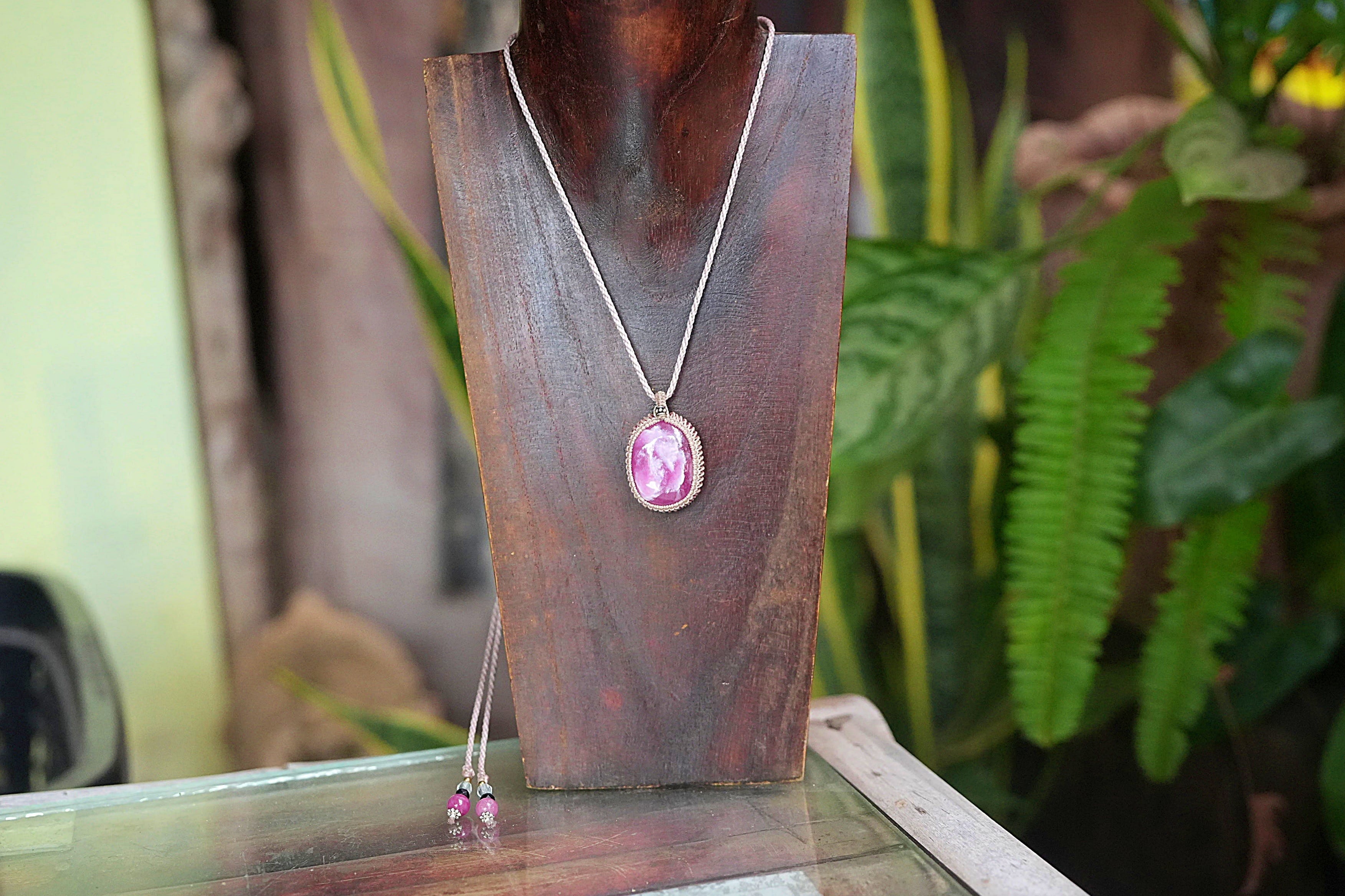 薔薇の花びら★中粒★ローズルビー マクラメネックレス1997