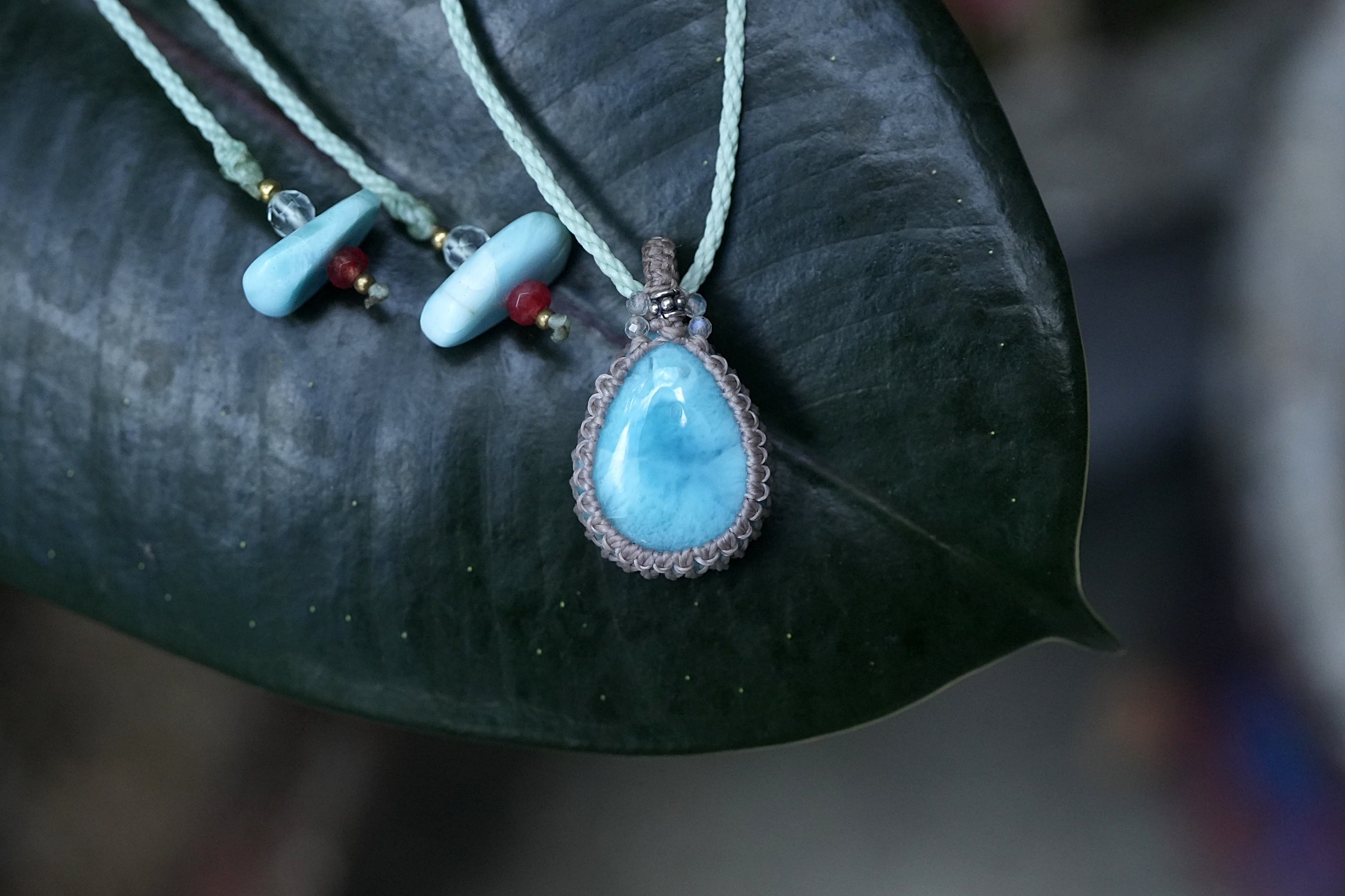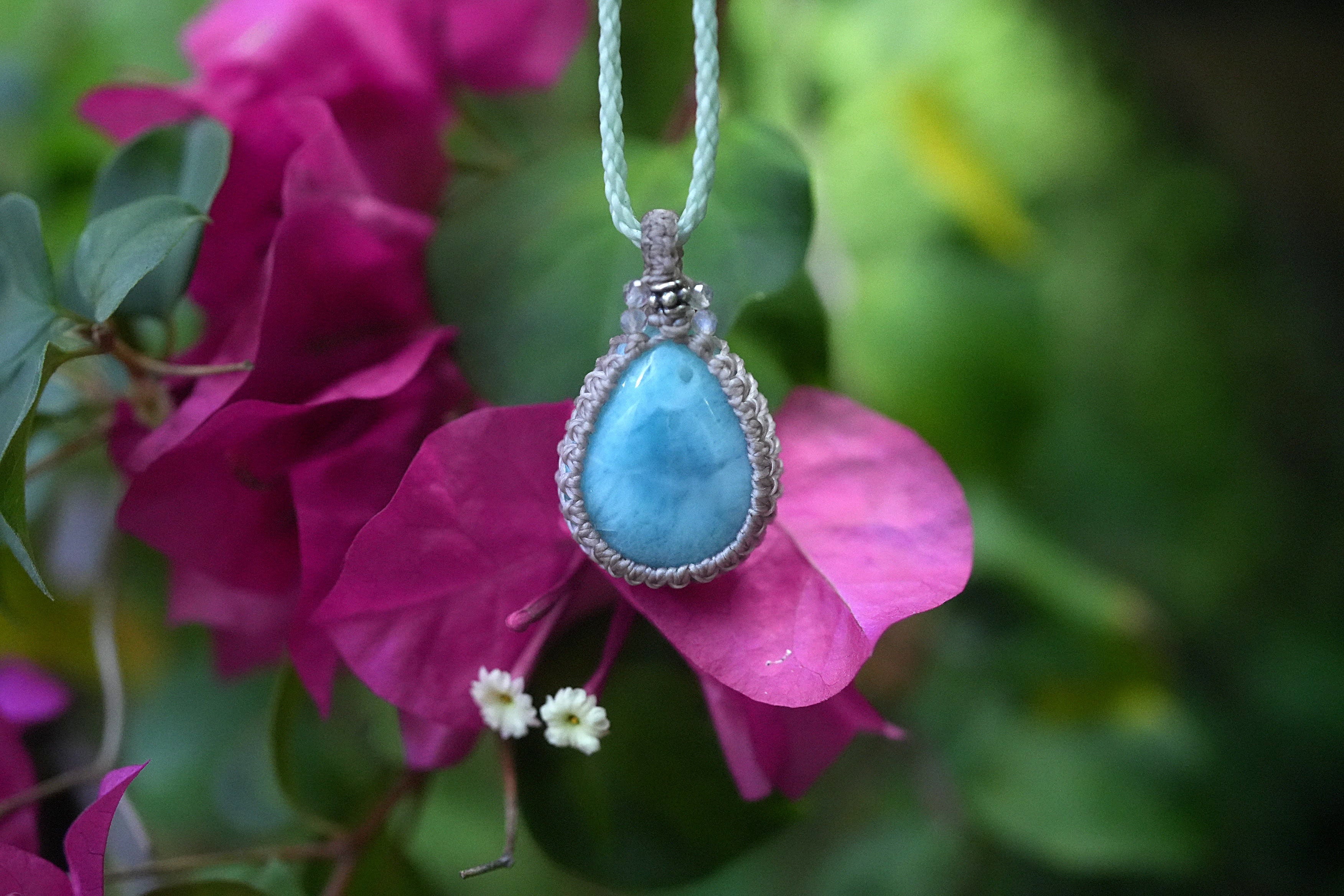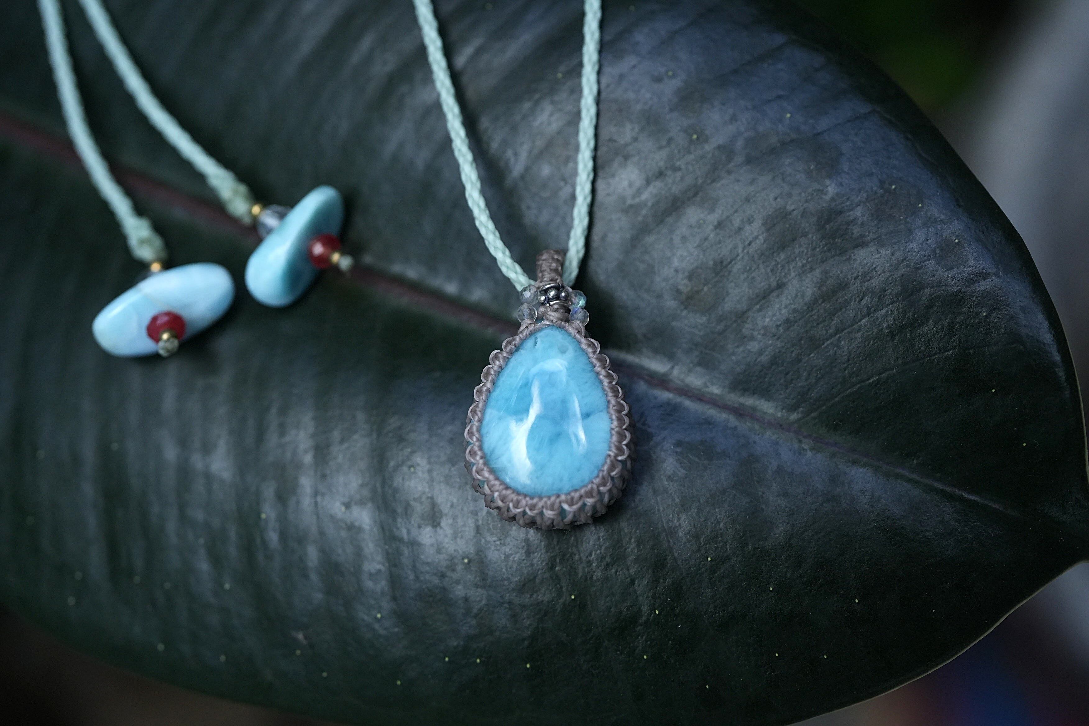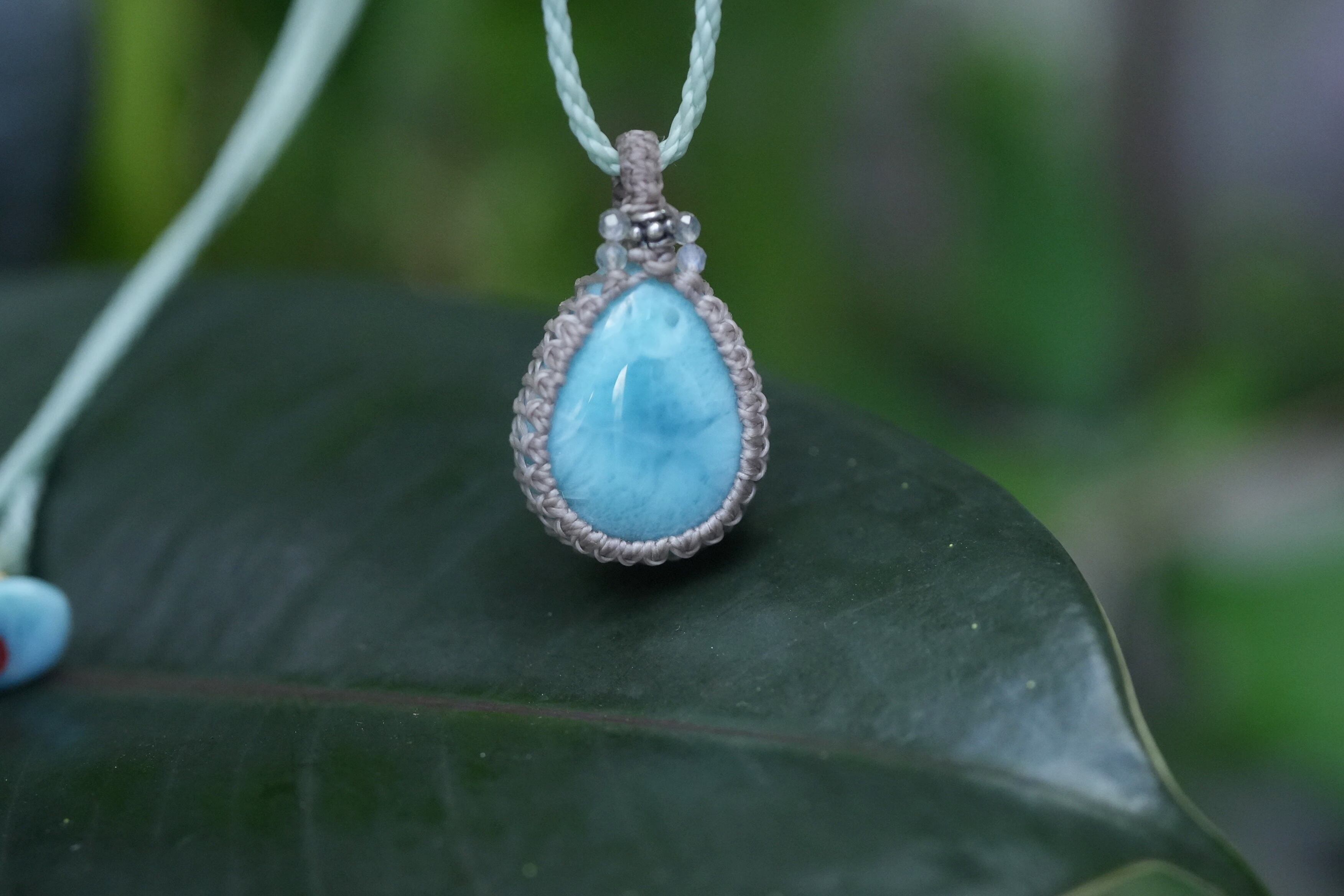 高品質ドロップ★ラリマー マクラメネックレス2006