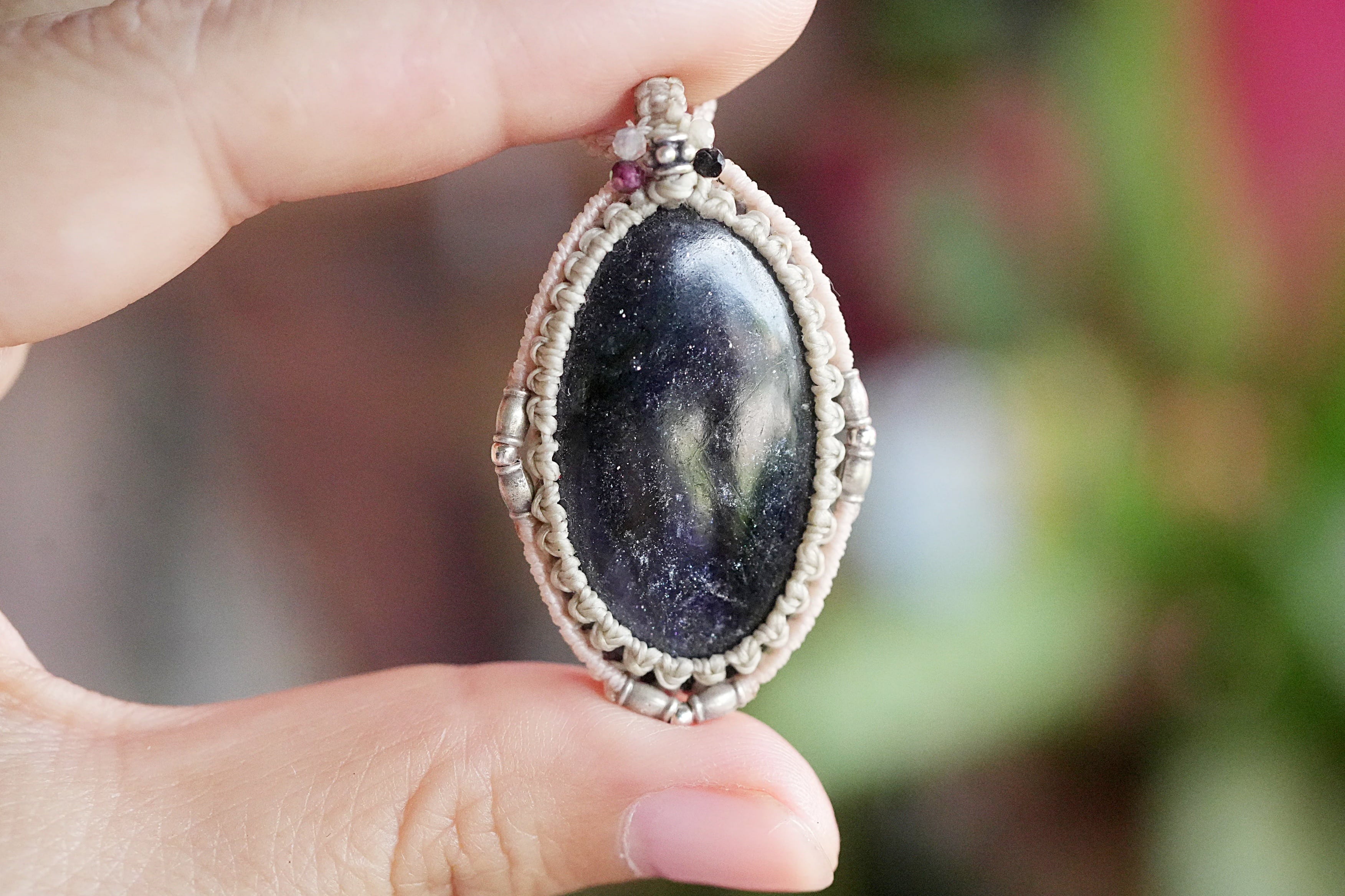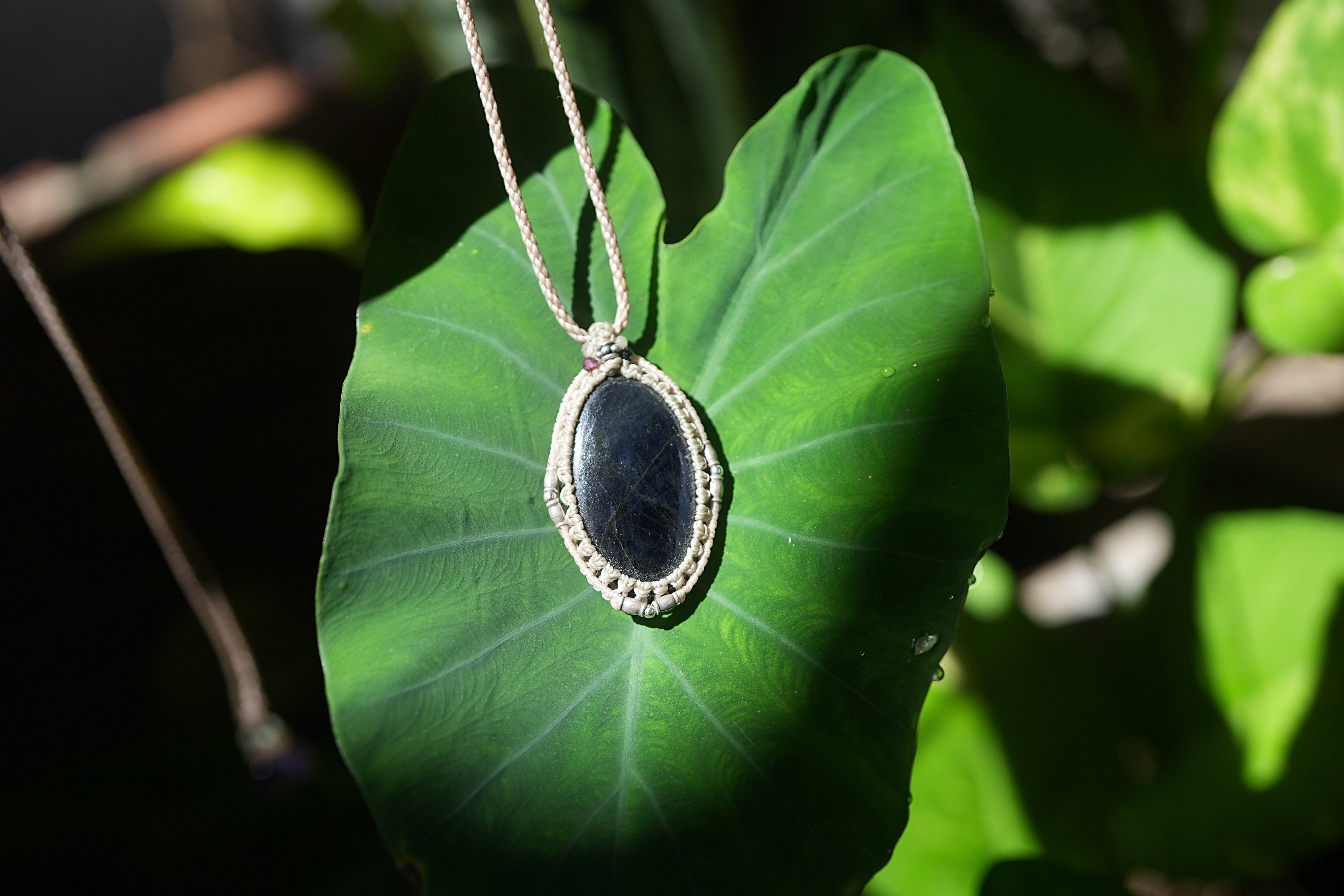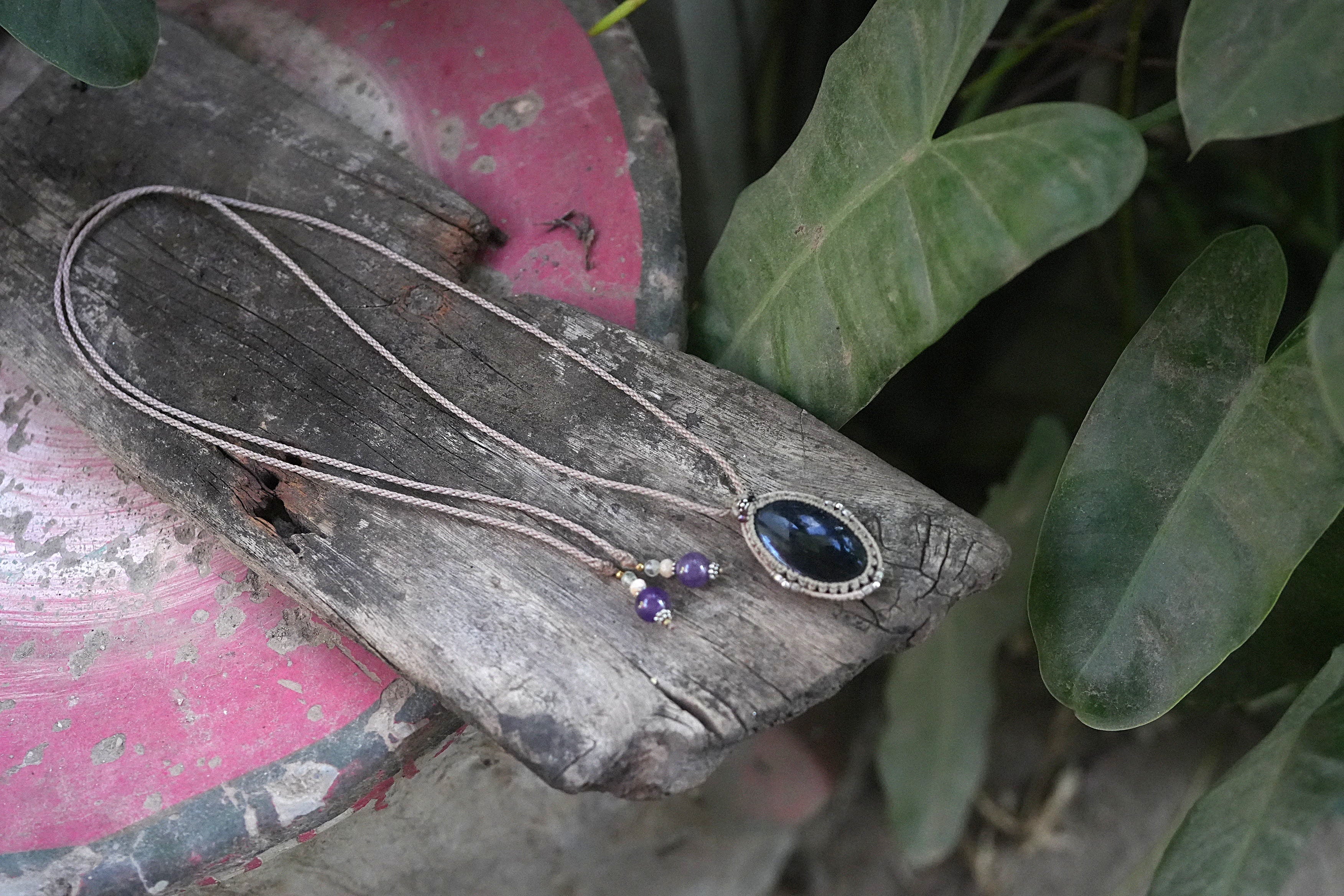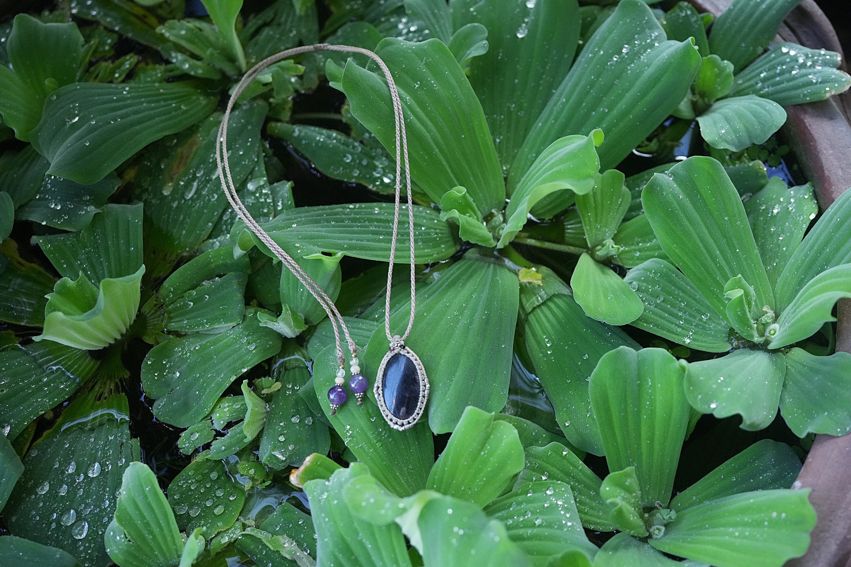 星屑の夜空★アイオライトサンストーン マクラメネックレス2013