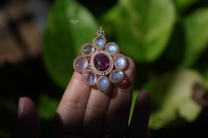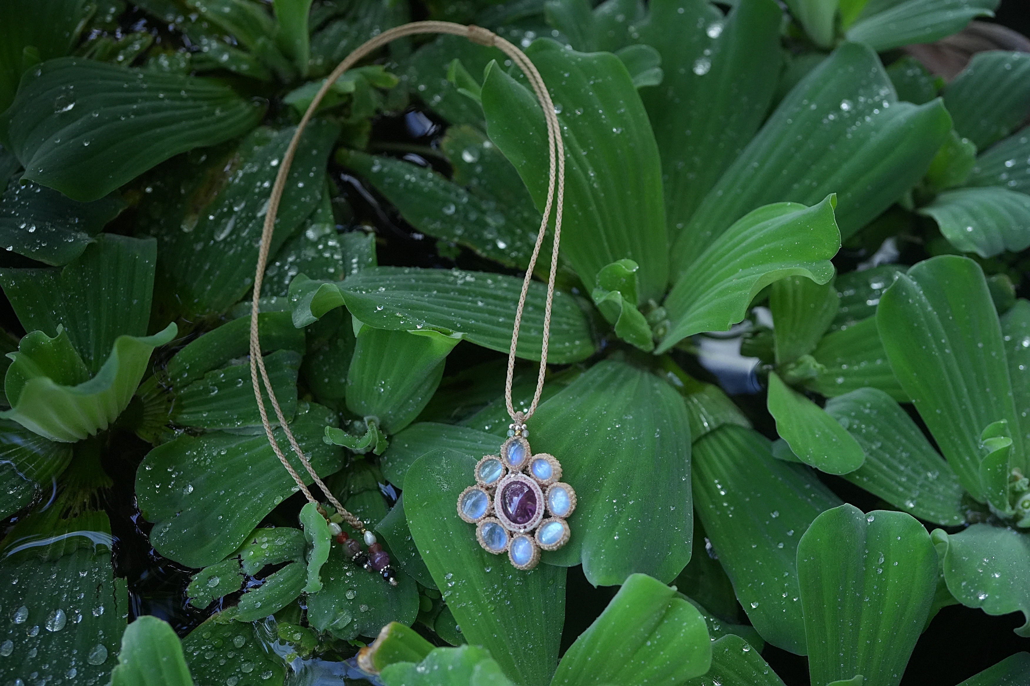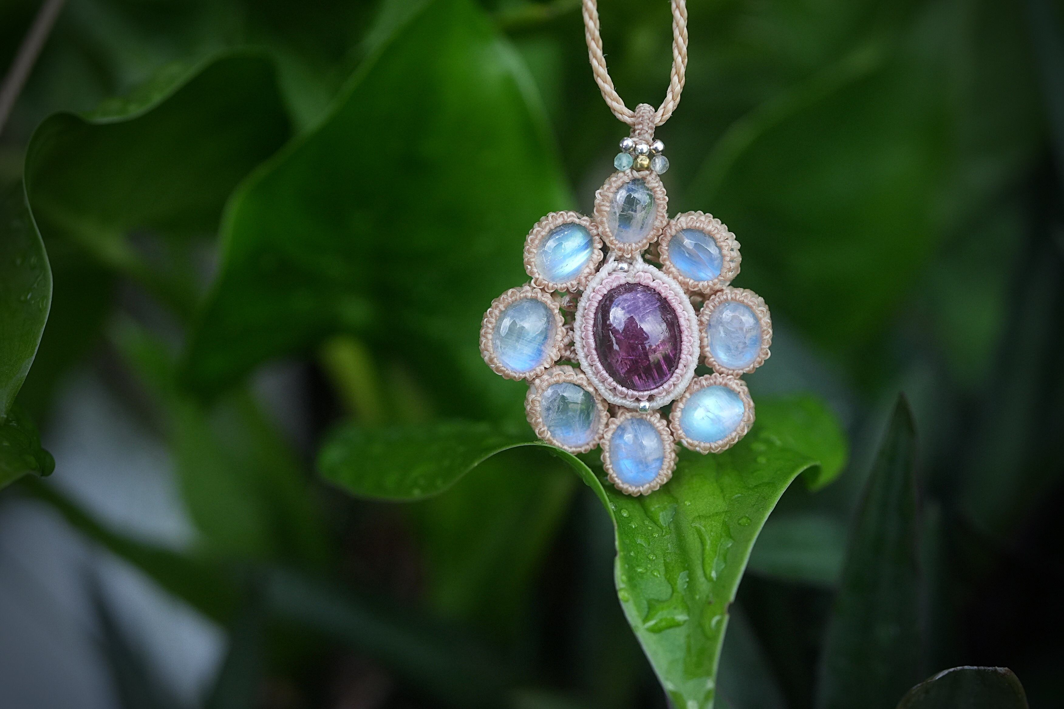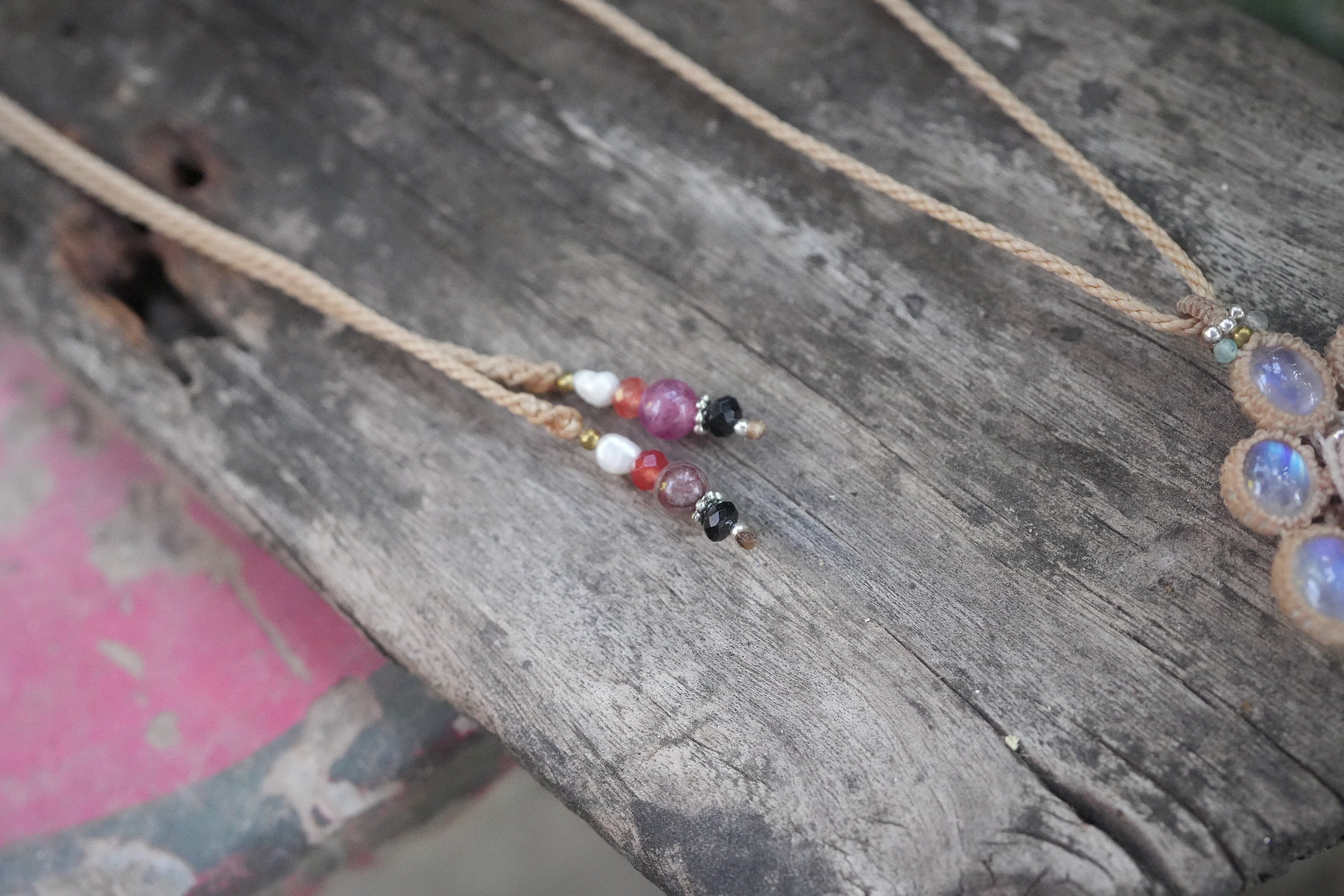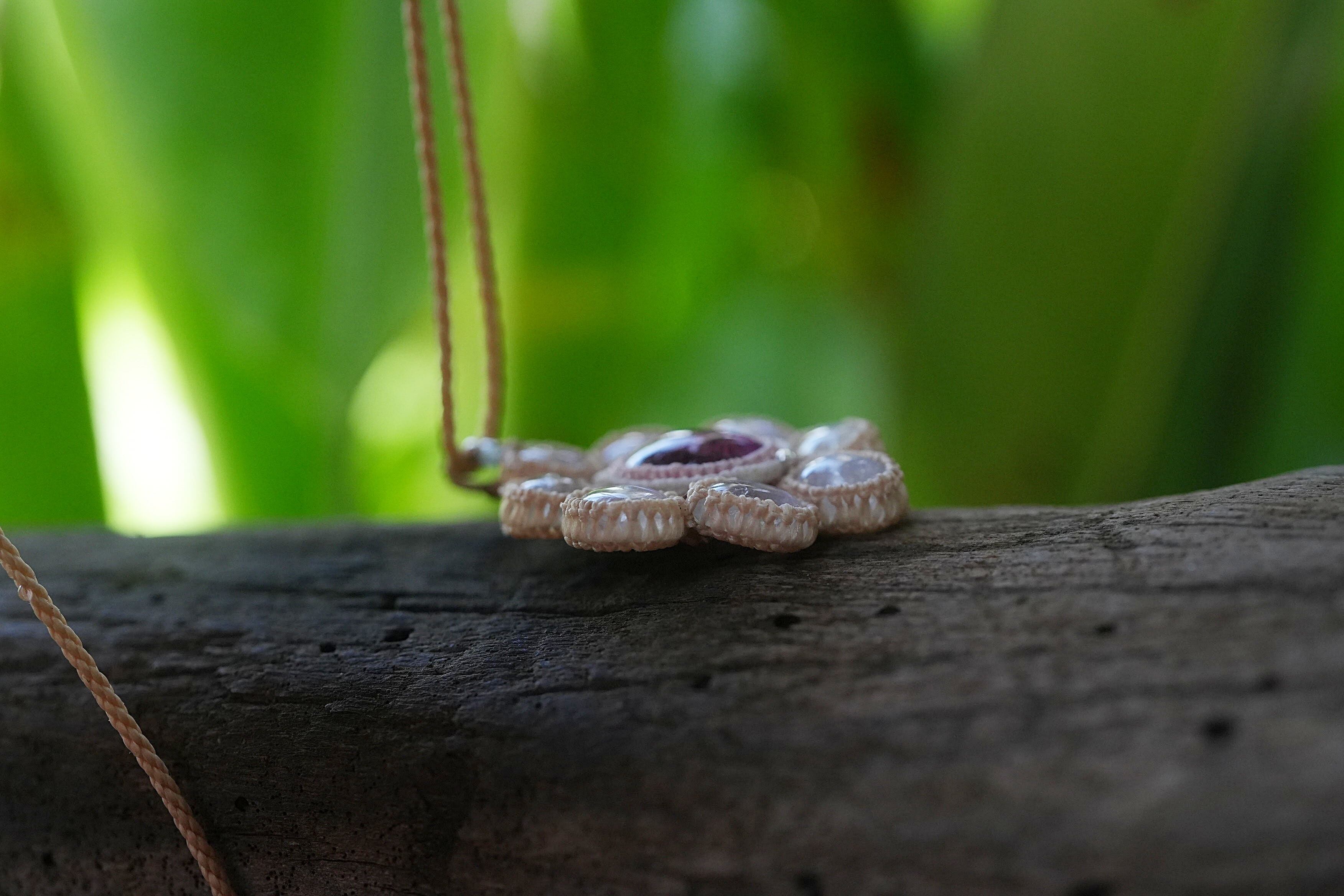 お花キャッツアイPink tourmaline★Moon stone マクラメネックレス2016