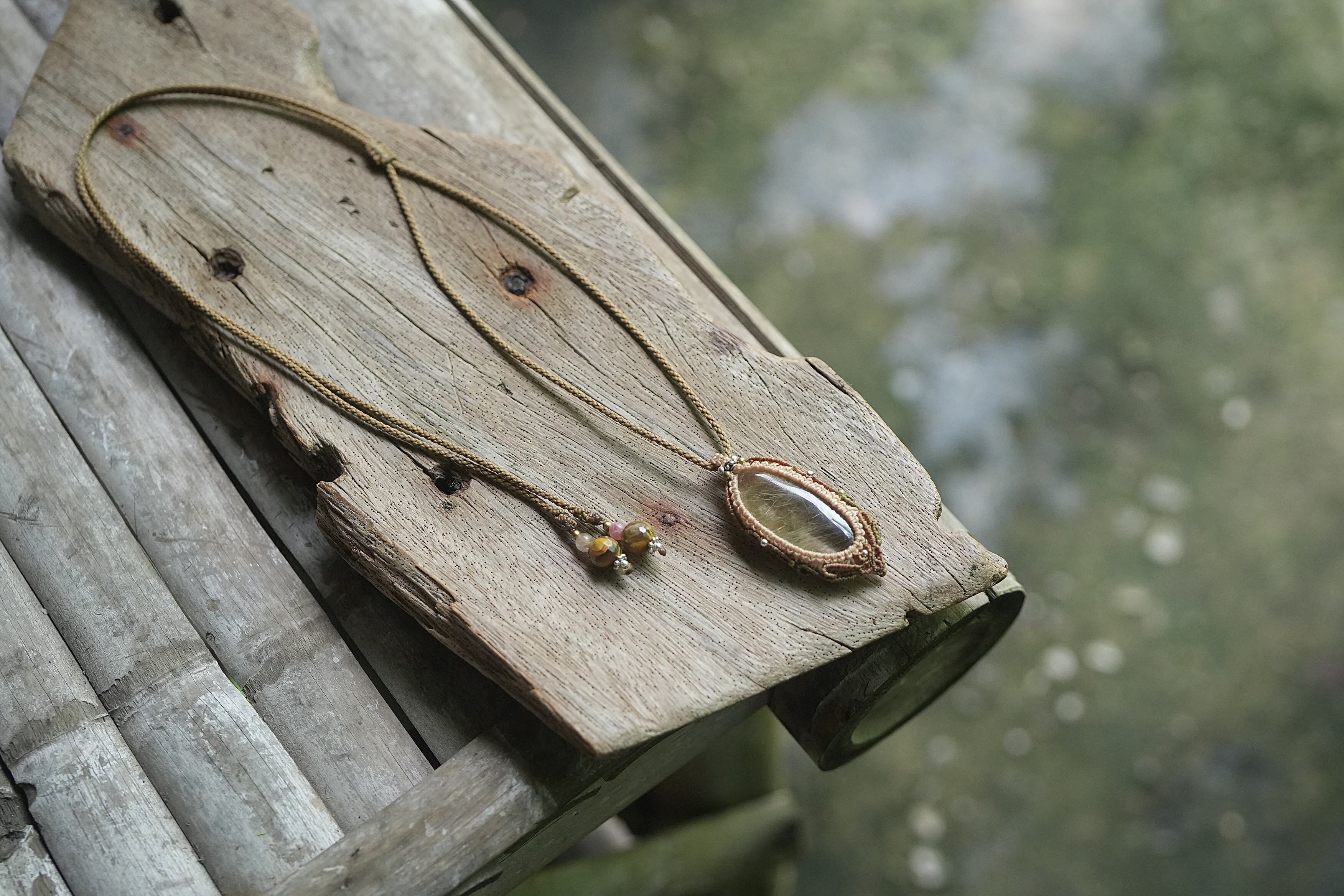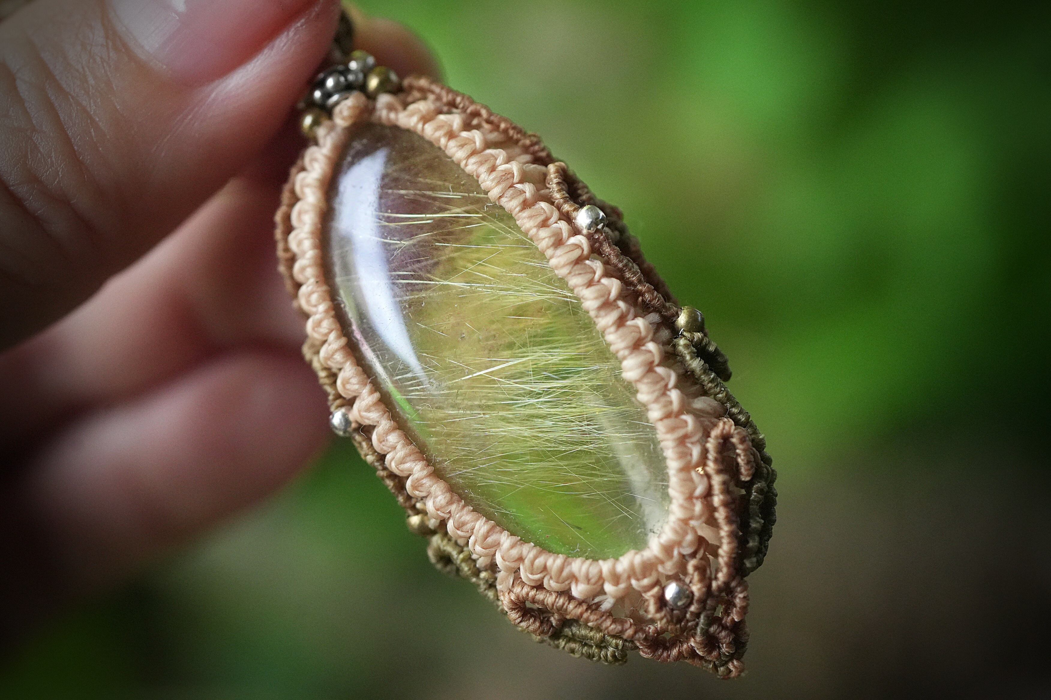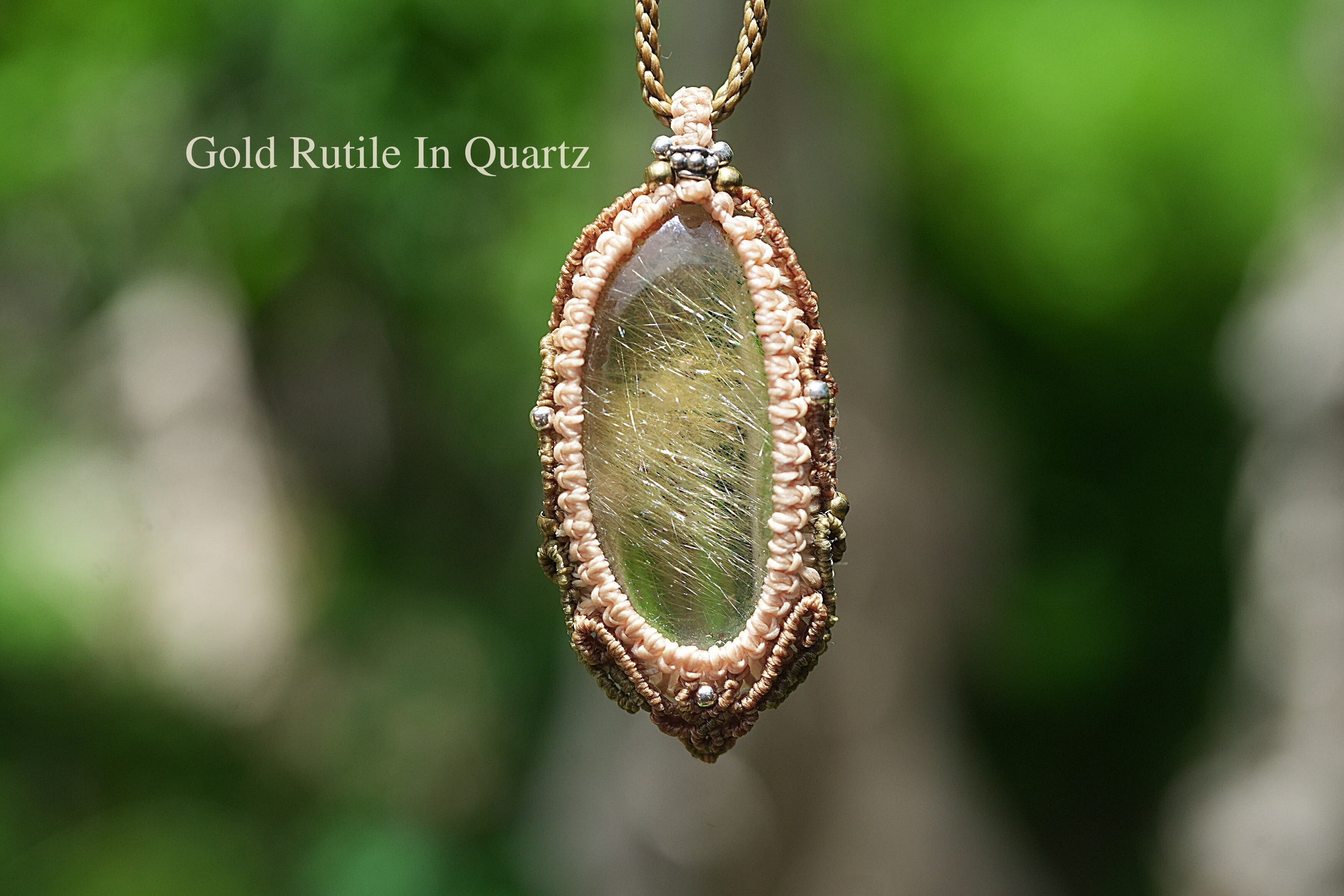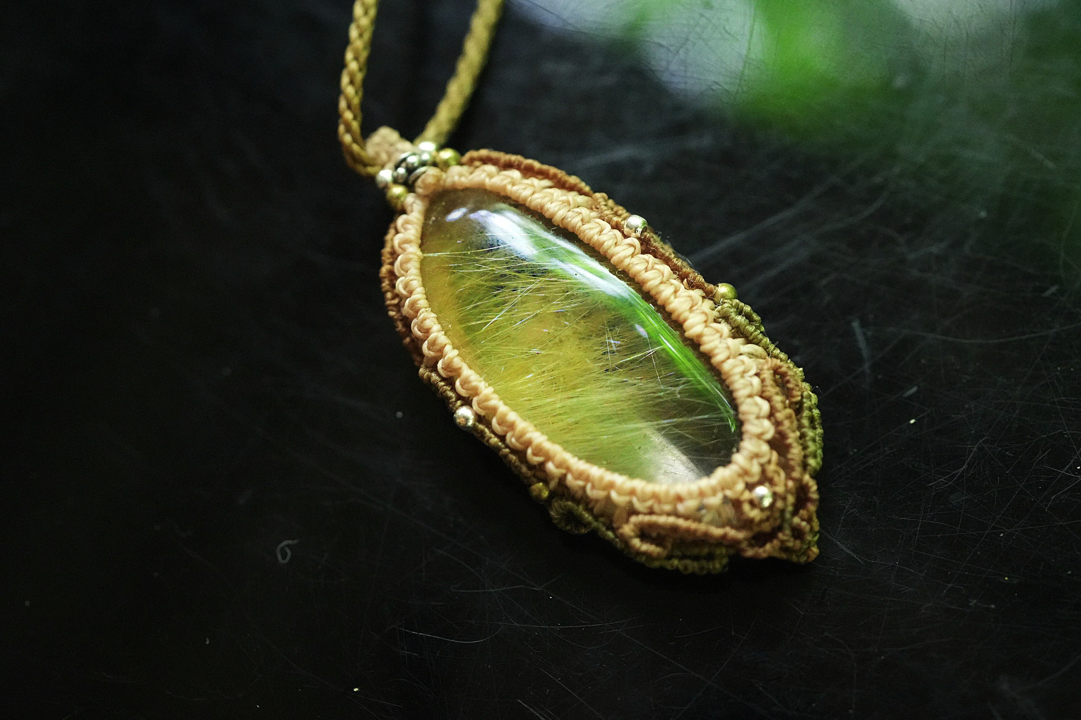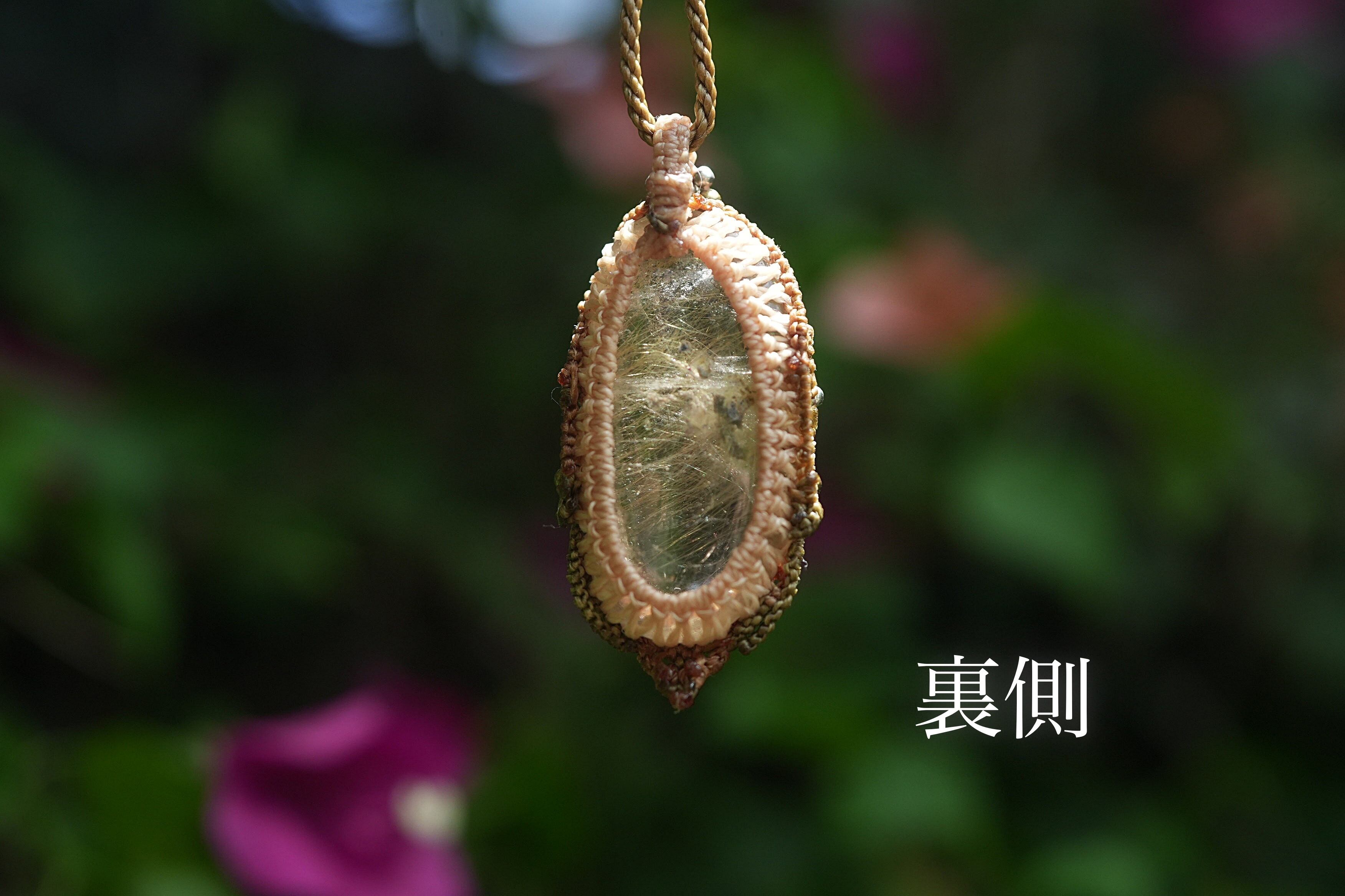 ふわふわアンフィボール★ゴールドルチルクォーツ マクラメネックレス2023