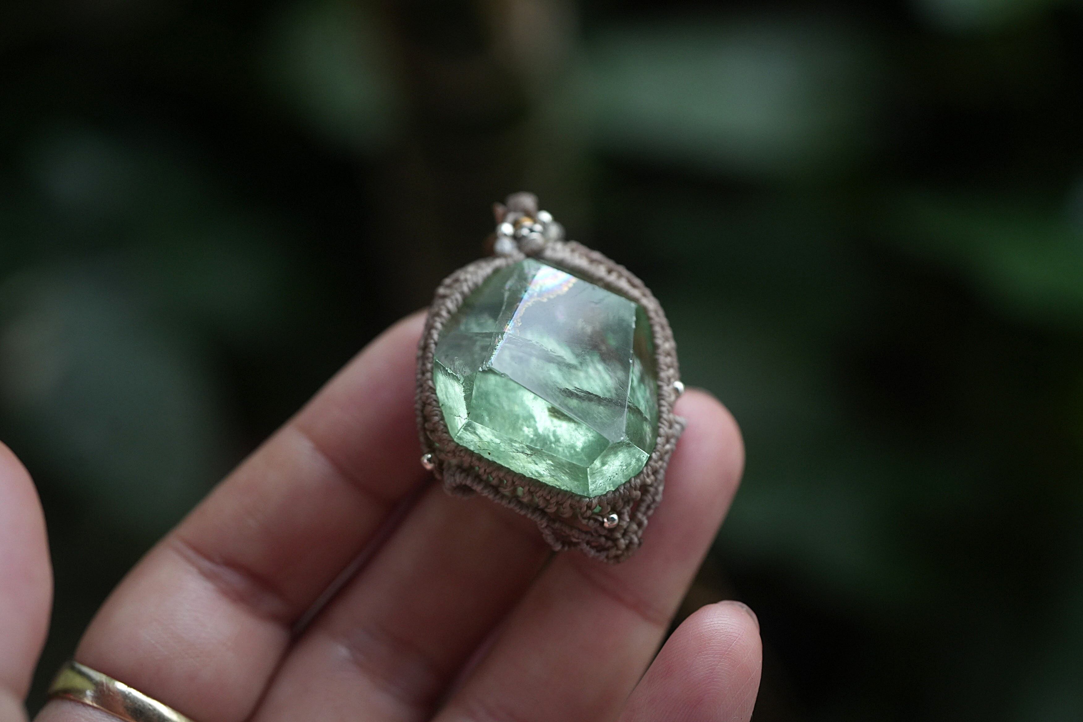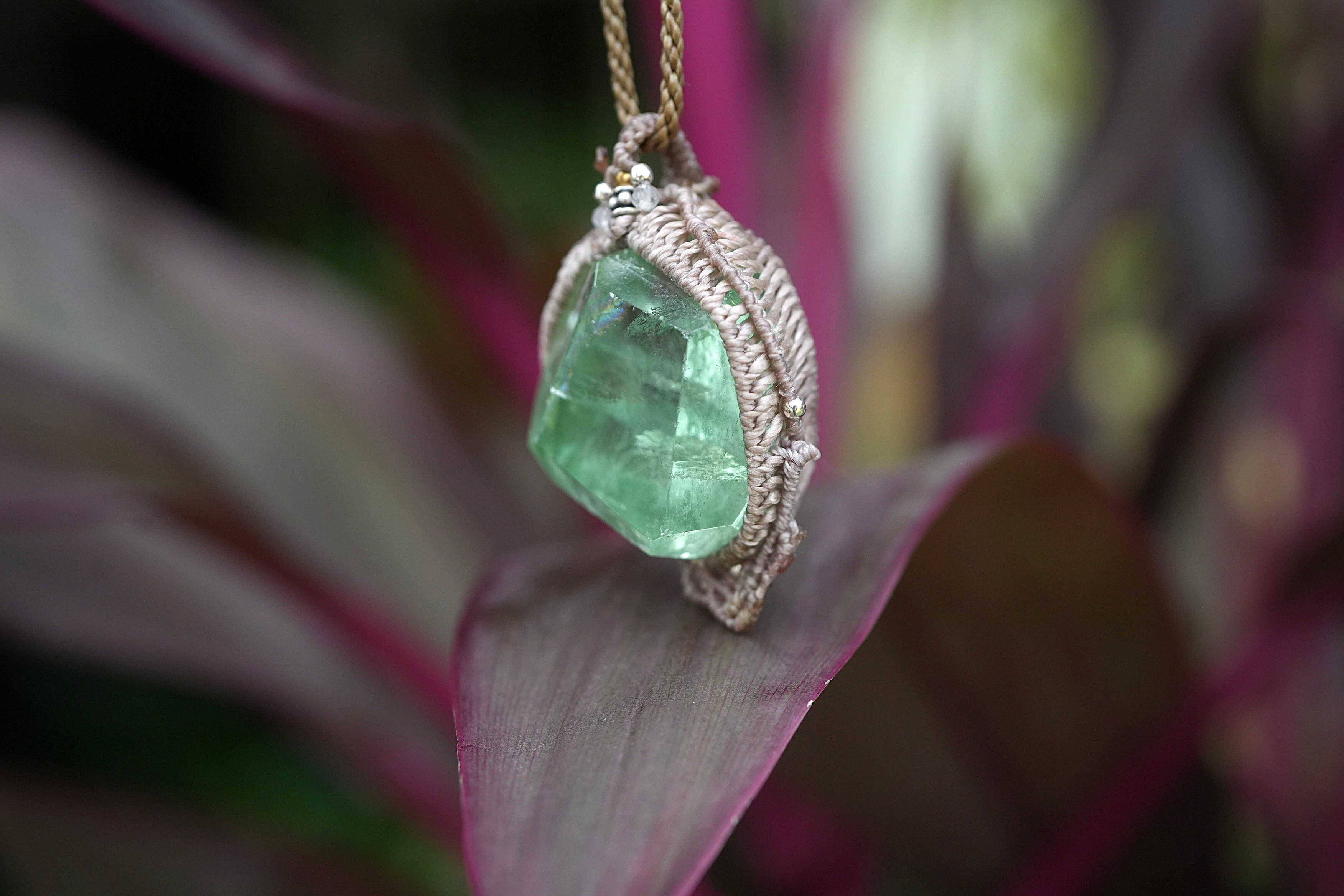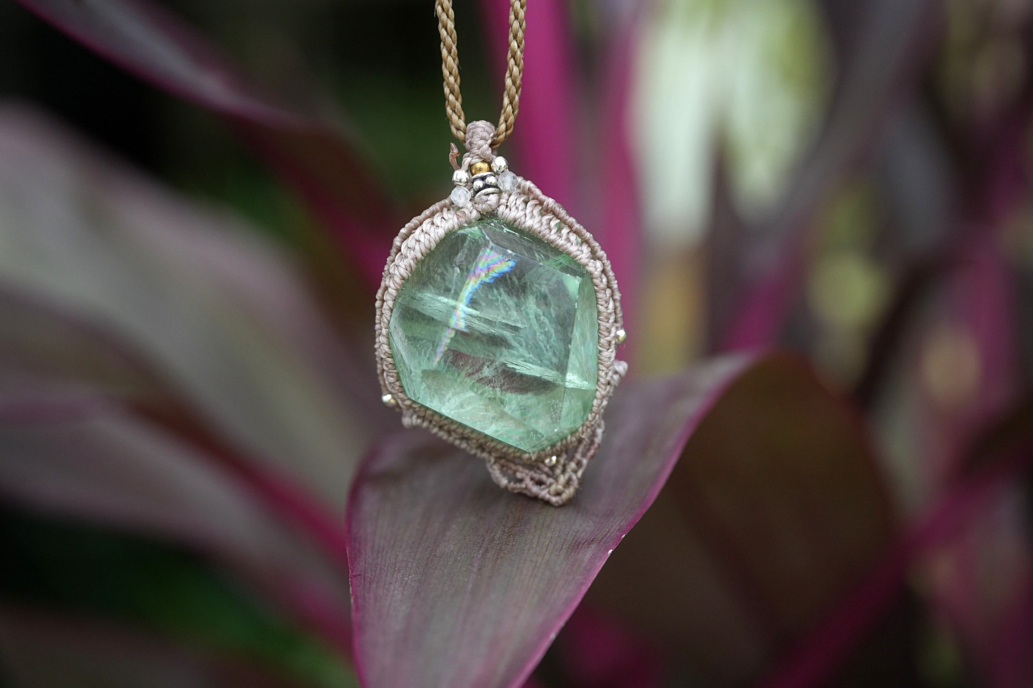 エメラルドグリーン虹原石★フローライト マクラメネックレス2029
