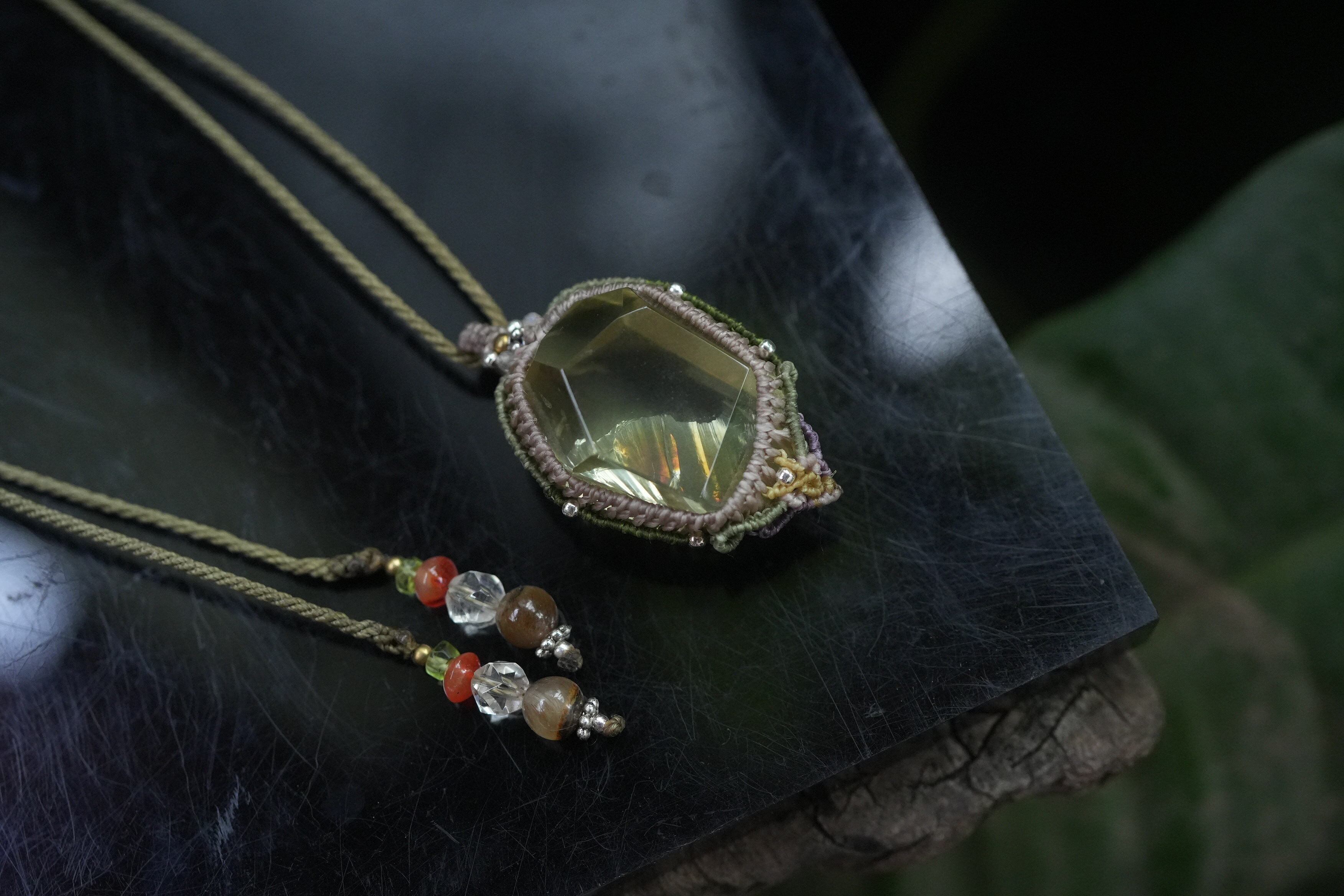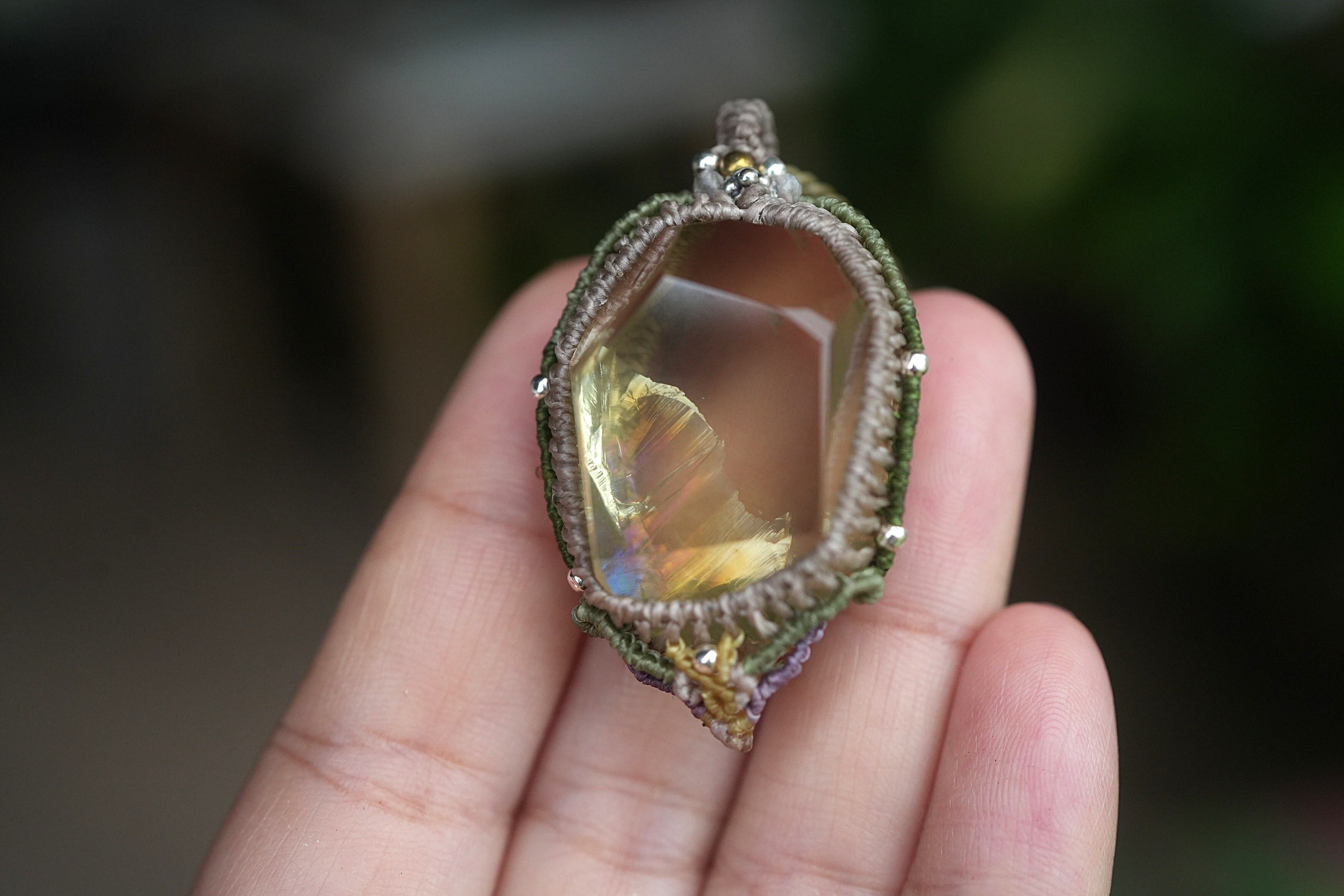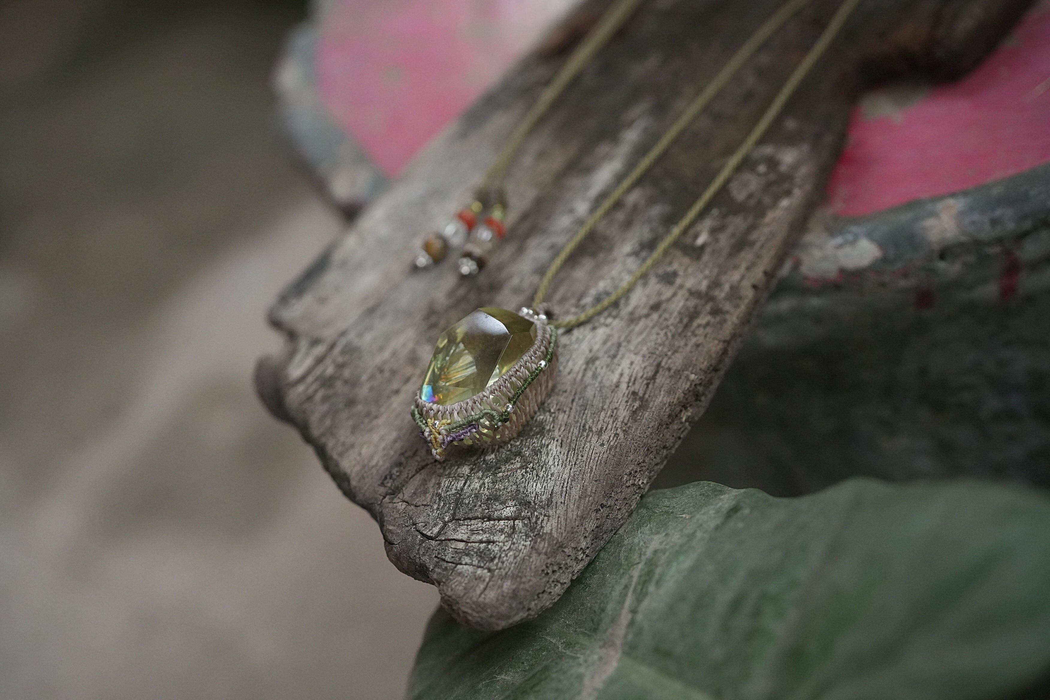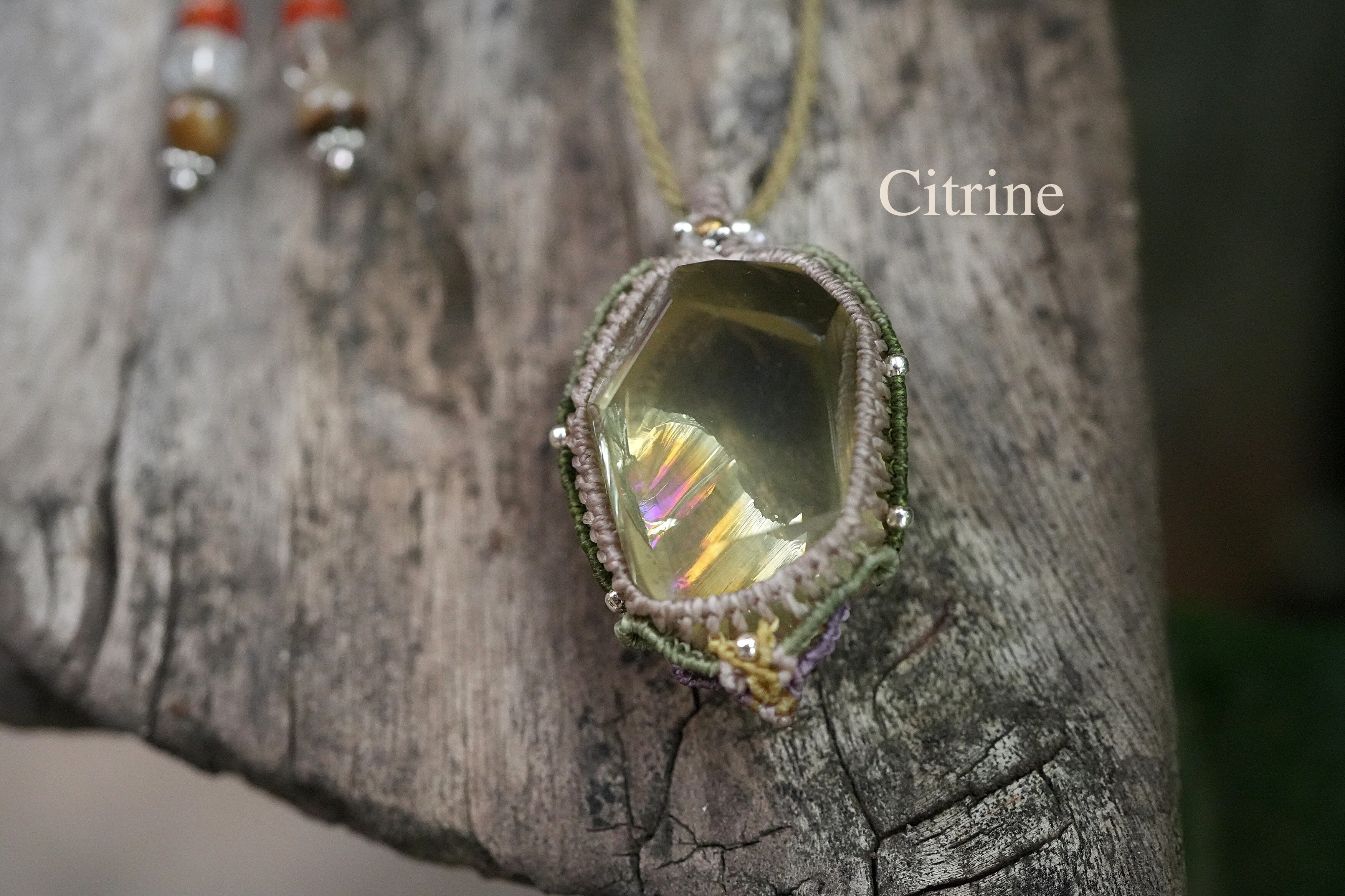虹グラデーション★アイリスシトリン原石 マクラメネックレス 2030