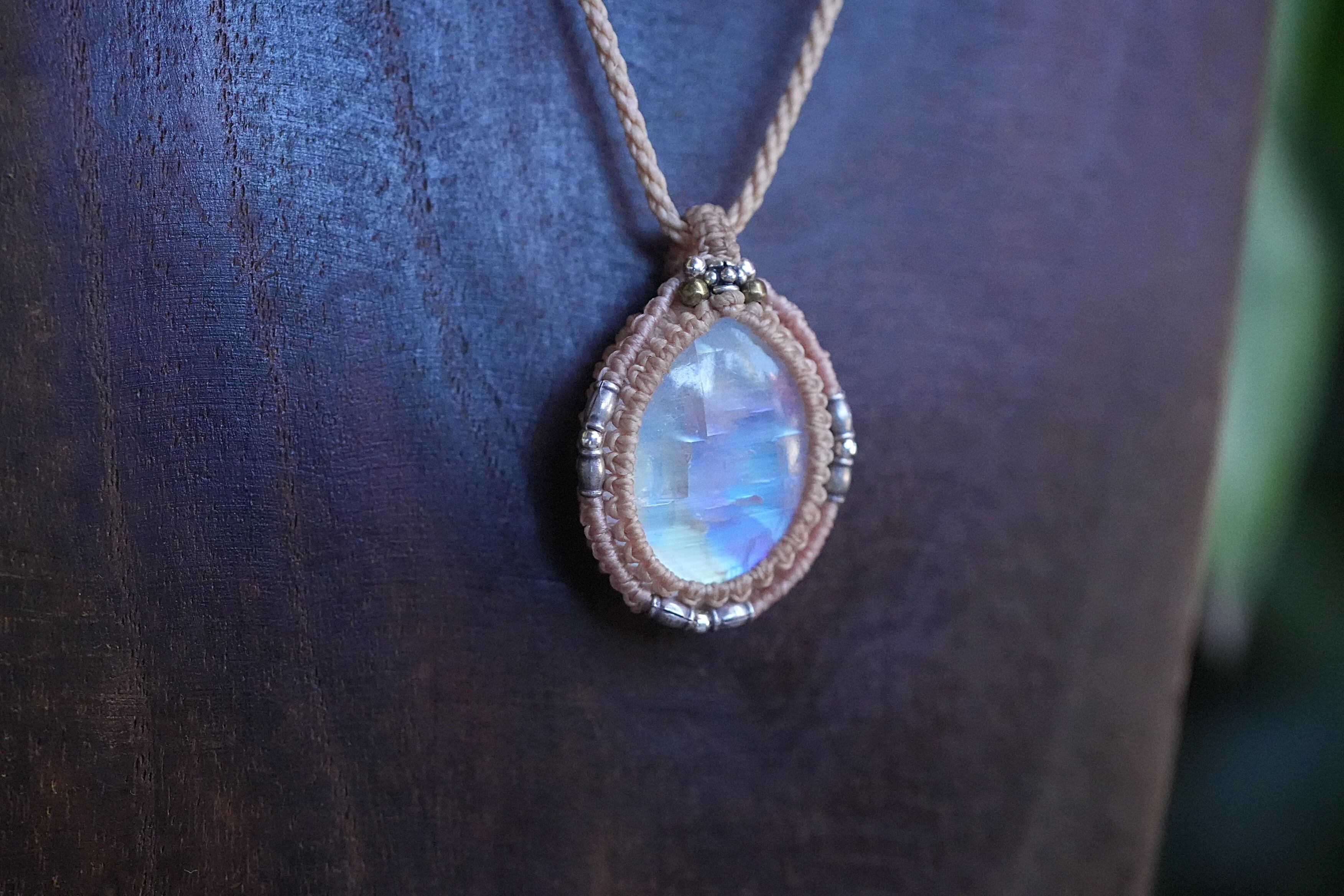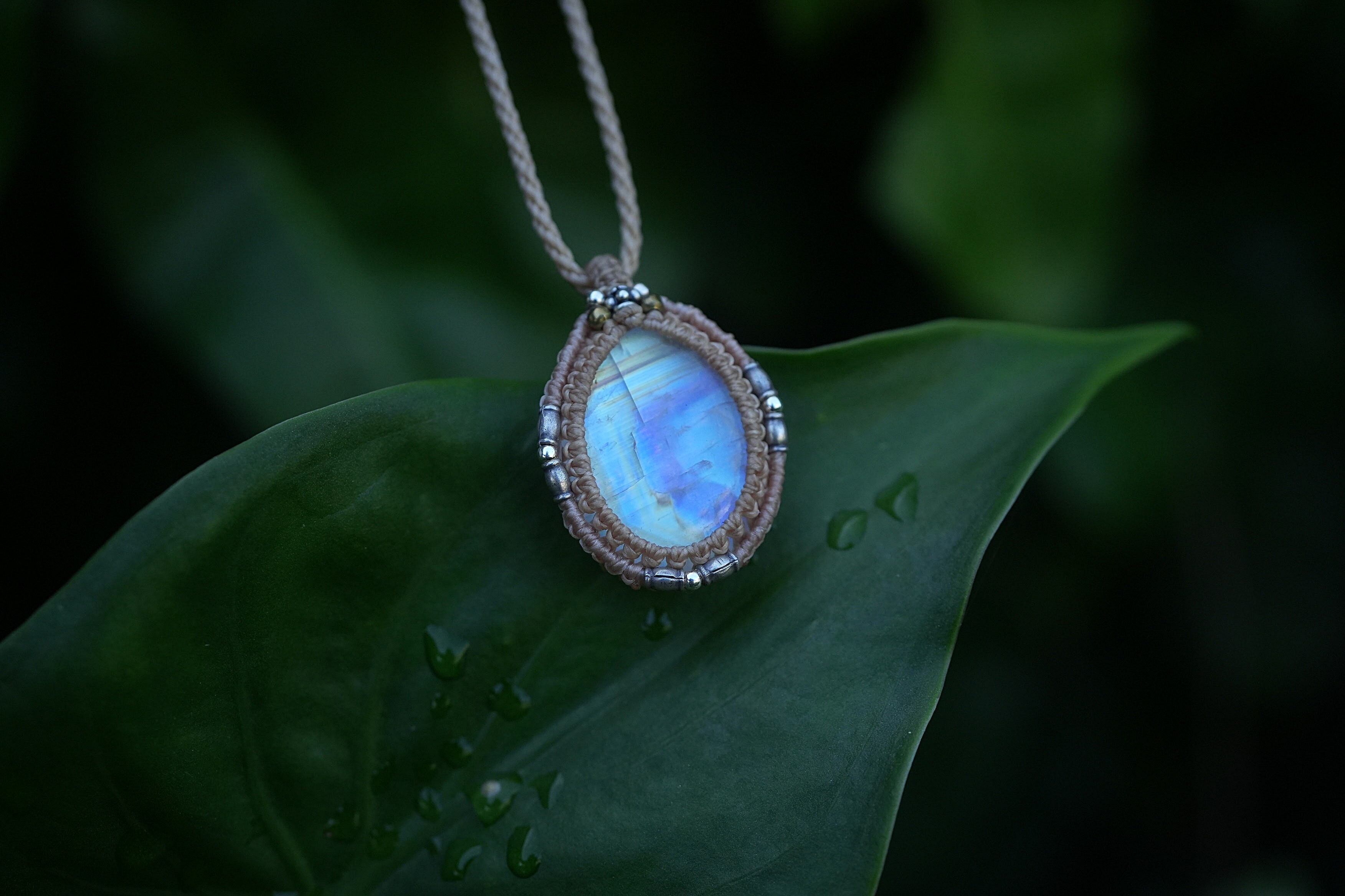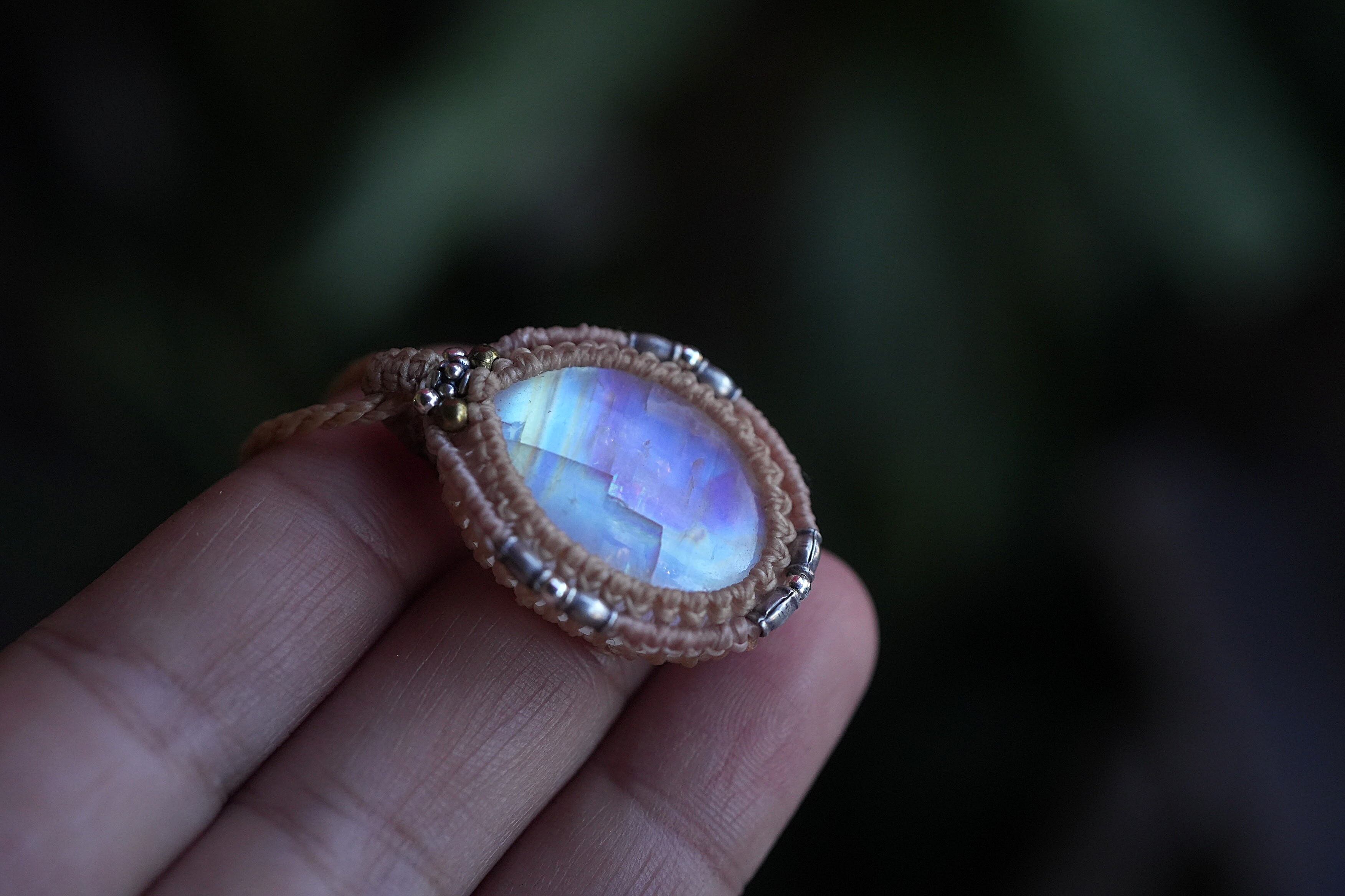 虹の通り道★レインボームーンストーンマクラメネックレス2033