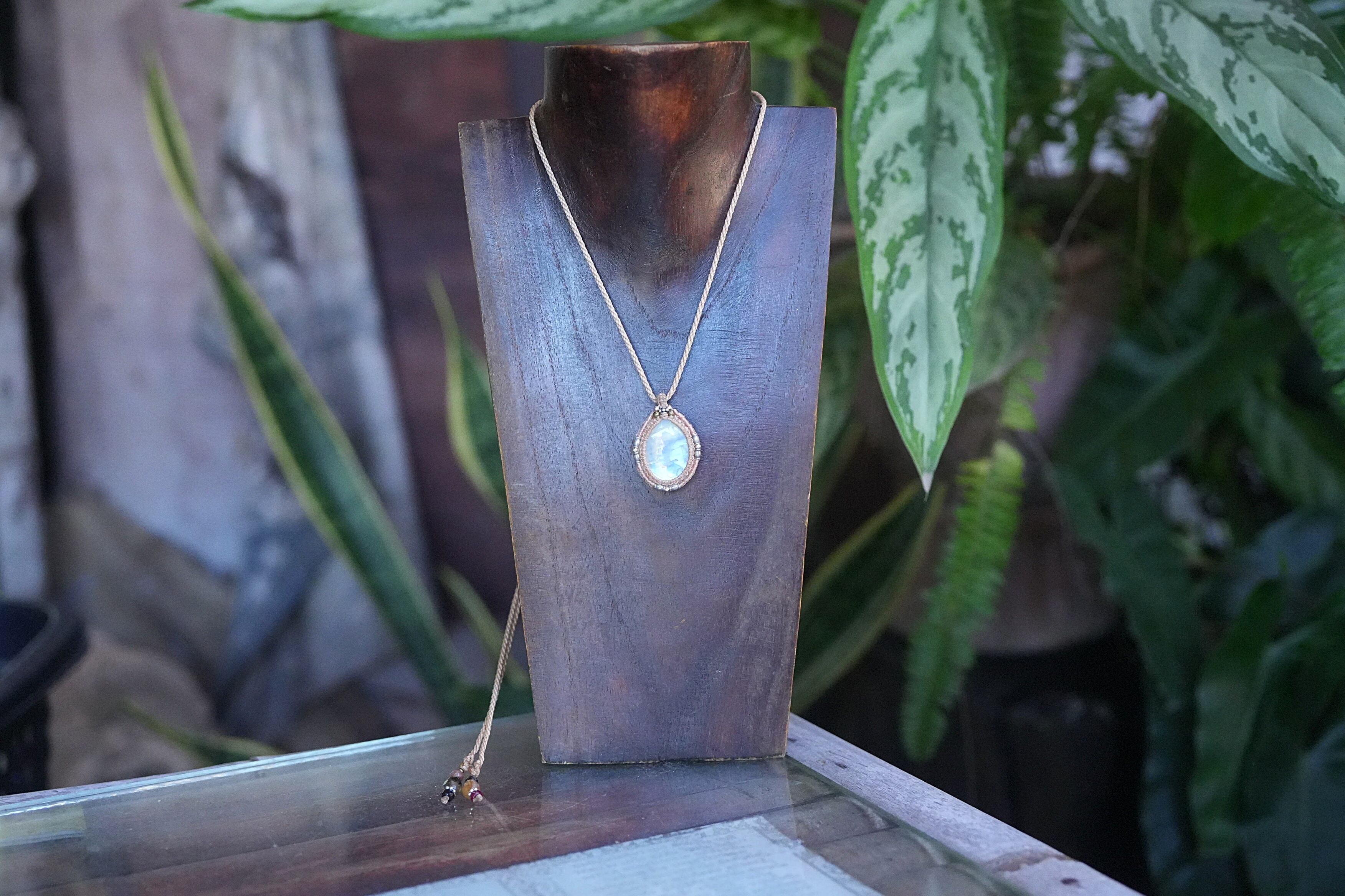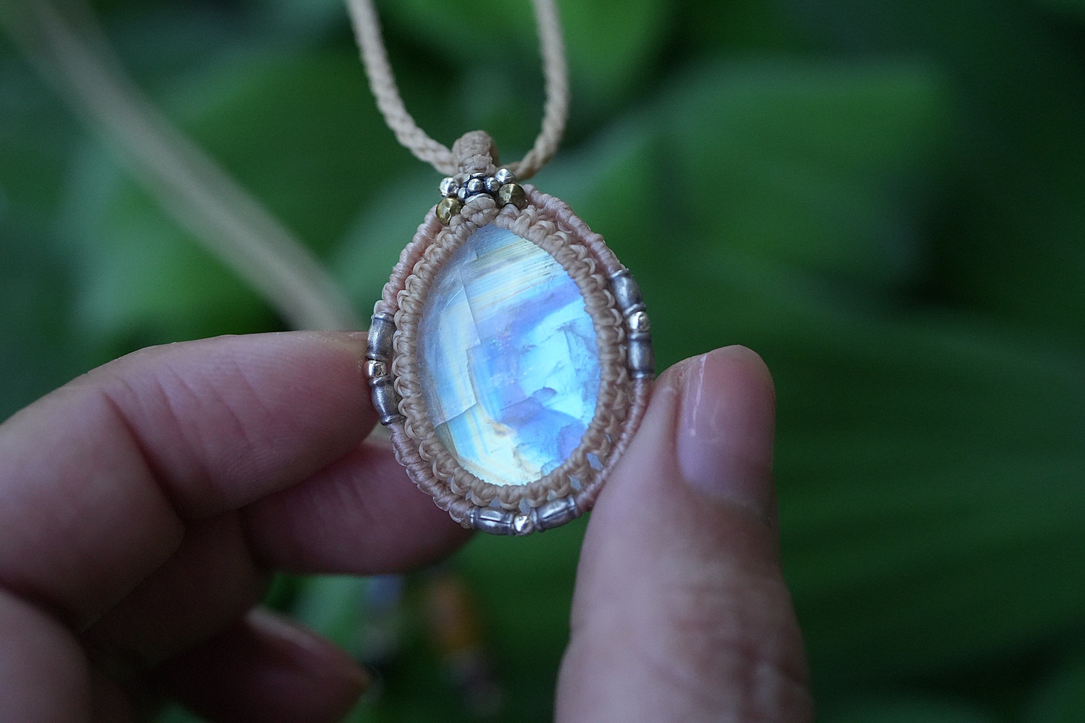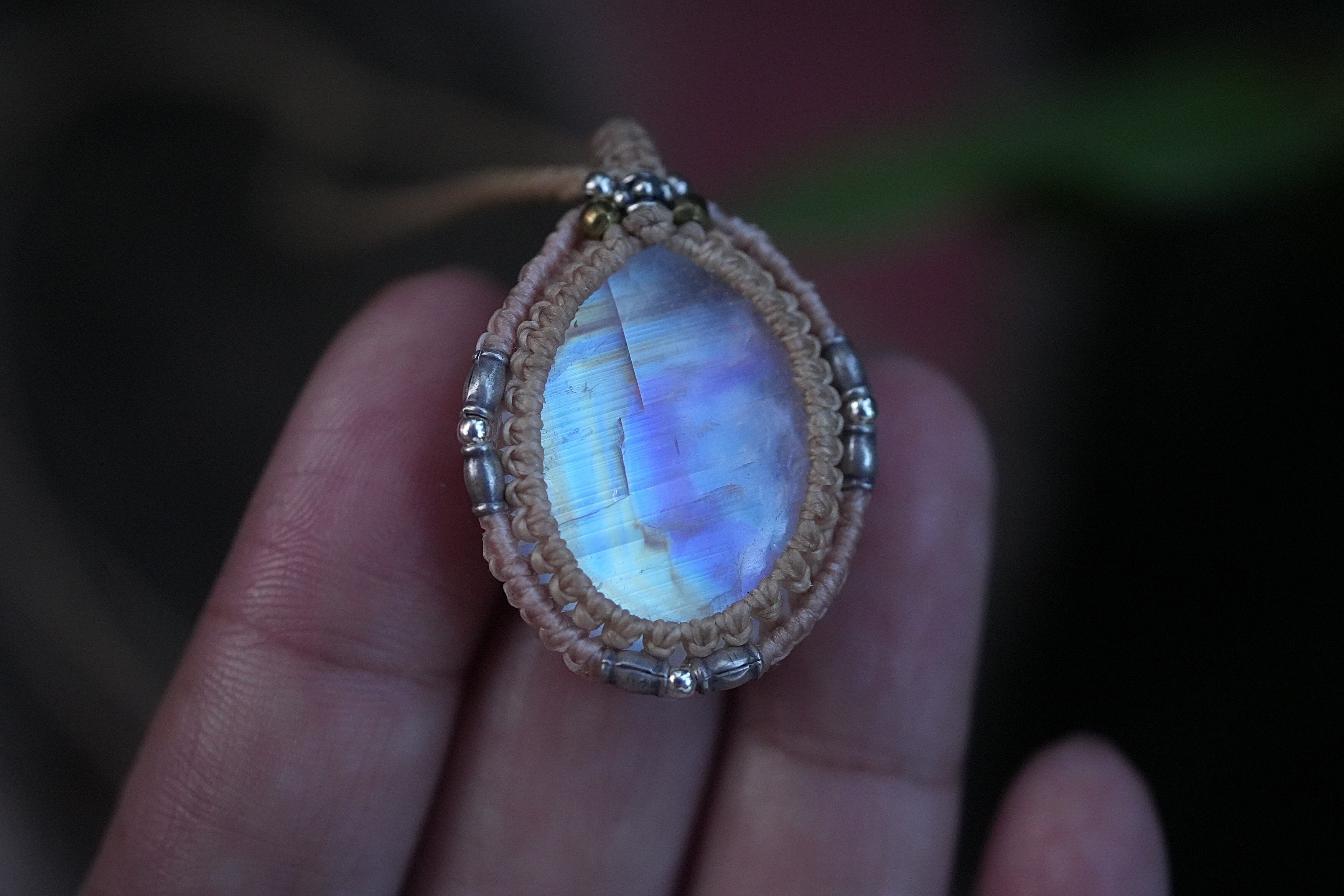虹の通り道★レインボームーンストーンマクラメネックレス2033