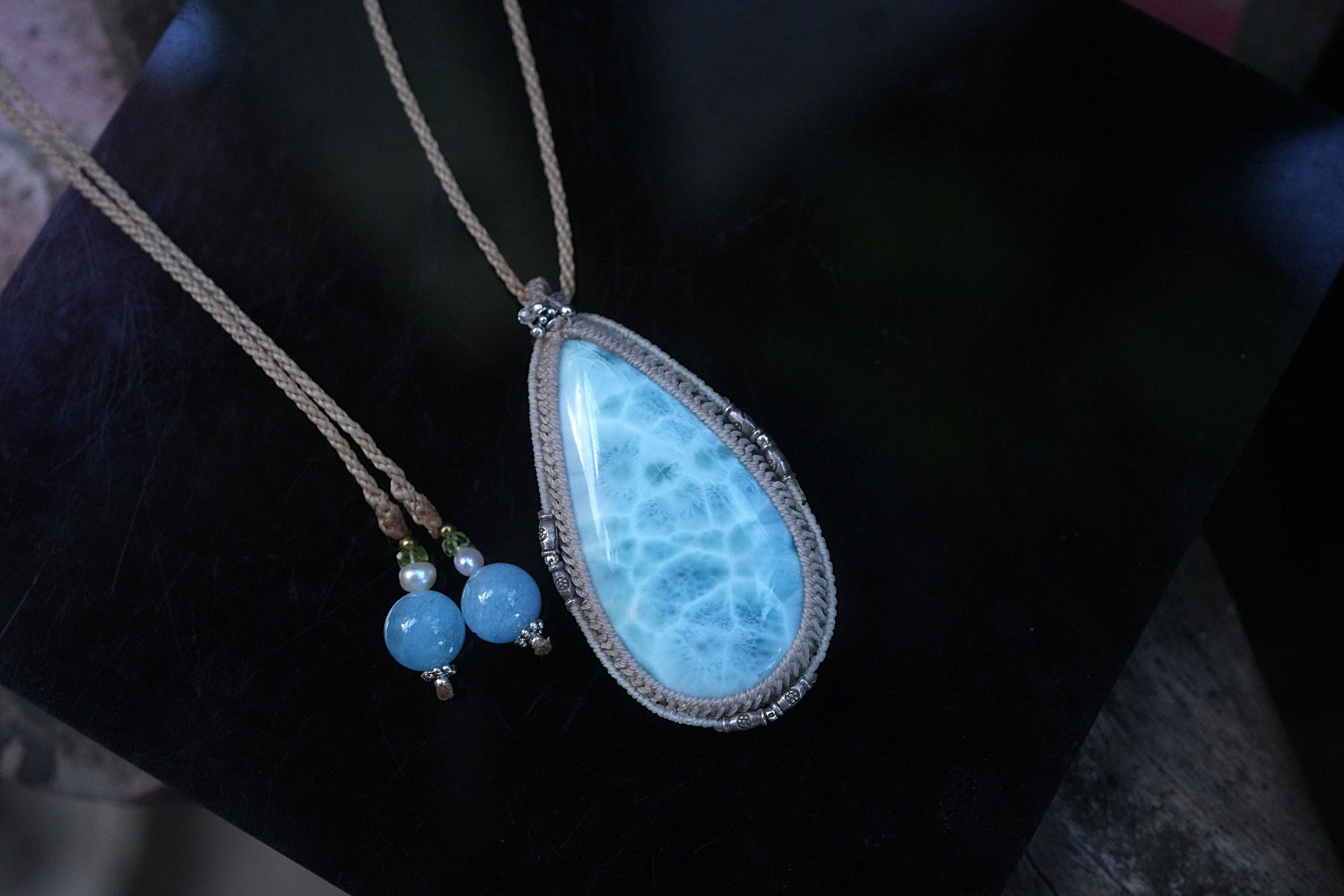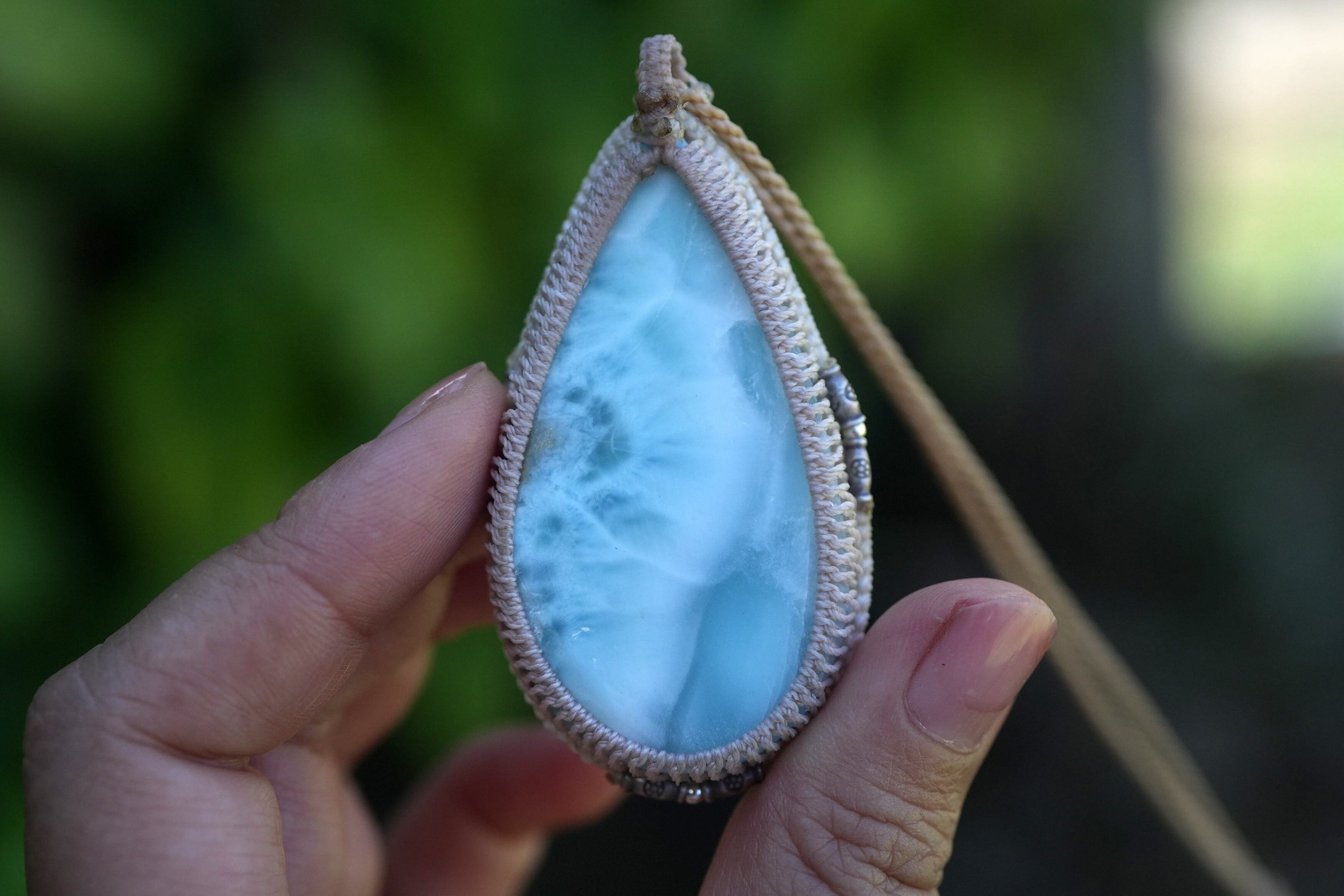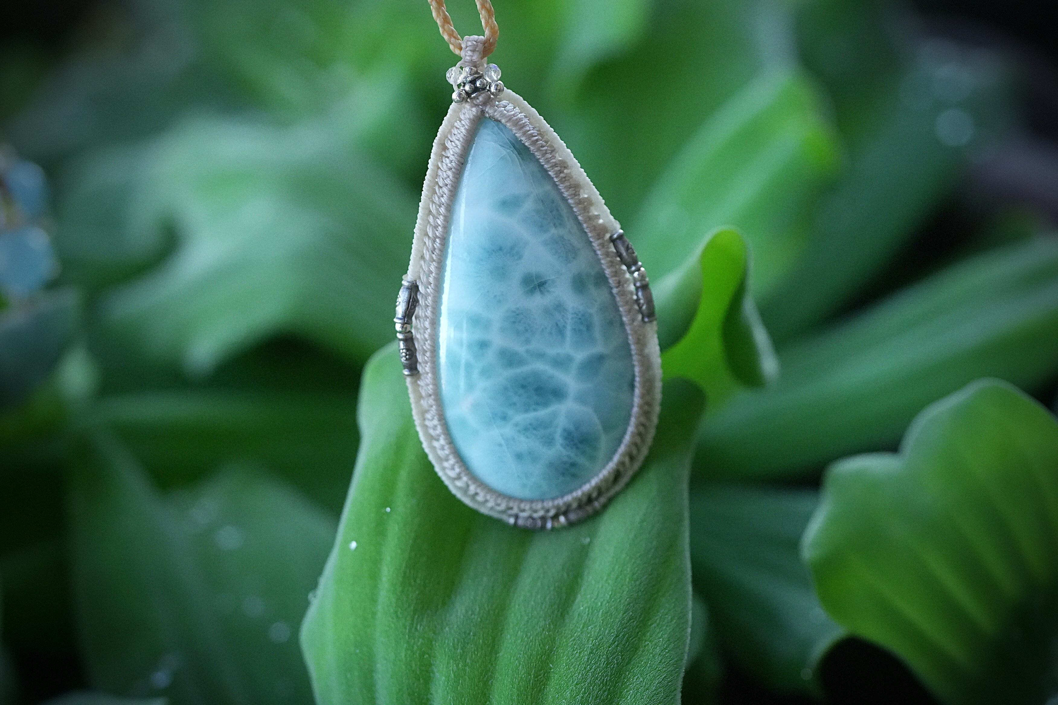 ◆このたびはナチュラルホワイト色の蝋引き糸を使用しマクラメ編み装飾を施しました。