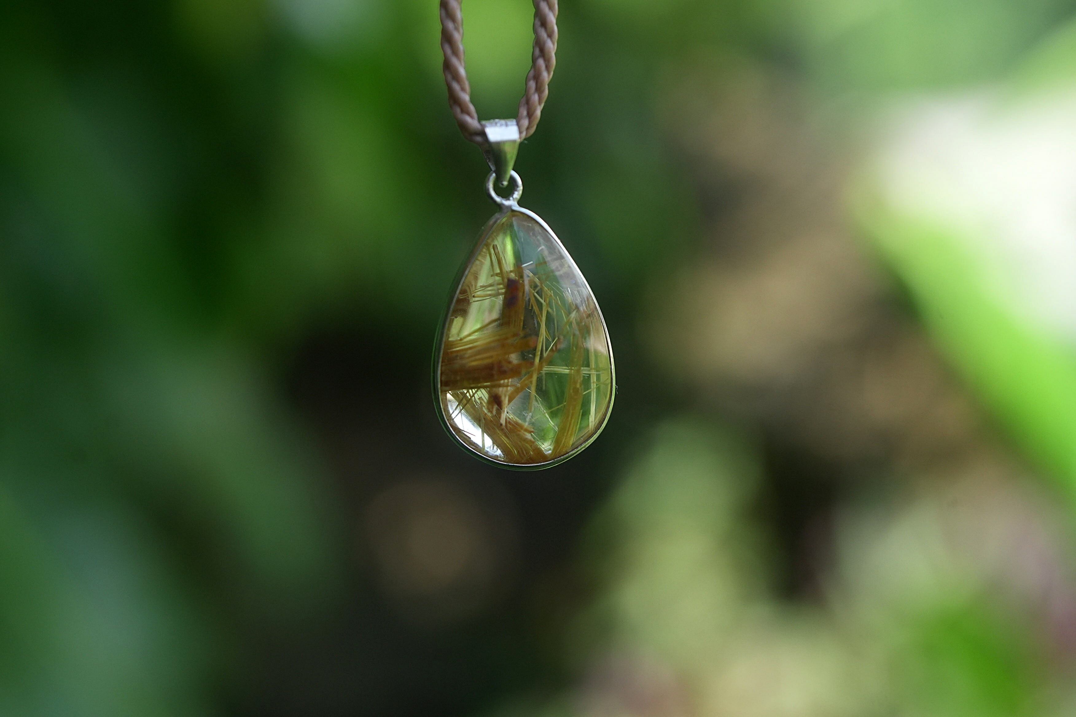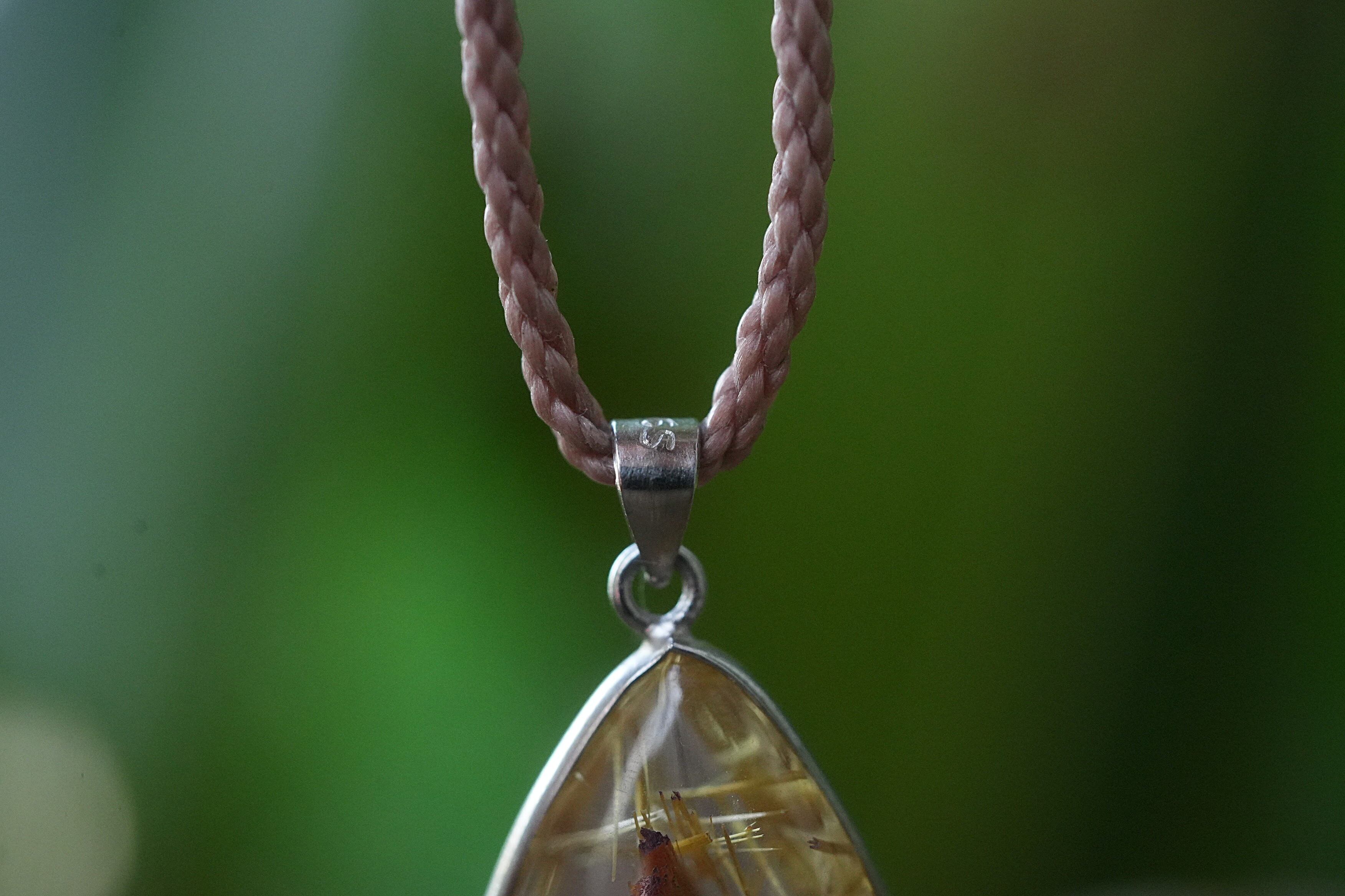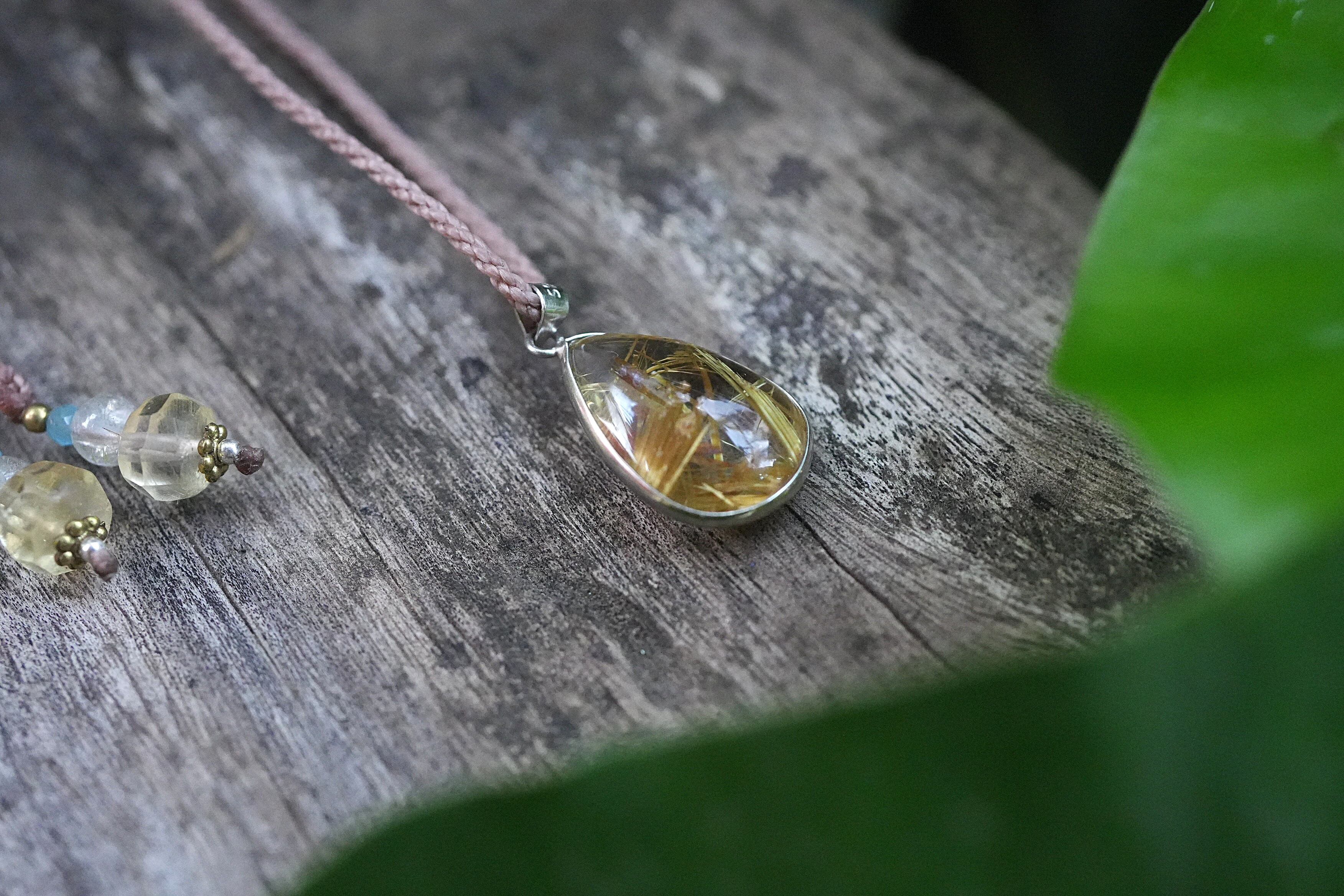 シルバー92.5枠で加工が施されたゴールドルチルインクォーツ