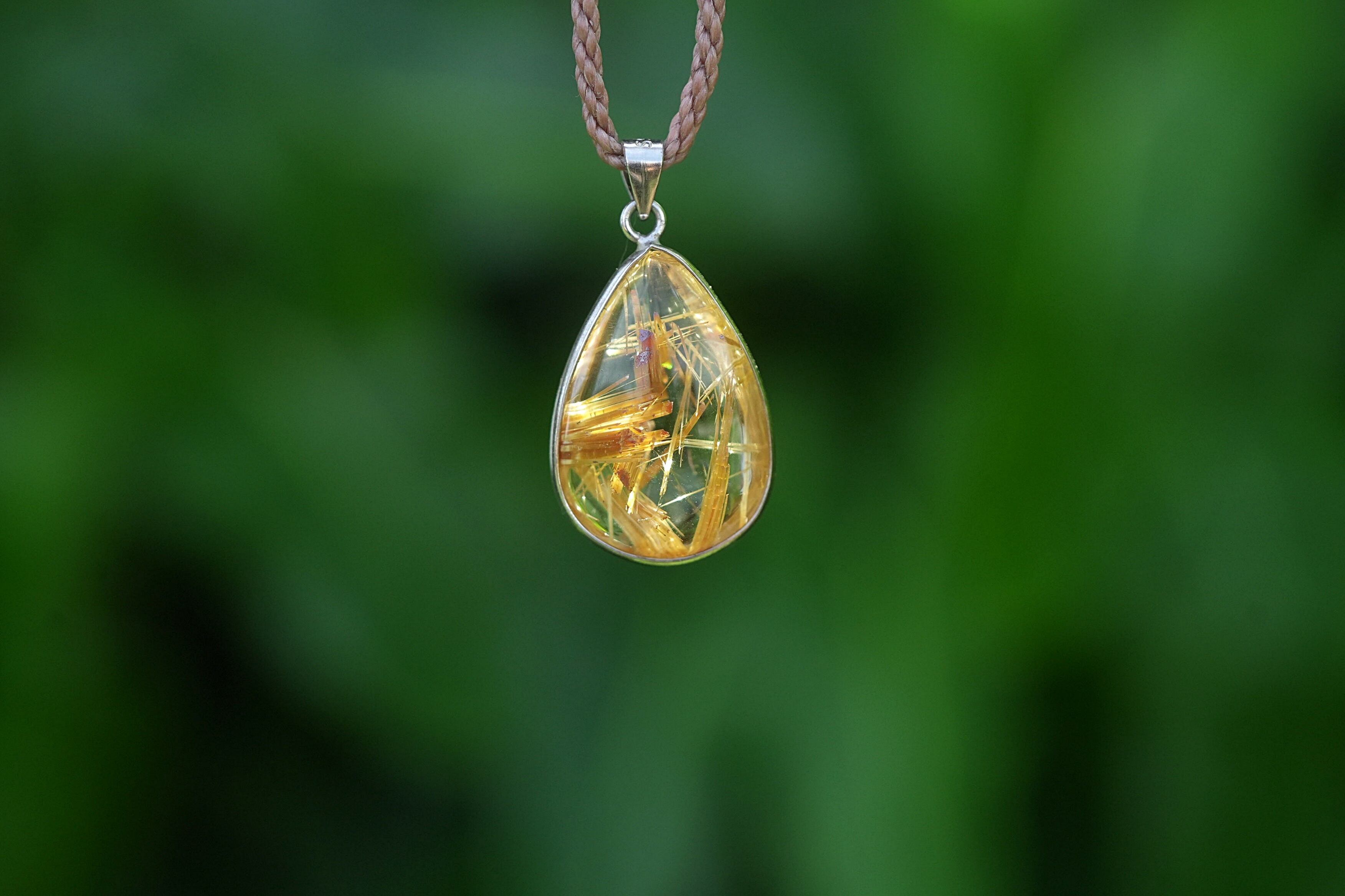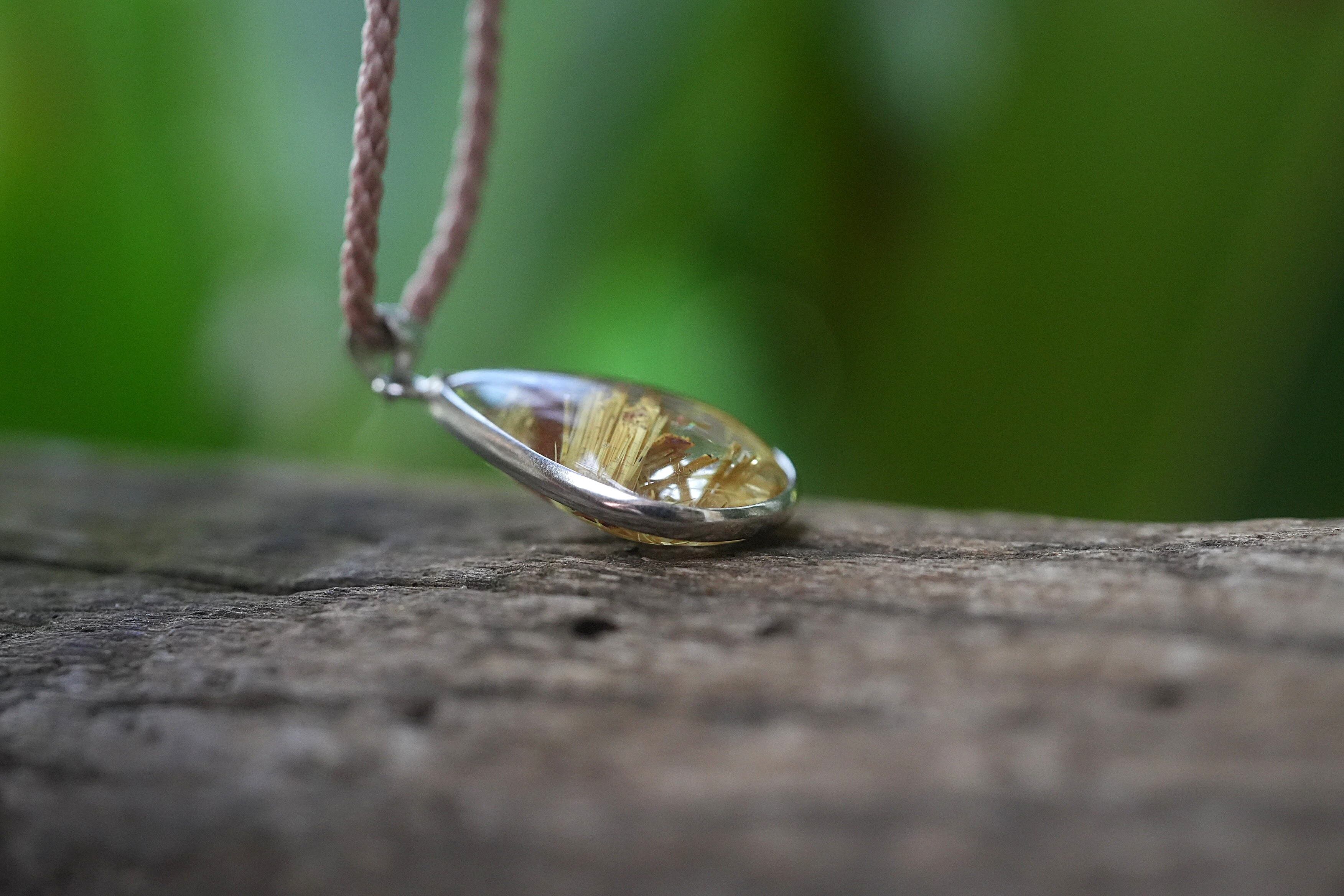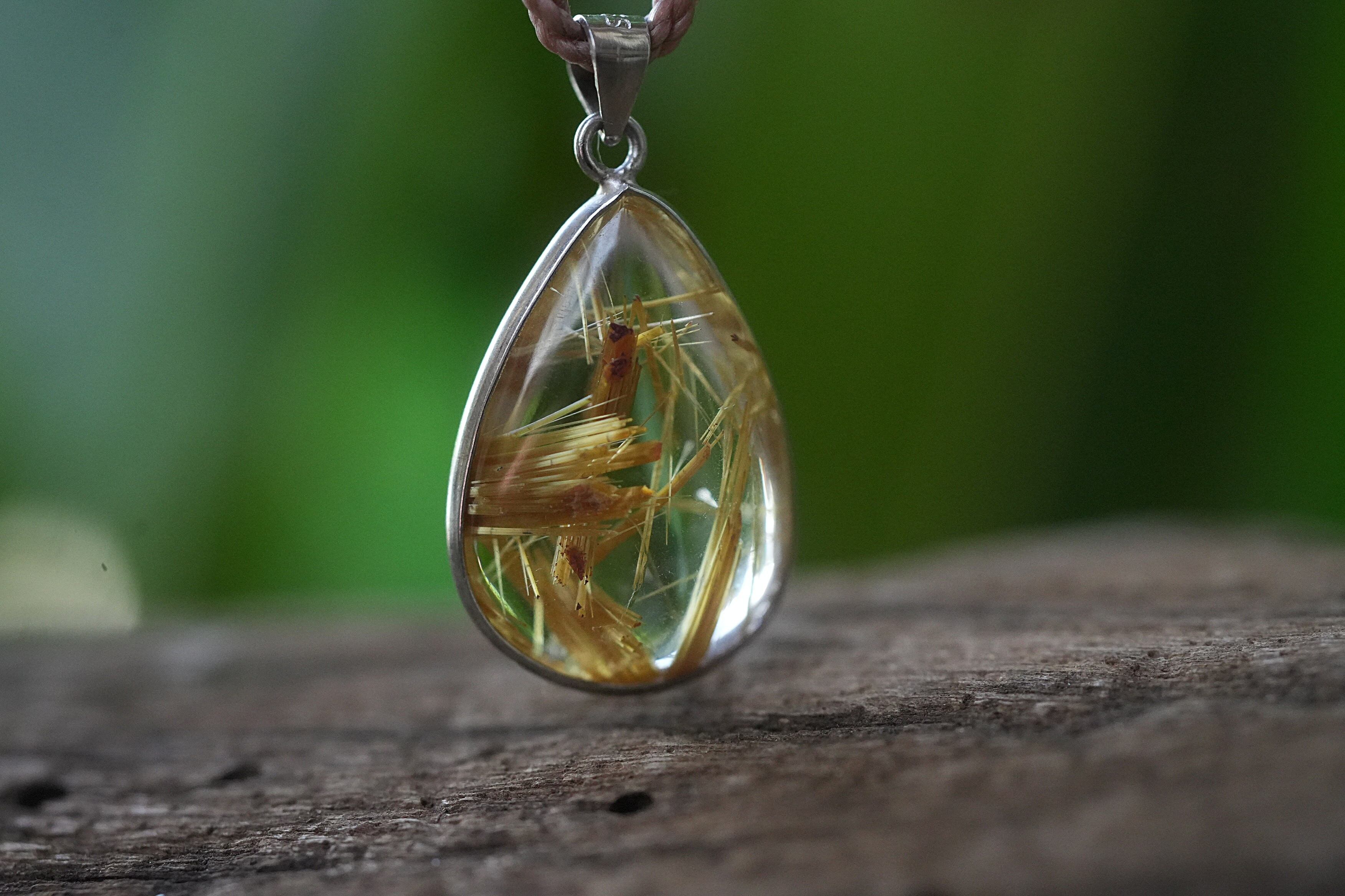 シルバー92.5枠で加工が施されたゴールドルチルインクォーツ