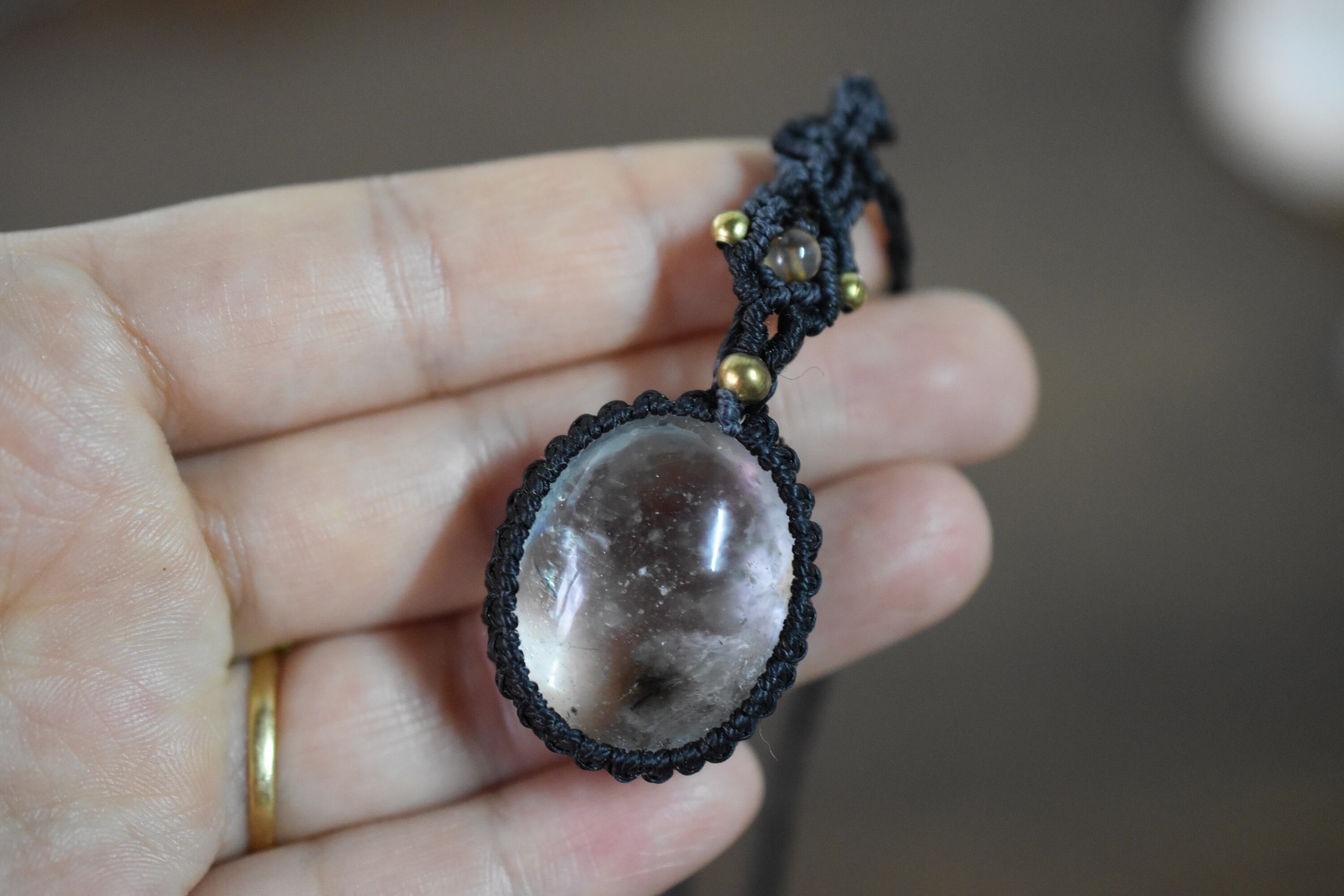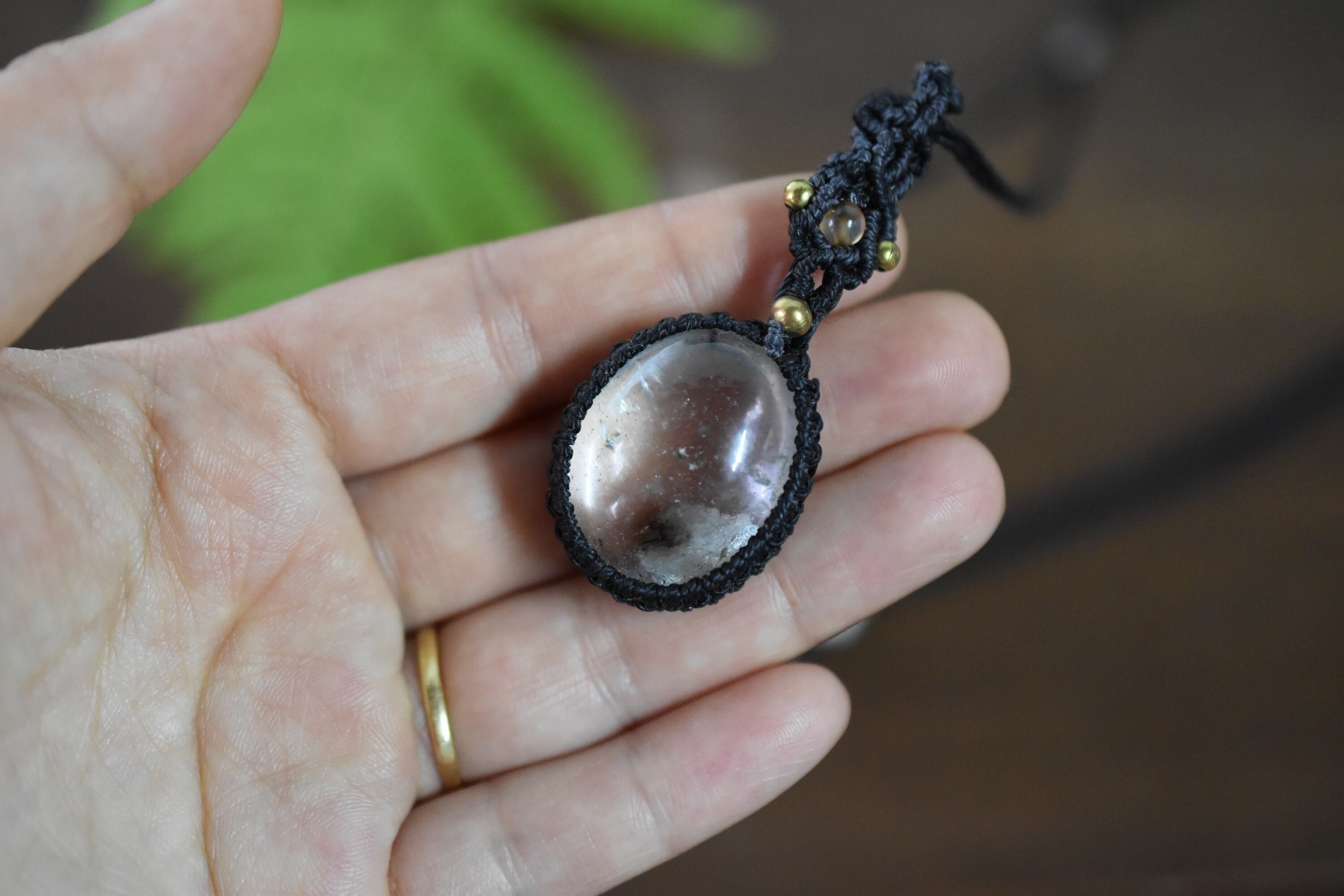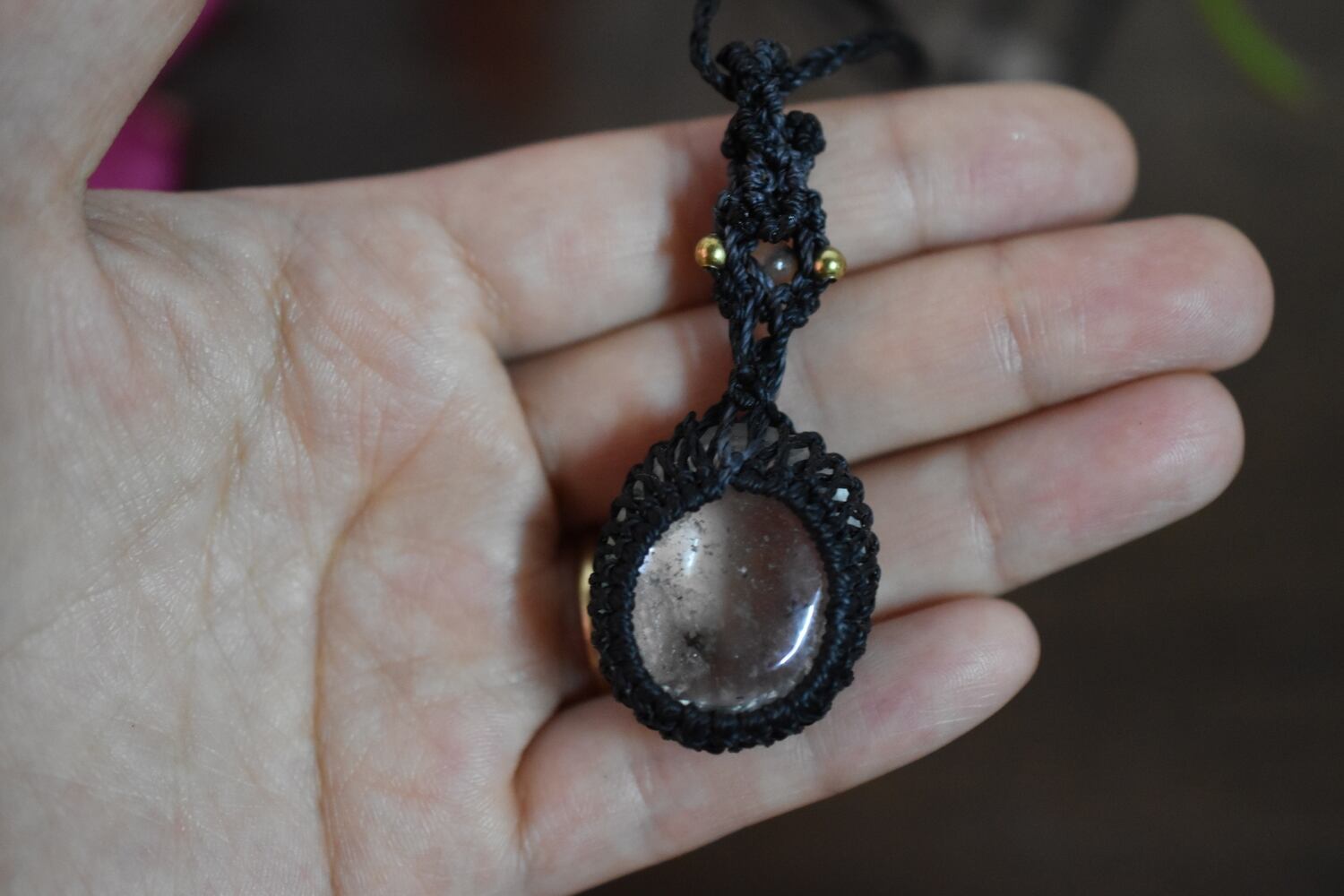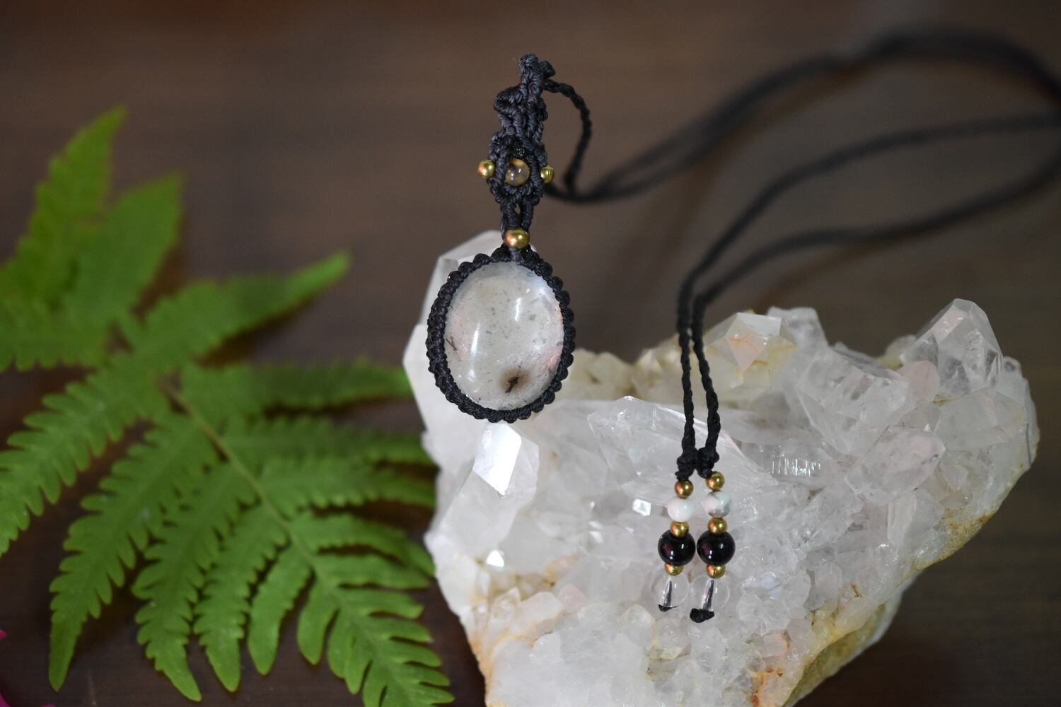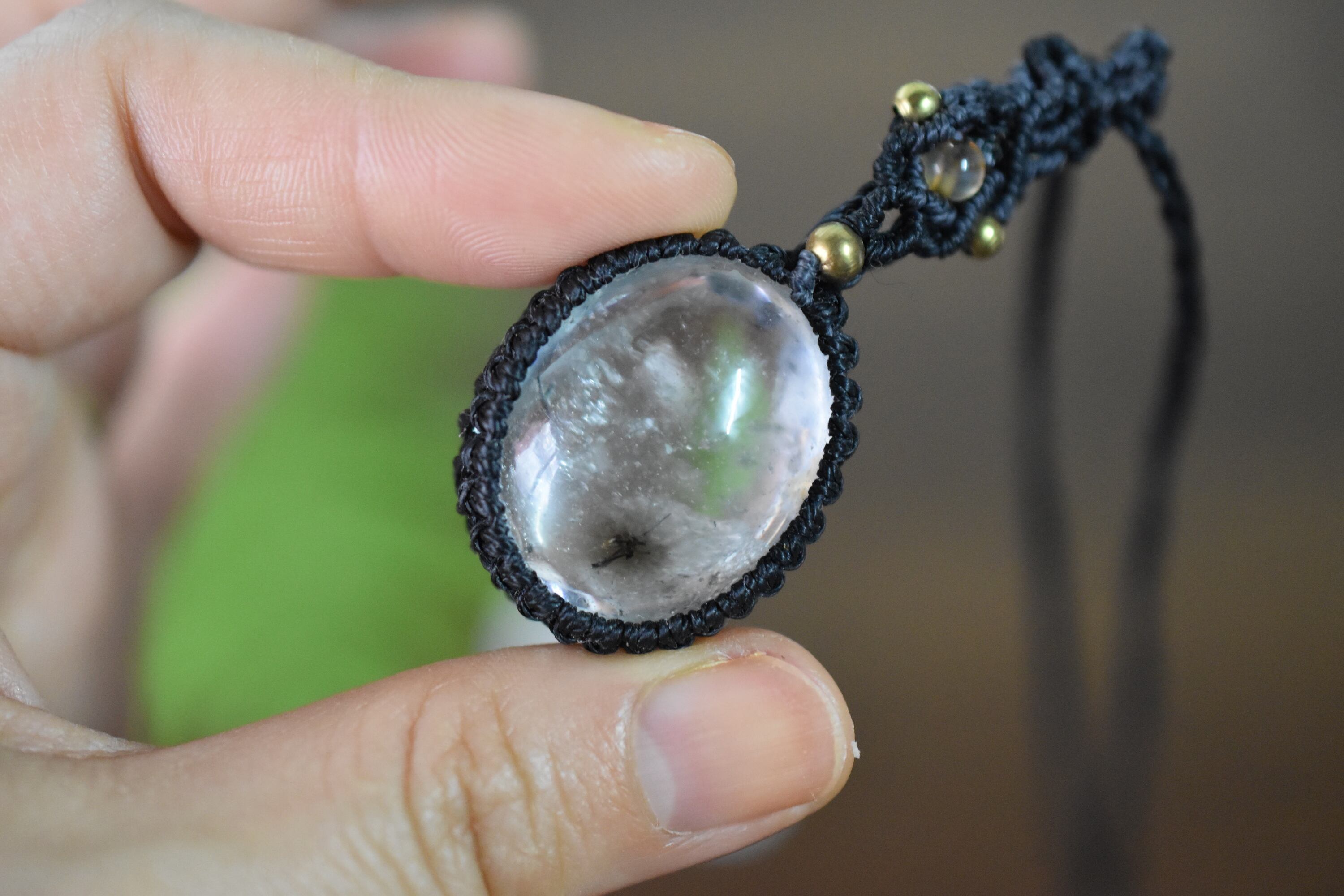 虹と大地の気泡入★ブラックガーデンルチル(トルマリン) マクラメペンダント