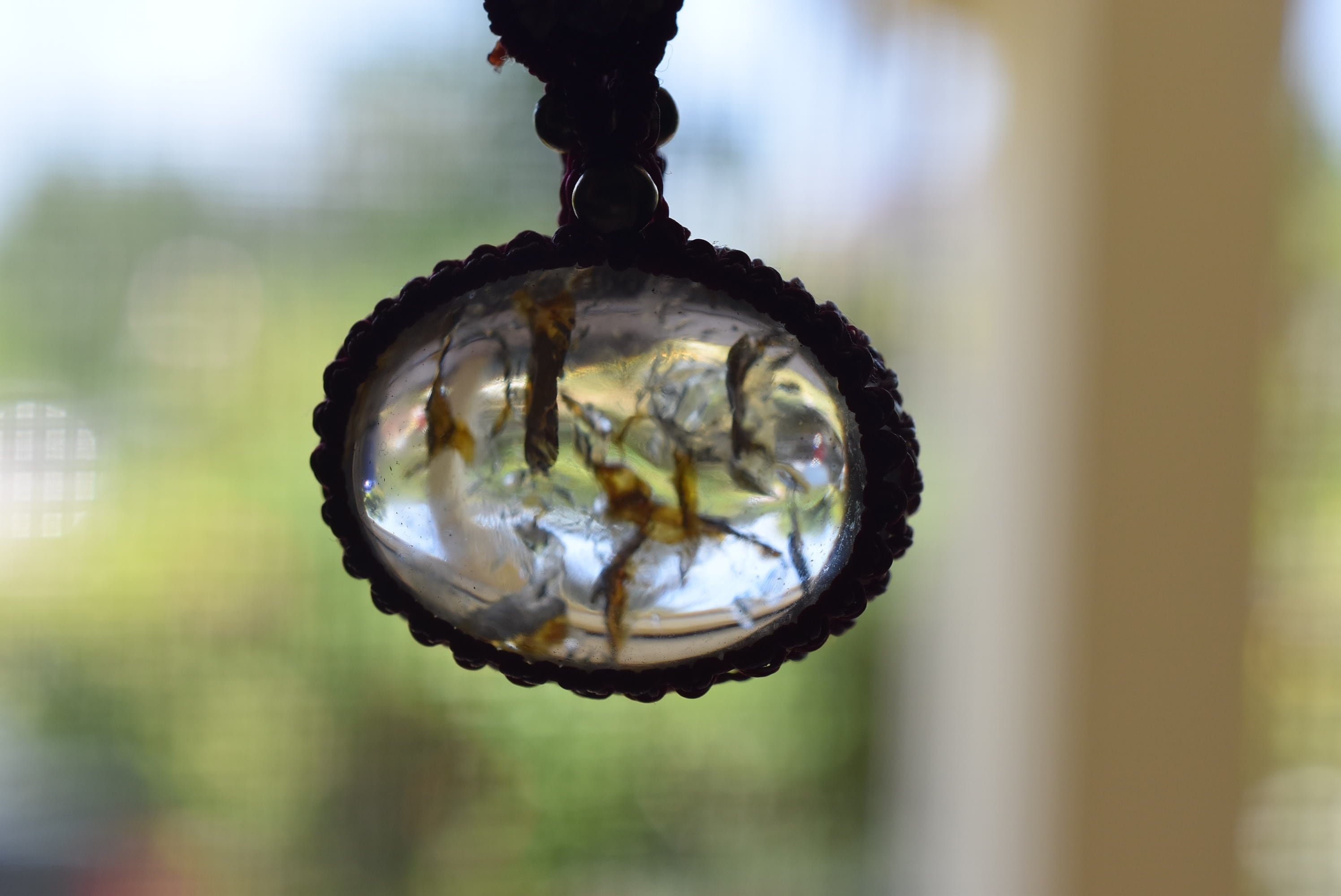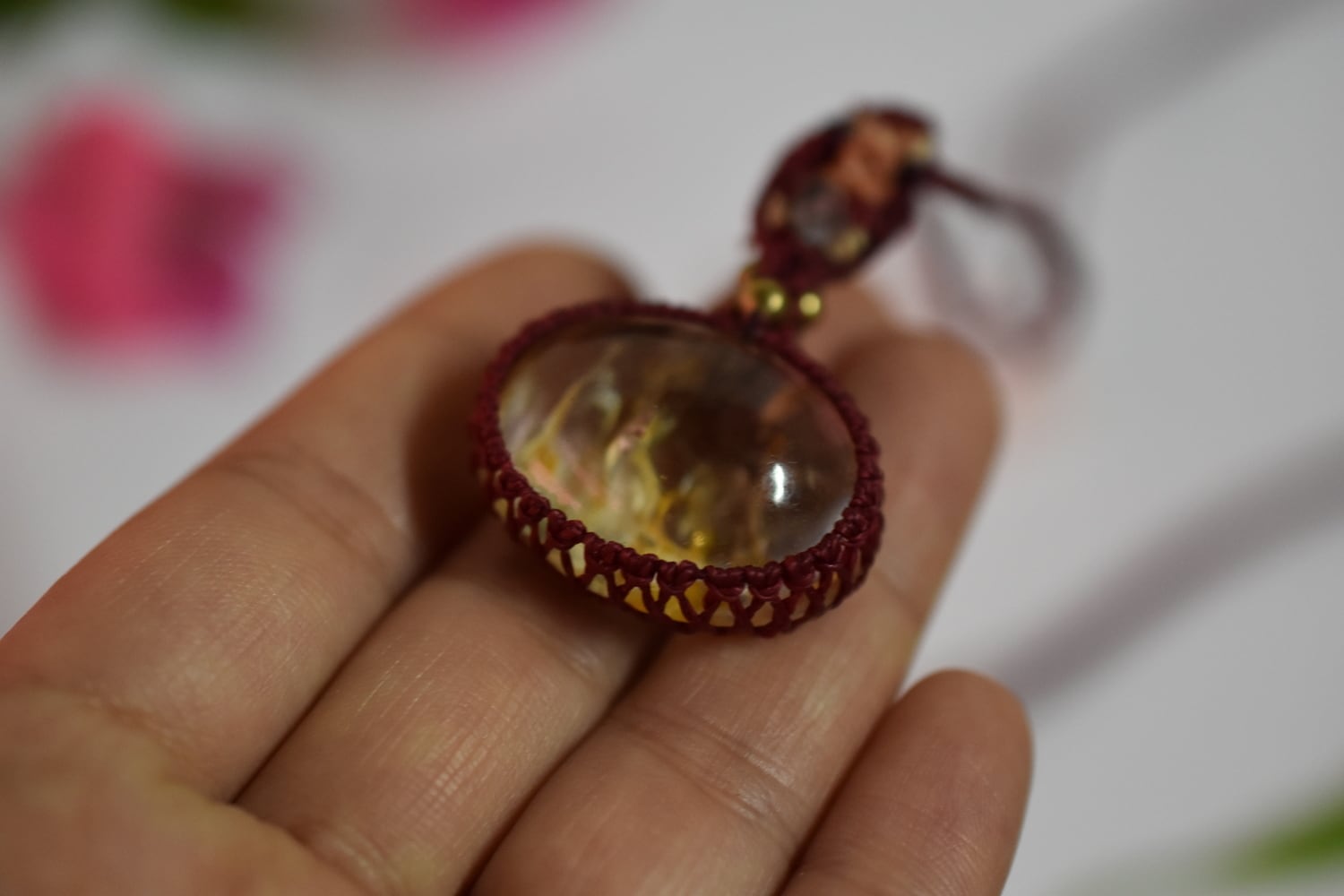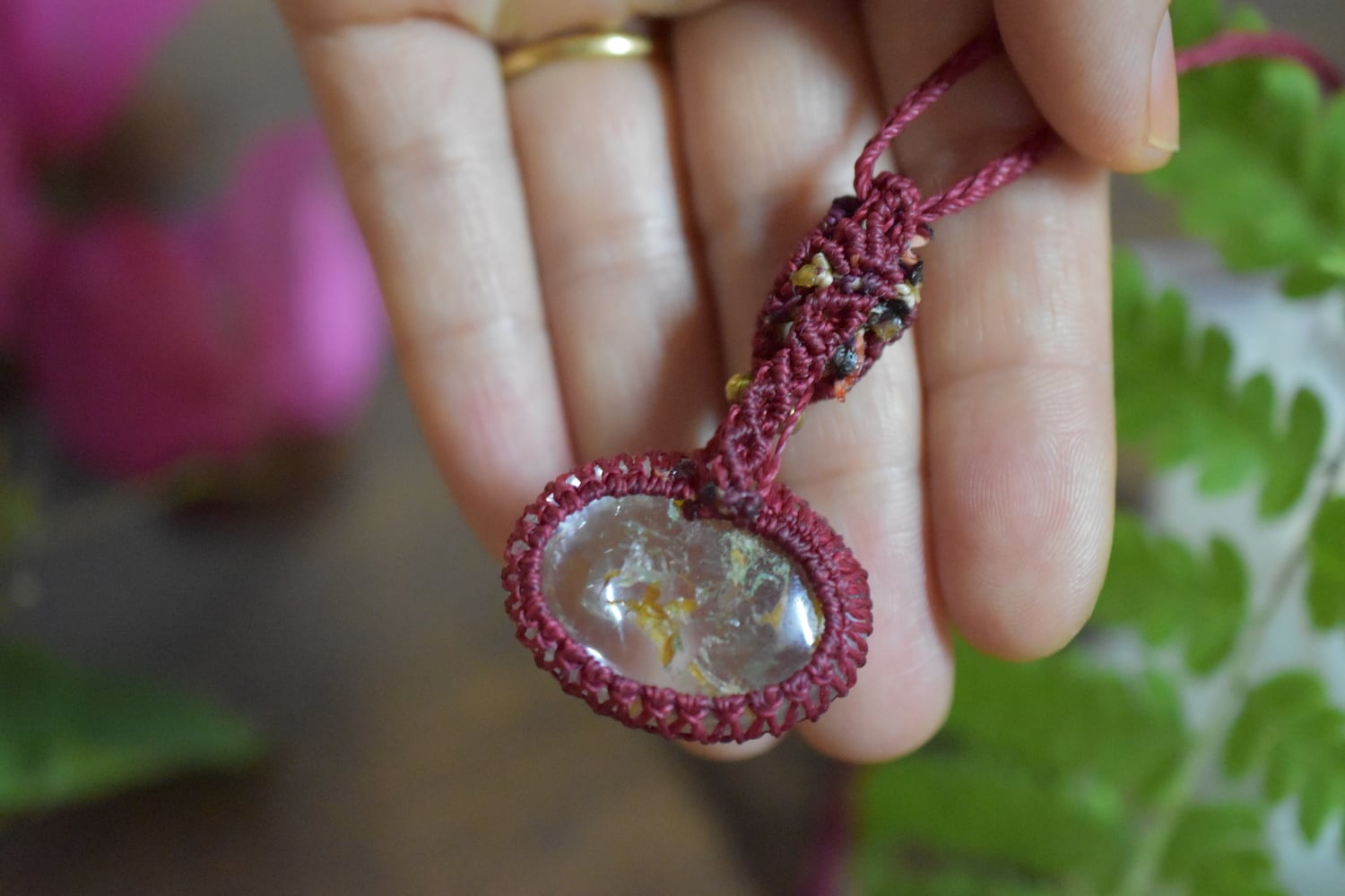 ゴールドシラーリモナイト★ガーデンクォーツ マクラメペンダント garm127