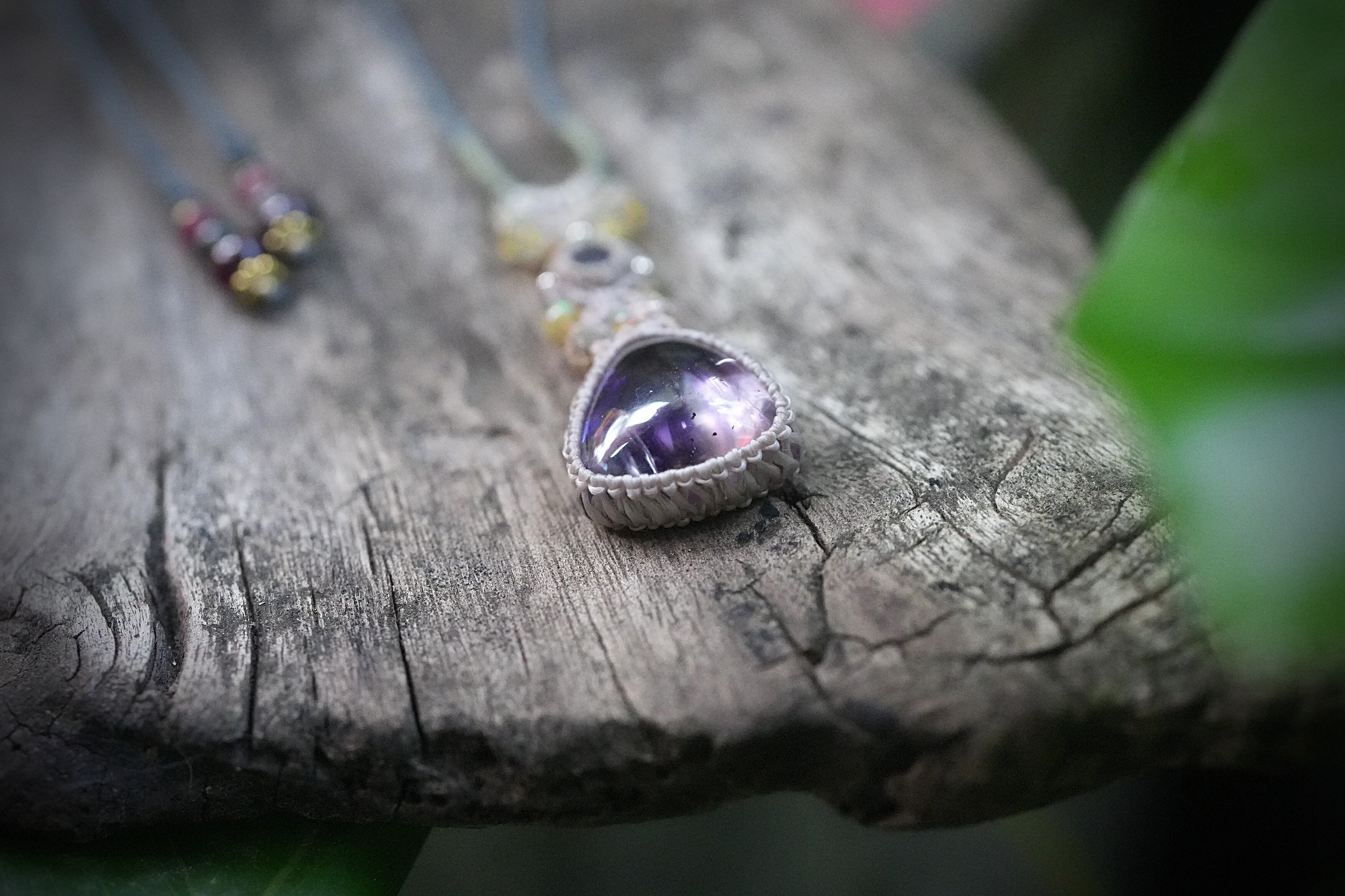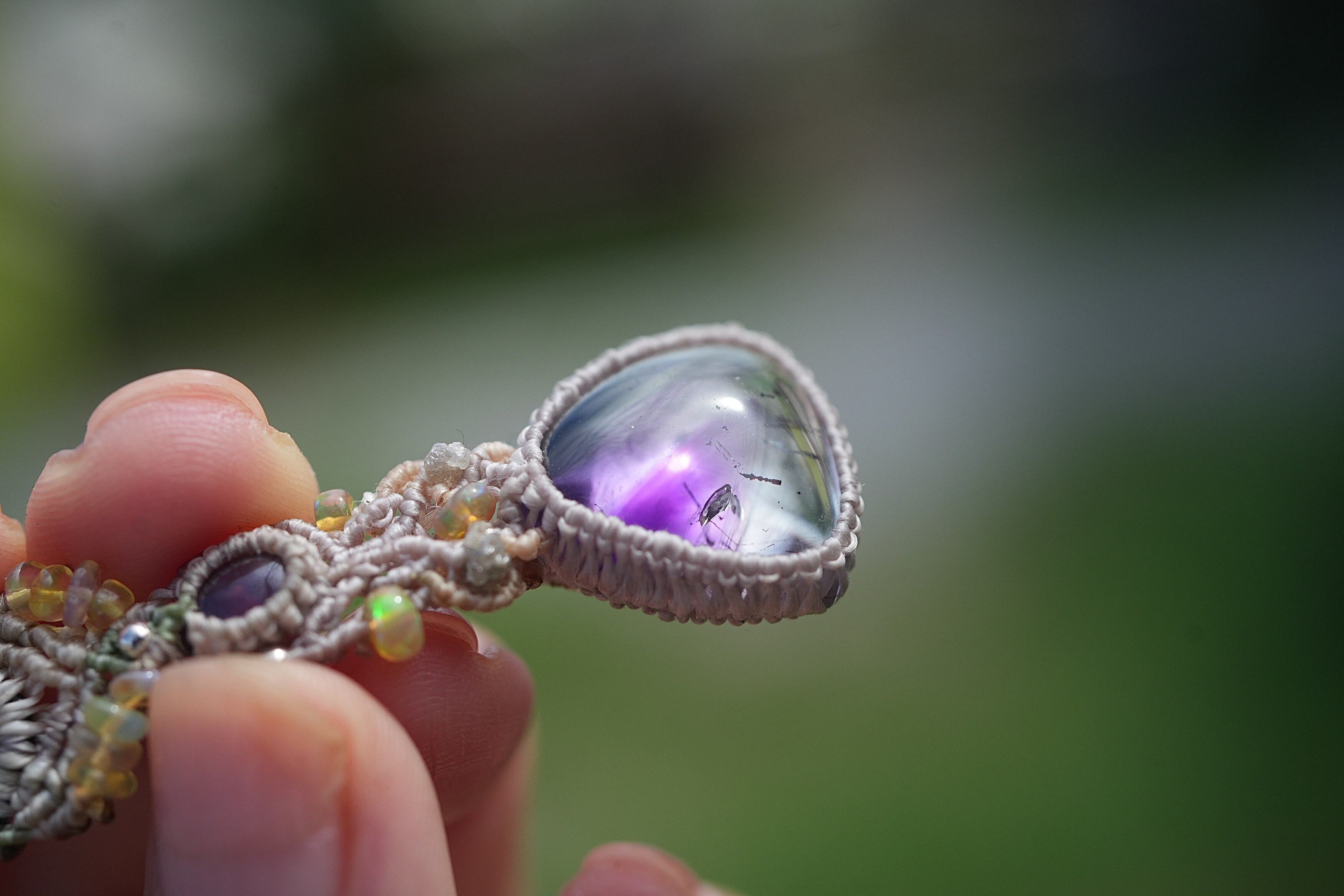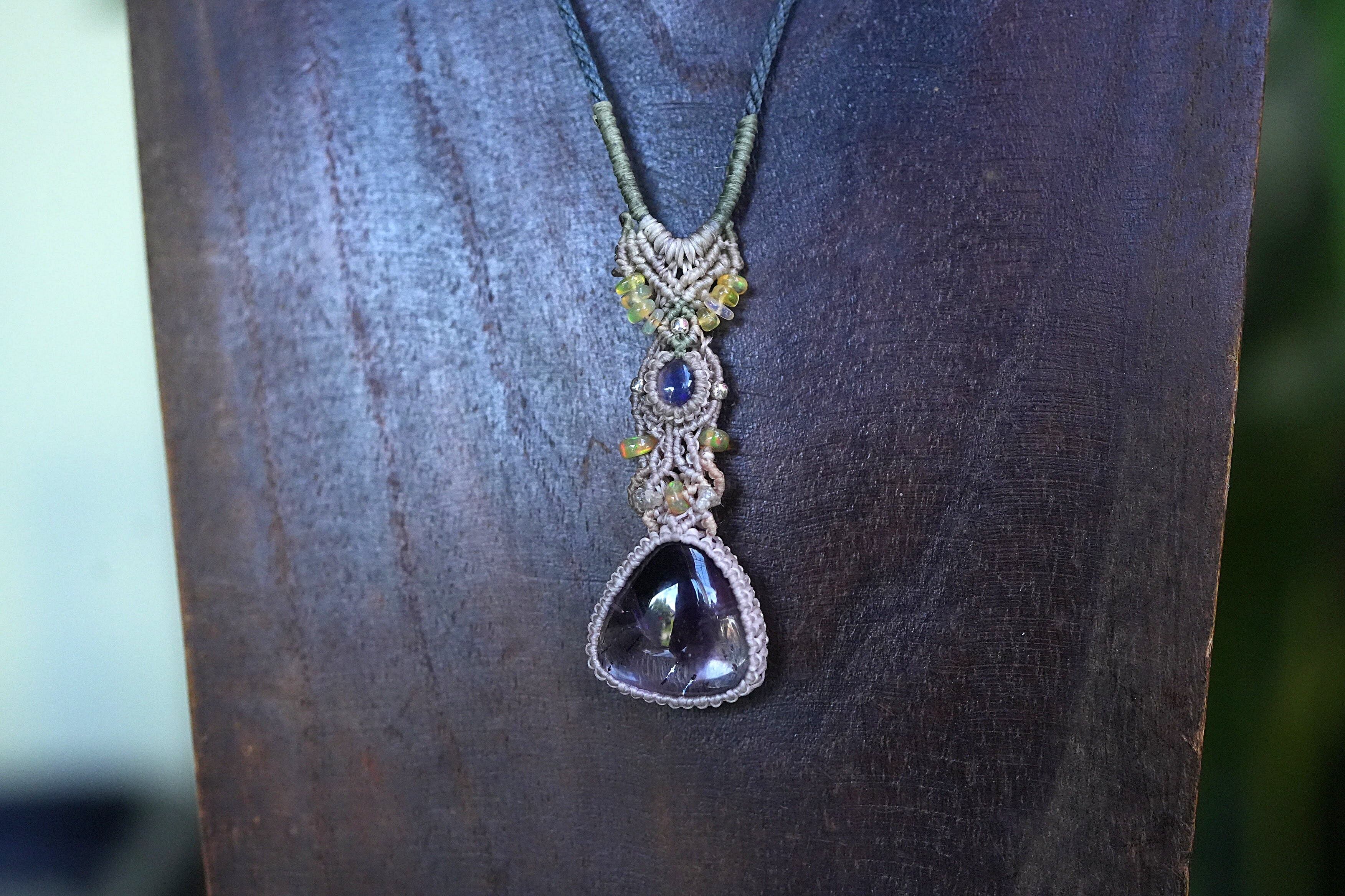 Black opal★アメジストスーパーセブン マクラメネックレス2039