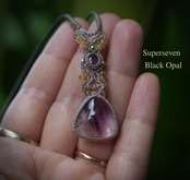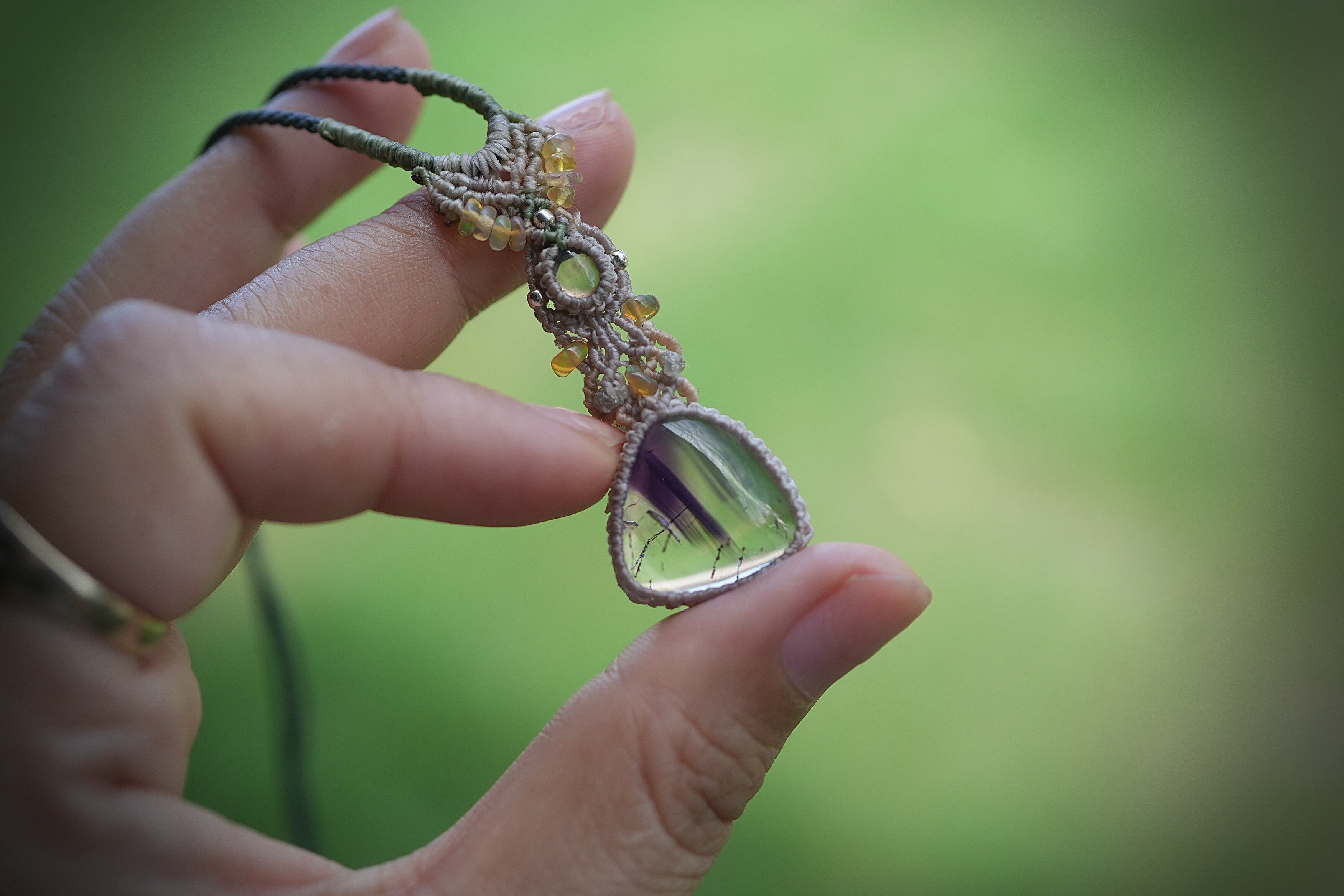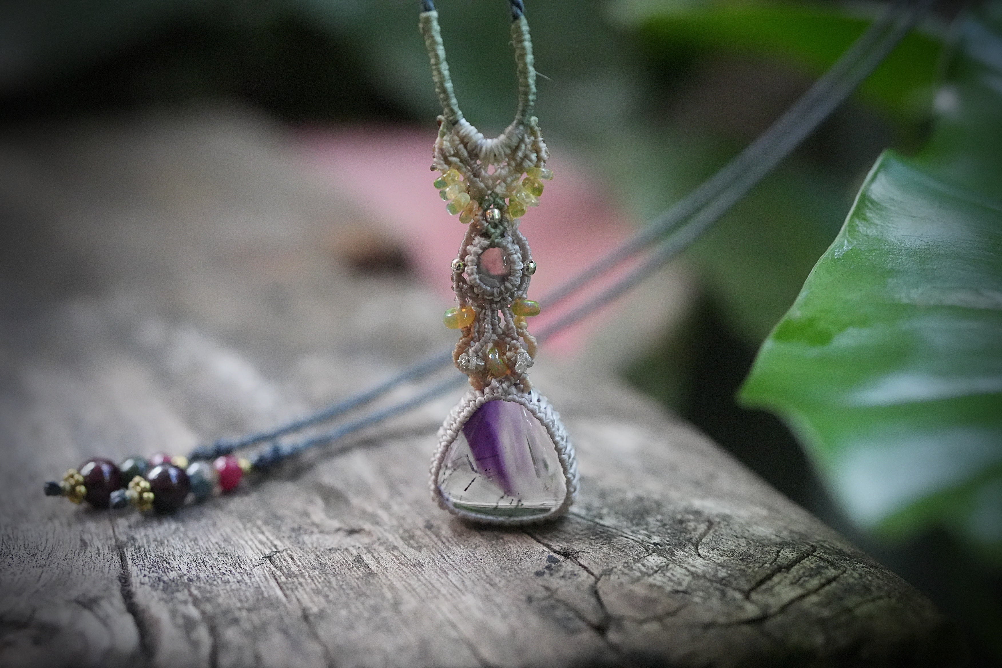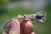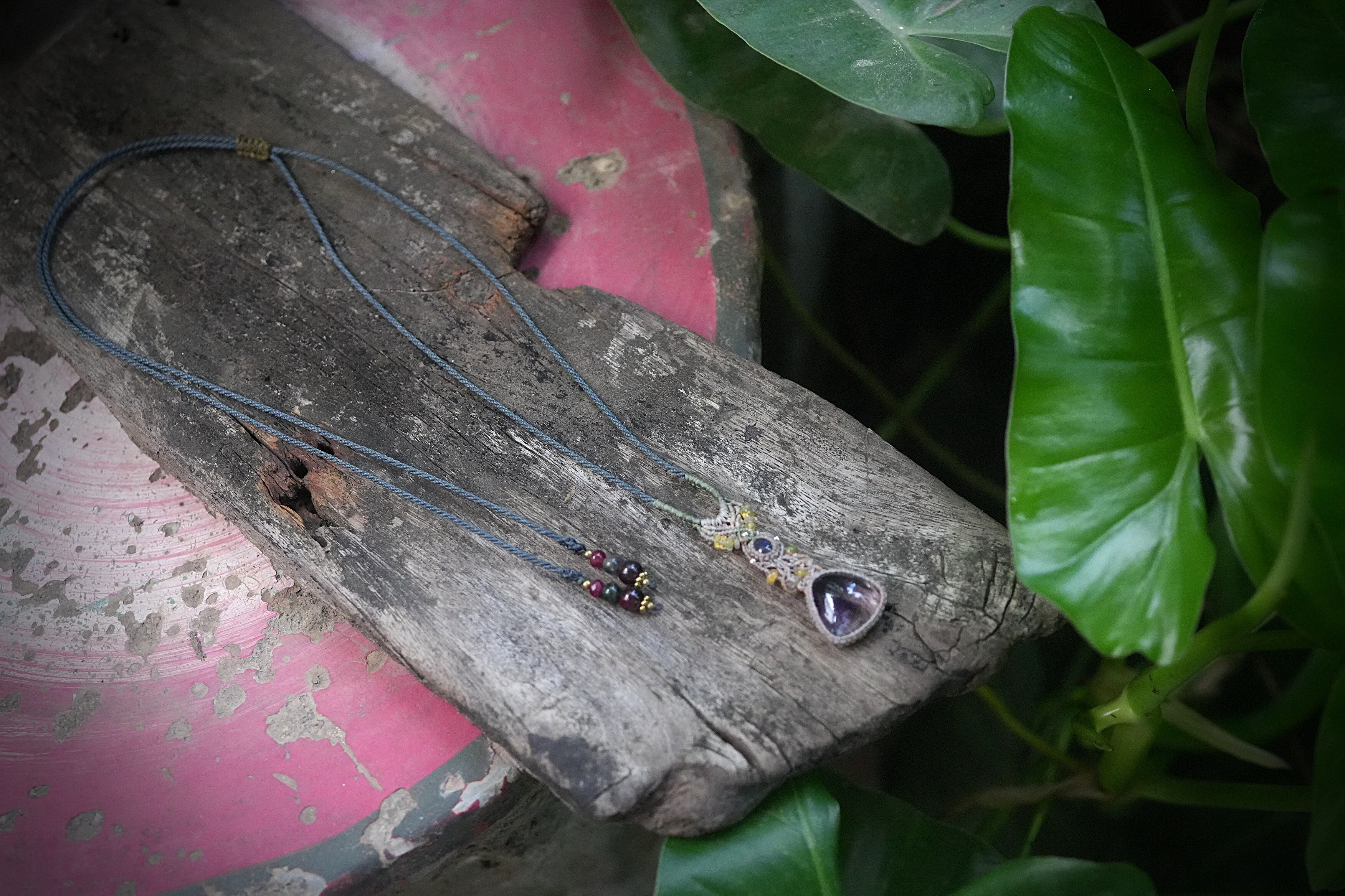 Black opal★アメジストスーパーセブン マクラメネックレス2039