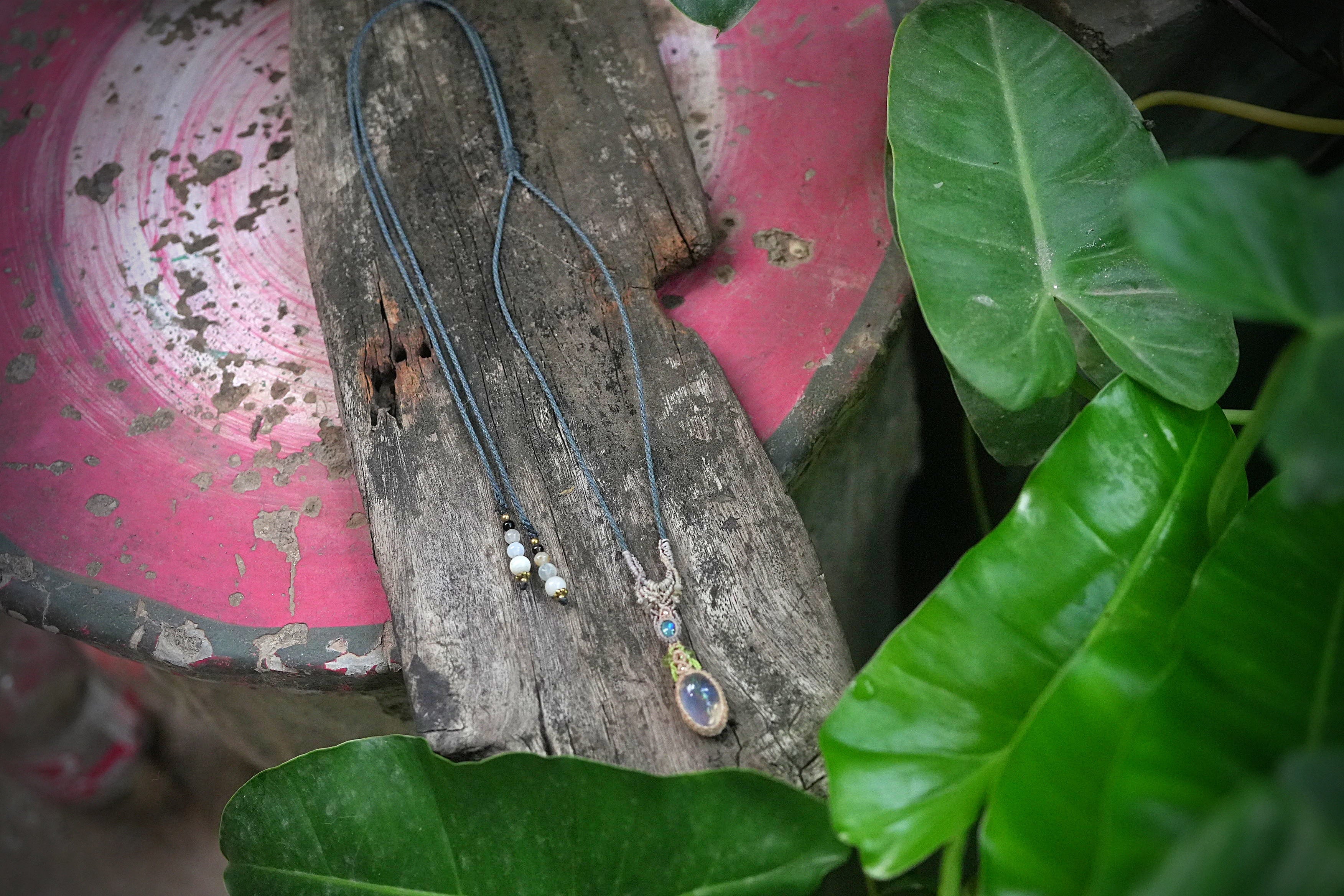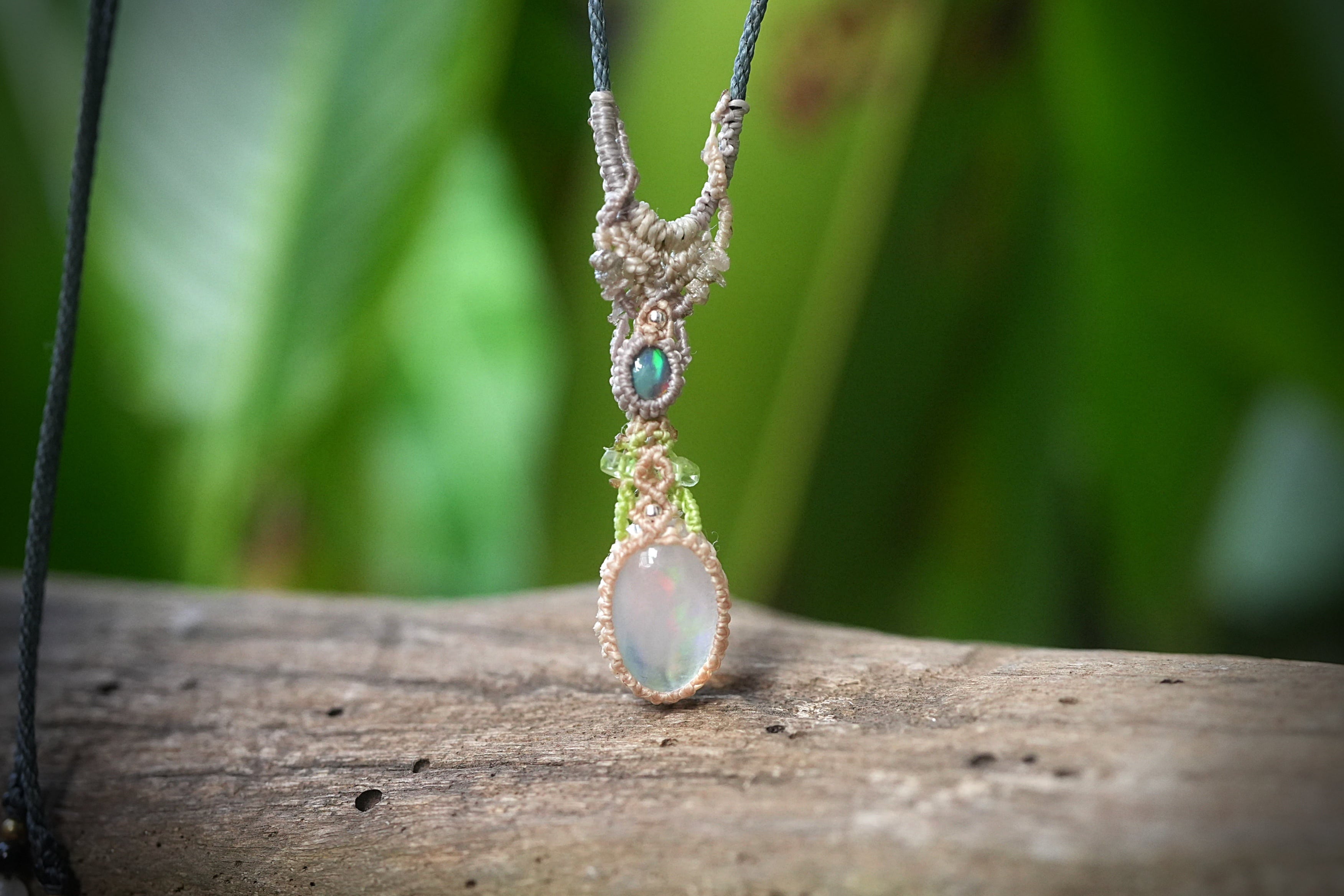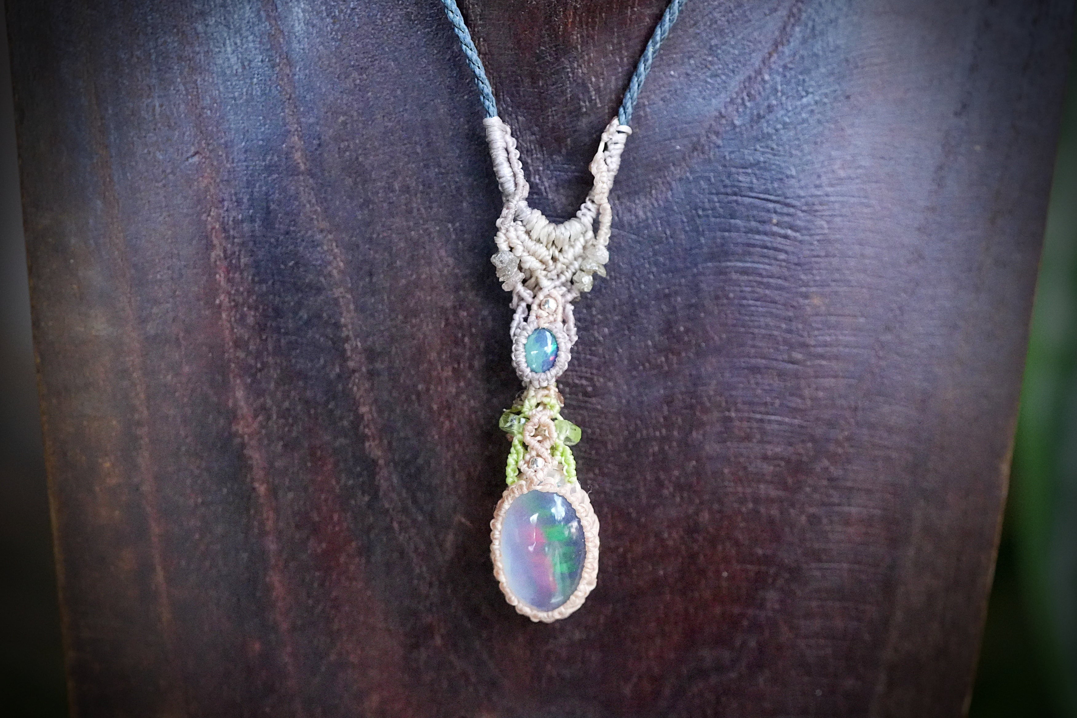 つぶつぶ透明遊色★ウォーターオパール マクラメネックレス2042