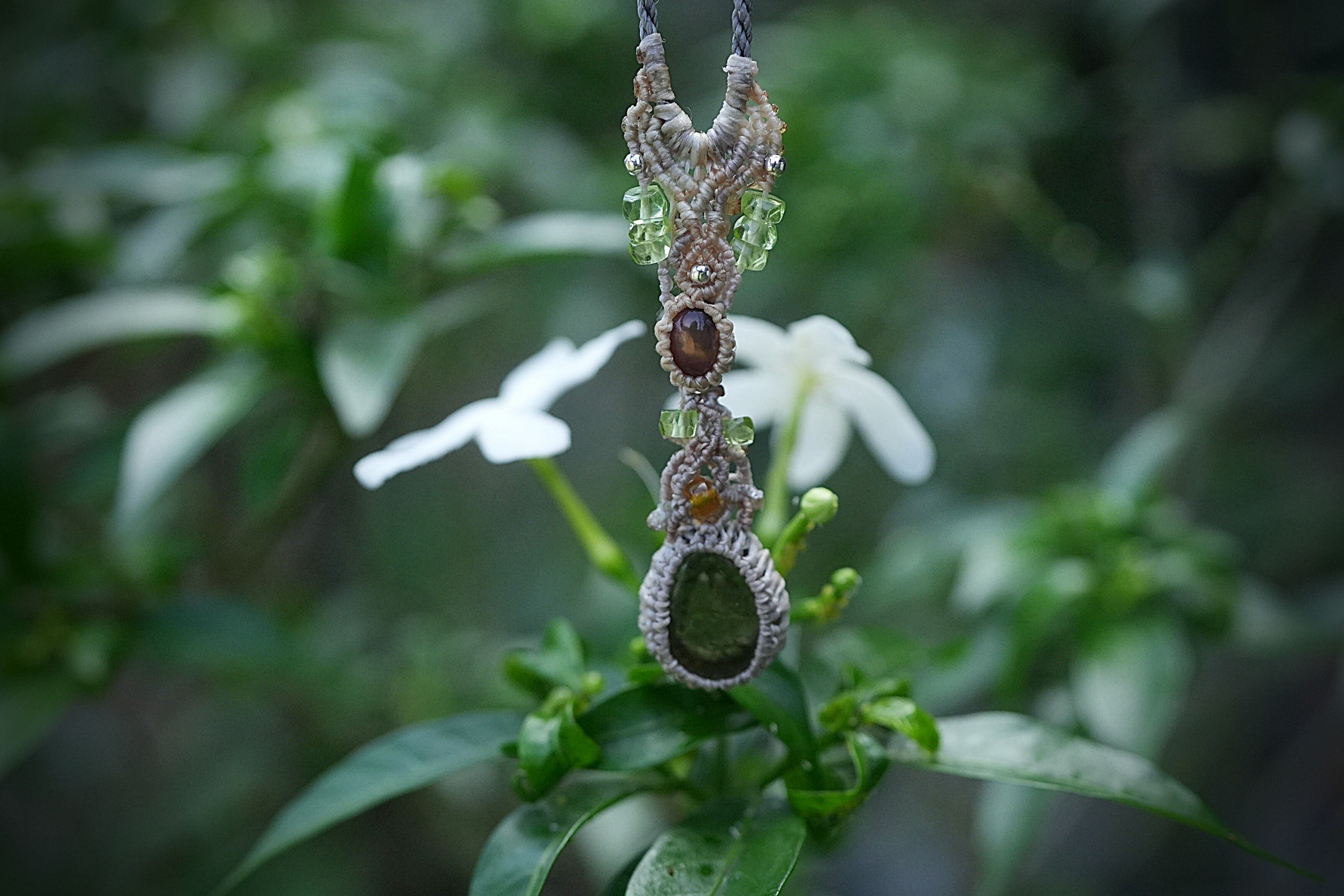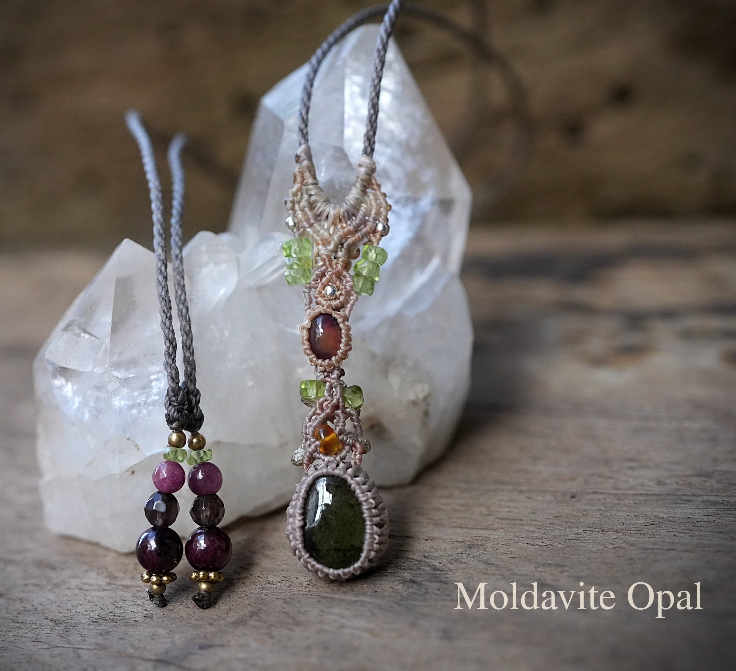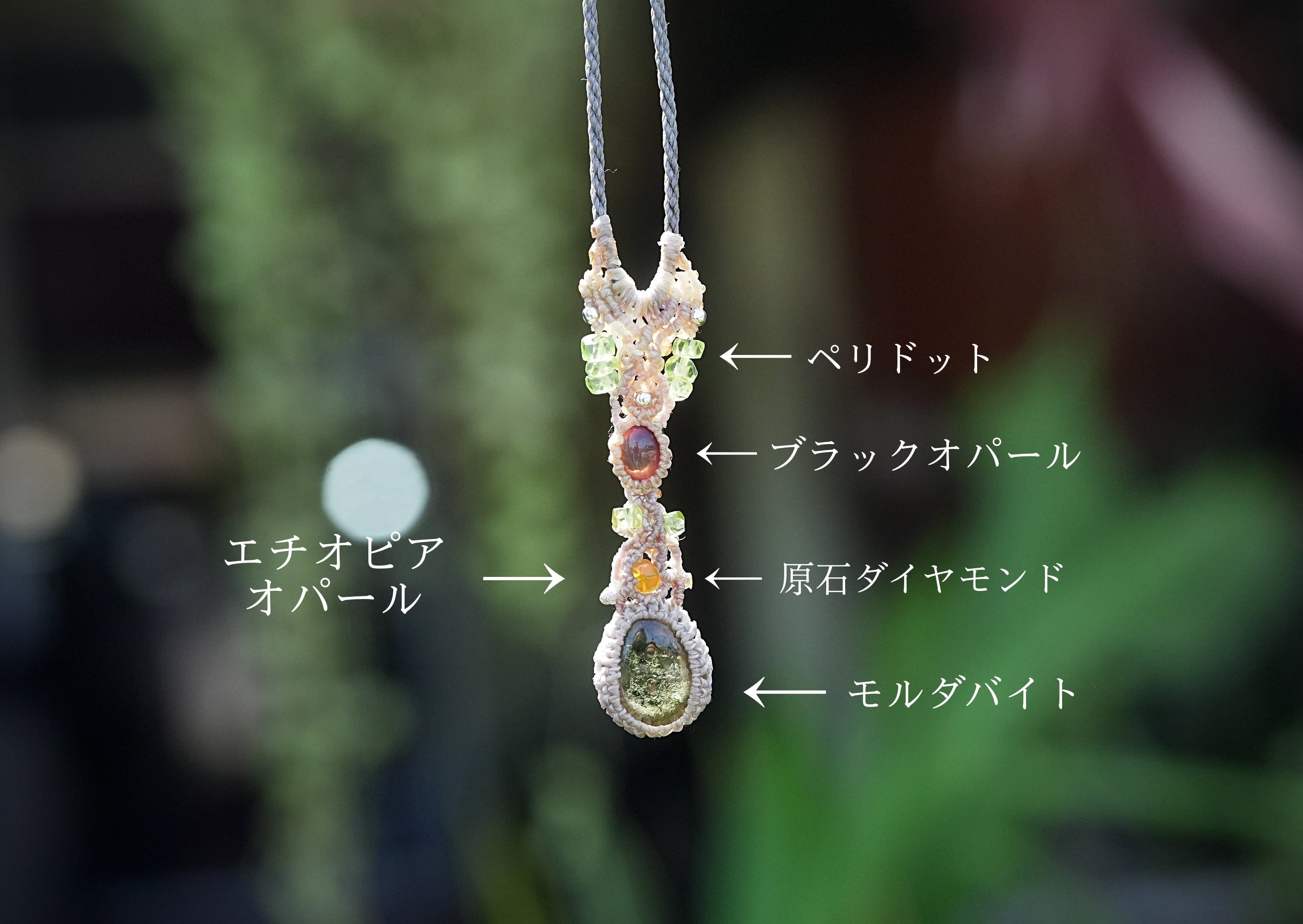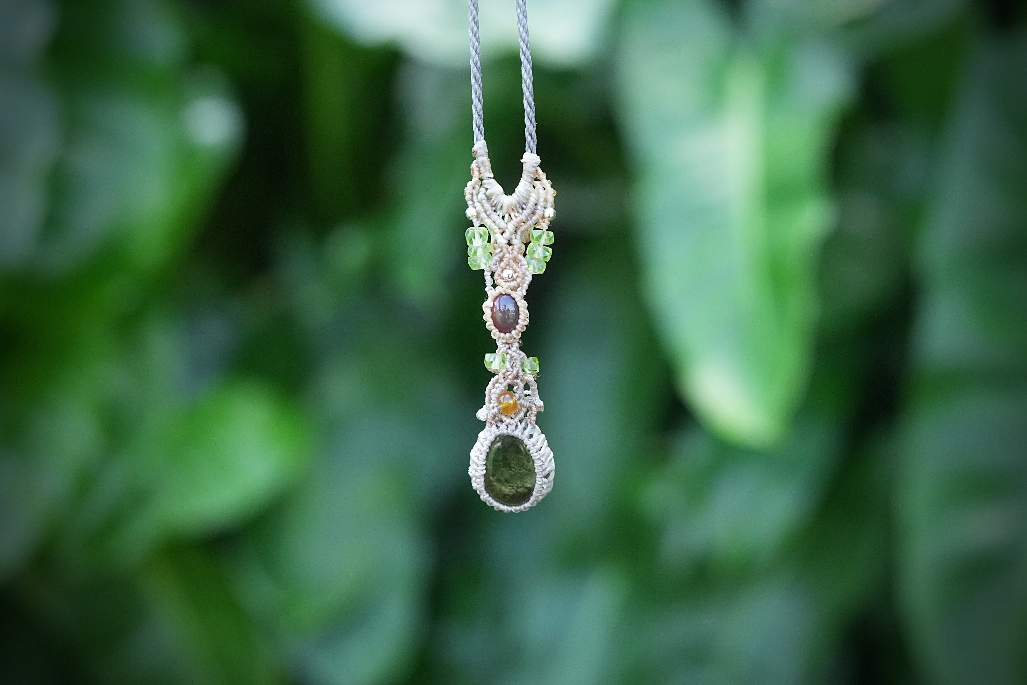 希少★古代の幻★14ctモルダバイト マクラメネックレス2041