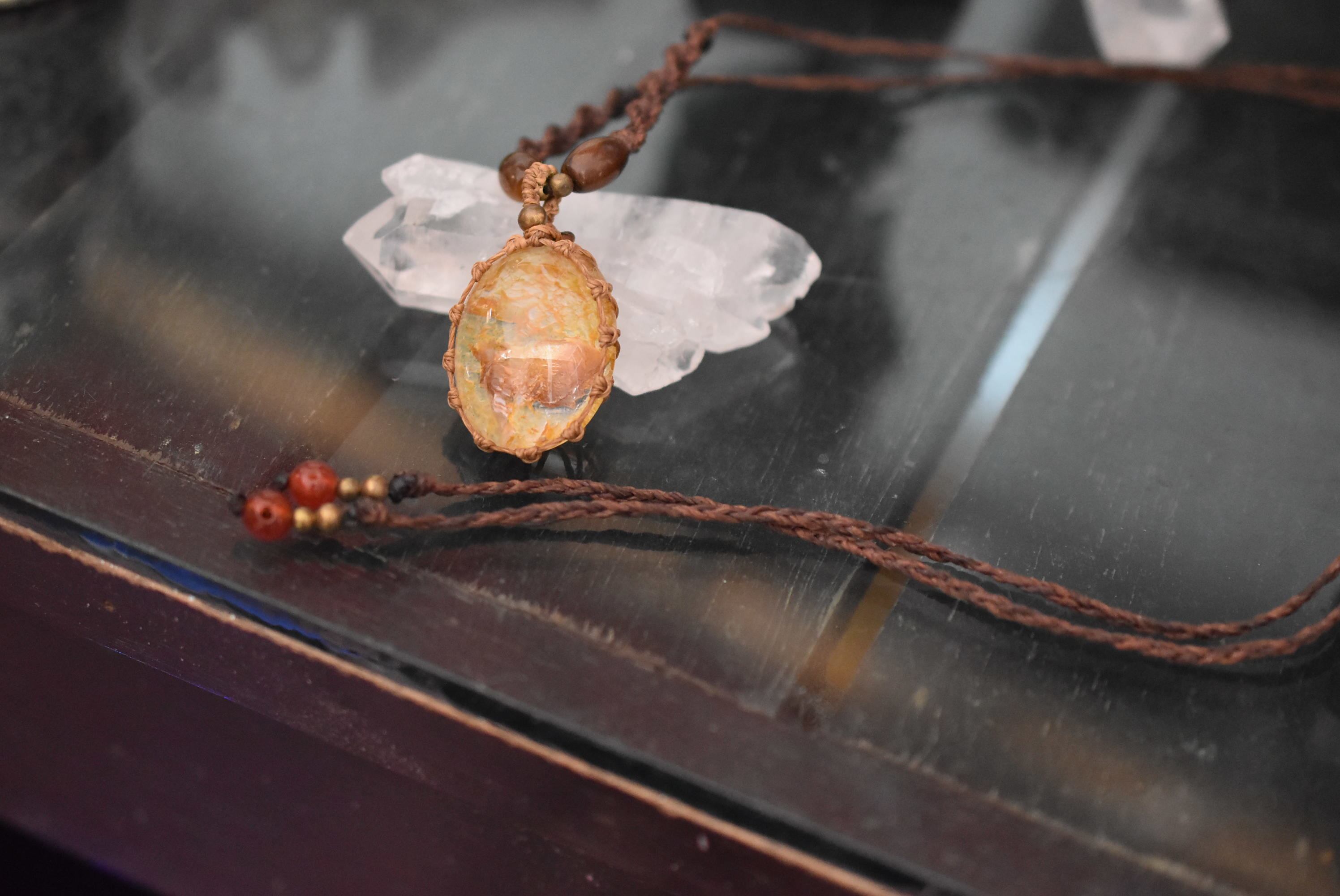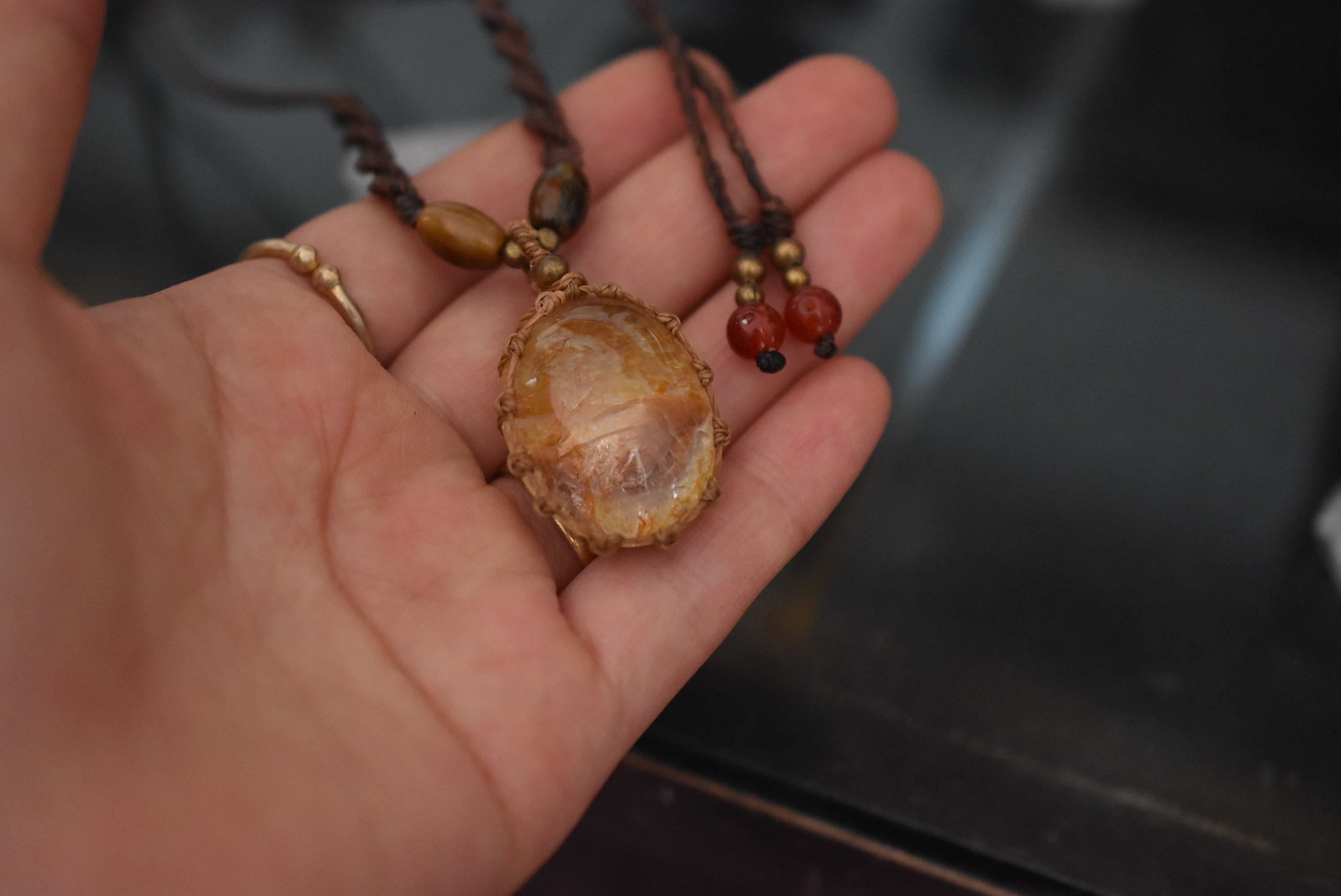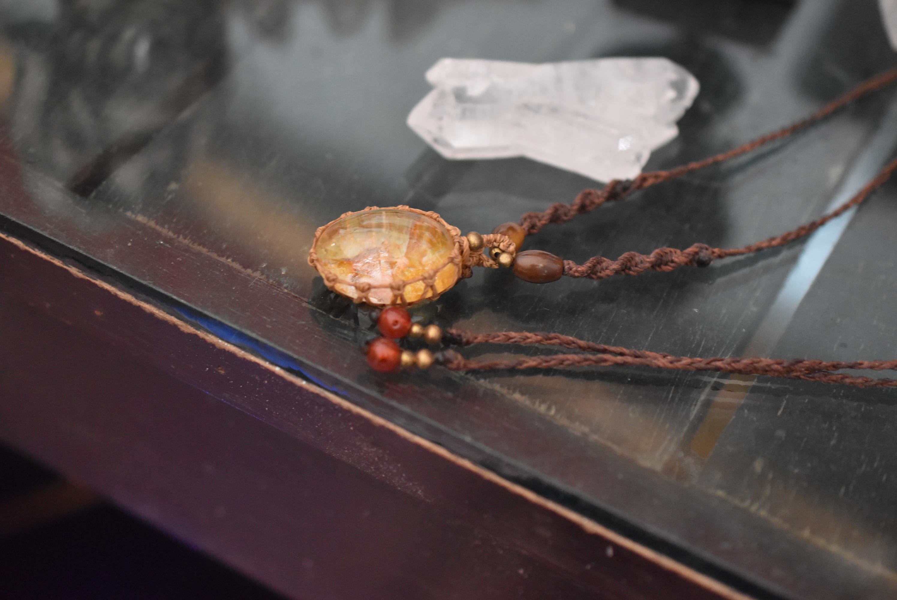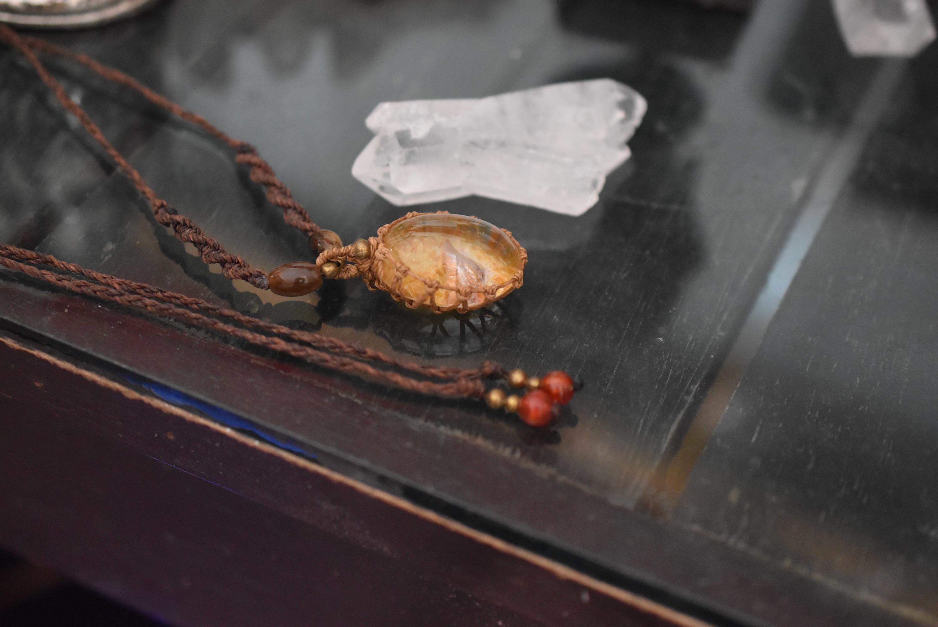 自然の神秘★湧き出るイエローインクルージョン★ガーデンクォーツ マクラメペンダント