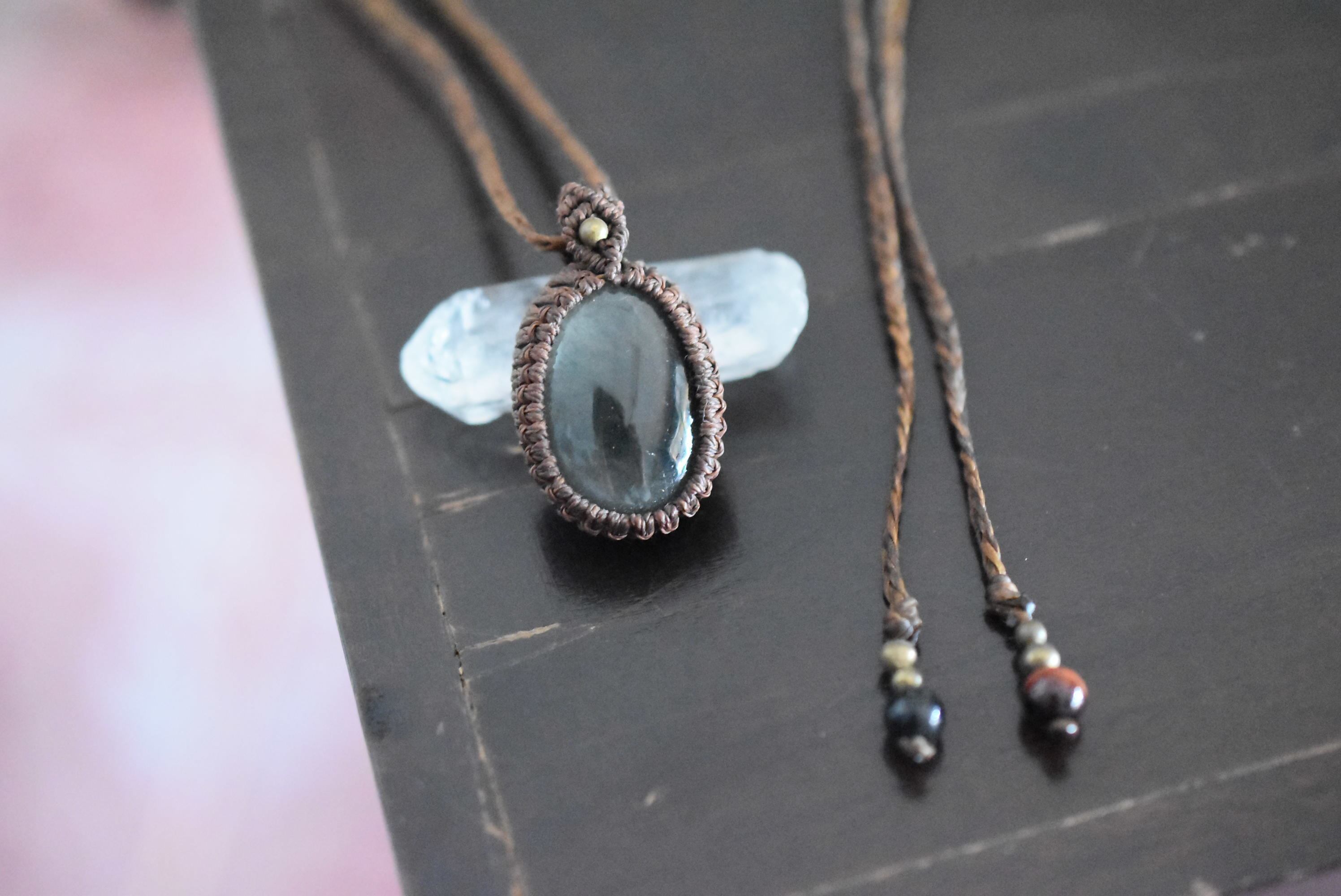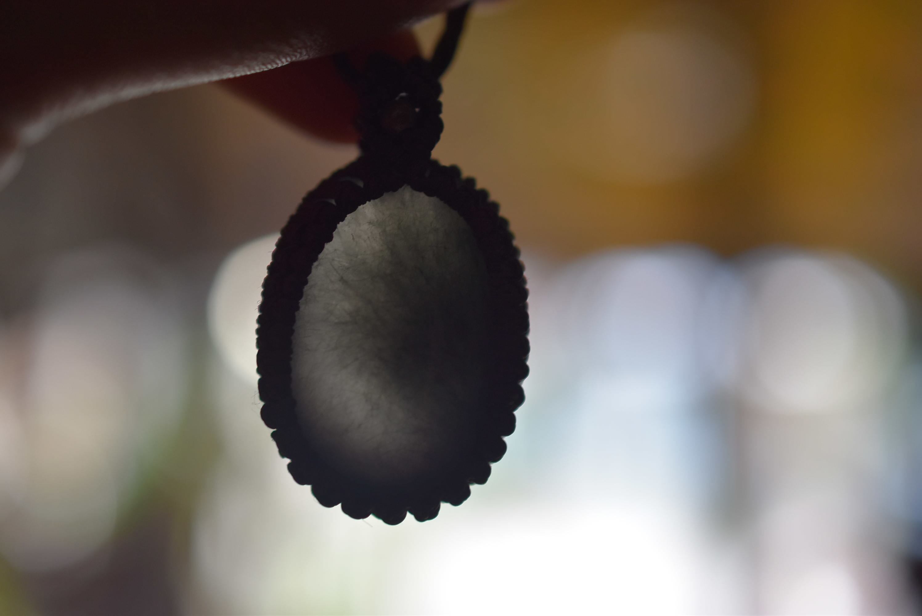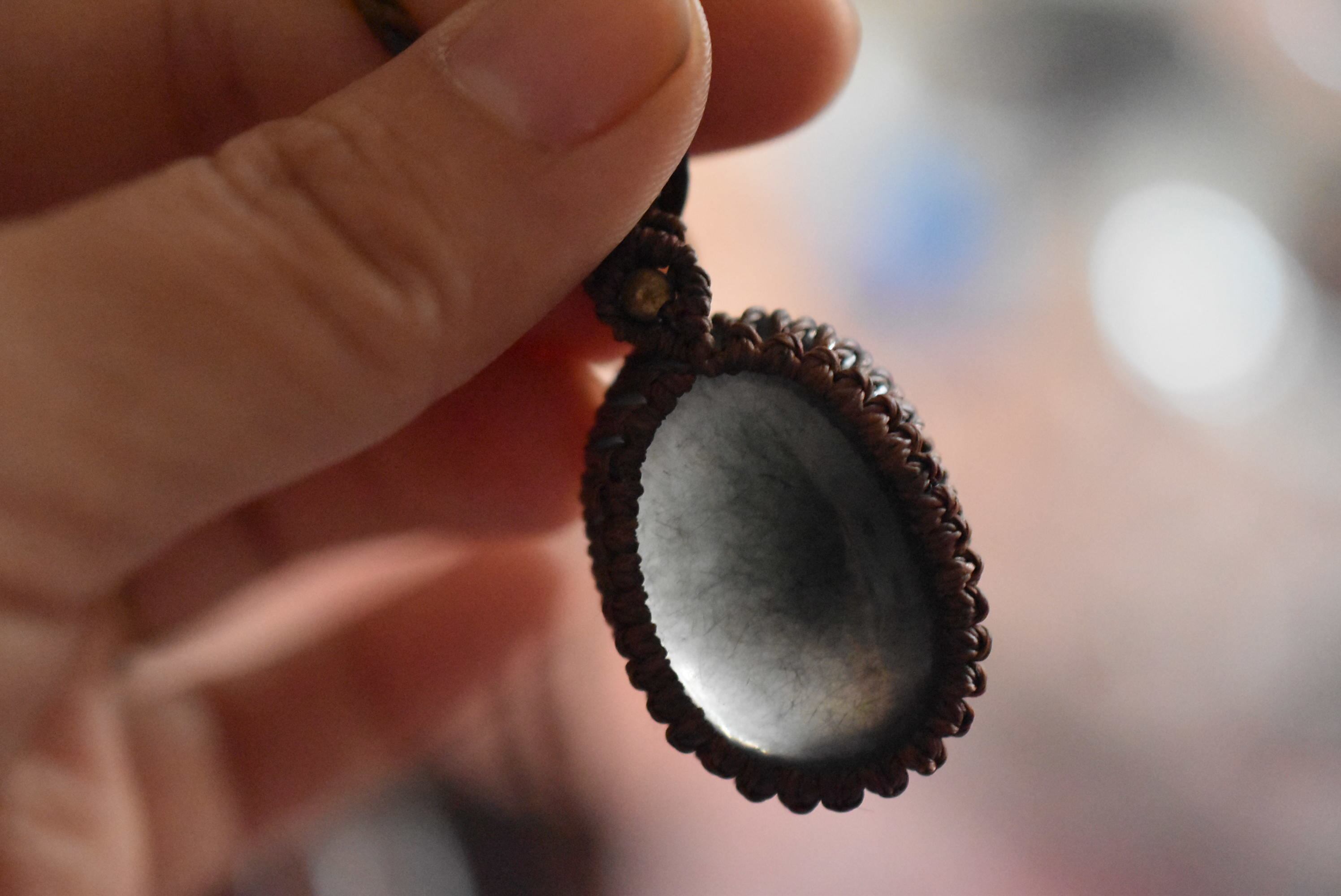 小さく細かい影が石全体をぼんやりと覆っているガーデンクォーツ の一種であるこのたびの天然石をシンプルにペンダントに仕上げました。