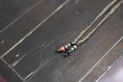 真鍮ビーズとレッドタイガーアイビーズ、ホークスアイビーズをあしらい、アンテティーク感たっぷりの格好の良いペンダントを制作しました。