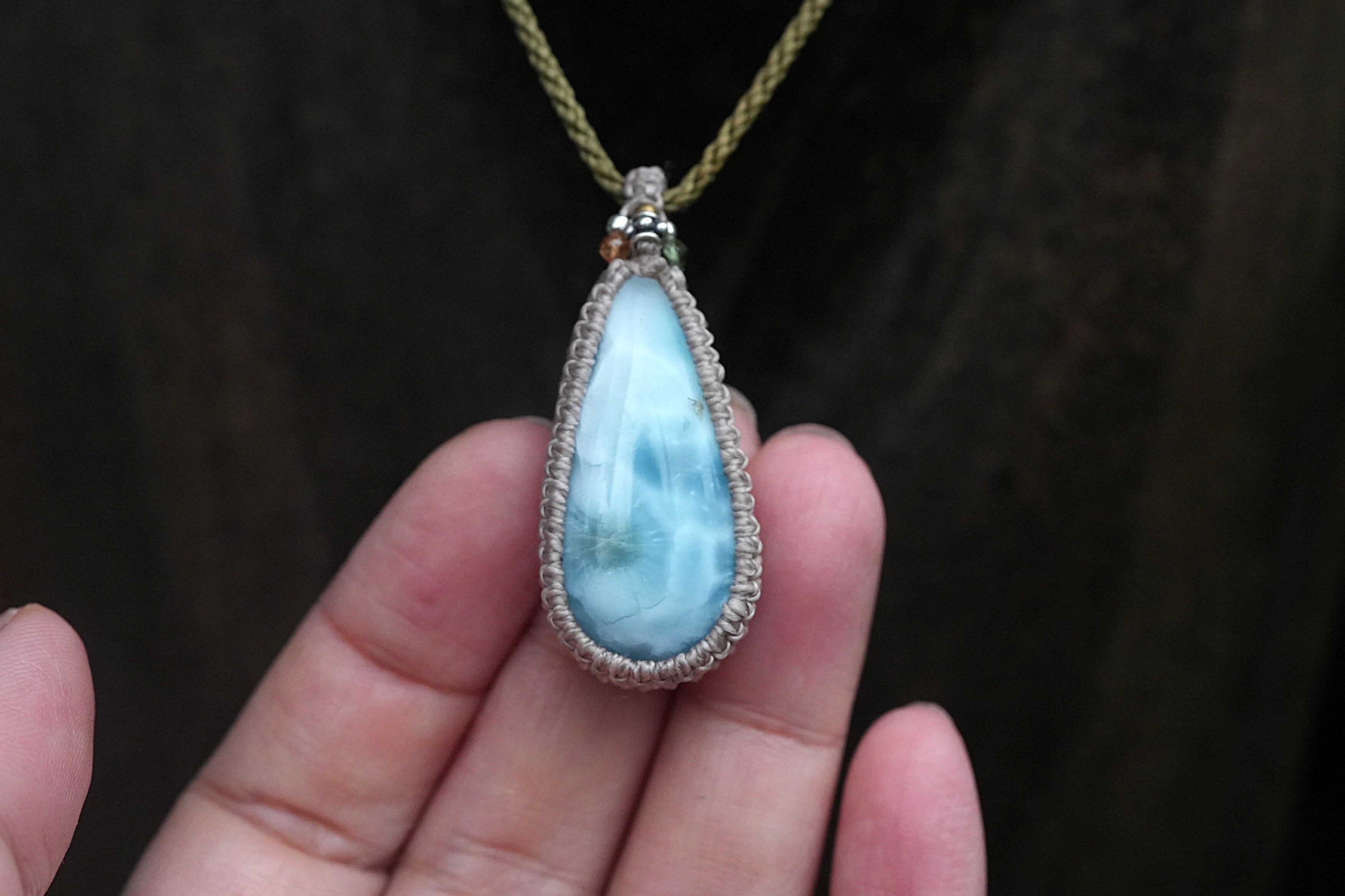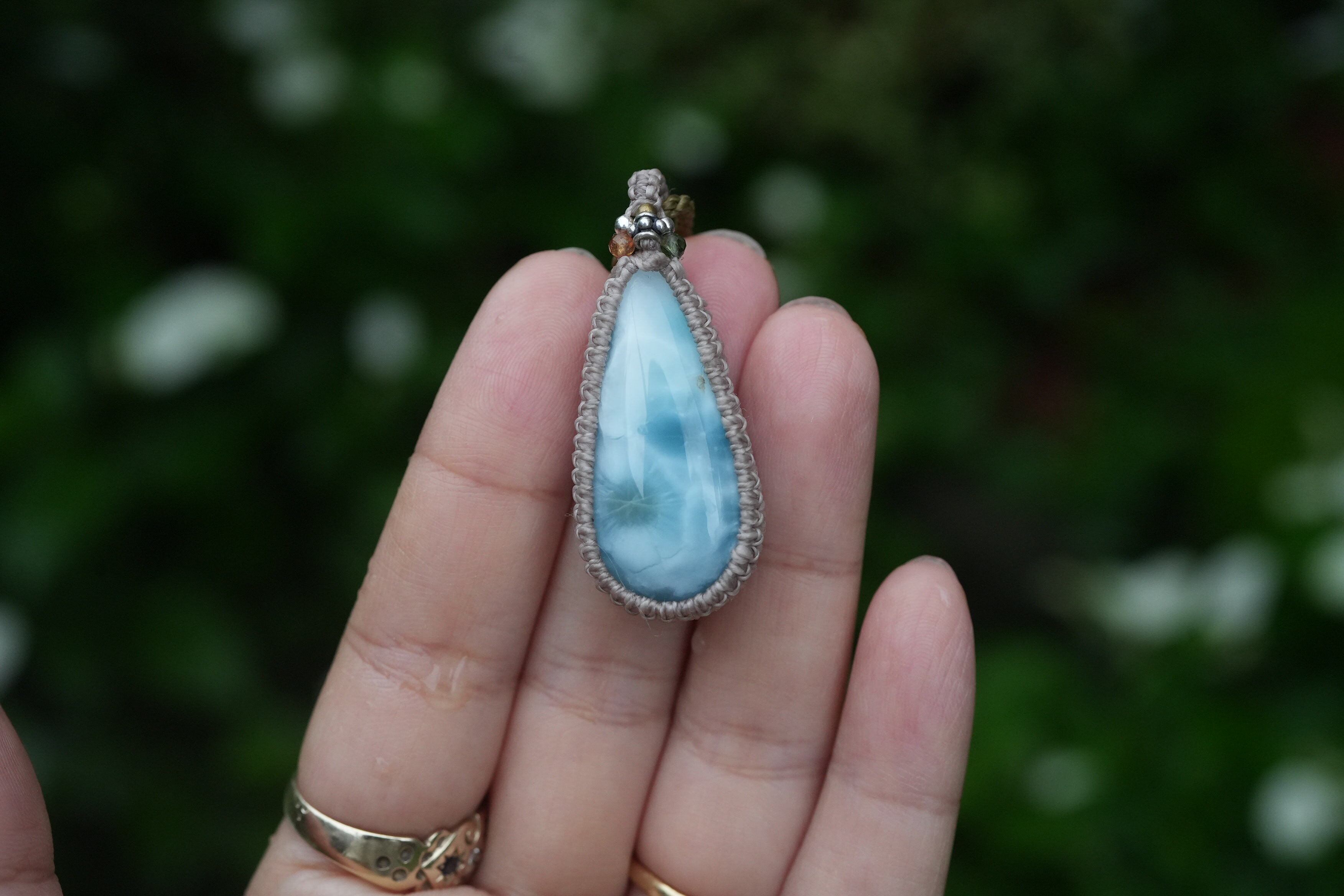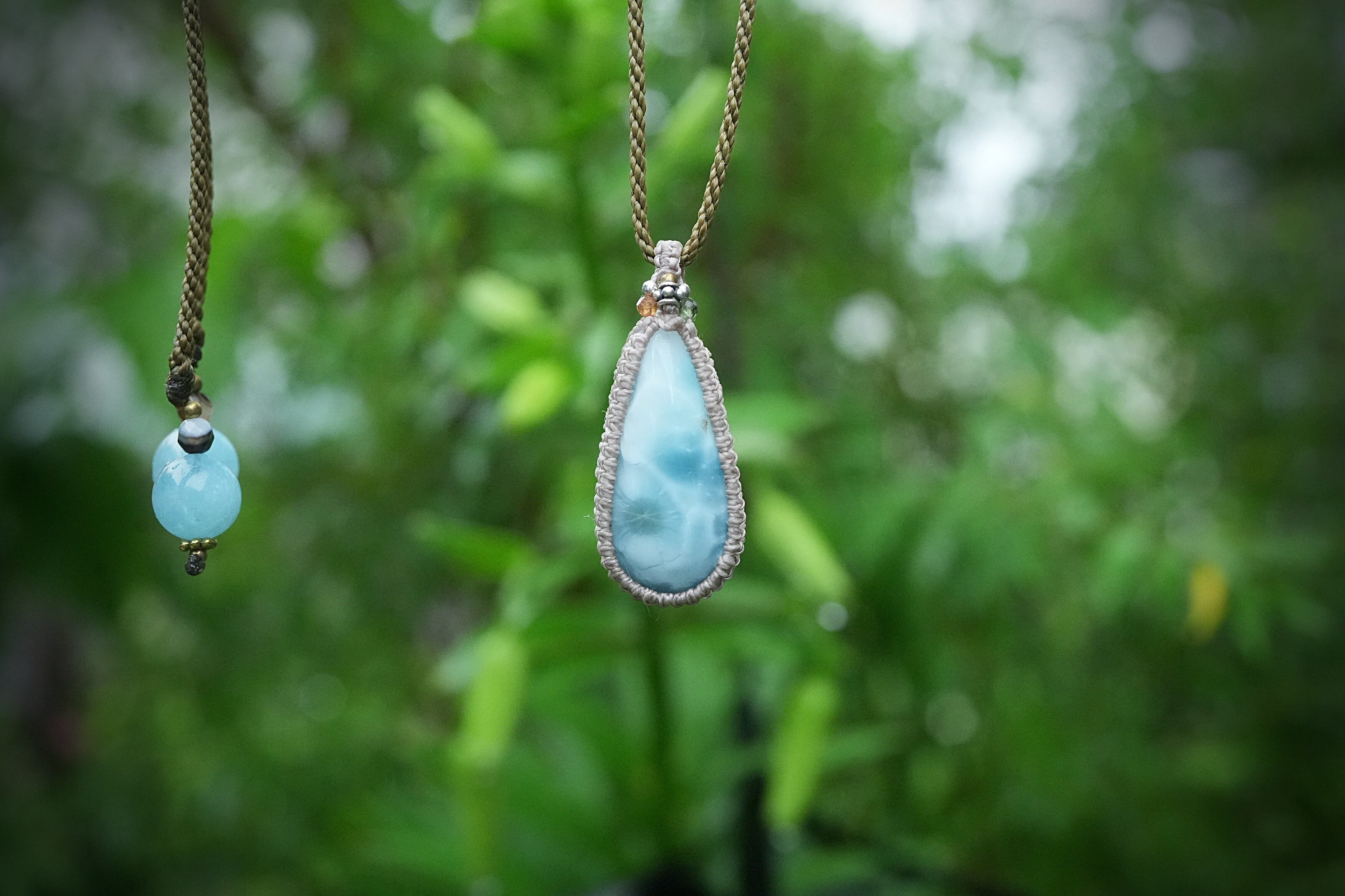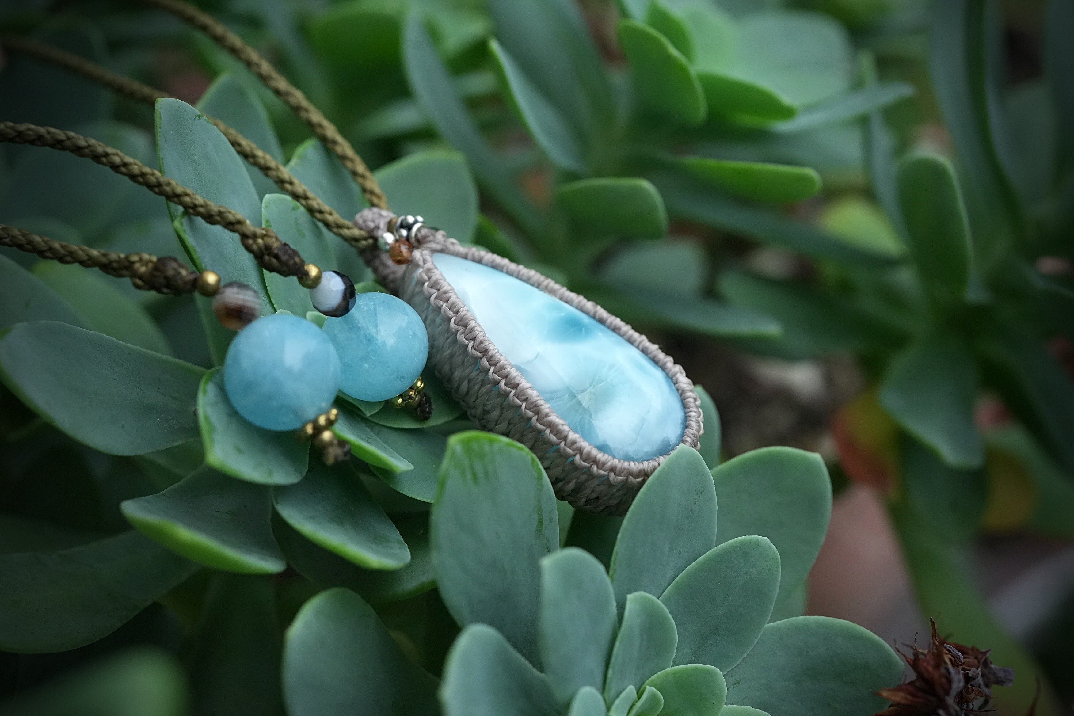 ◆このたびはオリーブ、カフェオレ色の蝋引き糸を使用しマクラメ編み装飾を施しました。