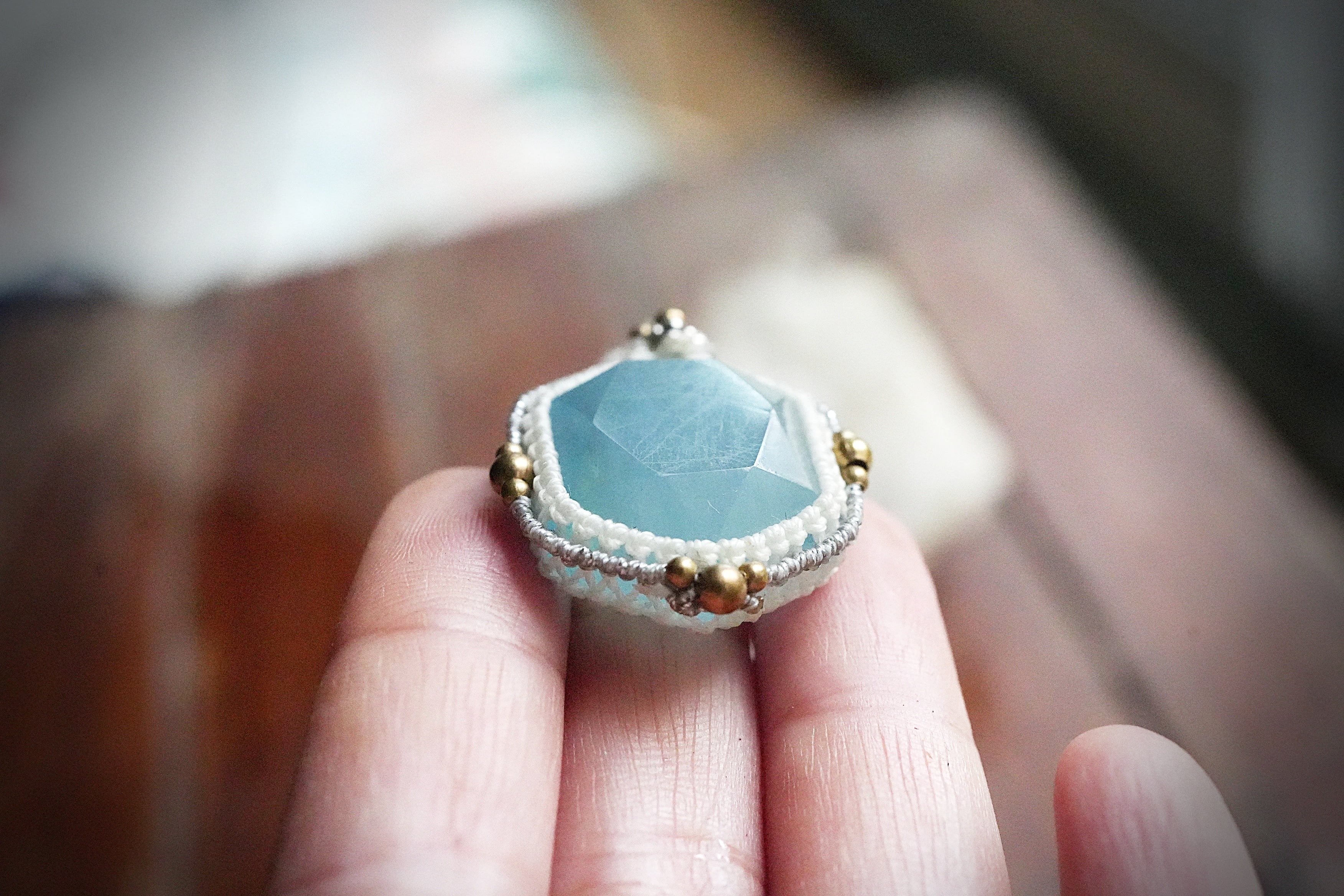 このたびは石の周りを真鍮ビーズでアイキャッチをつくり