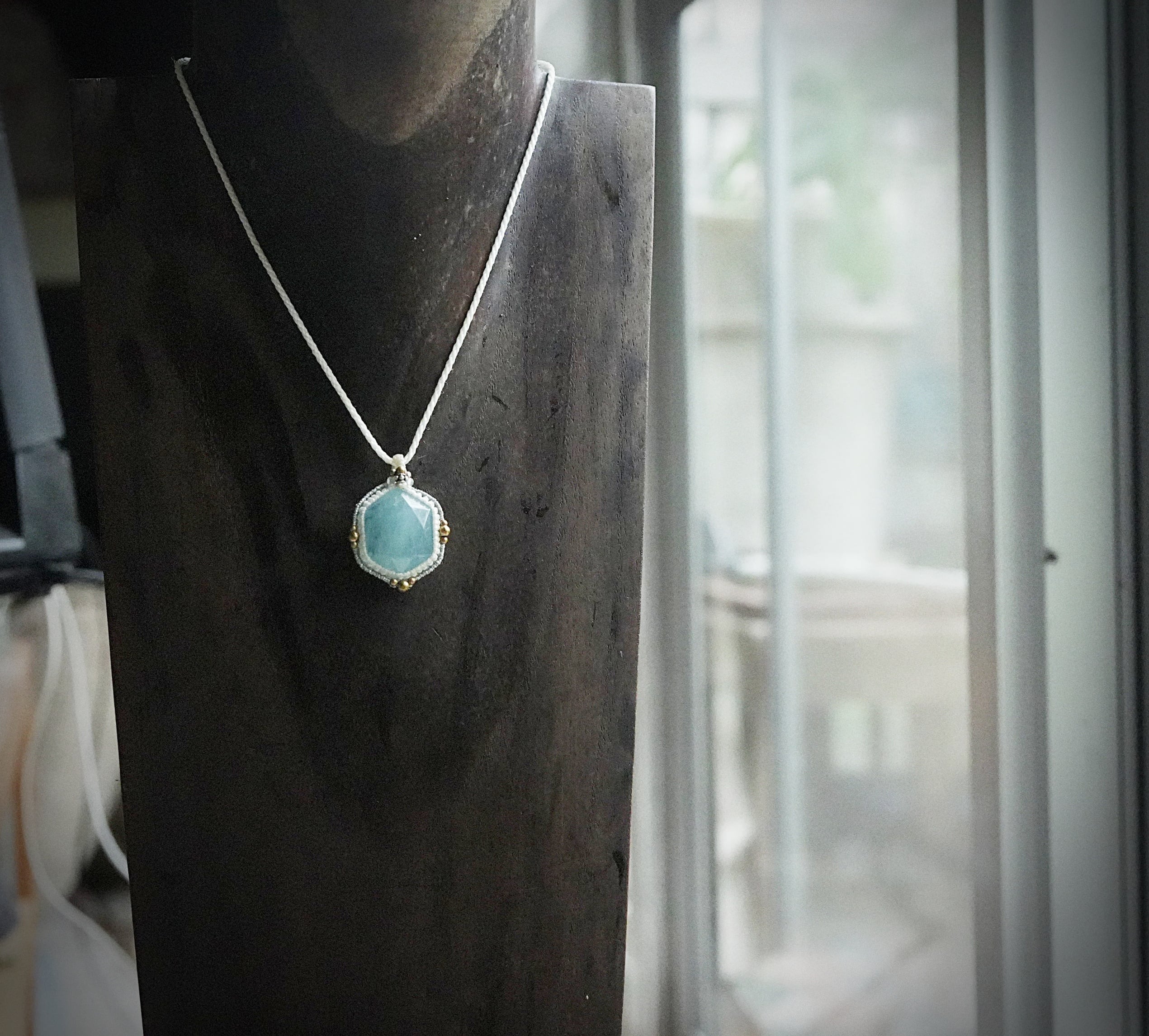 六芒星★アクアマリン マクラメネックレス2048