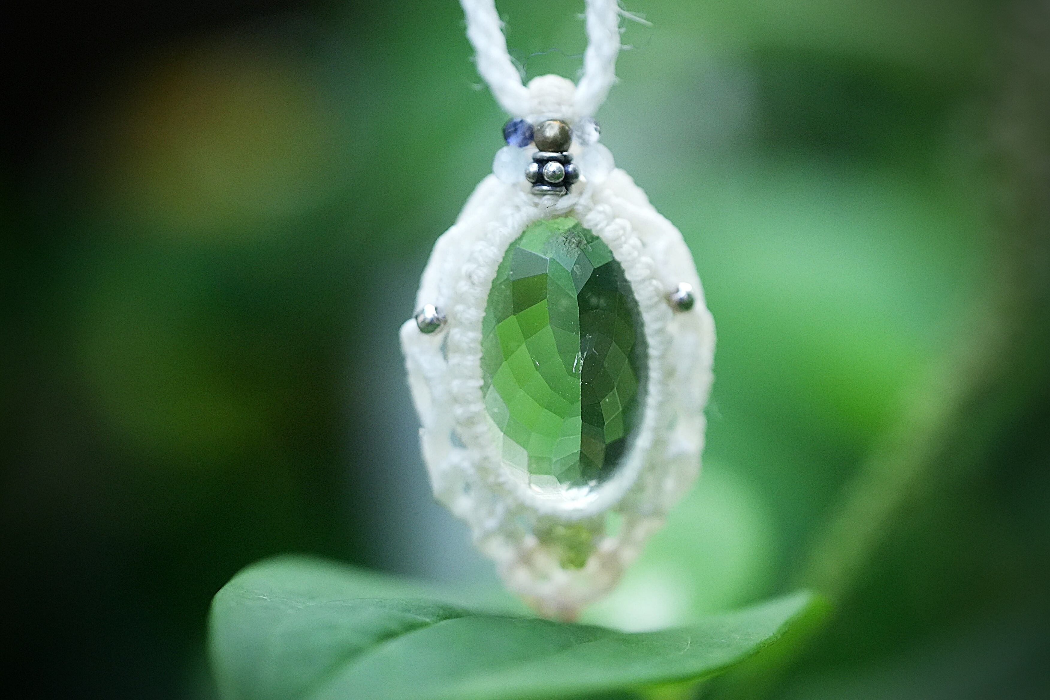 ほんのりグリーン★18ctプラシオライト マクラメネックレス 2052