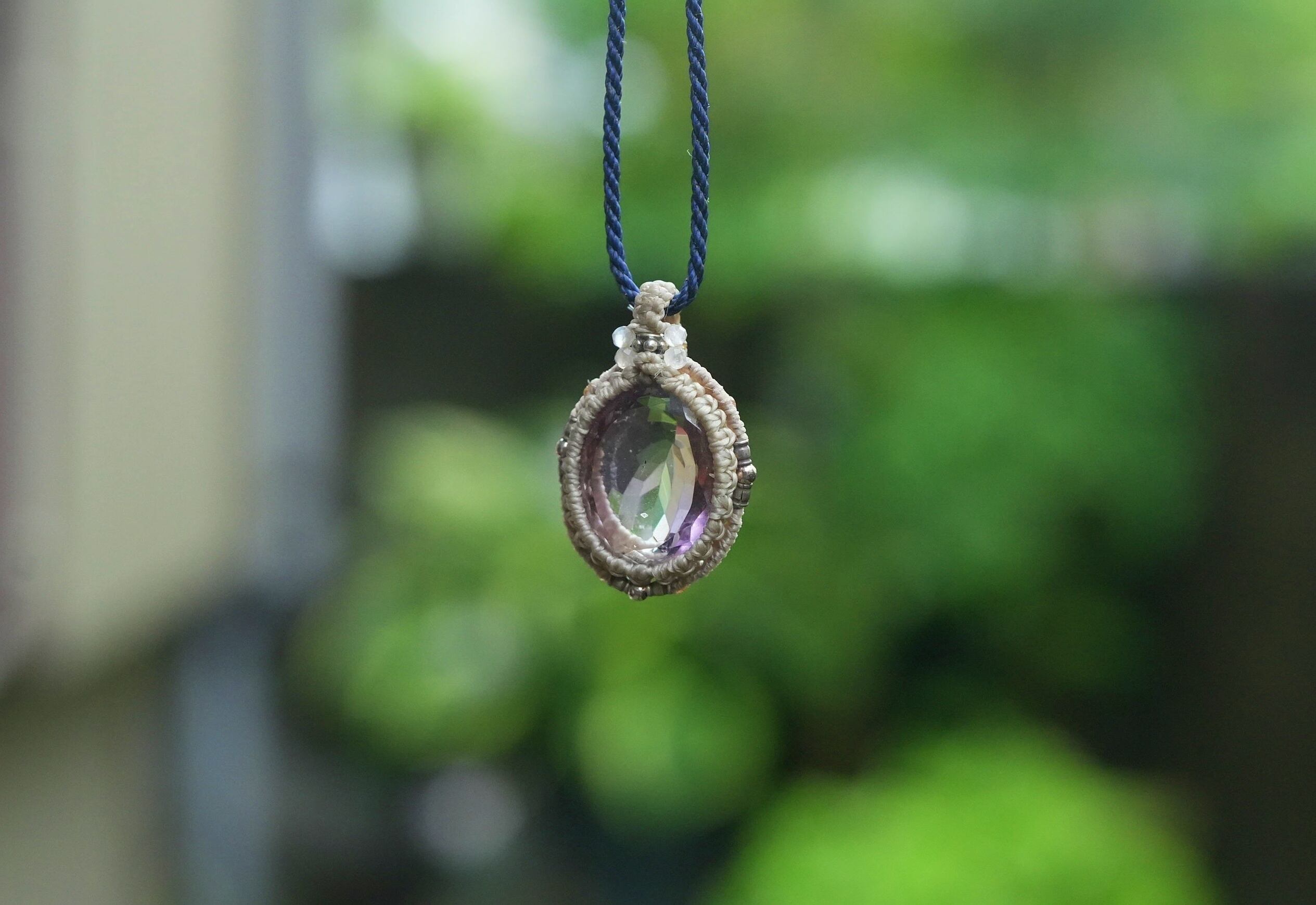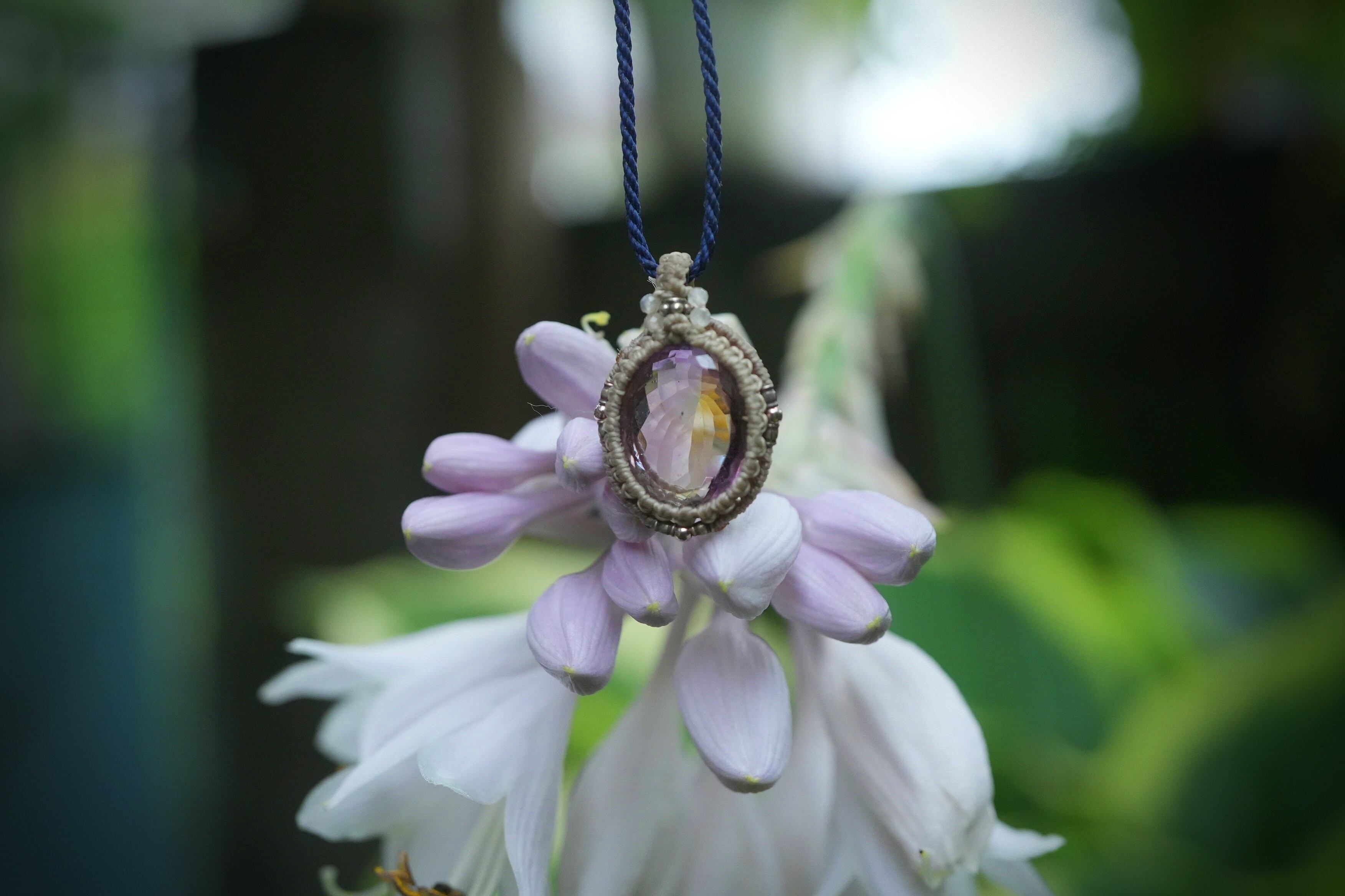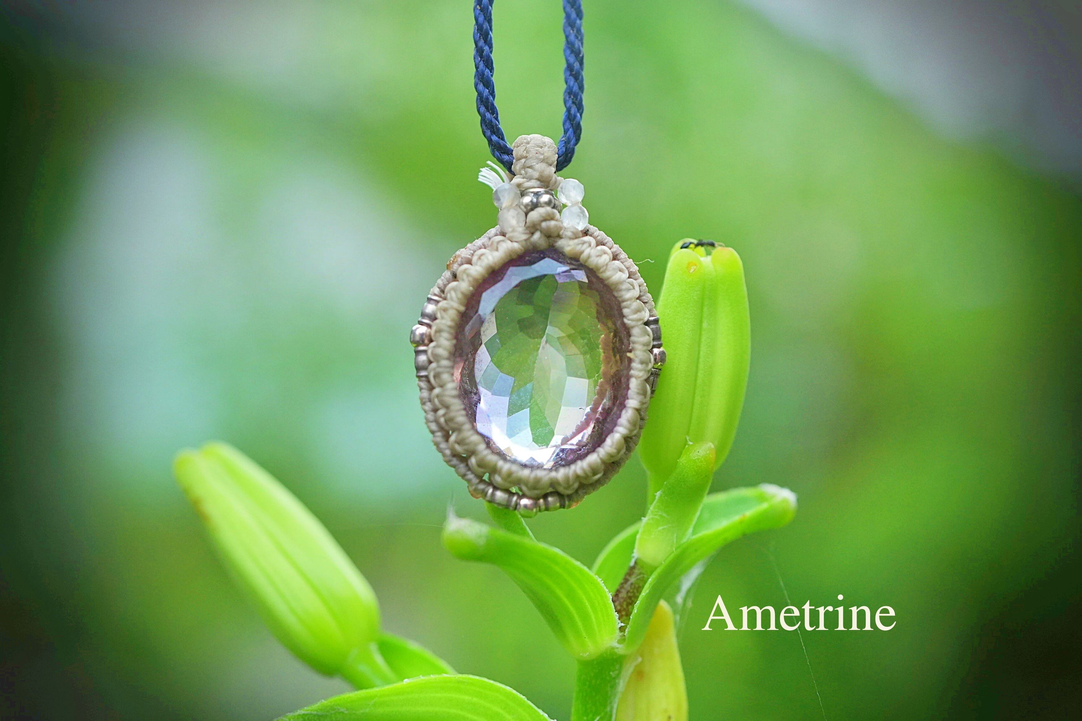 ファセットカット★宝石アメトリン マクラメネックレス 2053