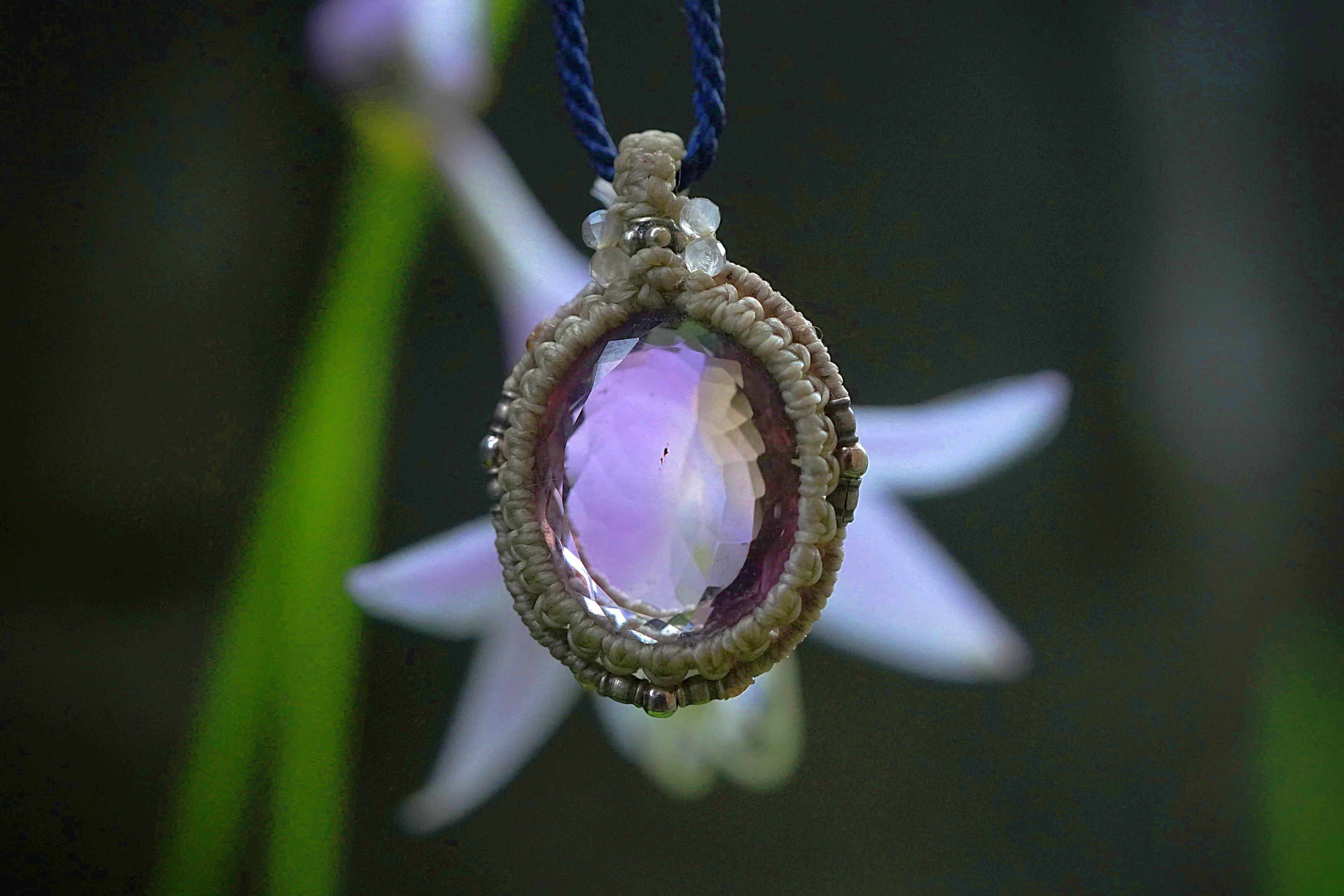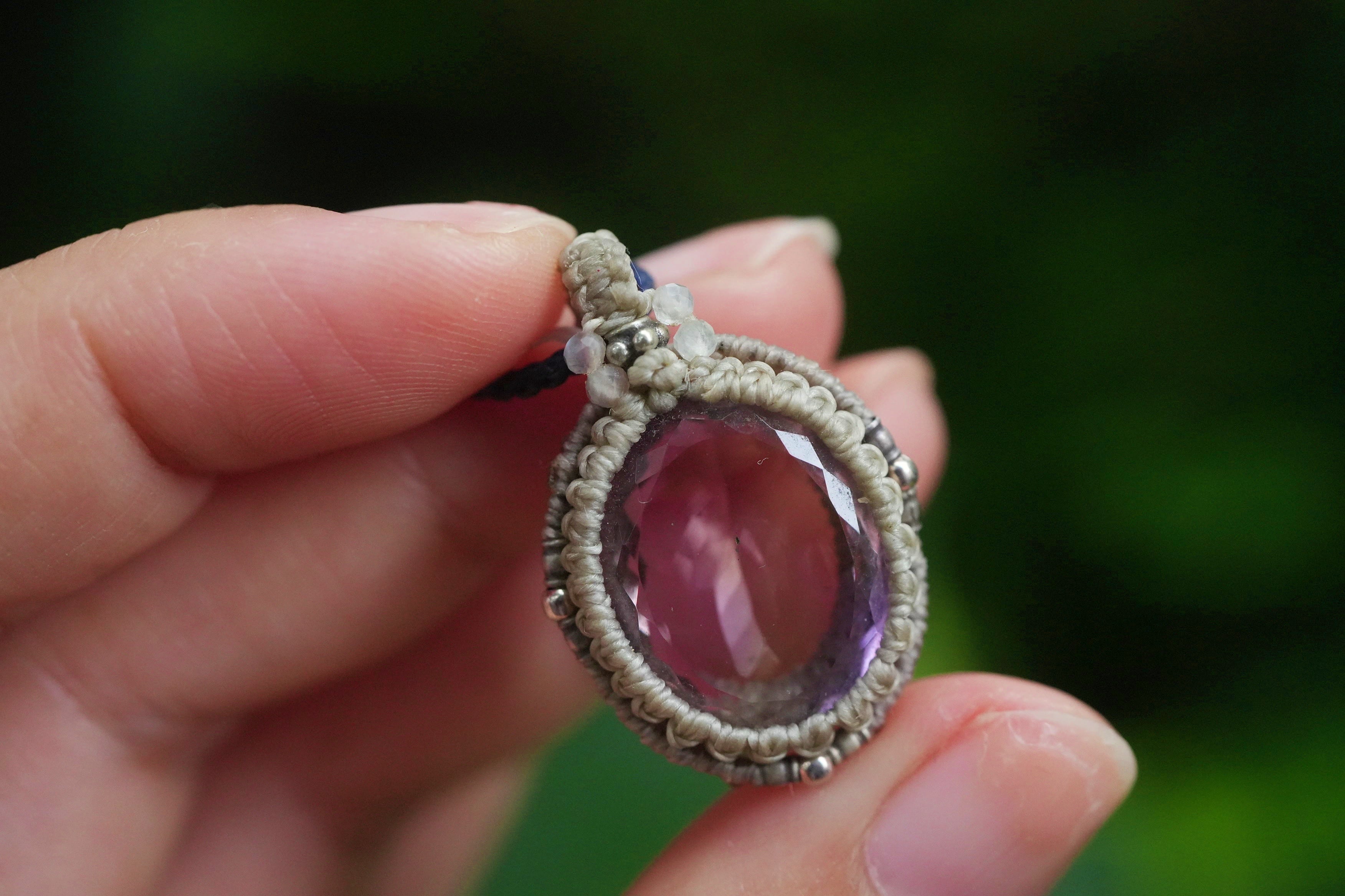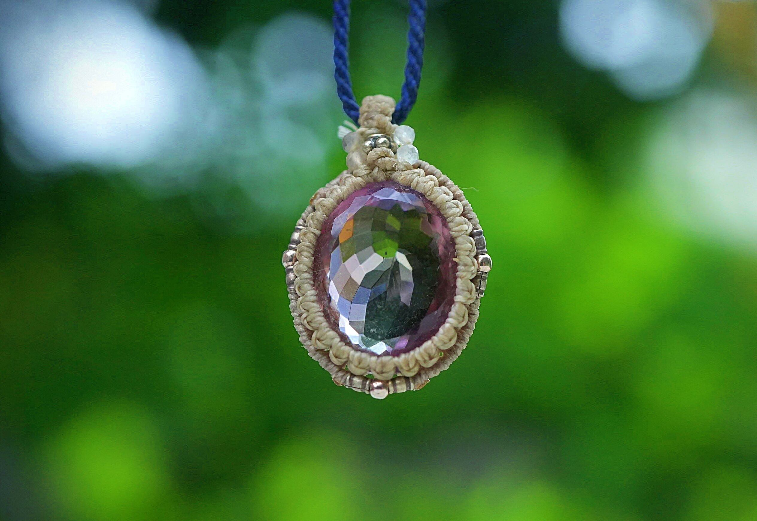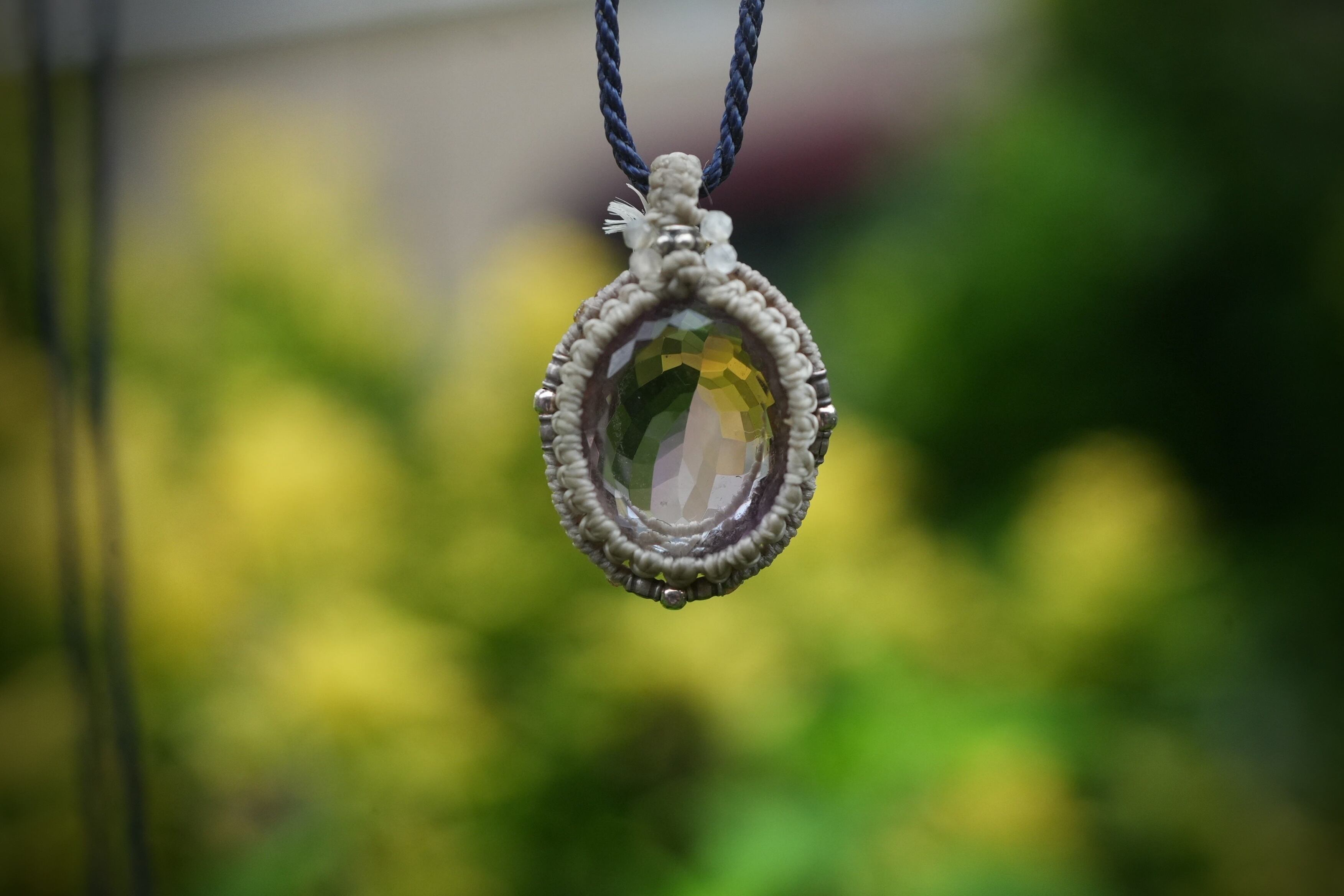 ファセットカット★宝石アメトリン マクラメネックレス 2053