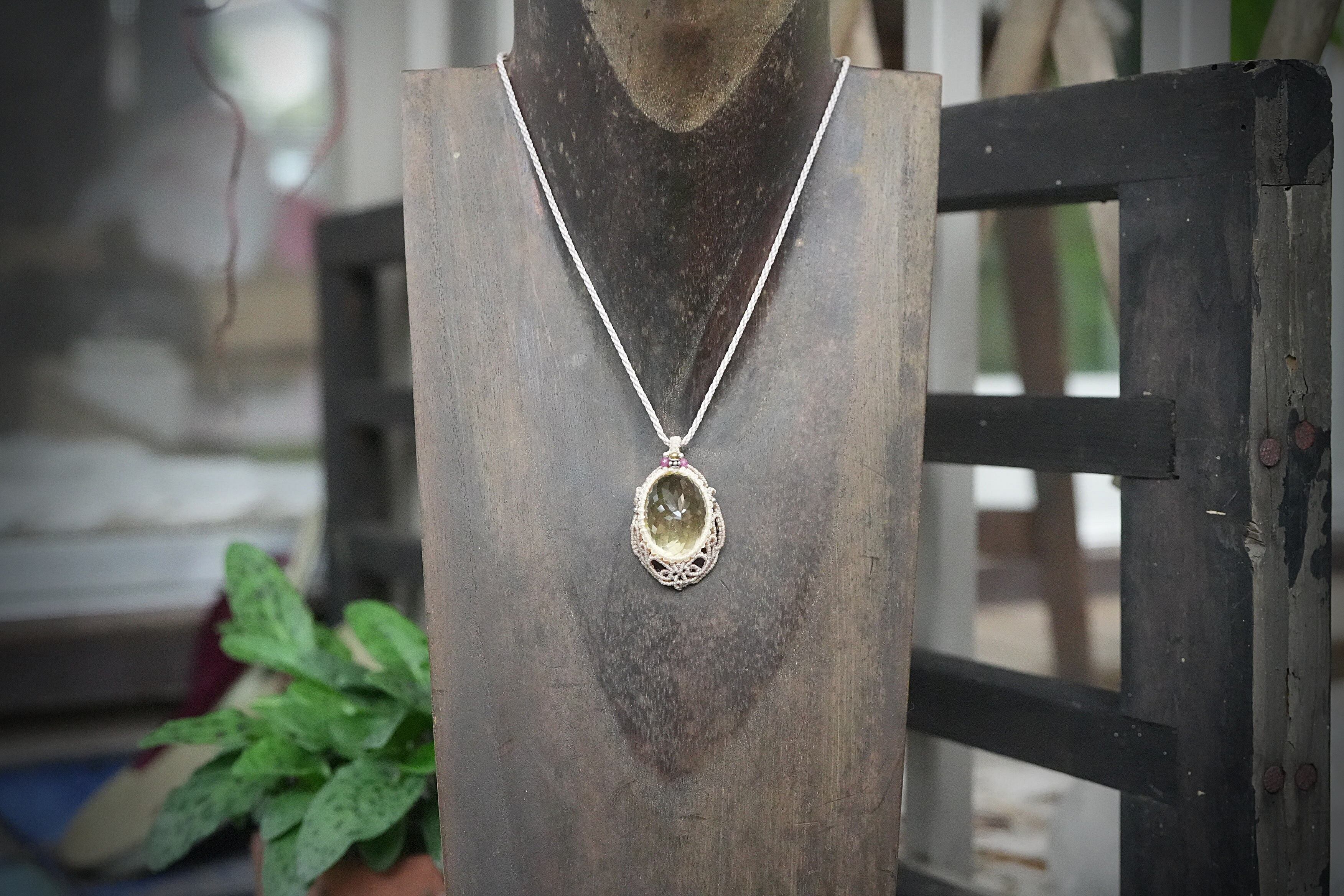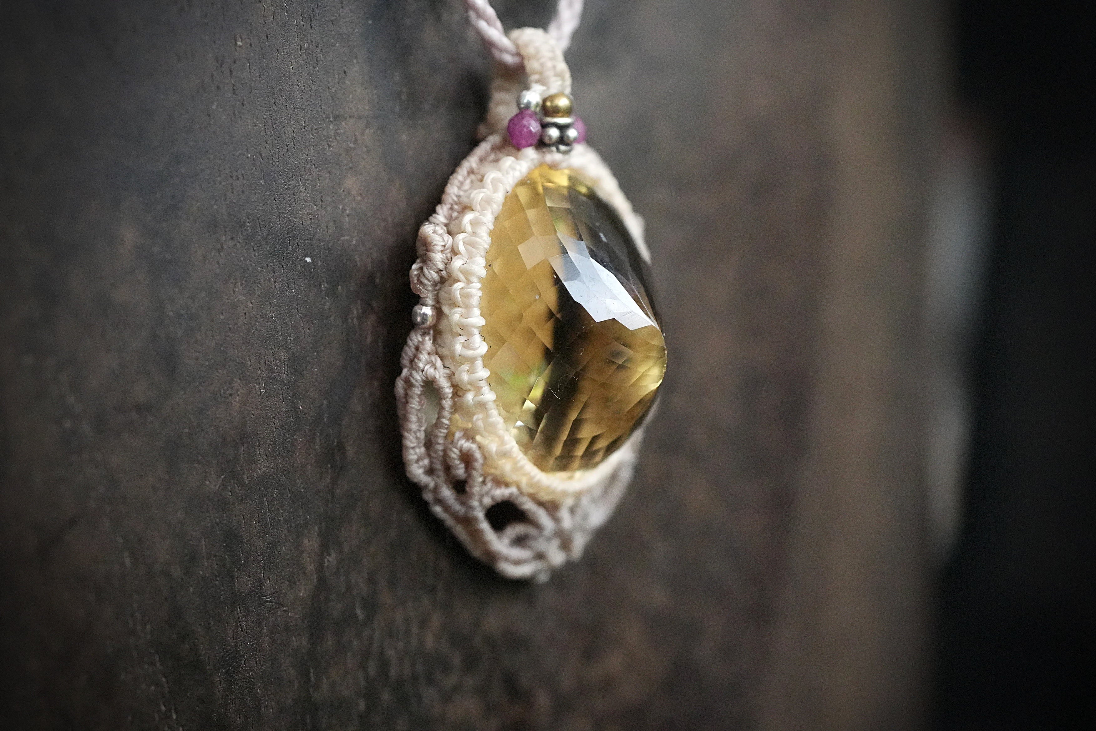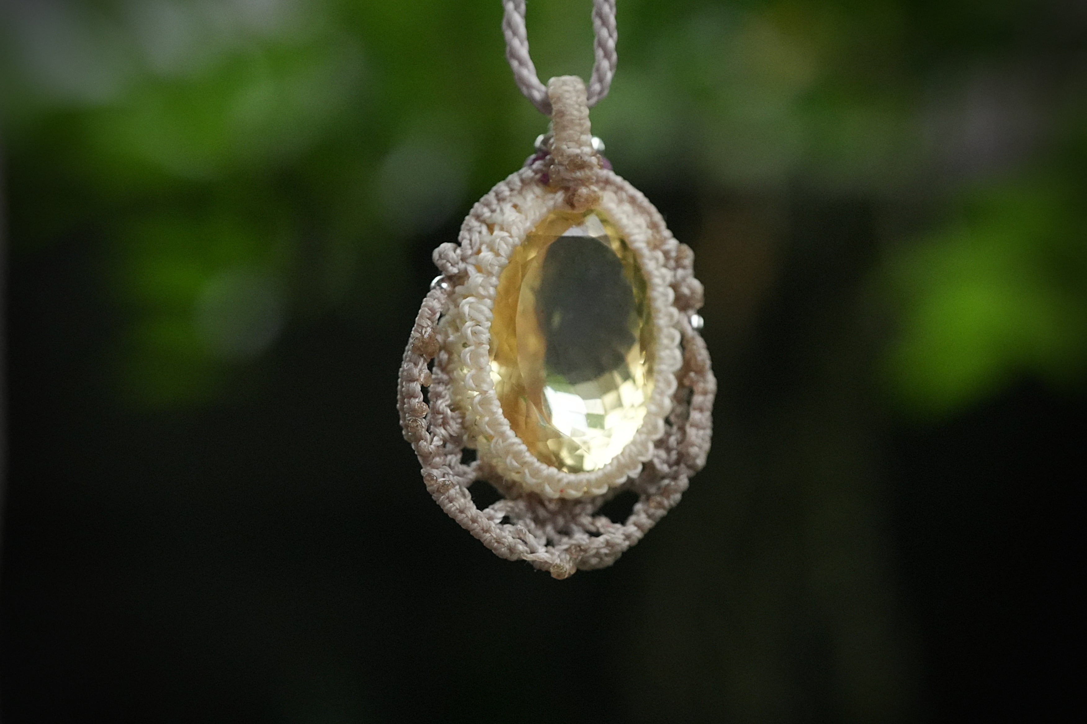 金貨の輝き★ファセットカット★シトリン マクラメネックレス2054