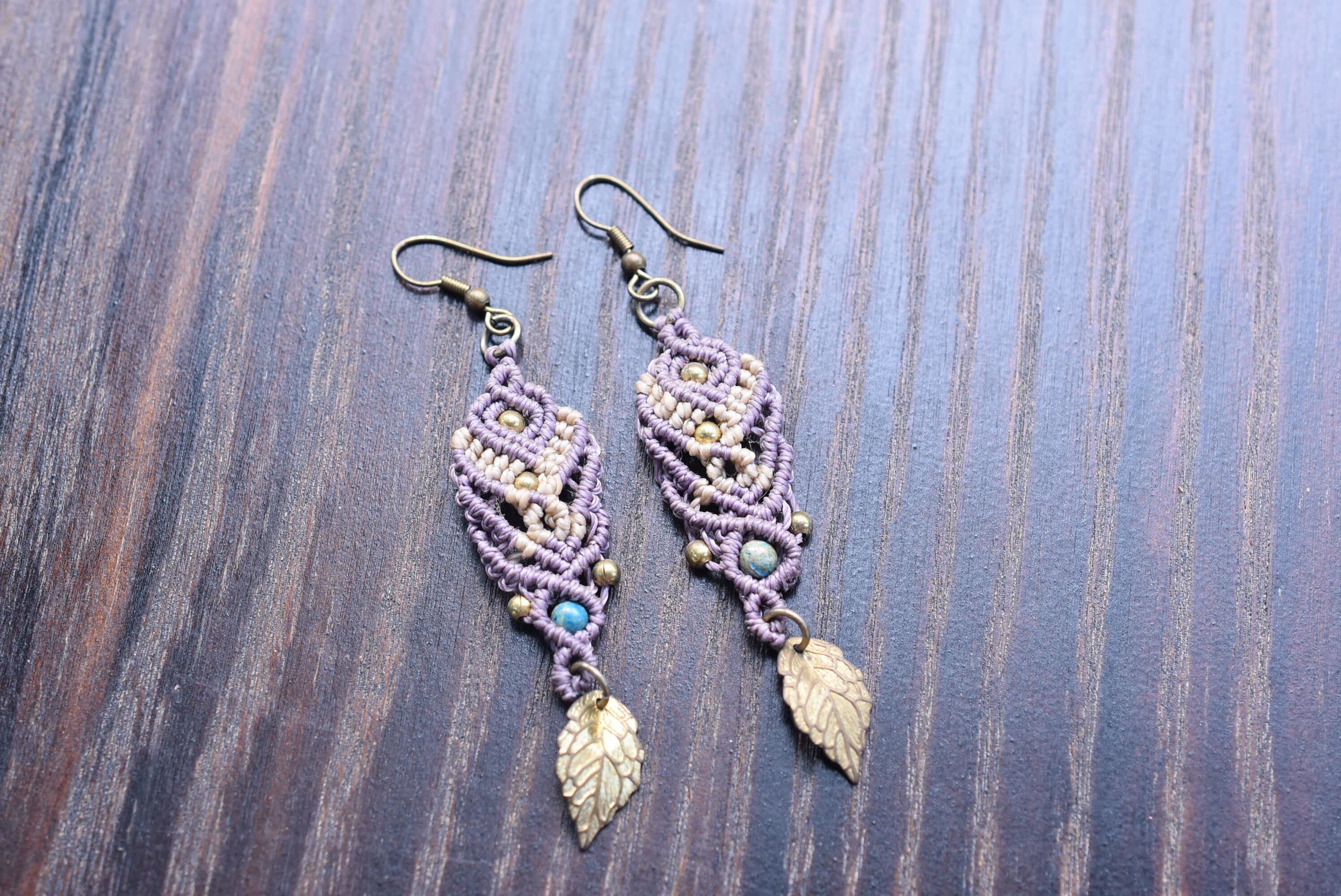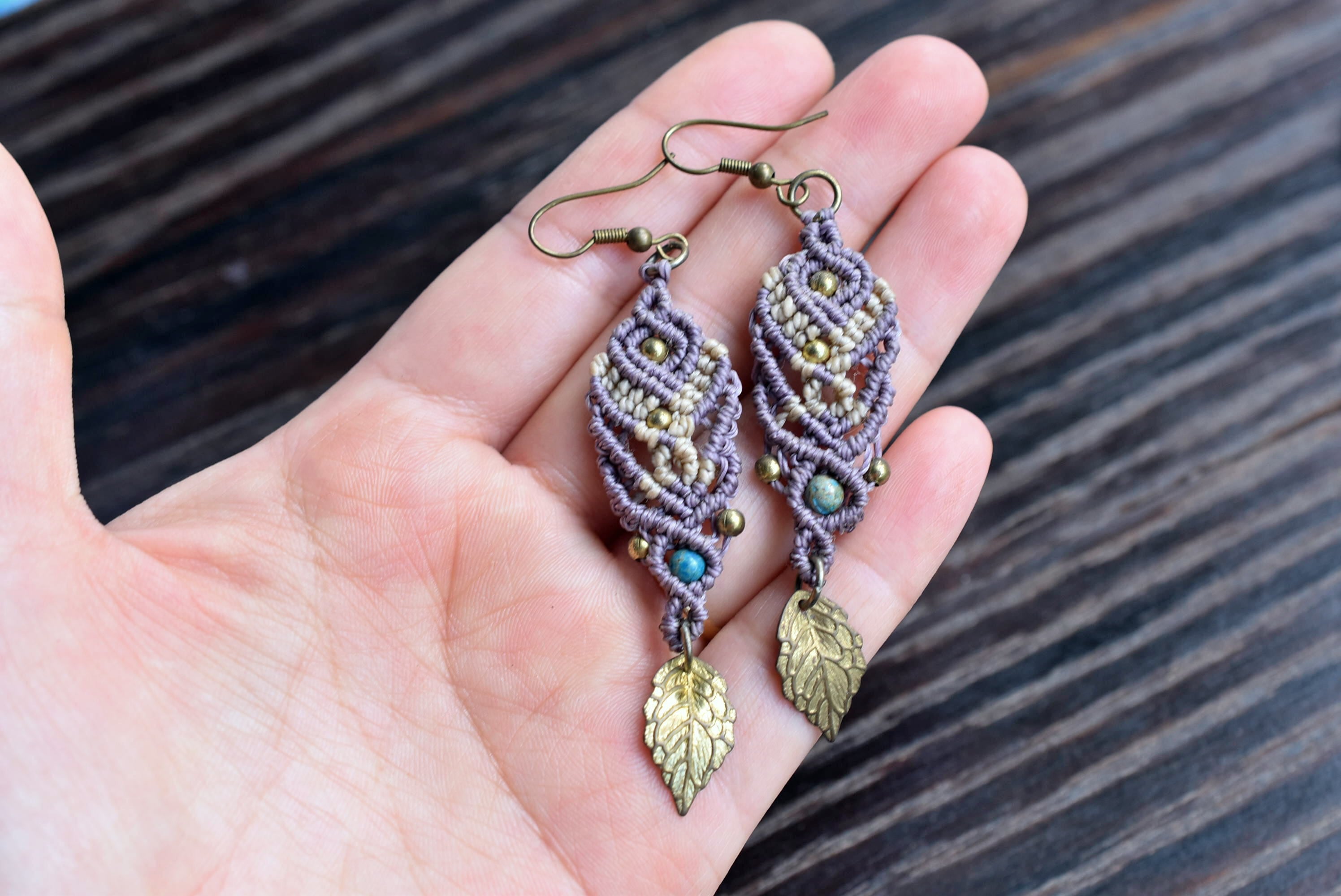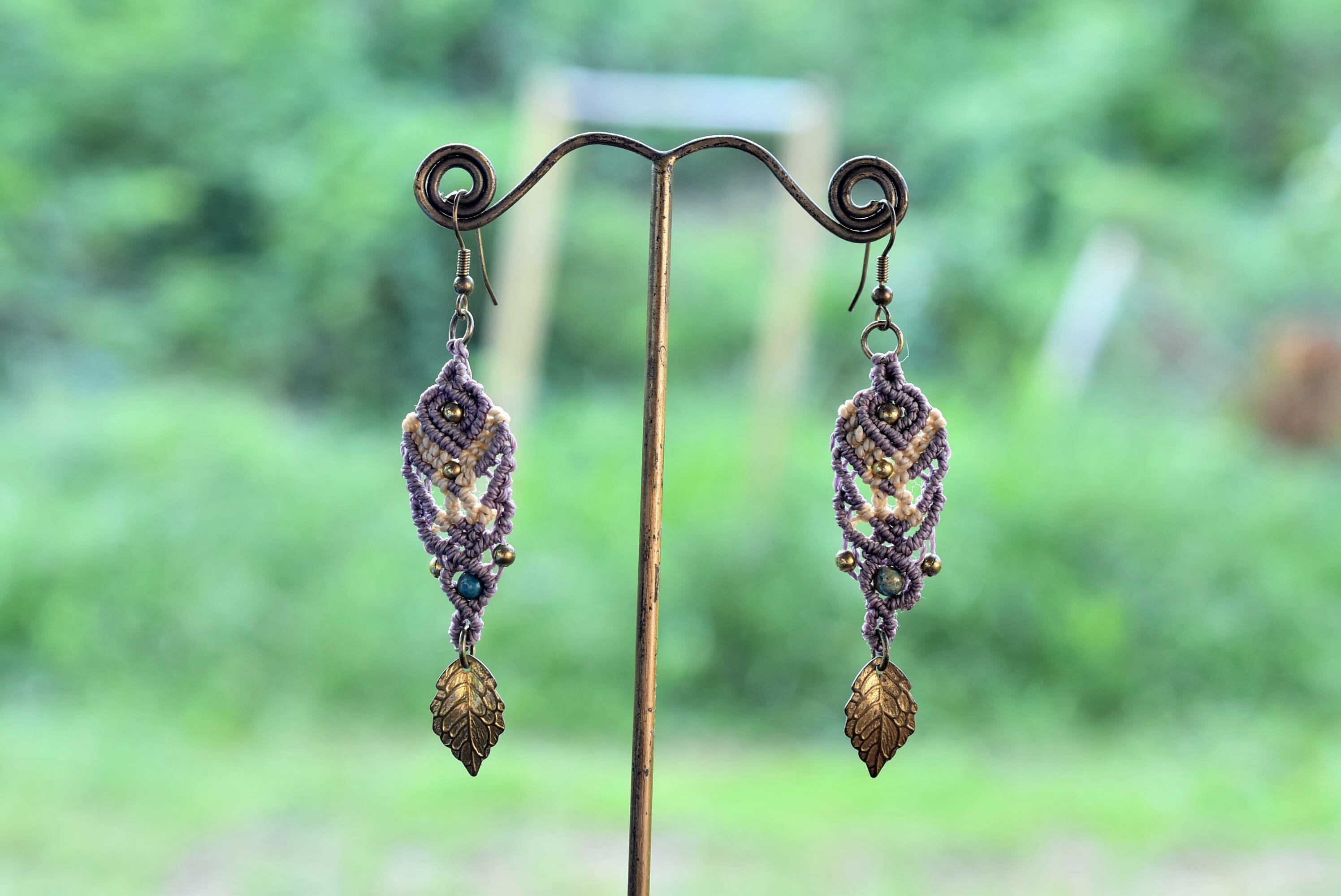 小さなクリソコラビーズをアクセントにマクラメ編み装飾を施して、ピアスに仕上げました。