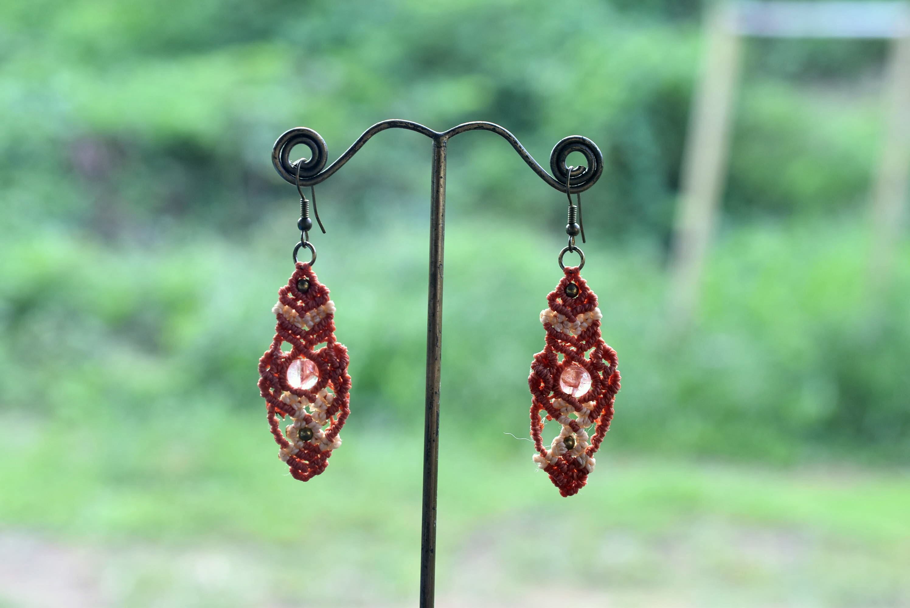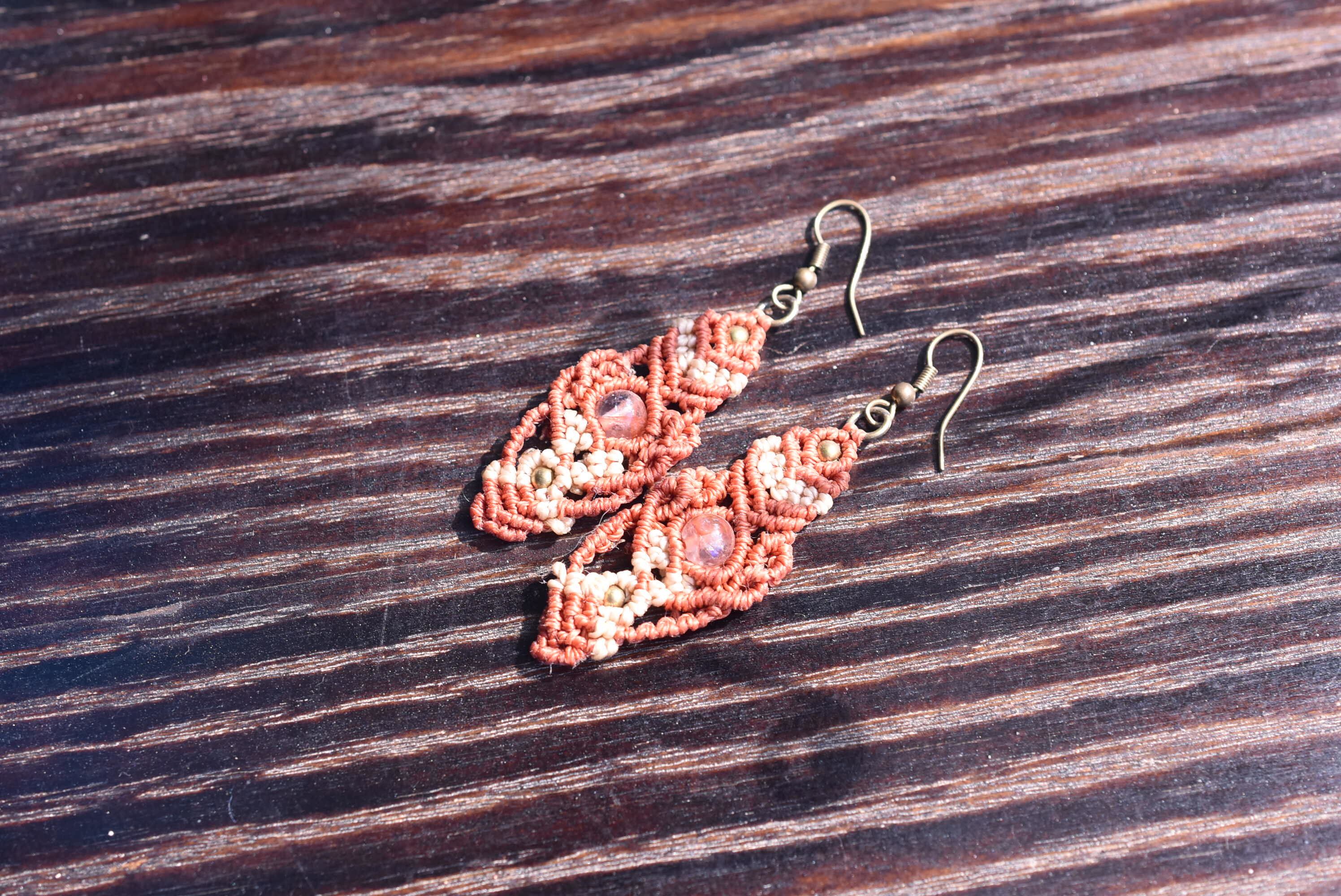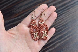 ストロベリークォーツビーズを使用し、マクラメ編み装飾を施して