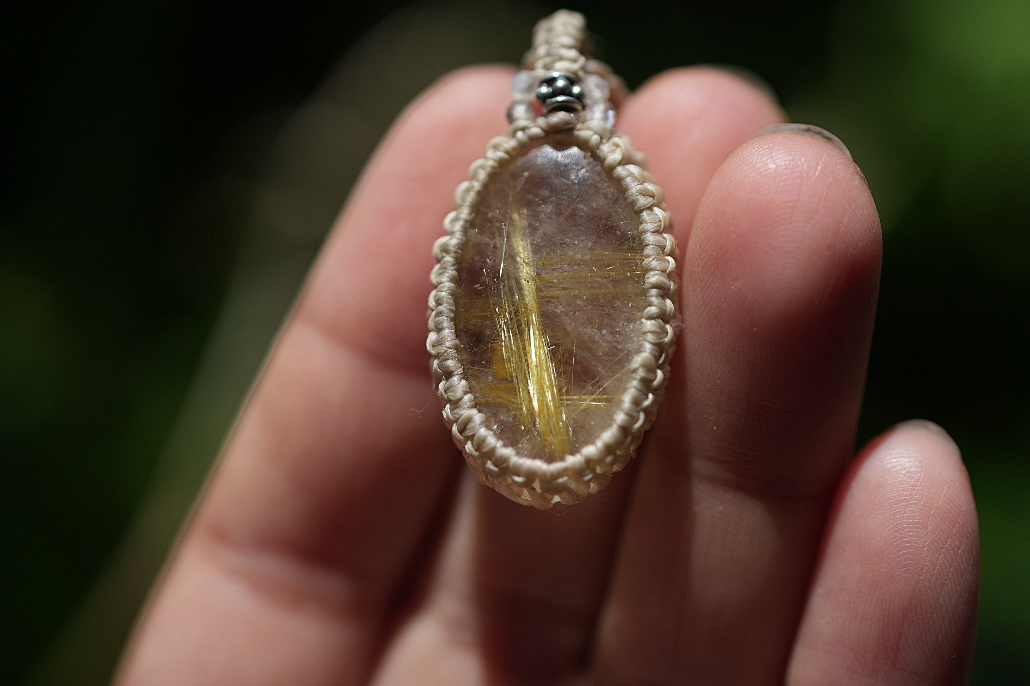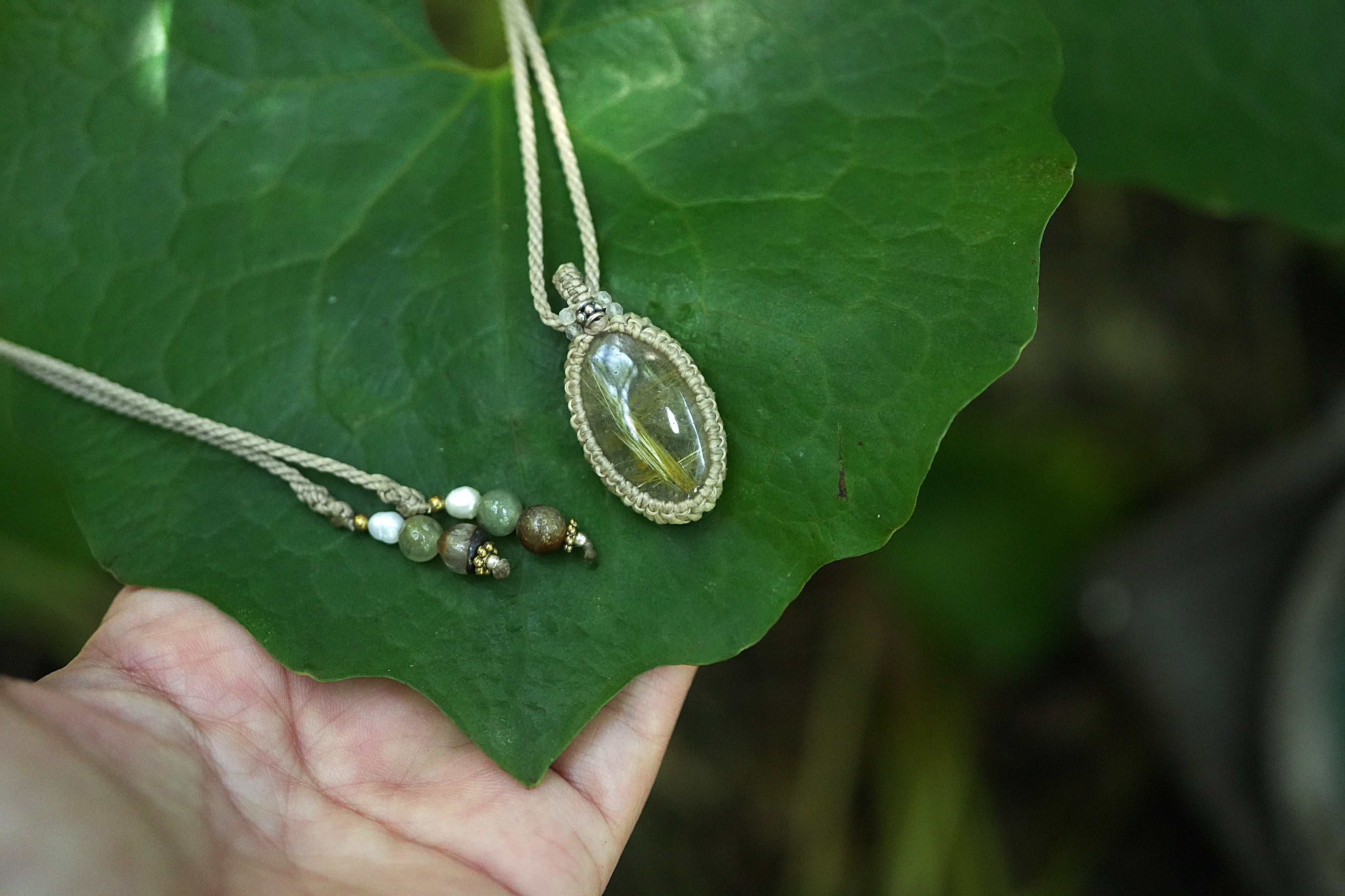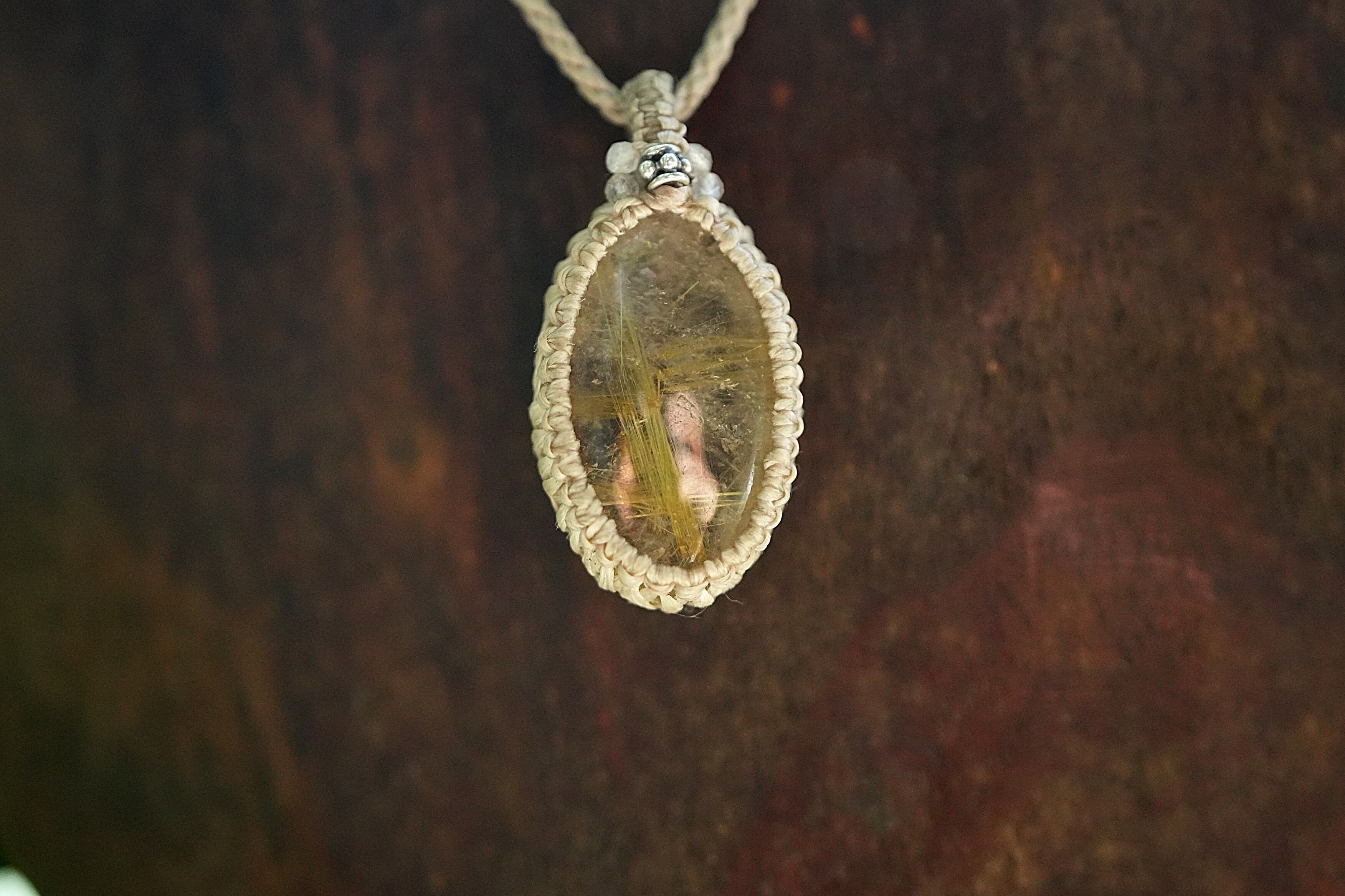 聳える黄金★ゴールドルチルクォーツ マクラメネックレス2062