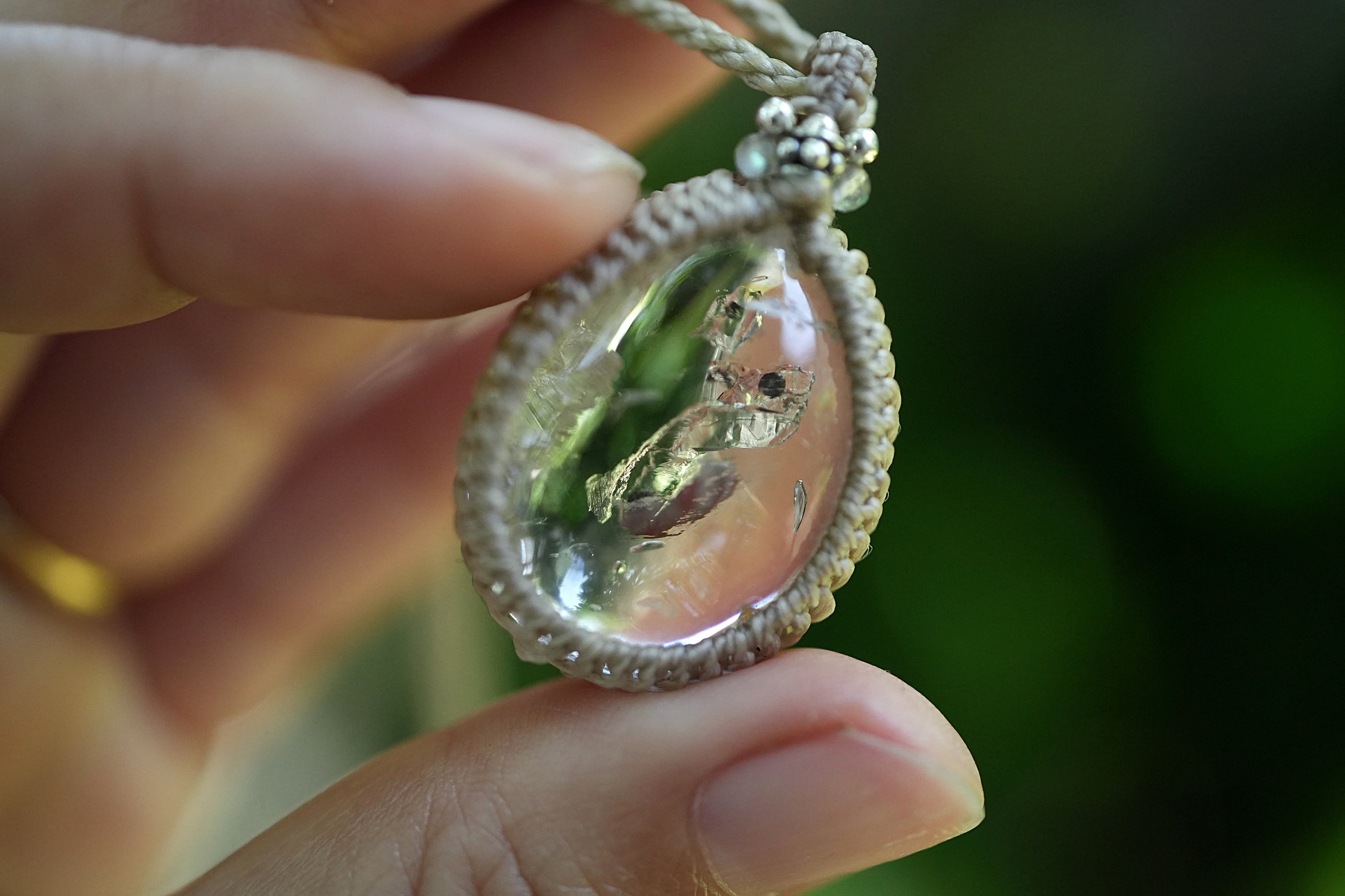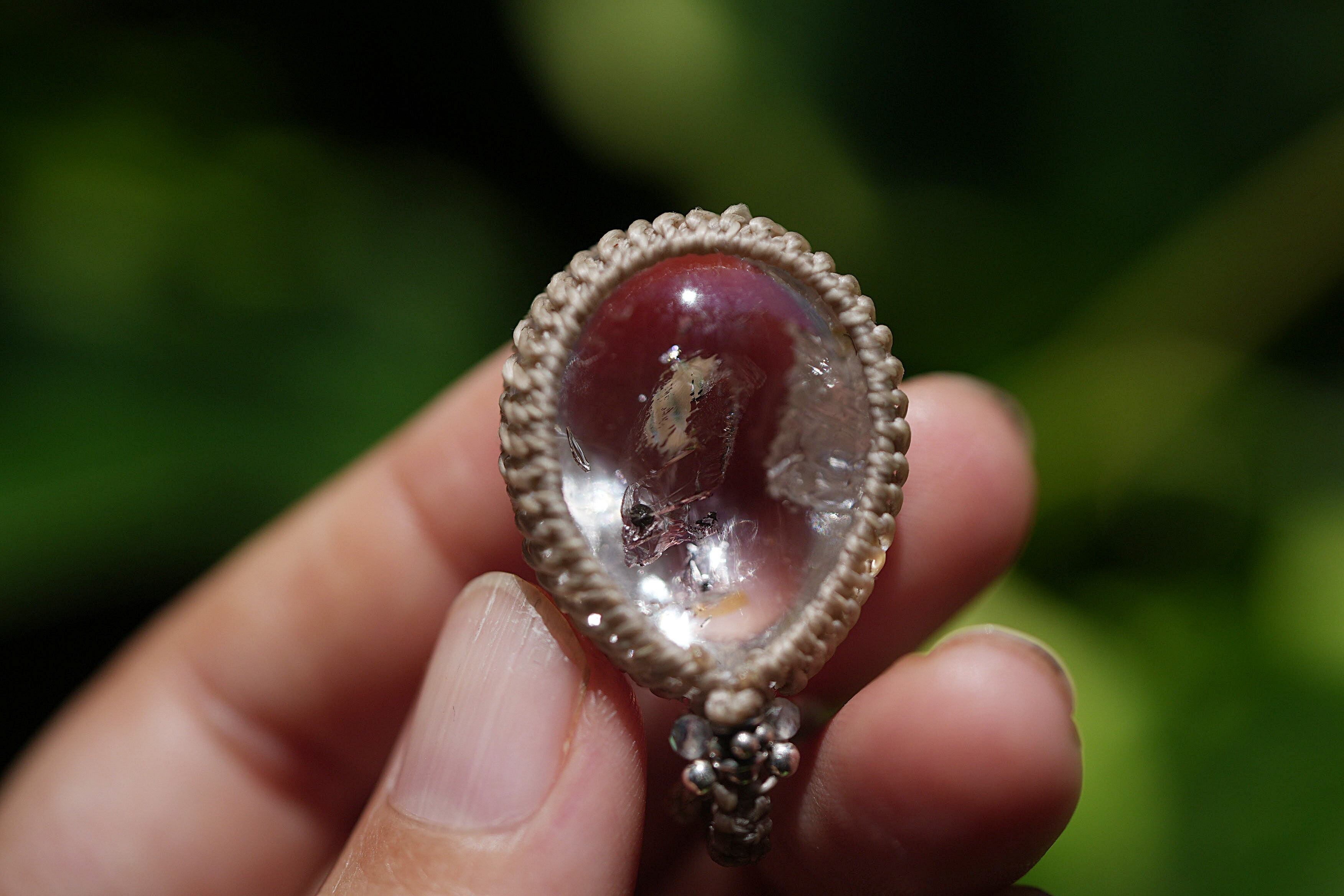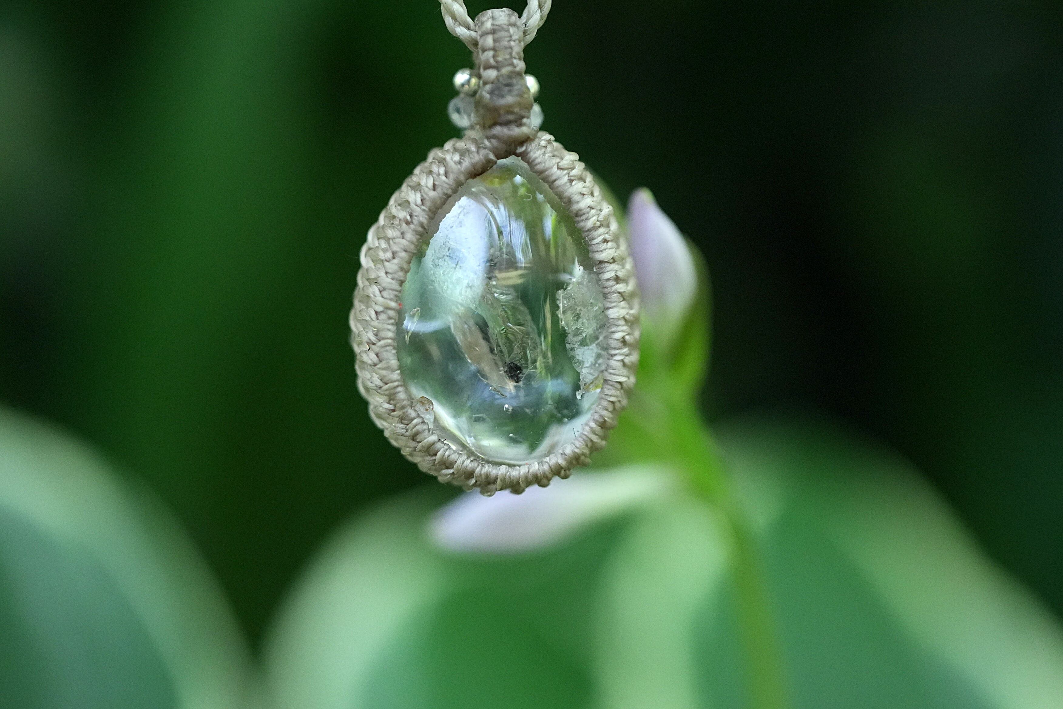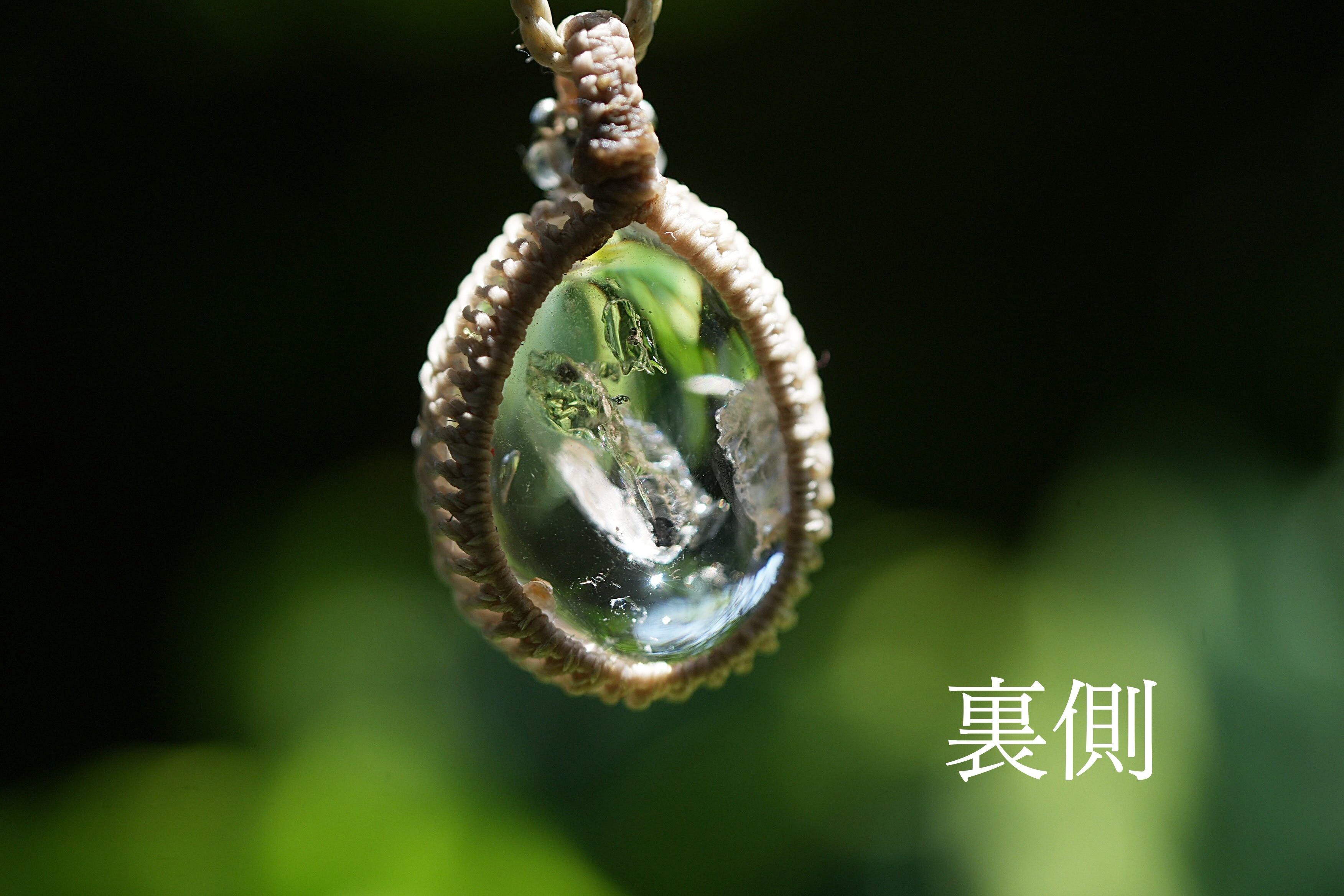 悩ましい水入り水晶をシンプルにマクラメネックレスに仕上げました。