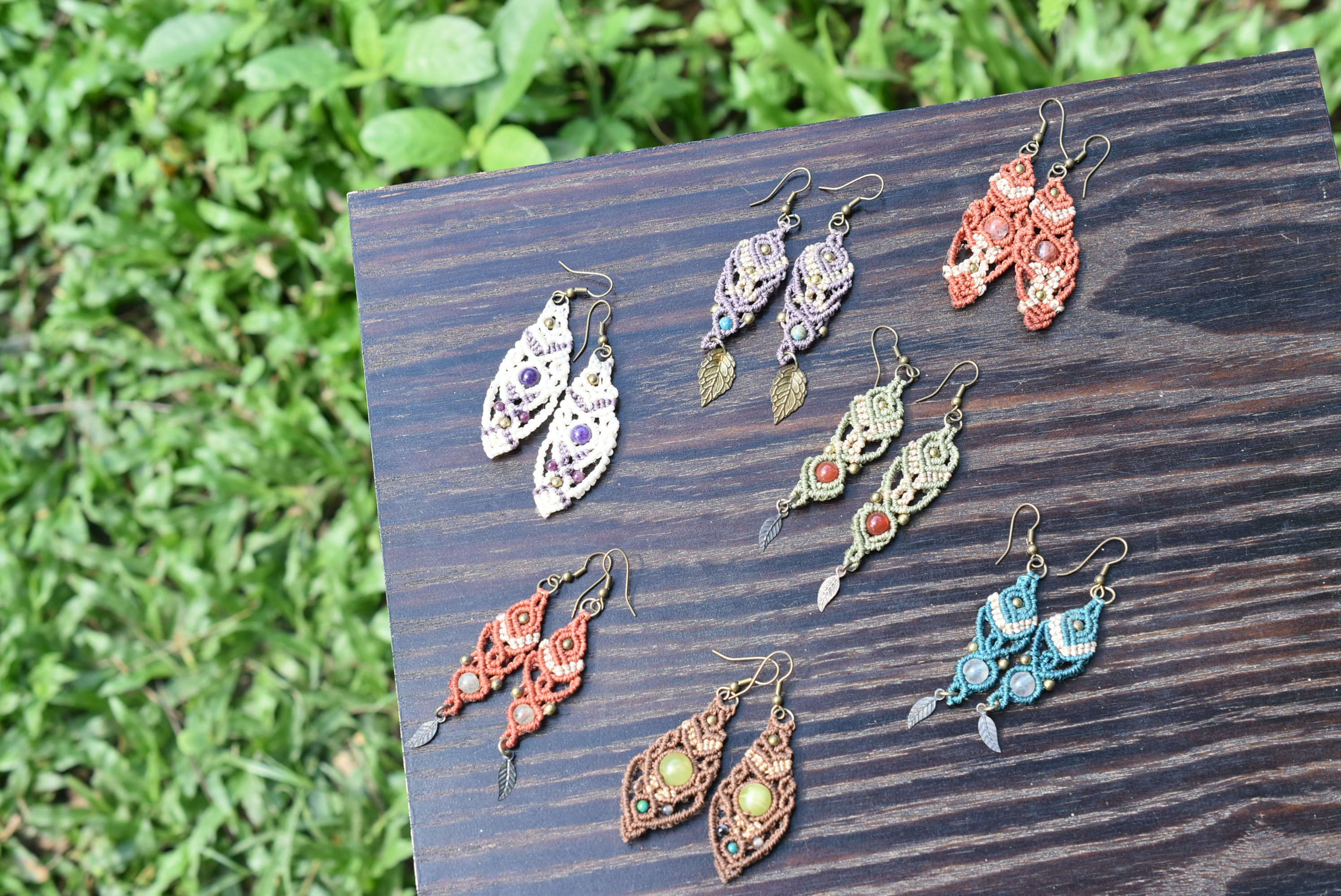 透き通るグリーンフローライトビーズを使用し、マクラメ編み装飾を施しました。